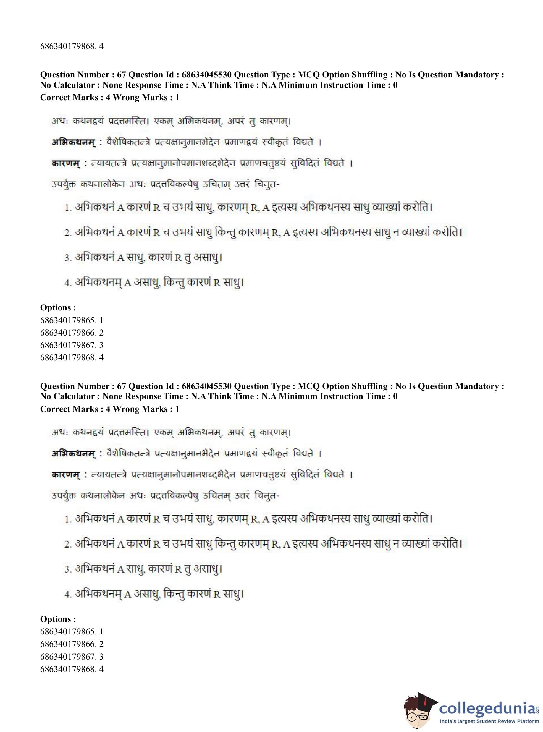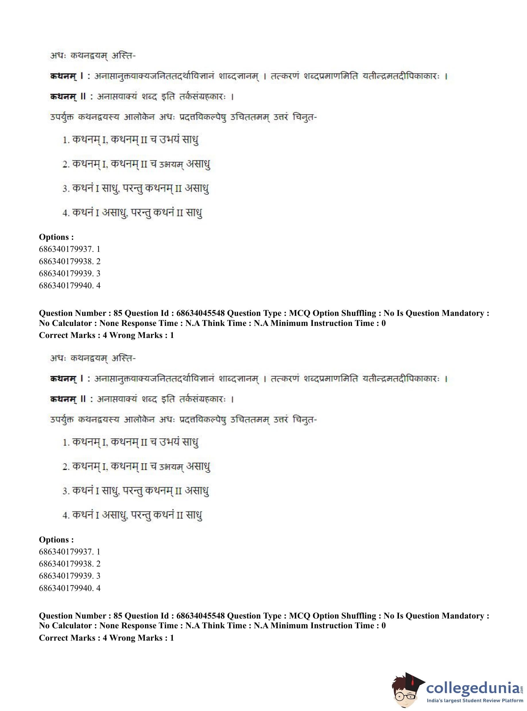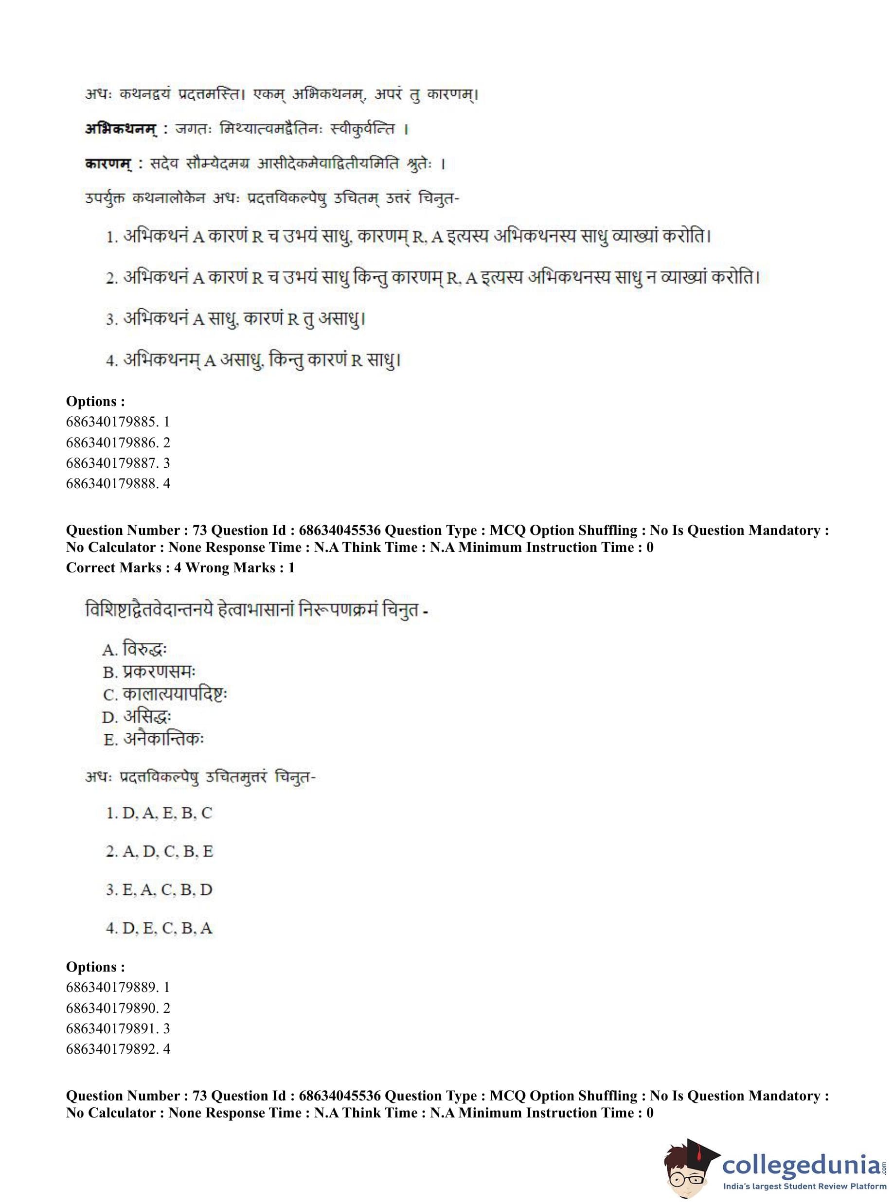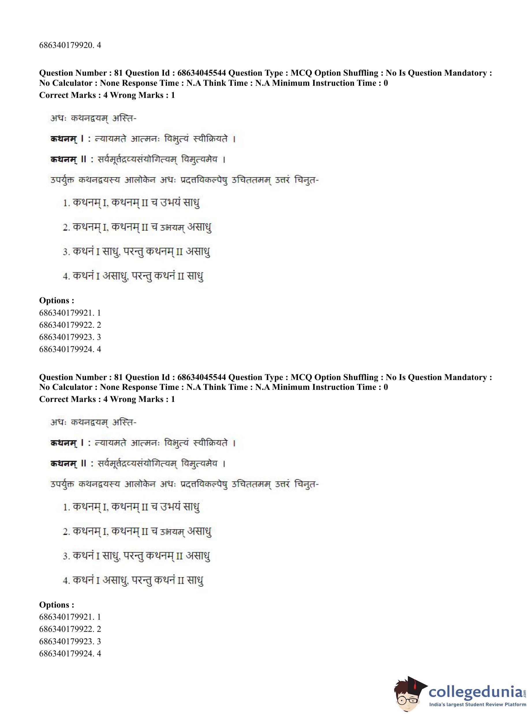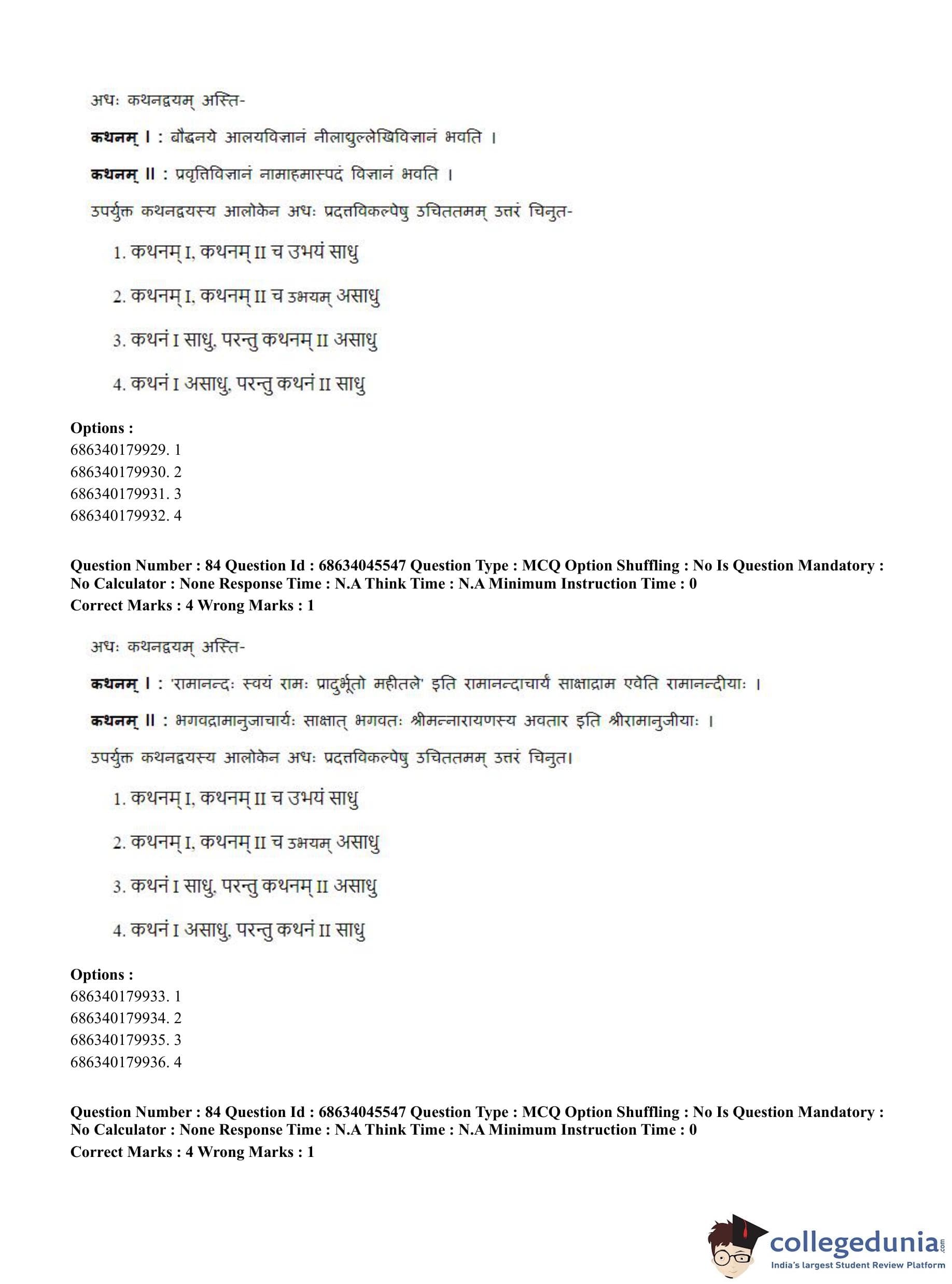 CUET PG 2023 Vedanta, Sarvadarshan, Mimansa,Nyaya Question Paper in English (June 30 - Shift 3)