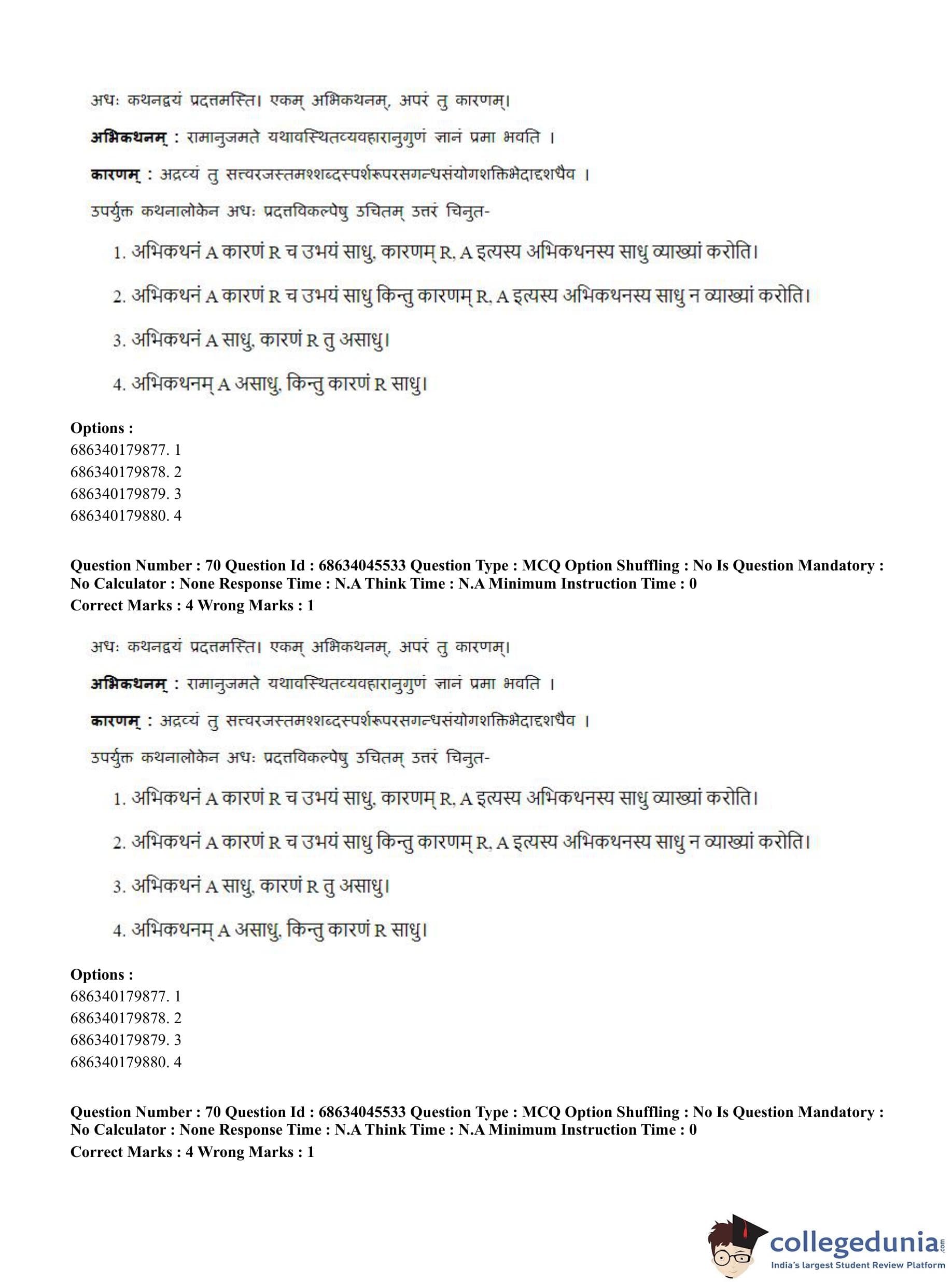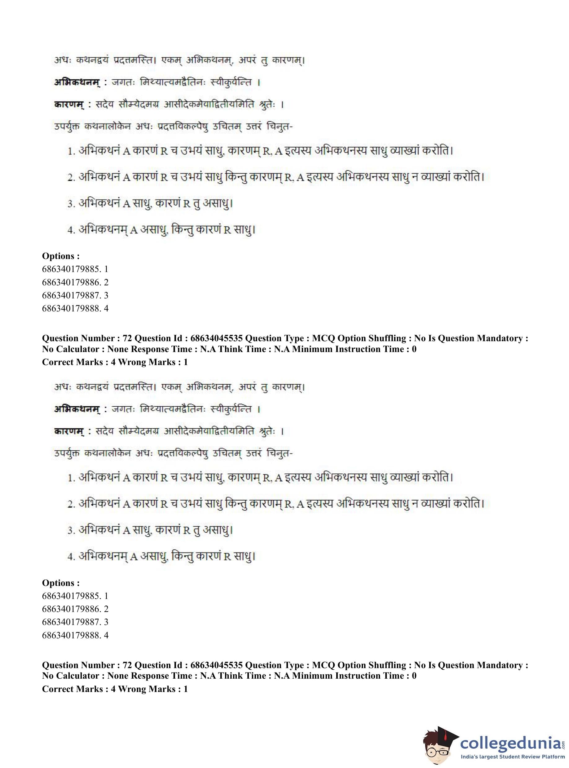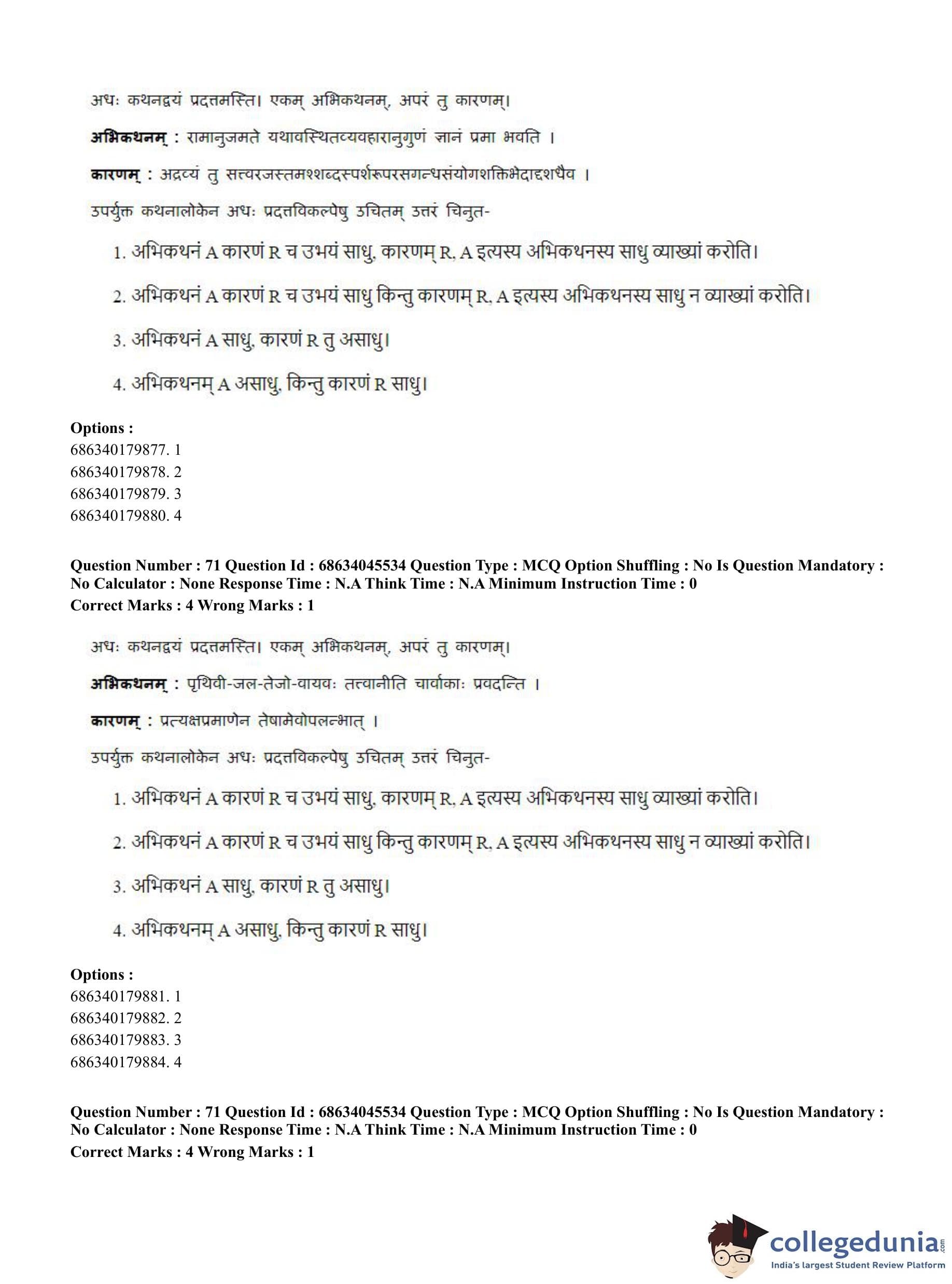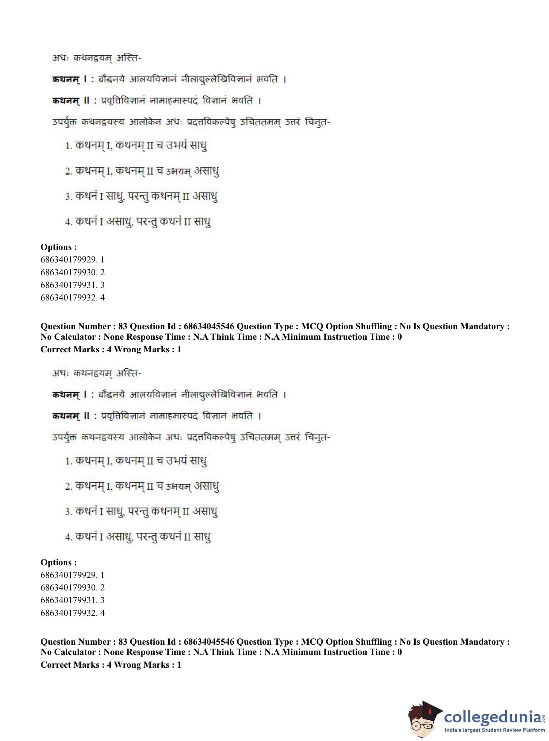 CUET PG 2023 Vedanta, Sarvadarshan, Mimansa,Nyaya Question Paper in English (June 30 - Shift 3)