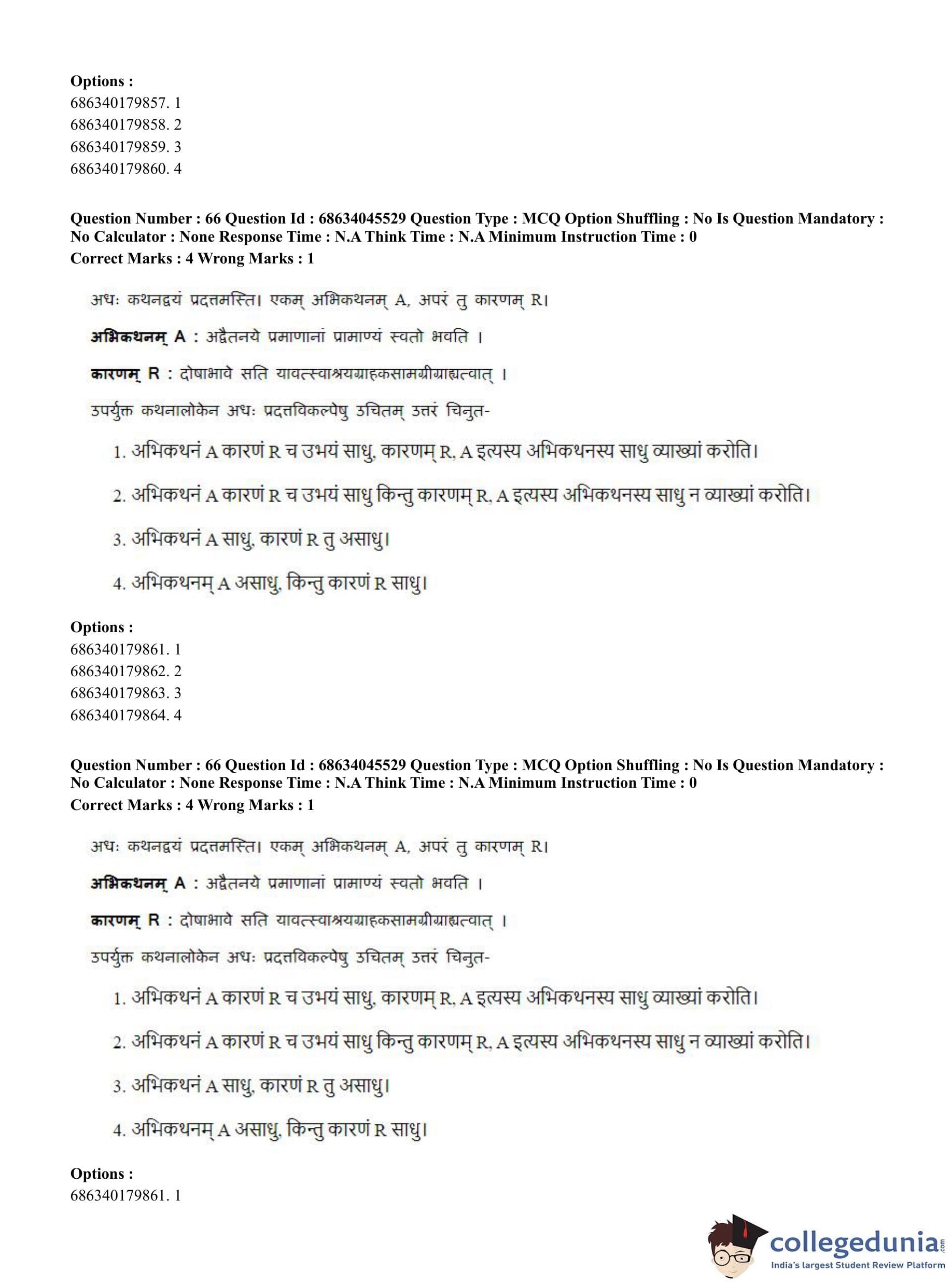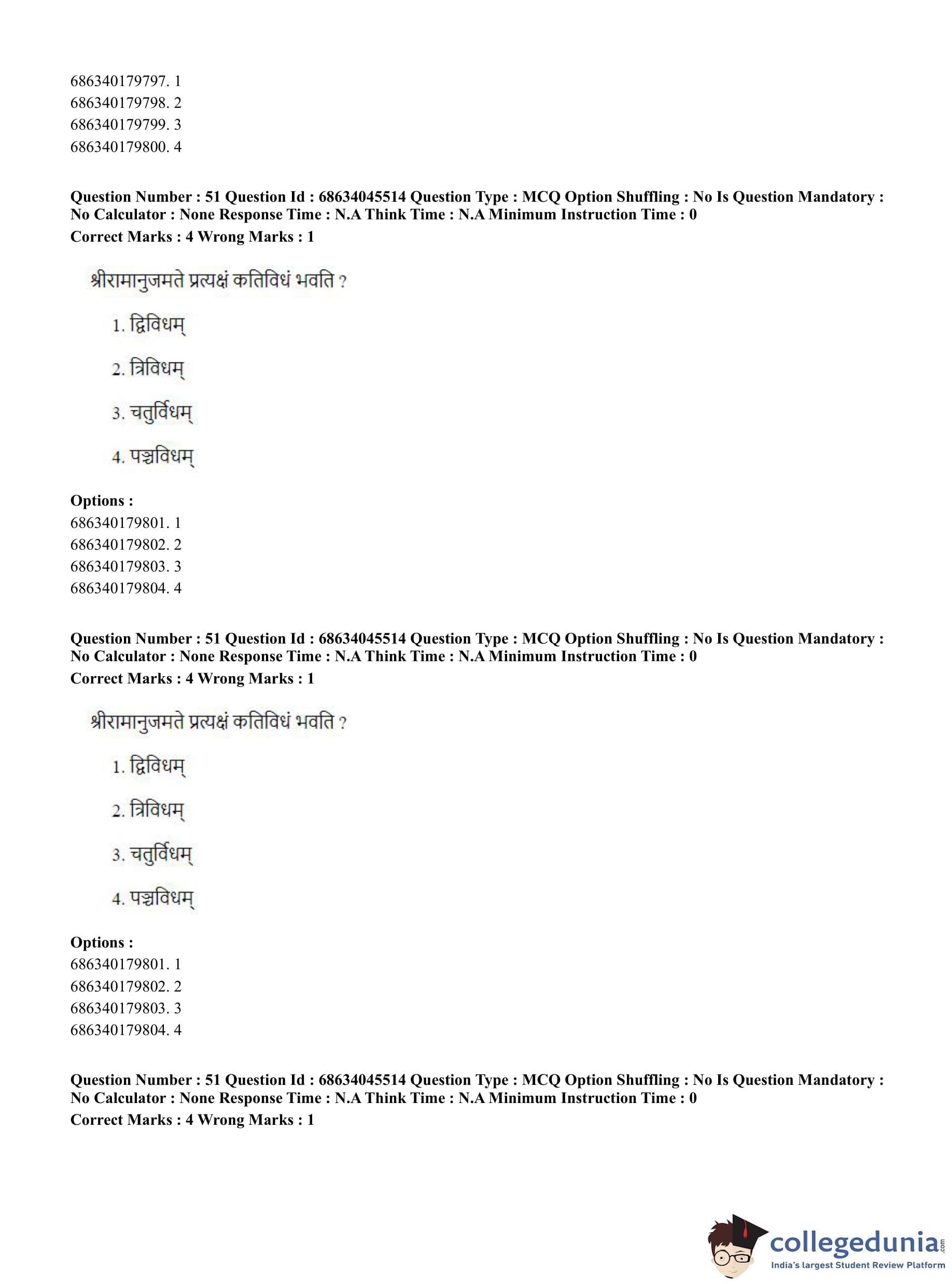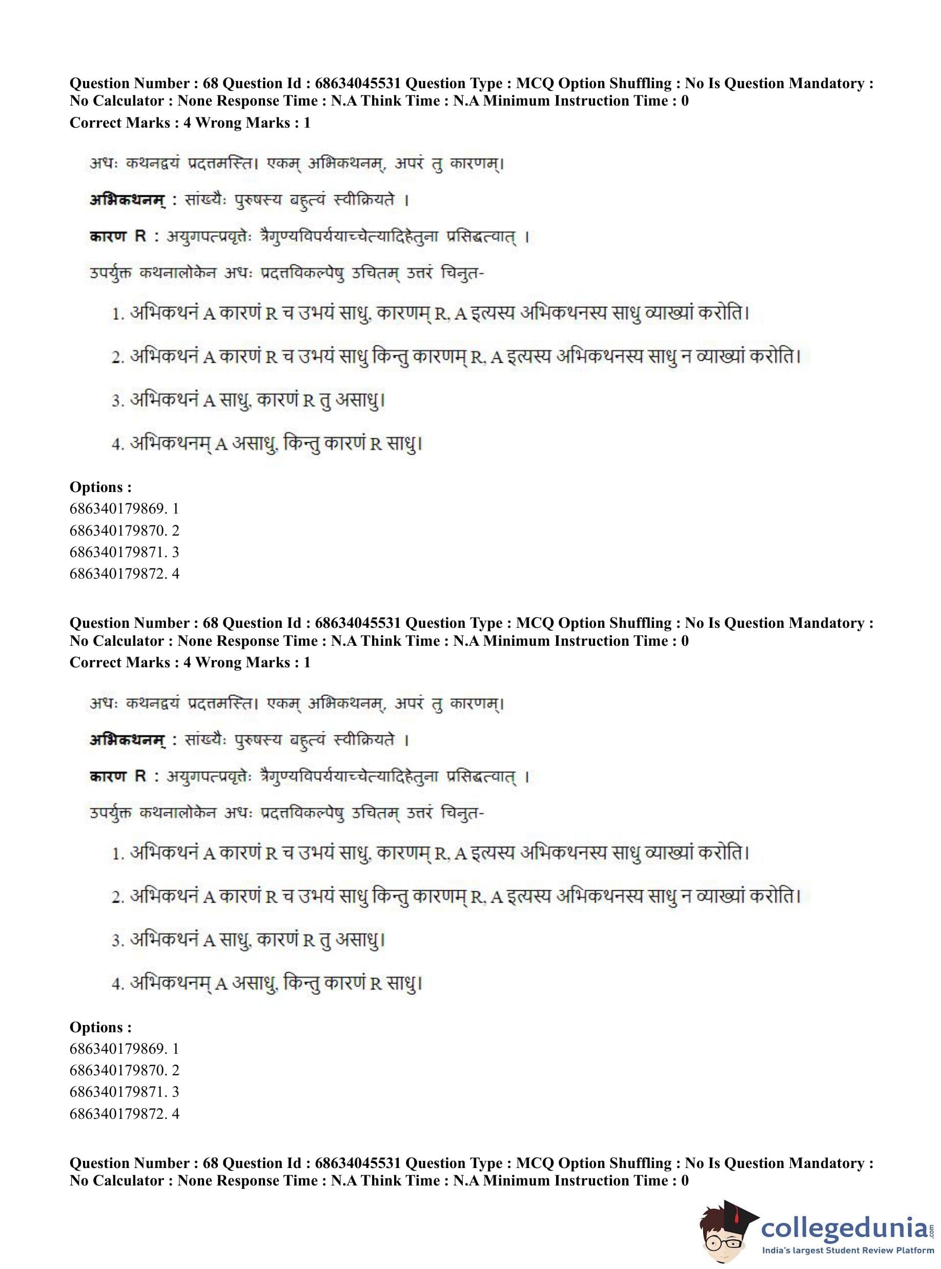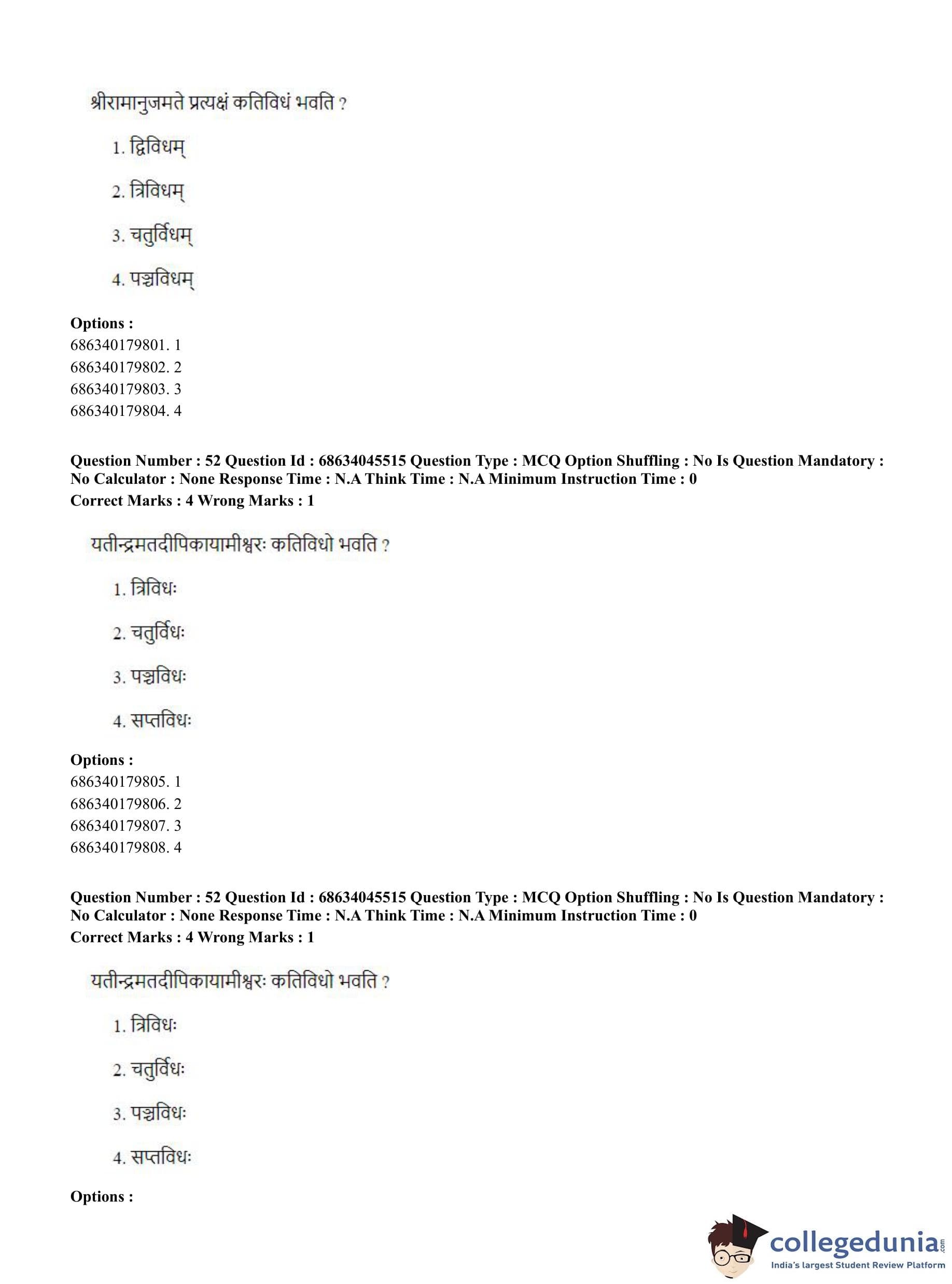 CUET PG 2023 Vedanta, Sarvadarshan, Mimansa,Nyaya Question Paper in English (June 30 - Shift 3)