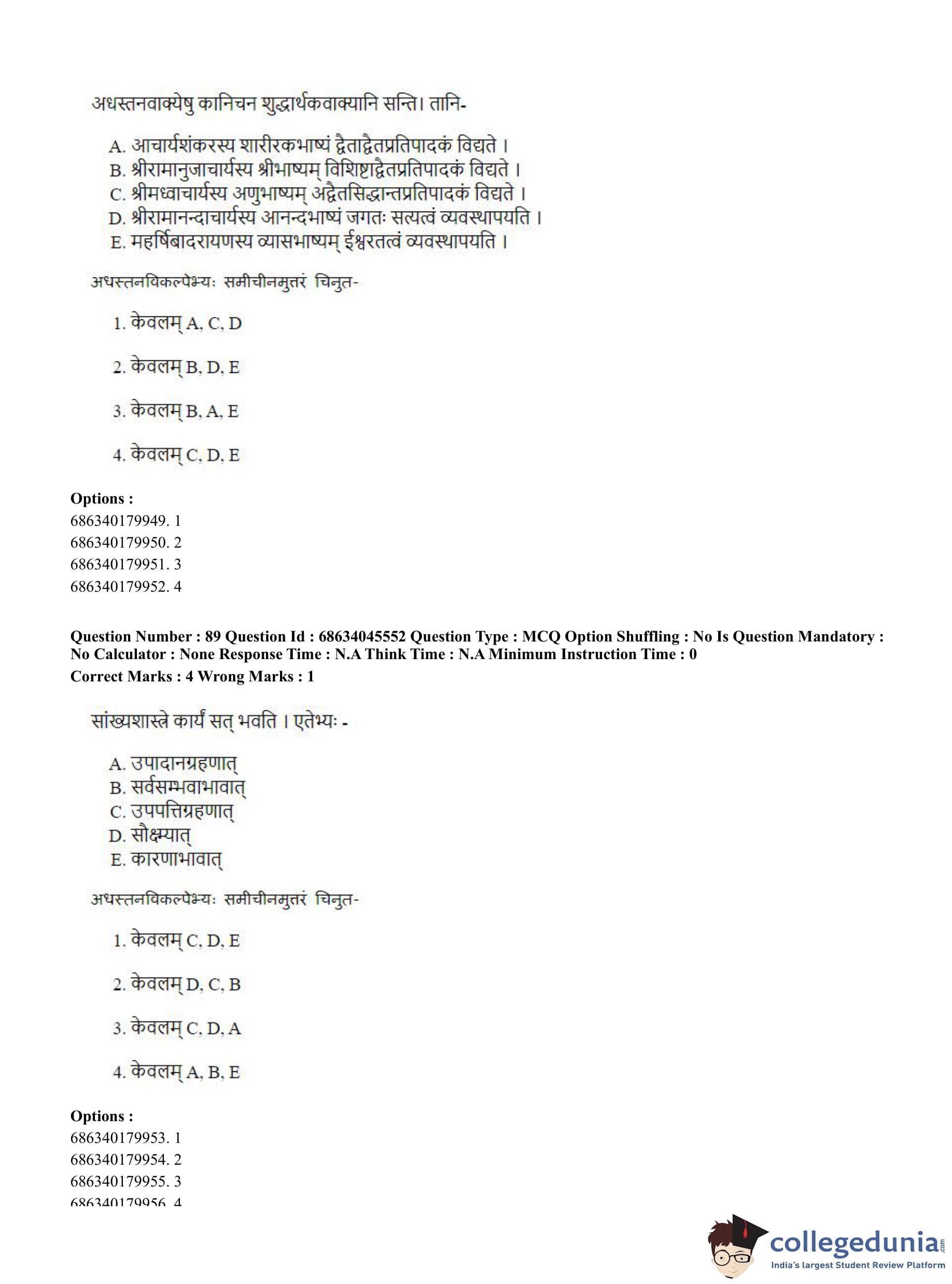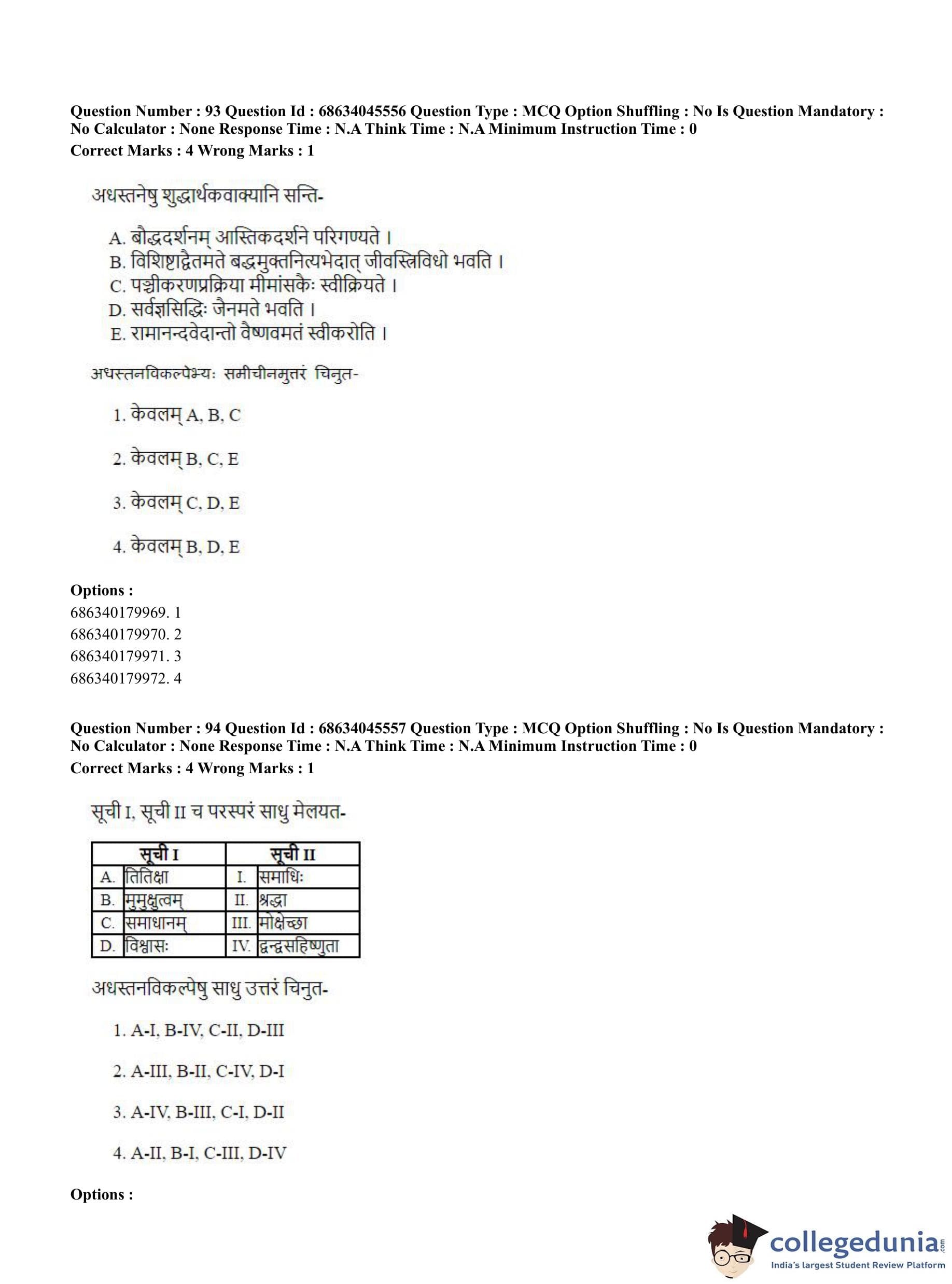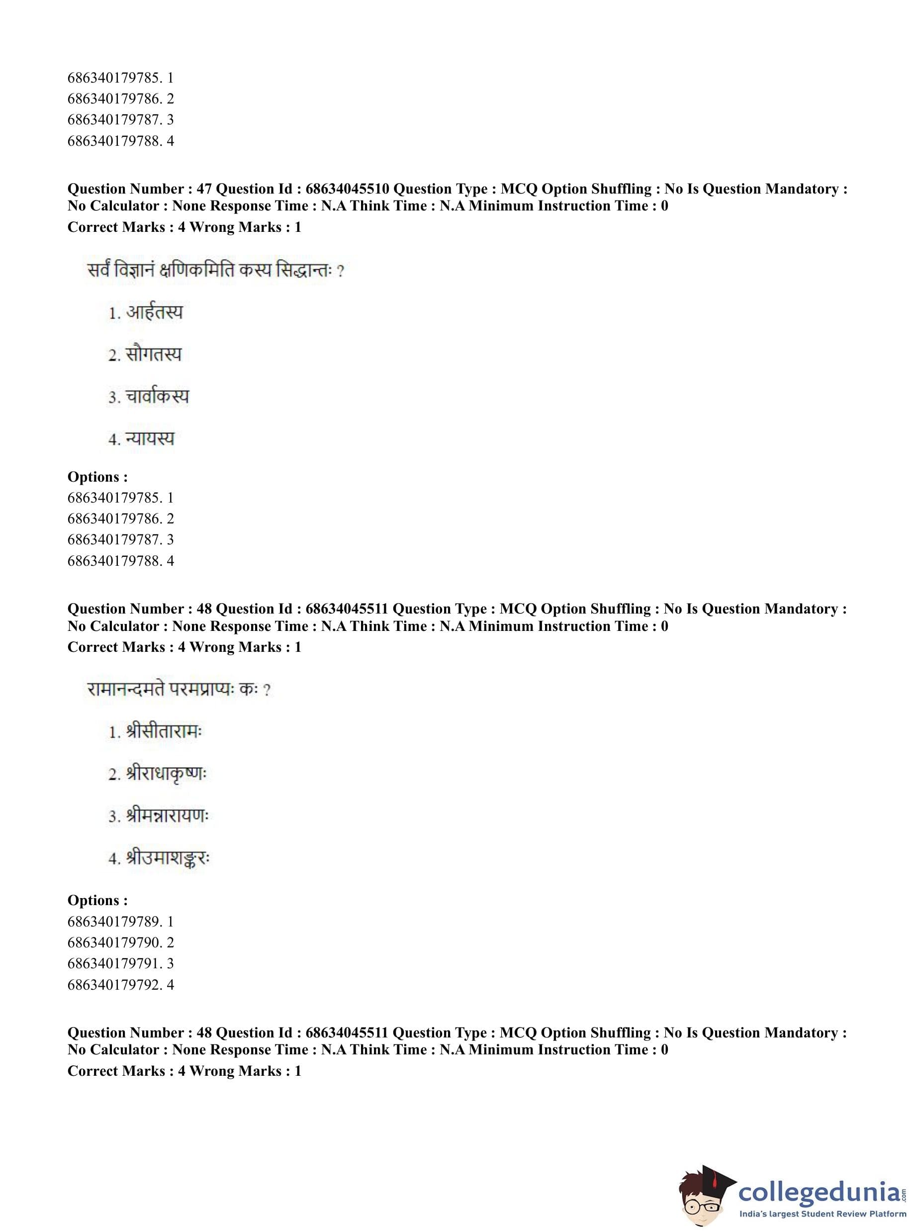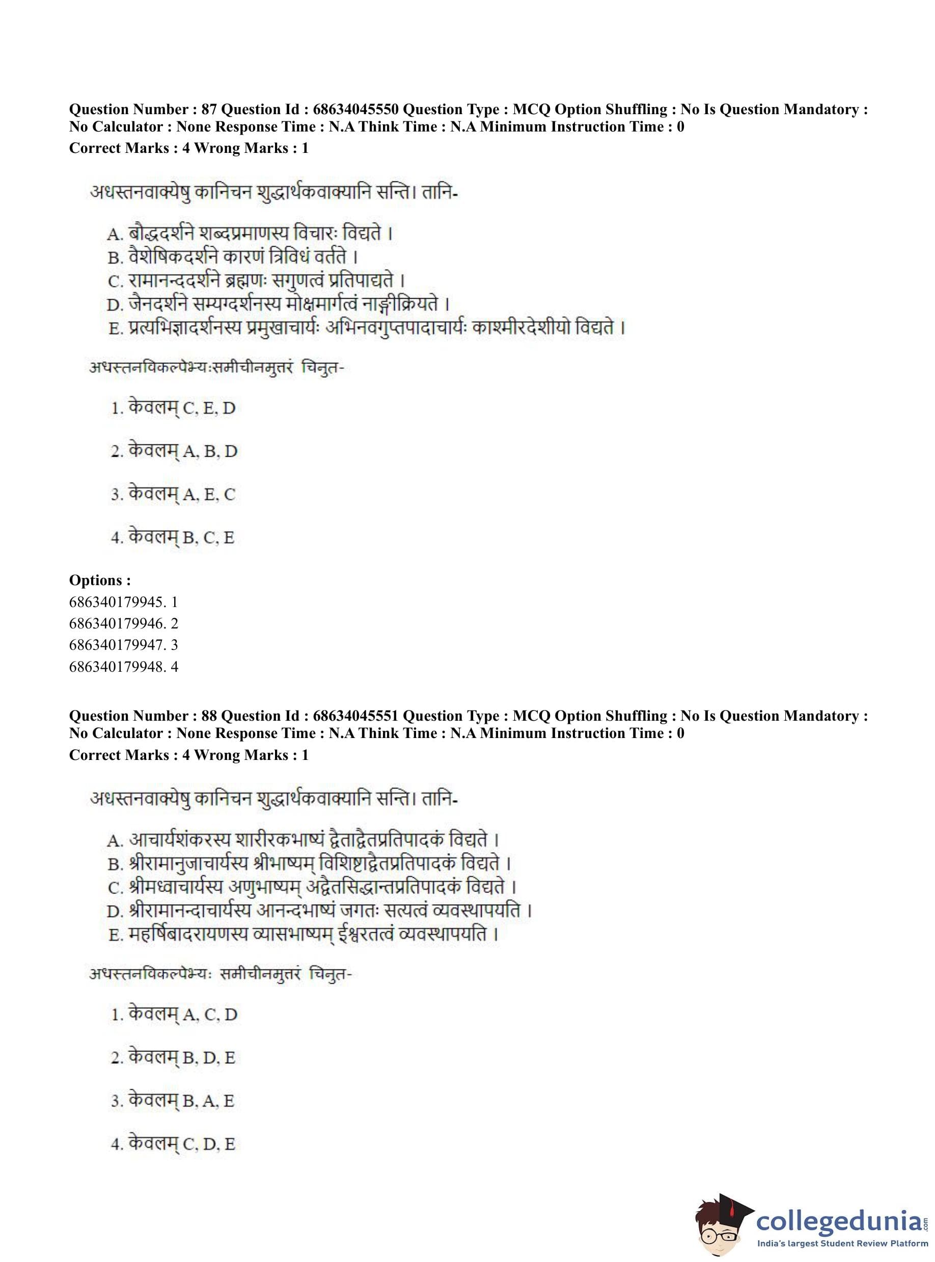 | CUET PG Vedanta, Sarvadarshan, Mimansa,Nyaya Question Paper 2023 PDF | CUET PG Vedanta, Sarvadarshan, Mimansa,Nyaya Answer Key 2023 PDF |