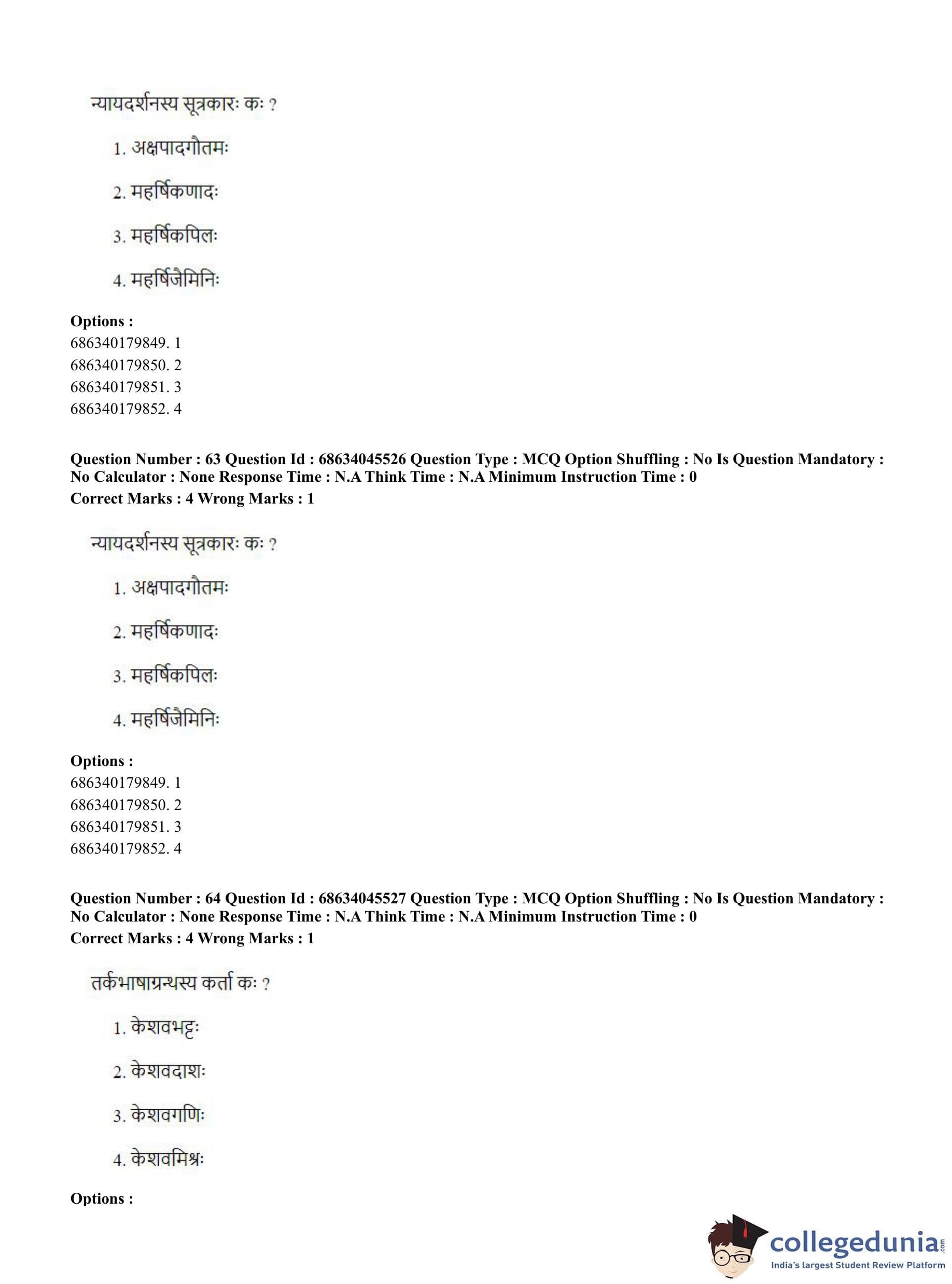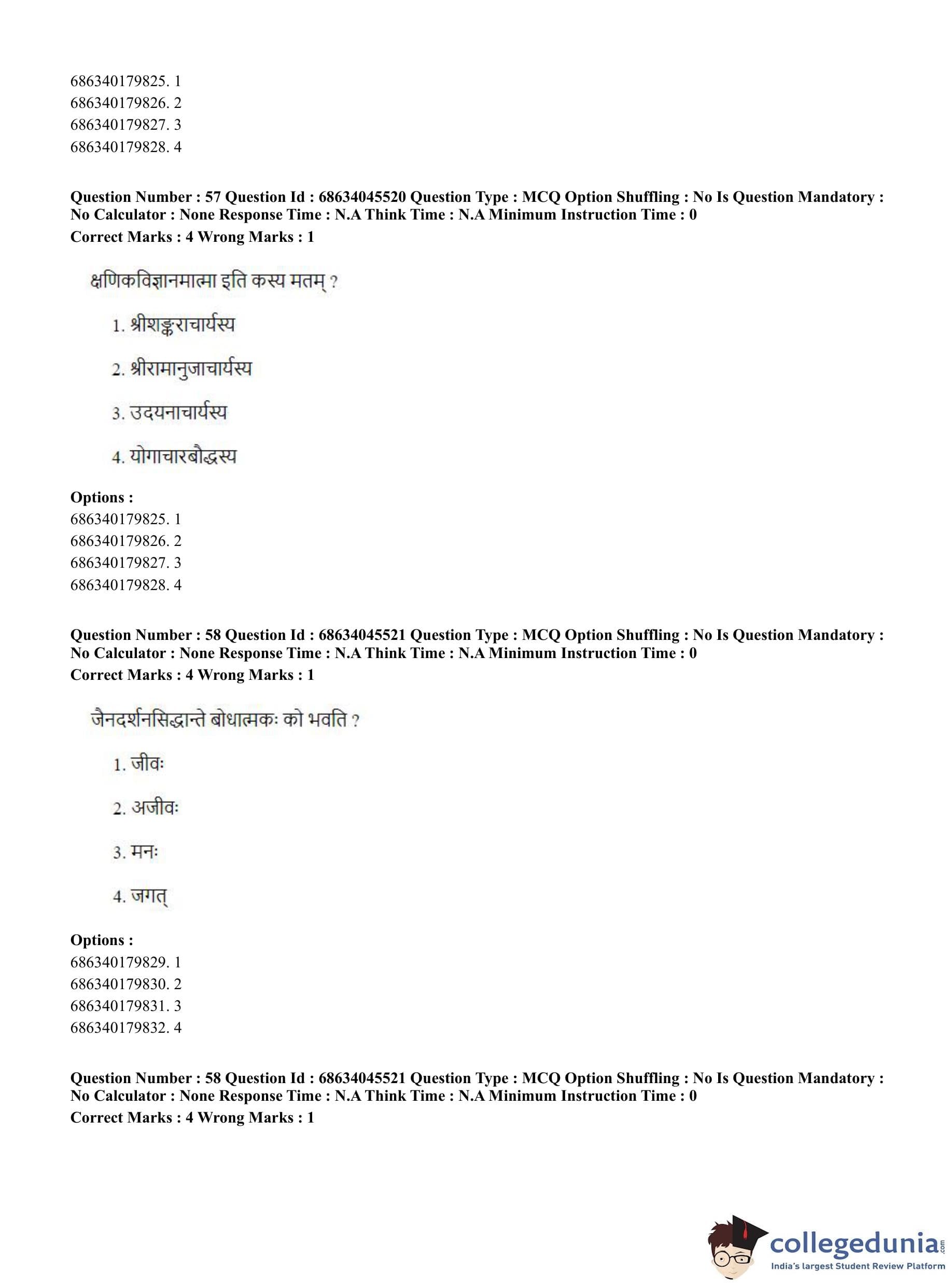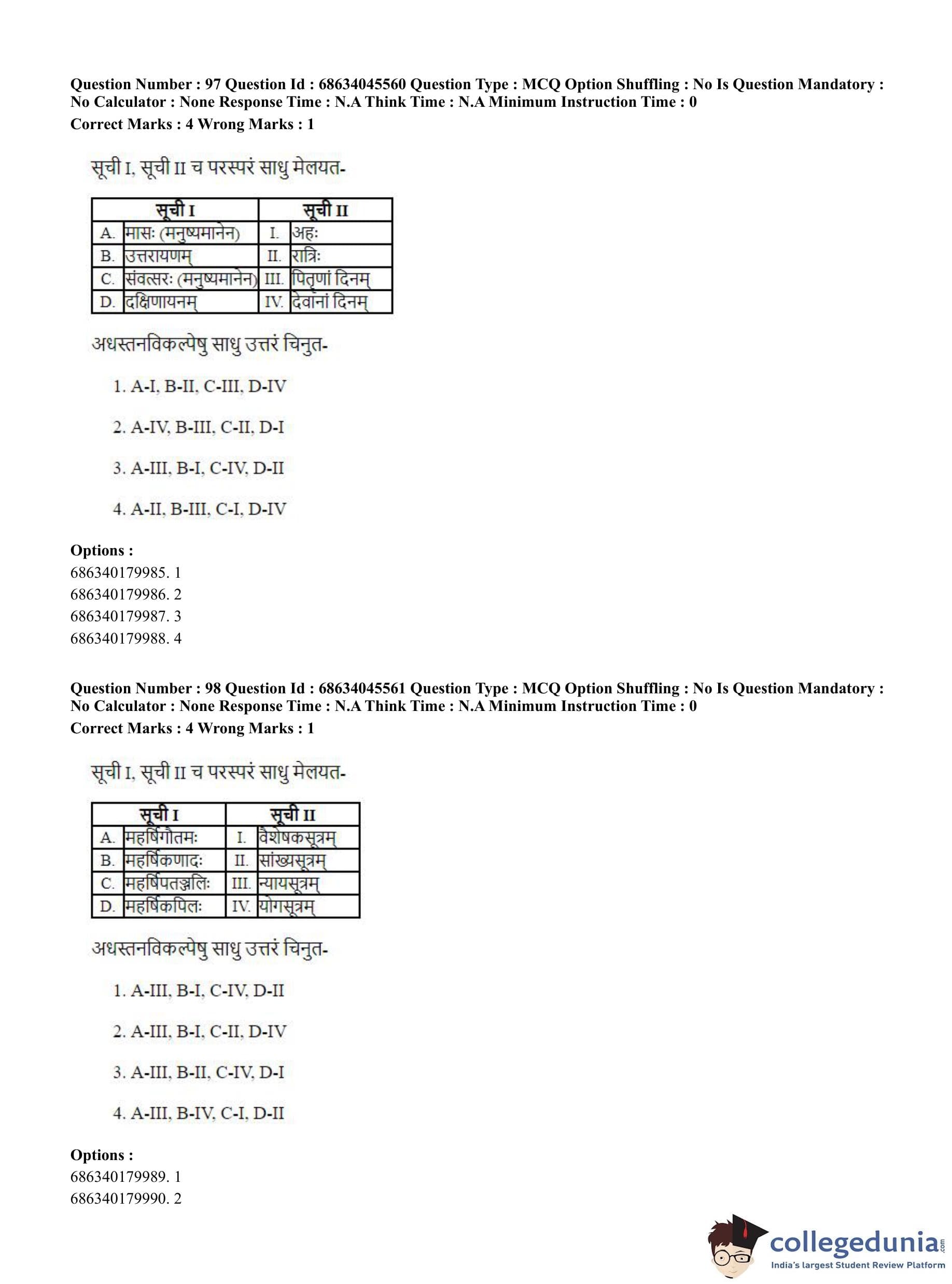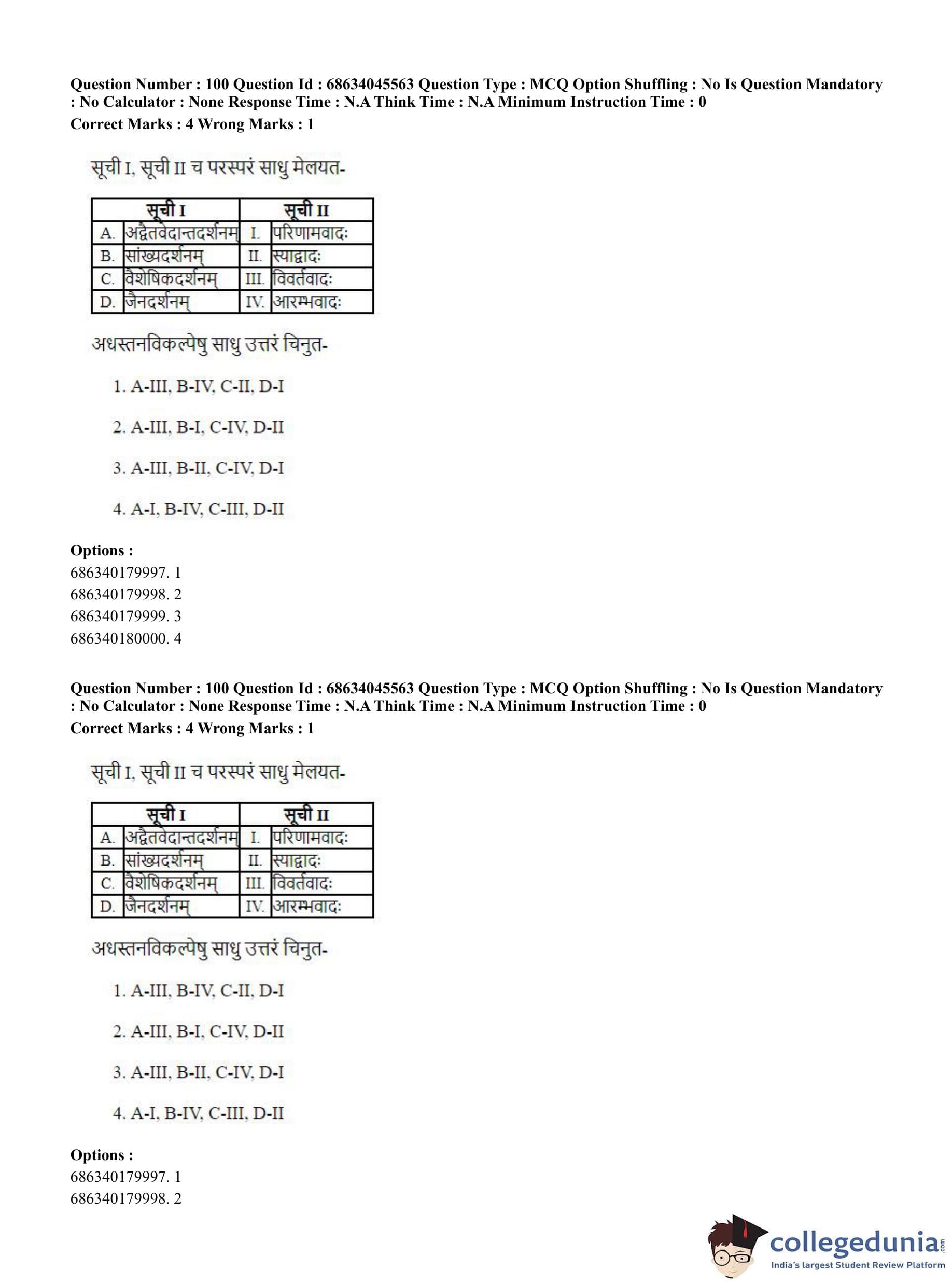 | CUET PG Vedanta, Sarvadarshan, Mimansa,Nyaya Question Paper 2023 PDF | CUET PG Vedanta, Sarvadarshan, Mimansa,Nyaya Answer Key 2023 PDF |