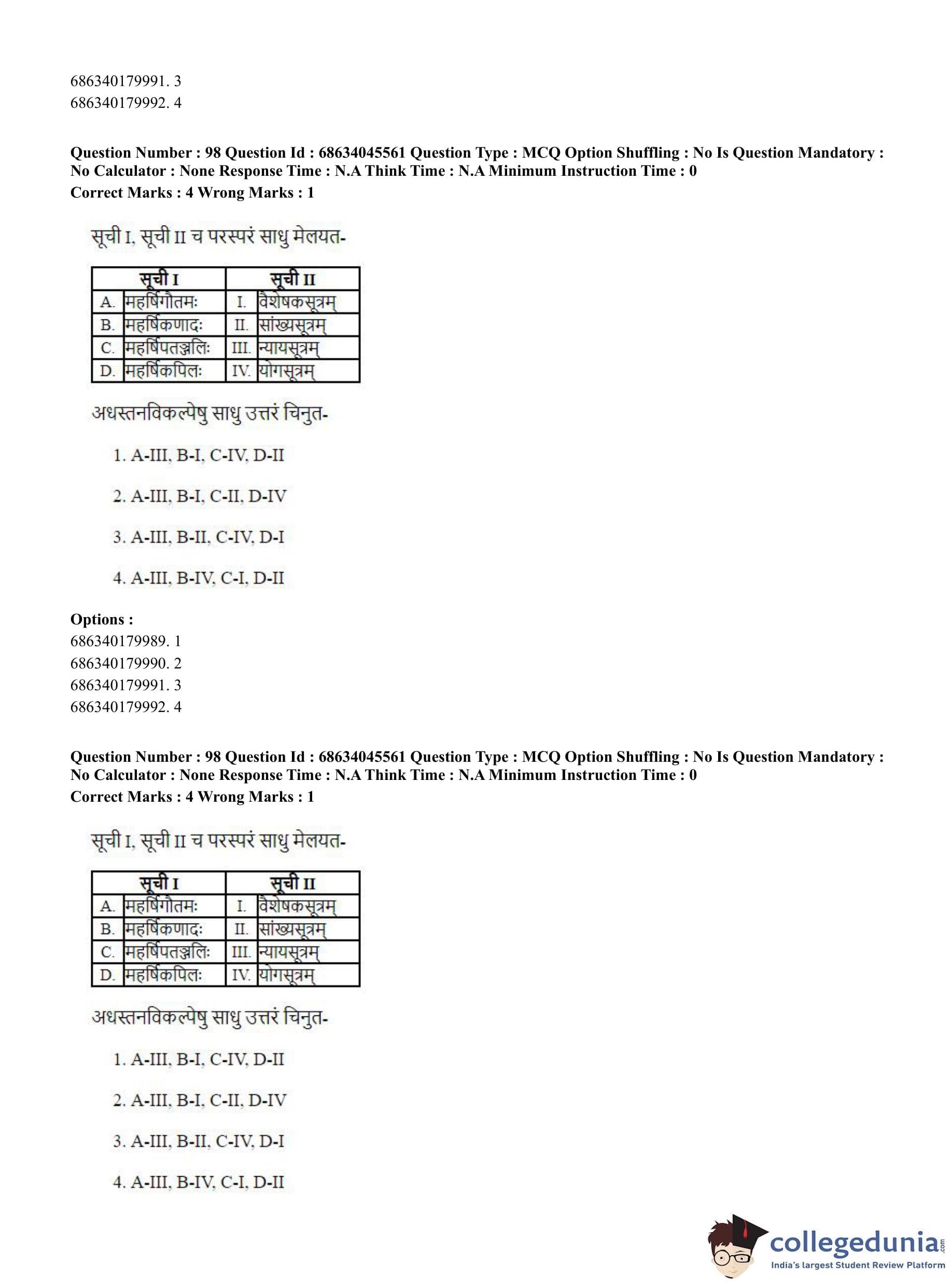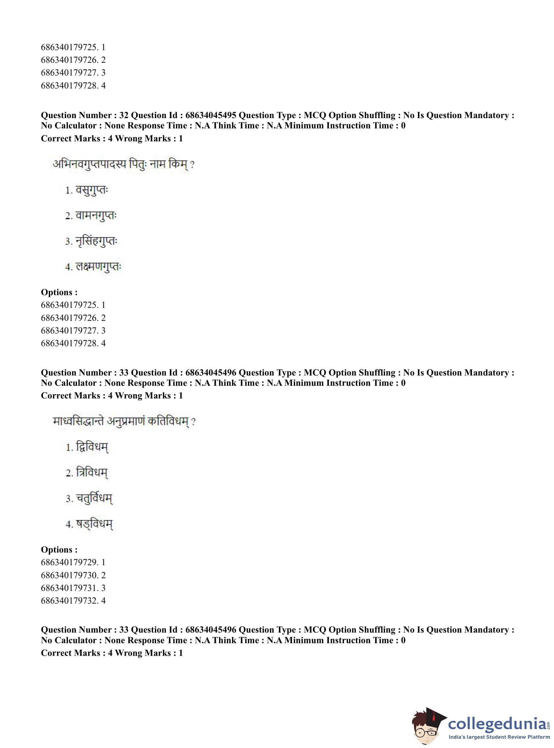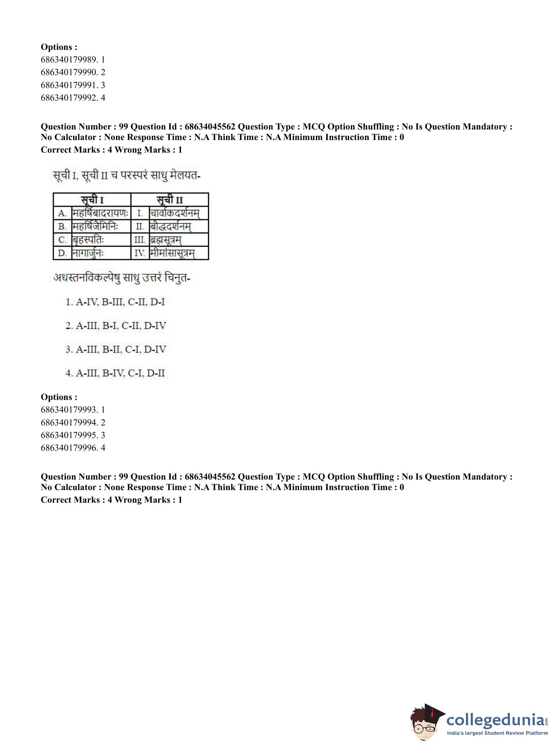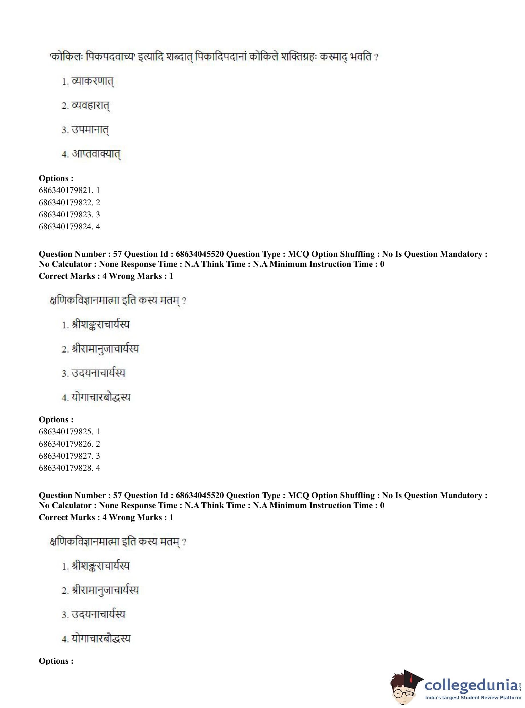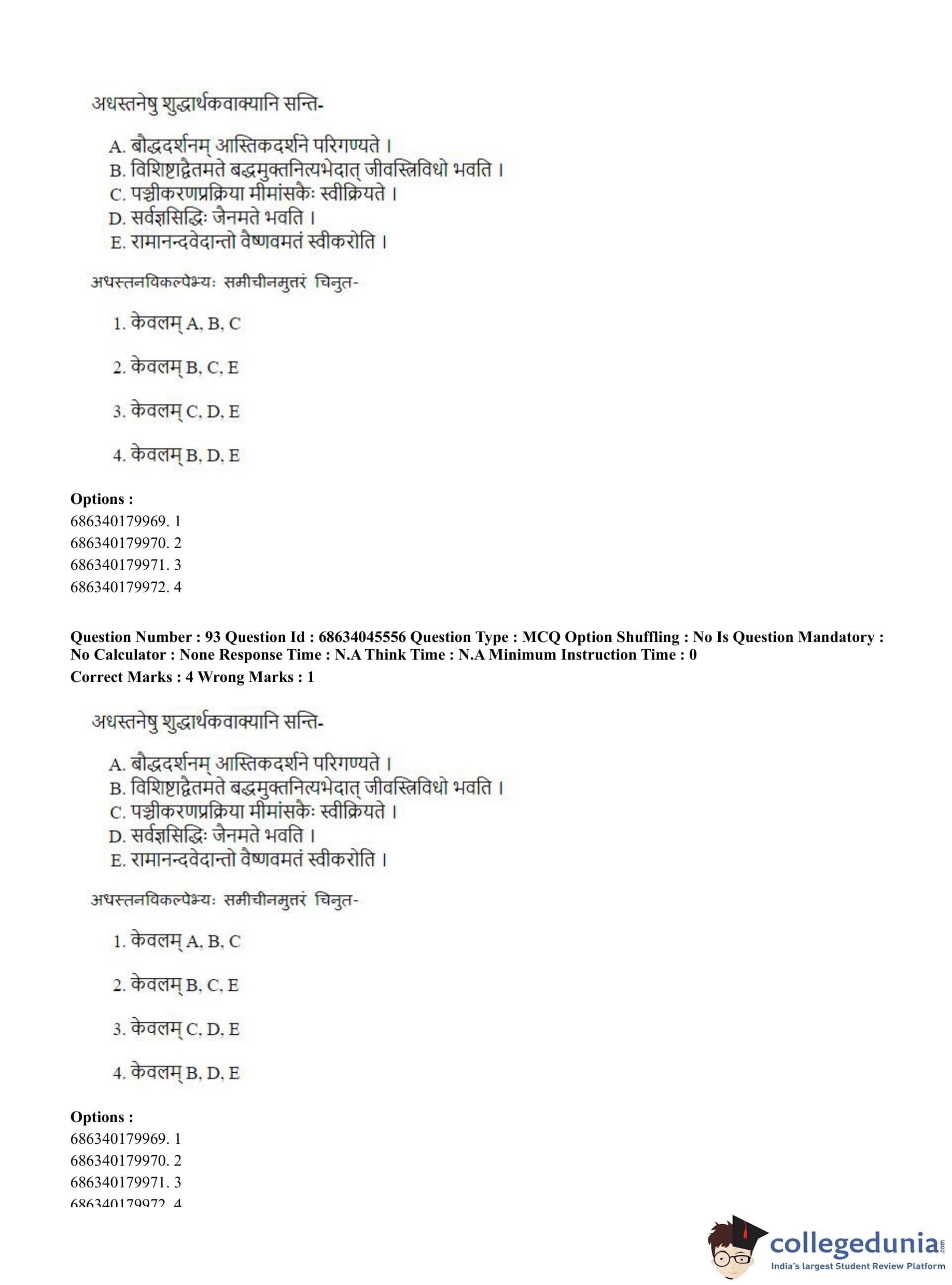| CUET PG Vedanta, Sarvadarshan, Mimansa,Nyaya Question Paper 2023 PDF | CUET PG Vedanta, Sarvadarshan, Mimansa,Nyaya Answer Key 2023 PDF |