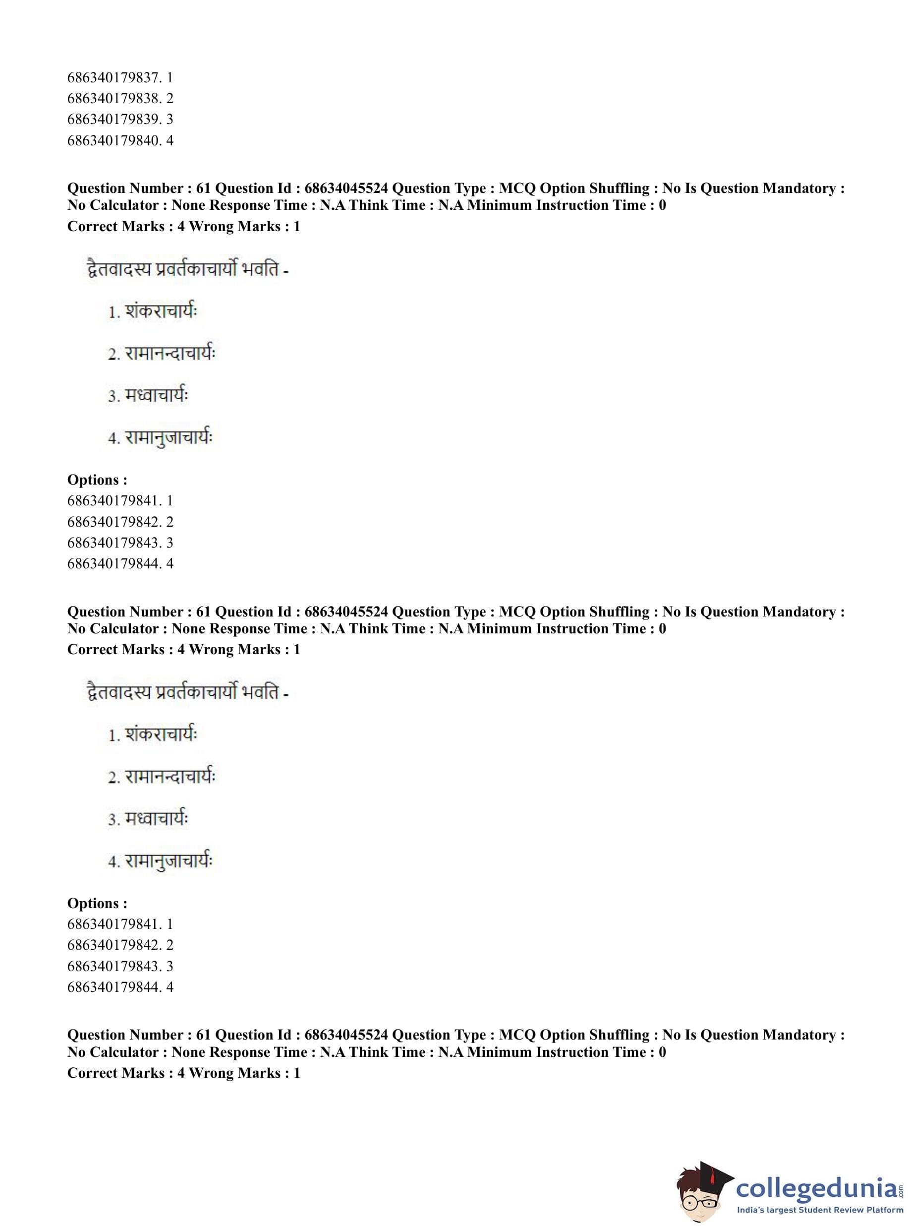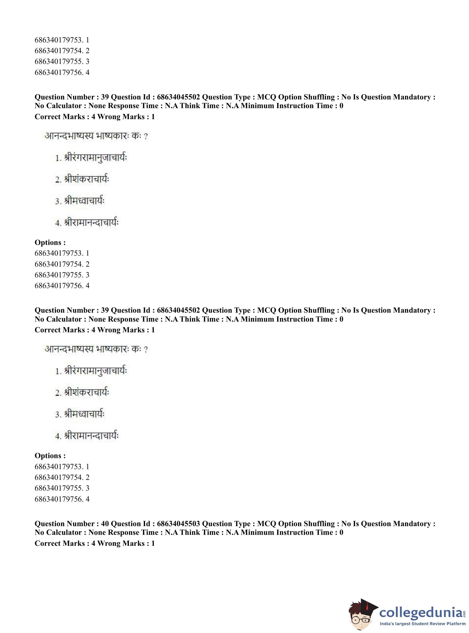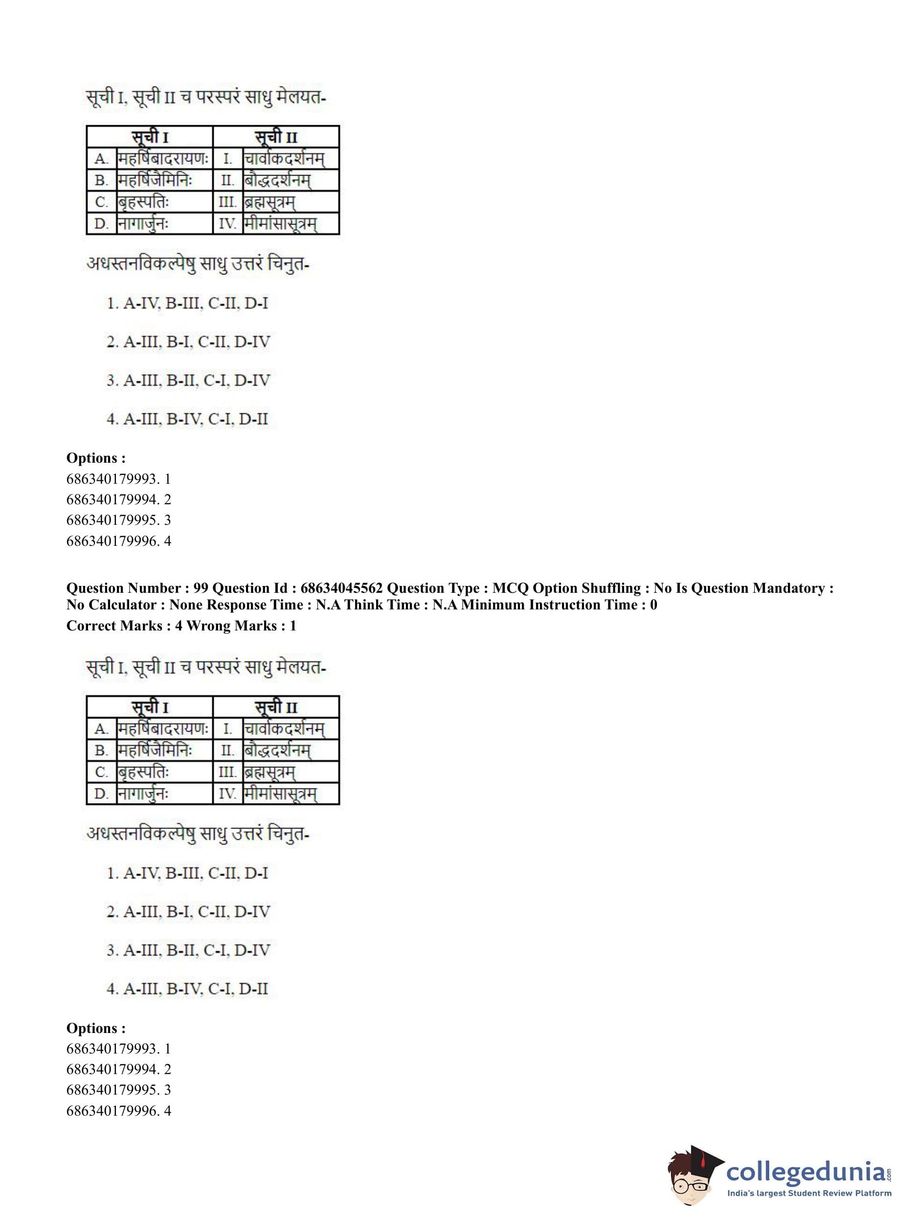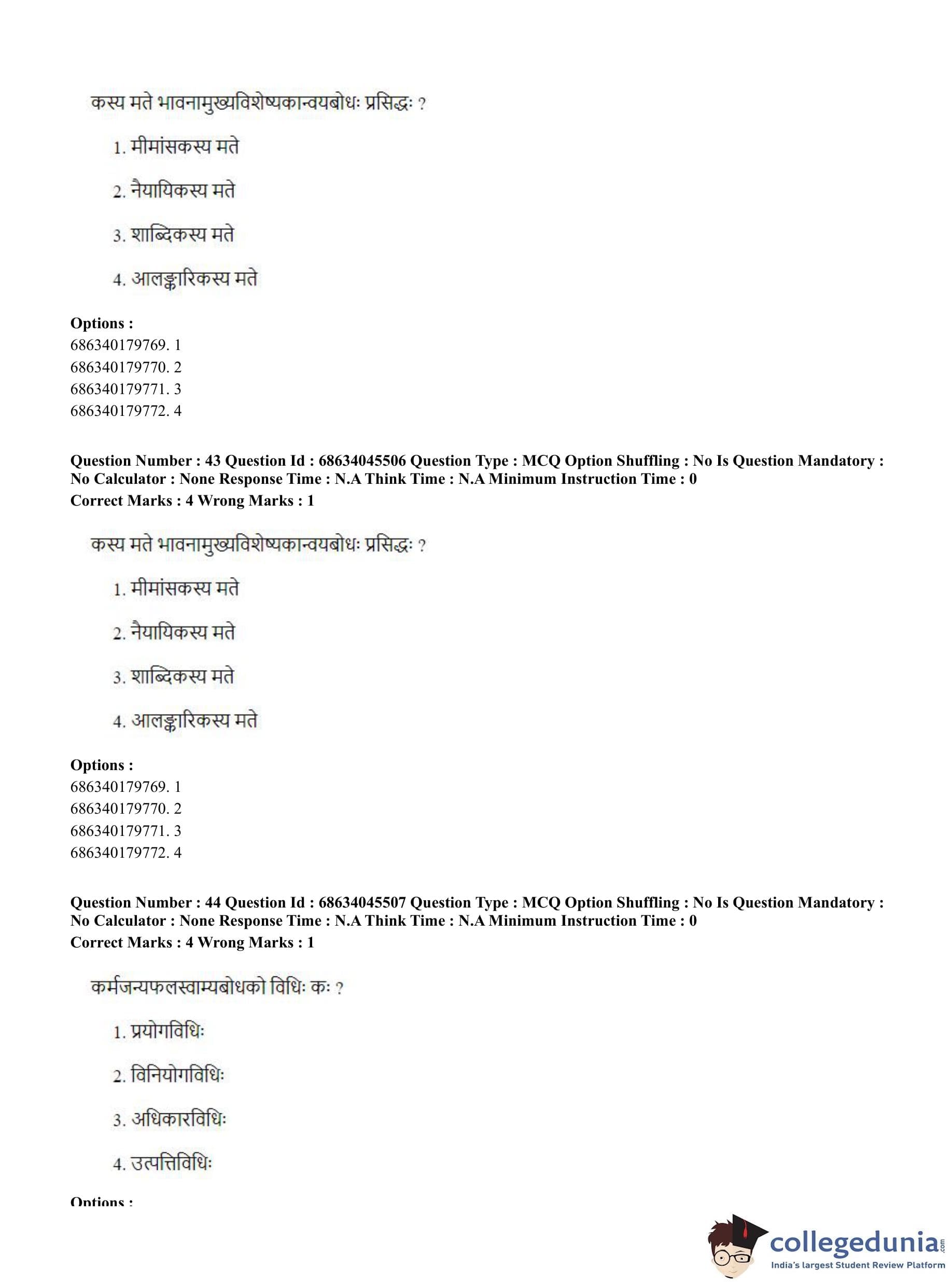 | CUET PG Vedanta, Sarvadarshan, Mimansa,Nyaya Question Paper 2023 PDF | CUET PG Vedanta, Sarvadarshan, Mimansa,Nyaya Answer Key 2023 PDF |