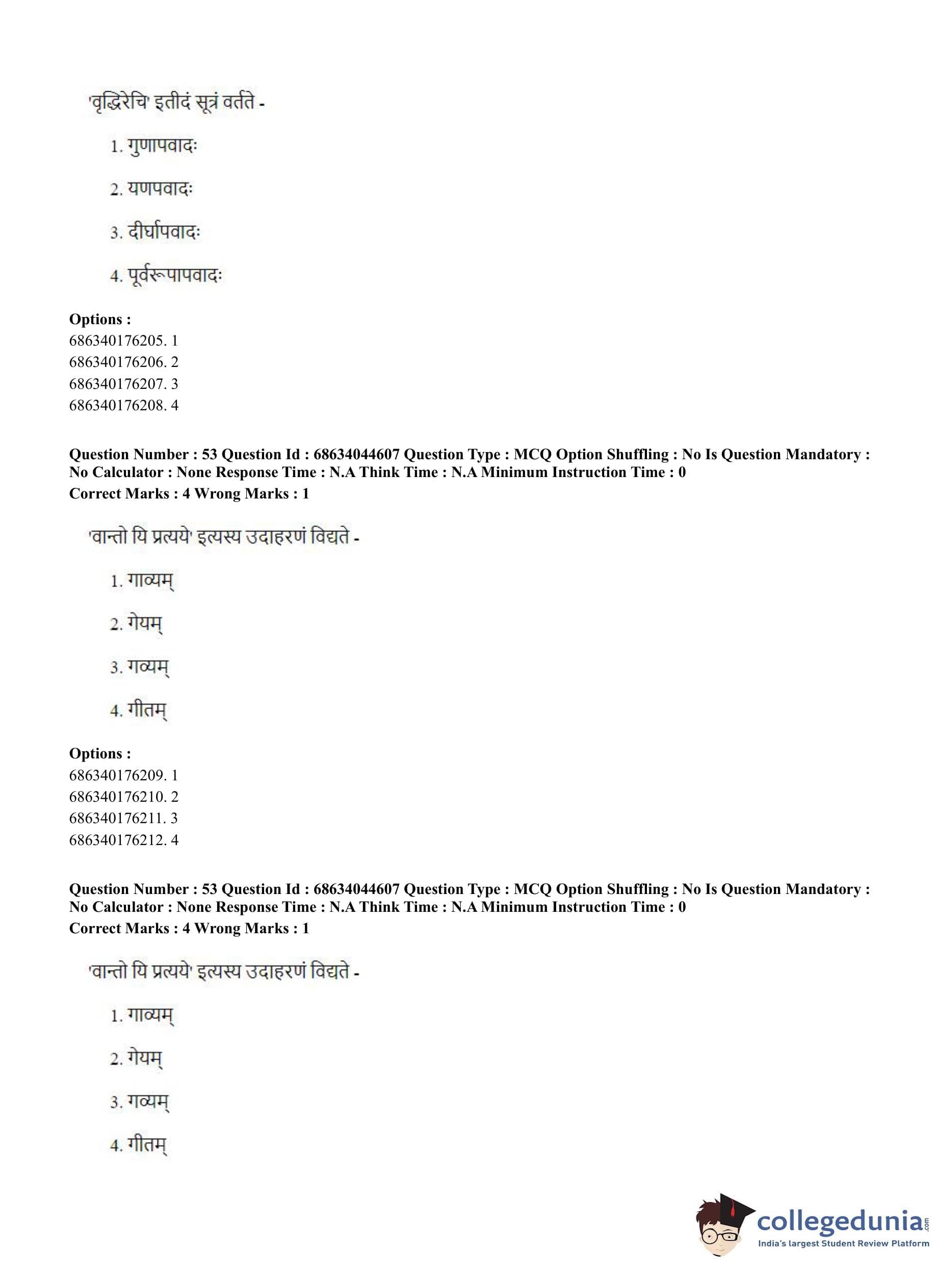 CUET PG 2023 Vyakaran Question Paper in Hindi (June 30 - Shift 3)