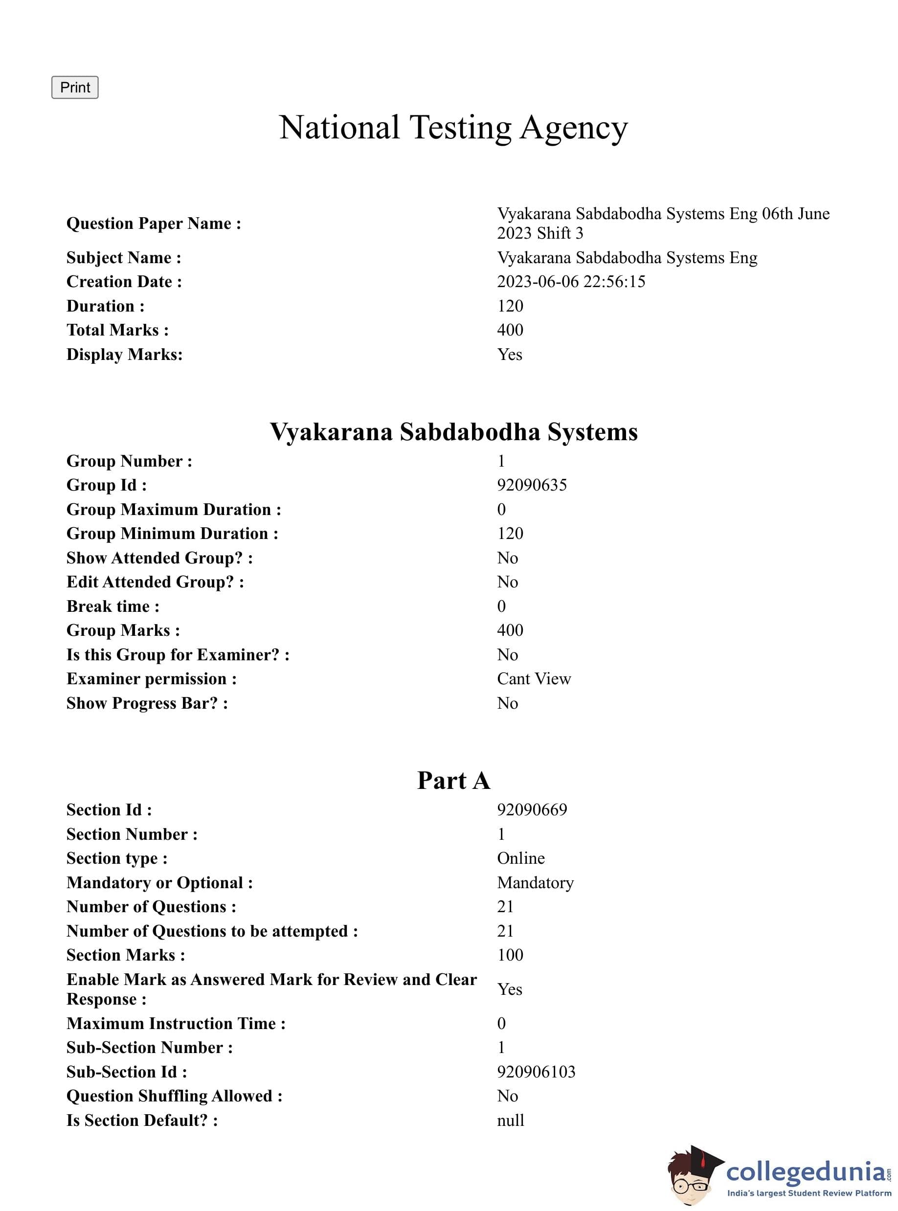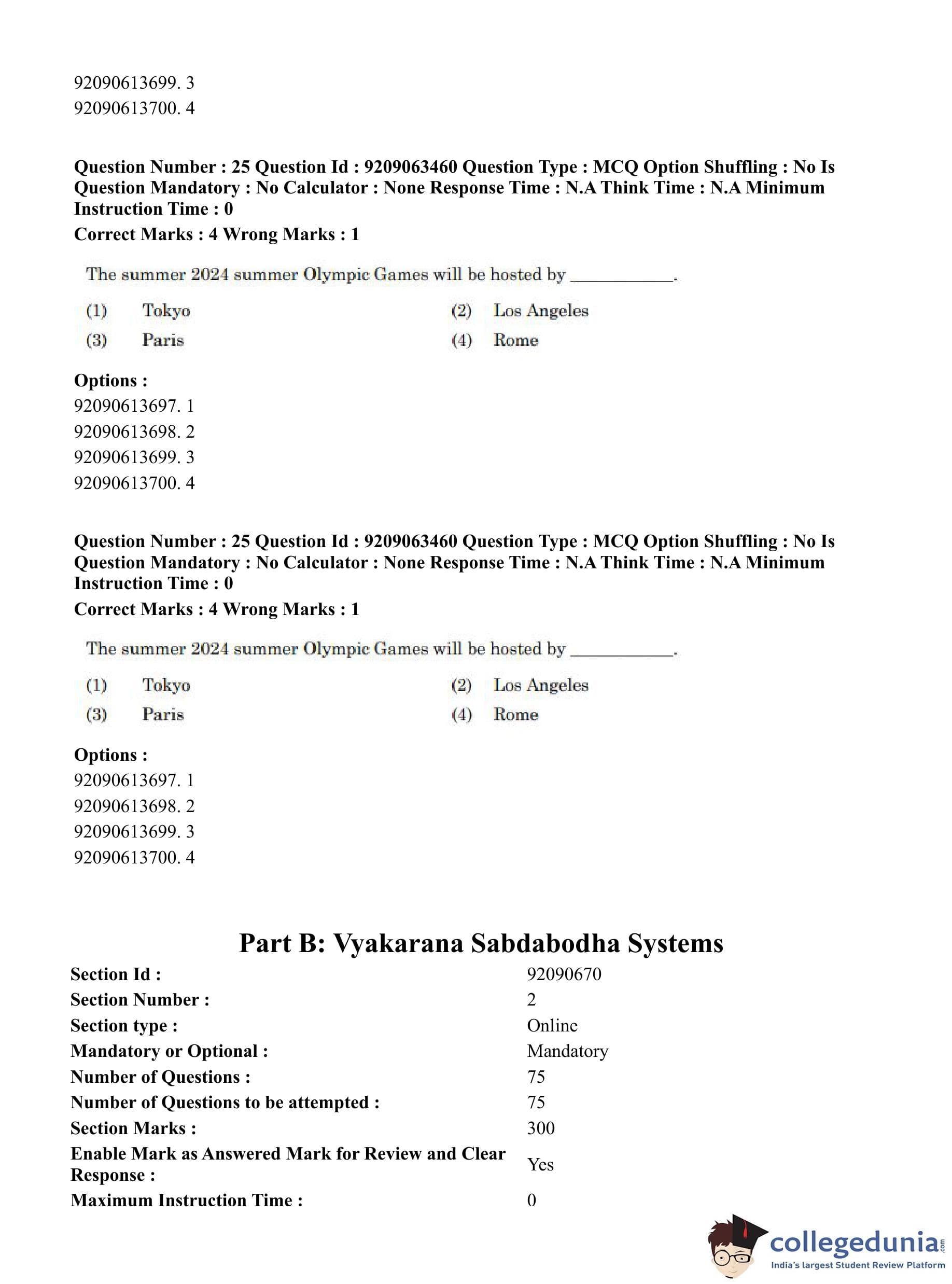 CUET PG 2023 Vyakarana and Sabdabodha Systems Question Paper with Answer Key PDF in English is available for download here. The exam was conducted by National Testing Agency (NTA) on June 6, 2023 in Shift 3. The question paper comprised a total of 100 questions divided into 2 sections.