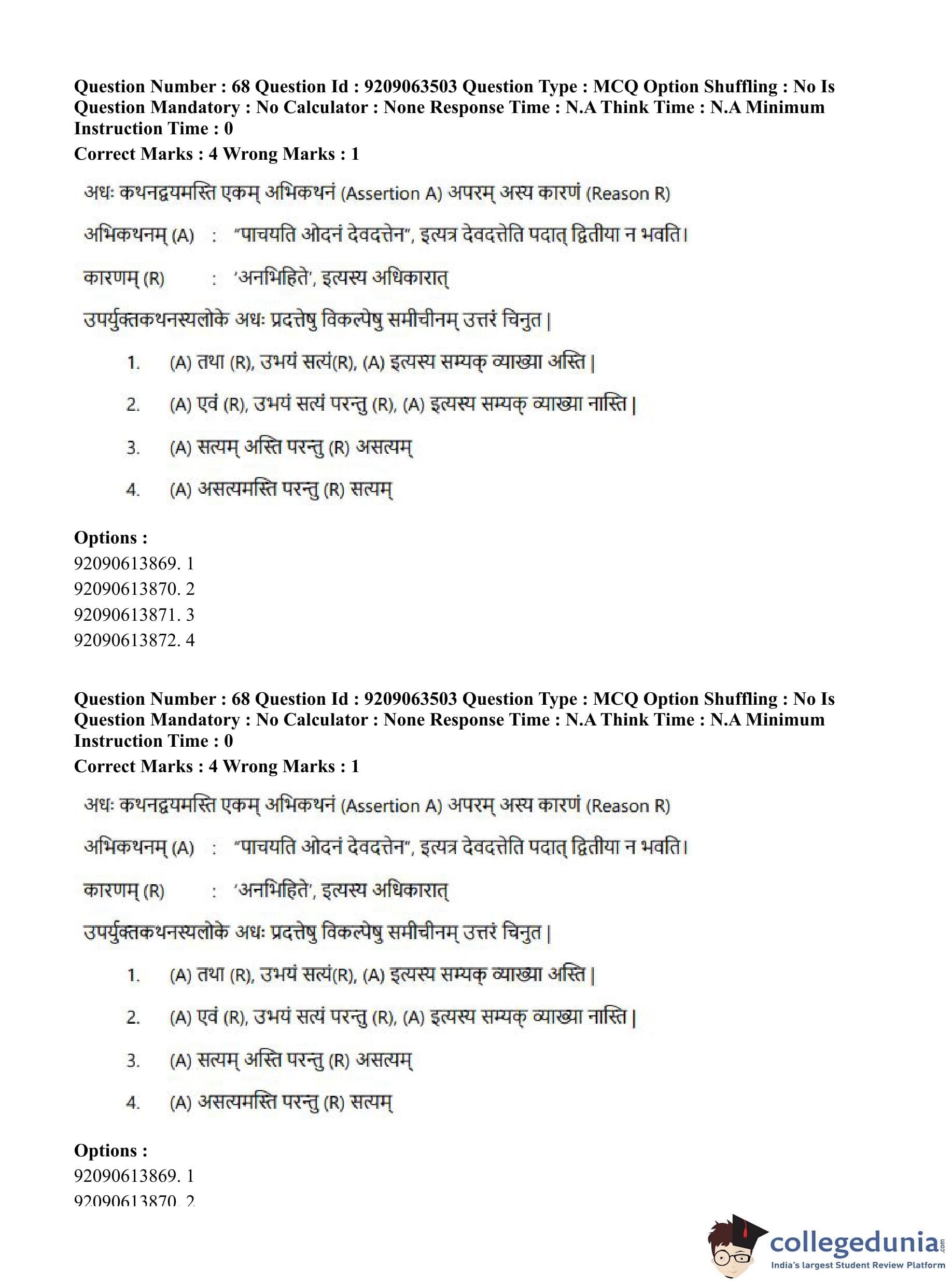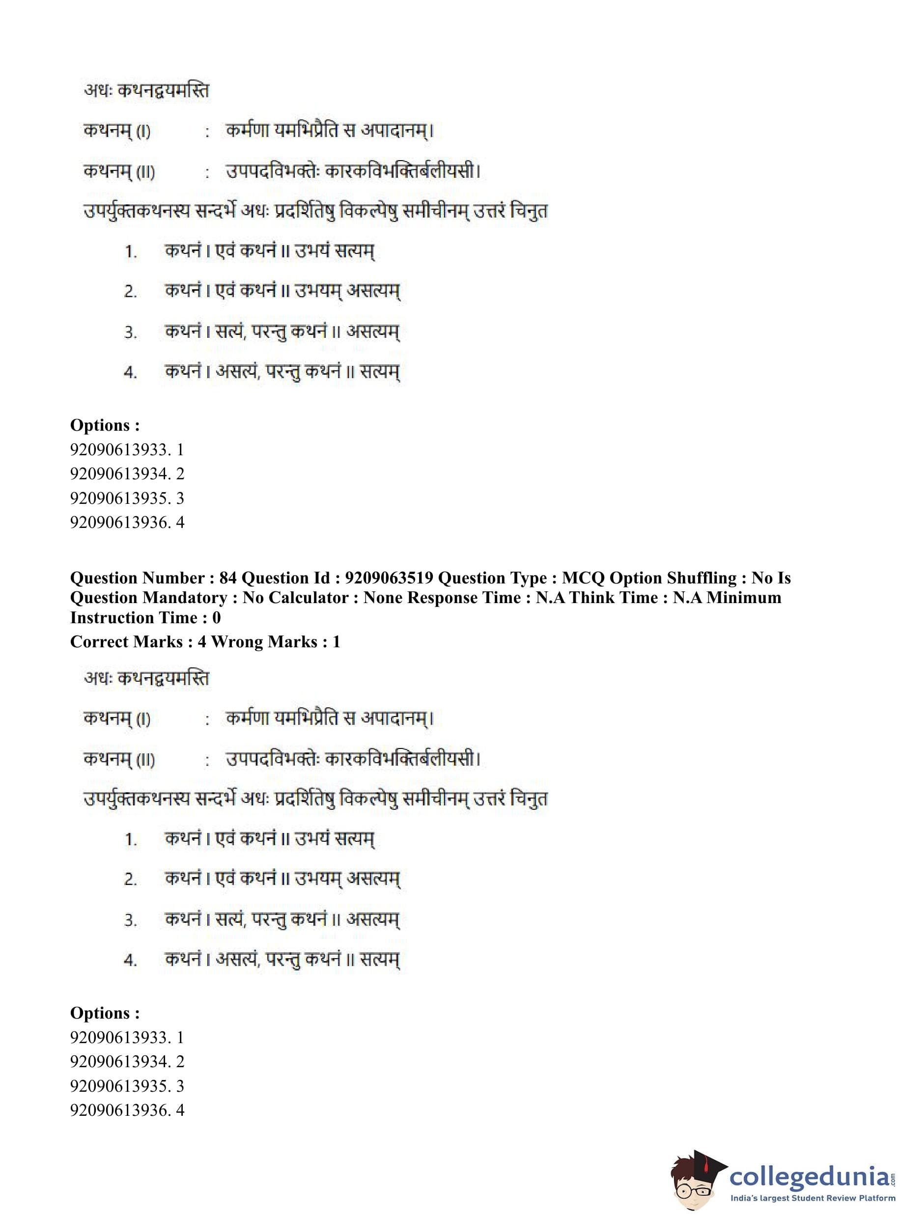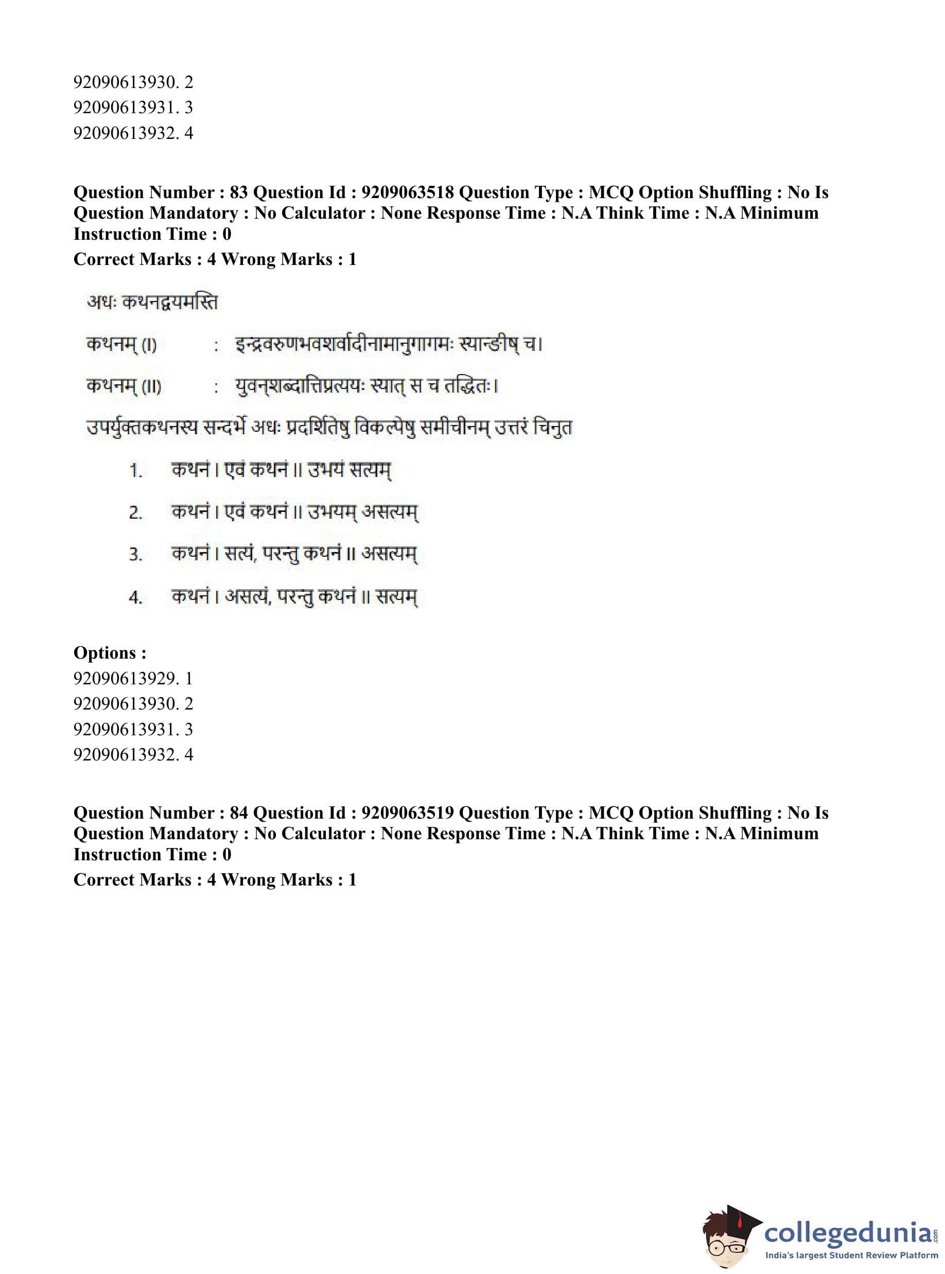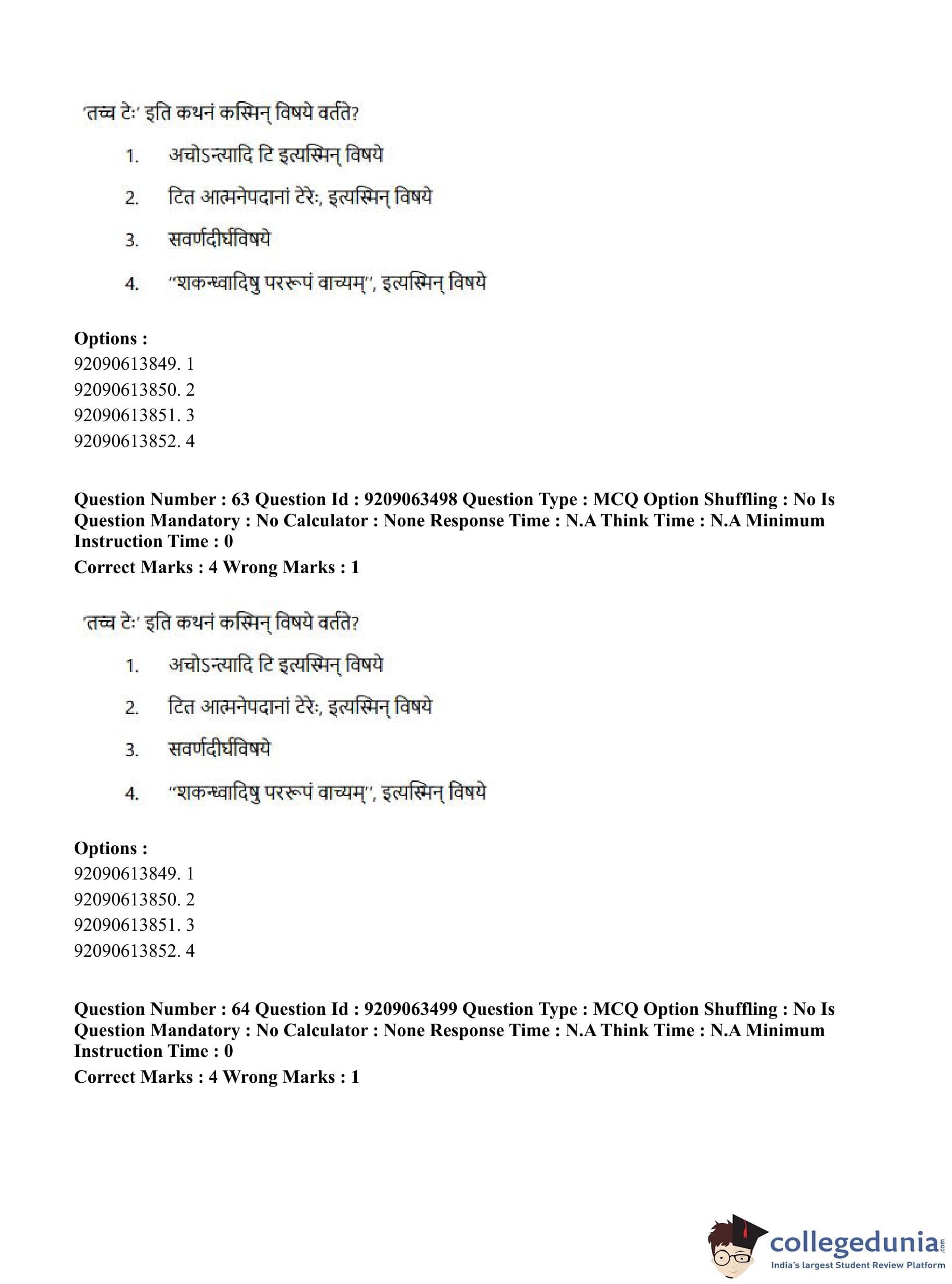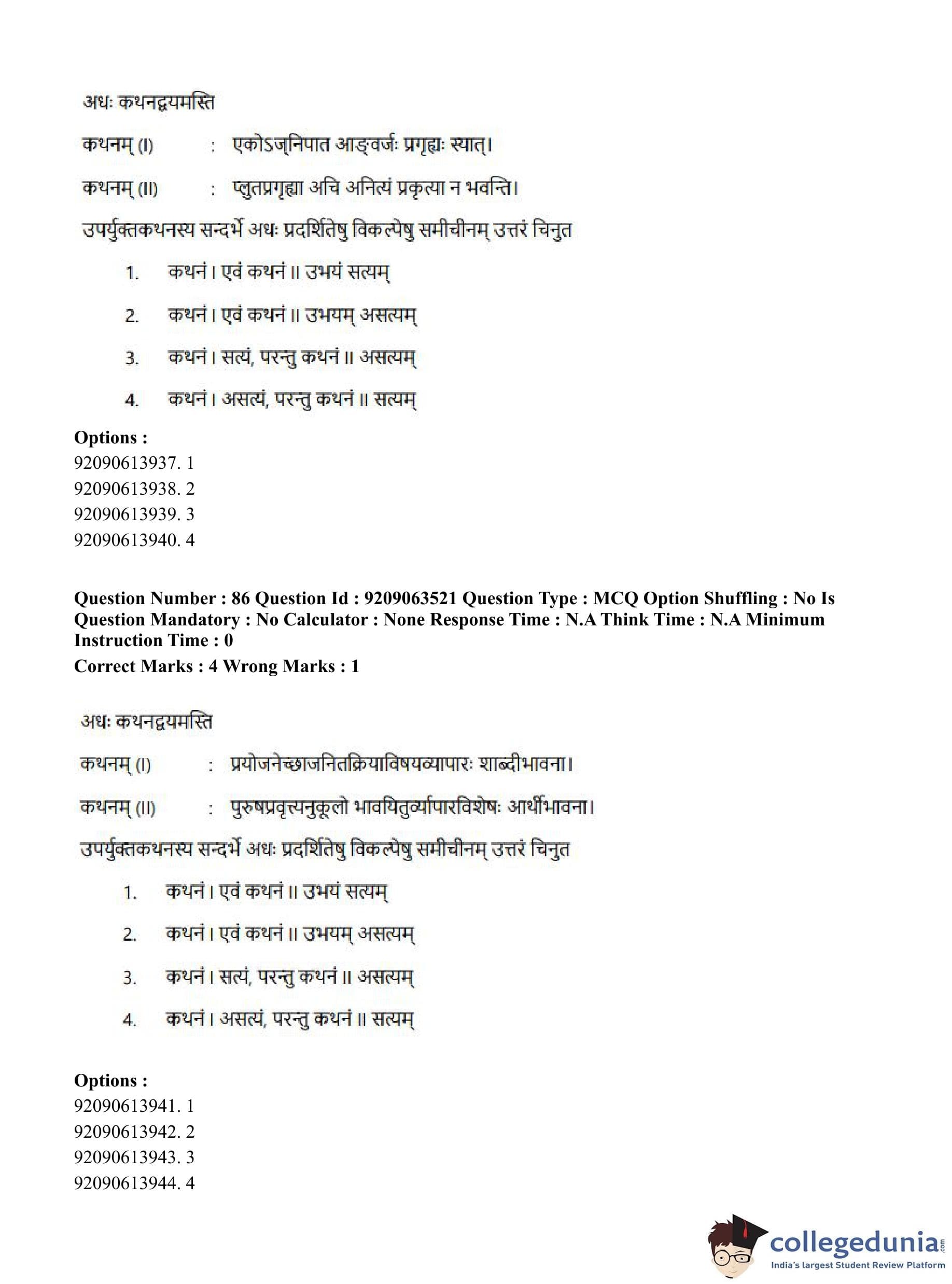 CUET PG 2023 Vyakarana and Sabdabodha Systems Question Paper in English (June 6 - Shift 3)