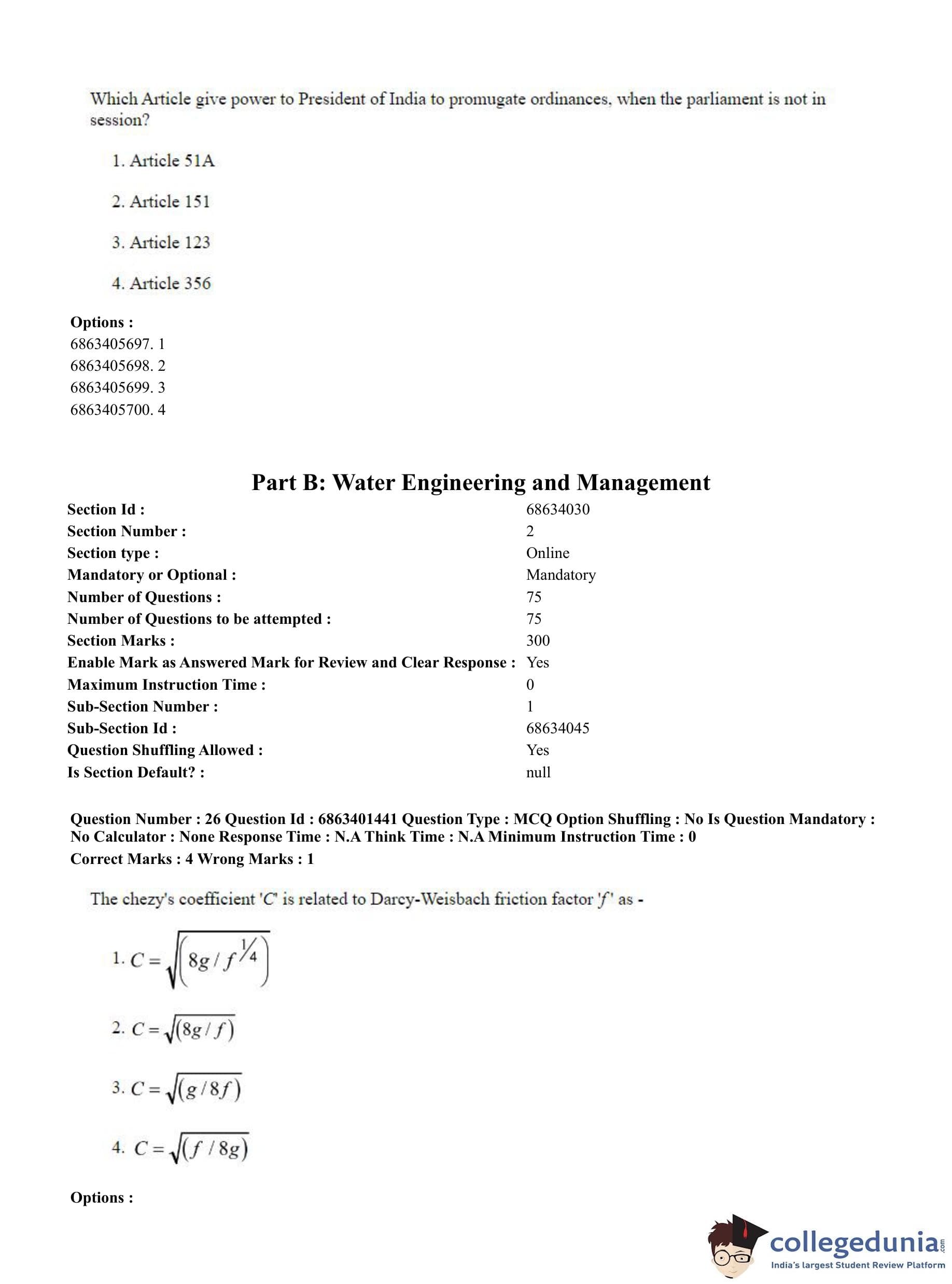 | CUET PG Water Engineering and Management Question Paper 2023 PDF | CUET PG Water Engineering and Management Answer Key 2023 PDF |
