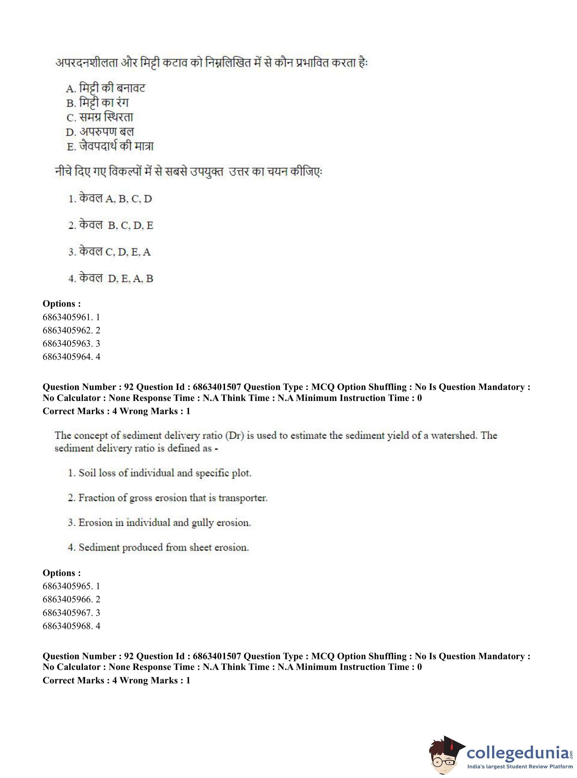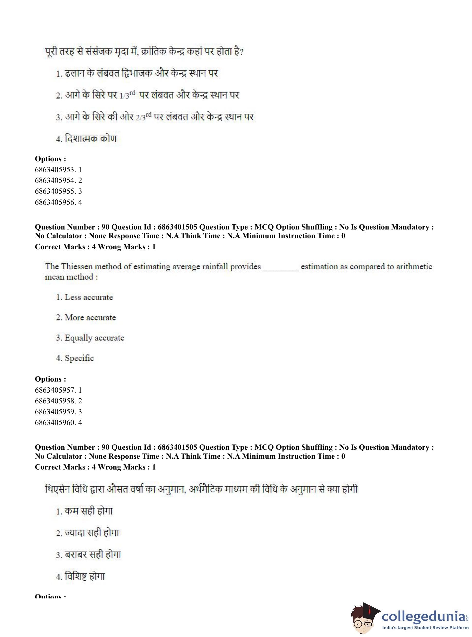 CUET PG 2023 Water Engineering and Management Question Paper in English (June 5 - Shift 2)