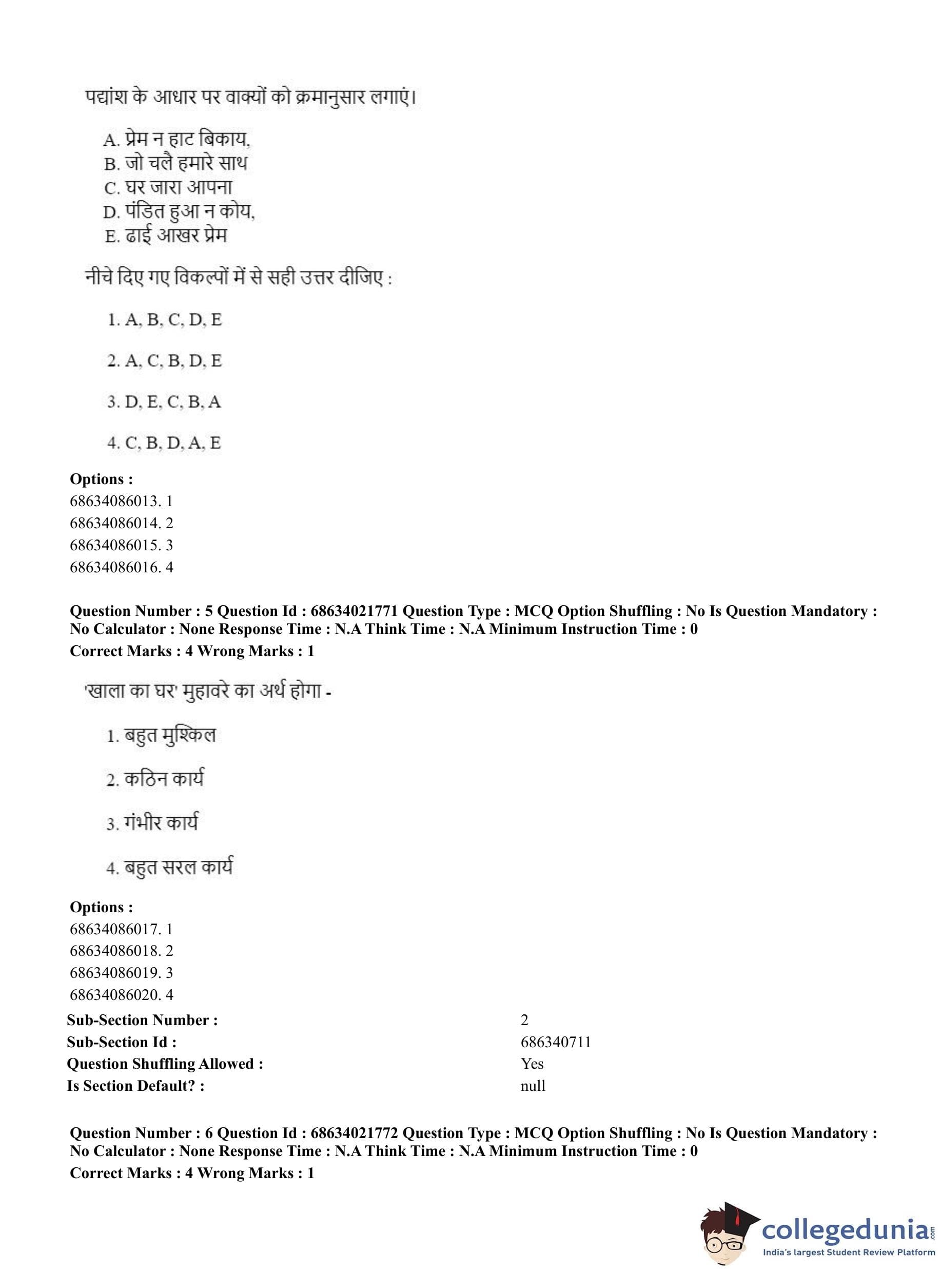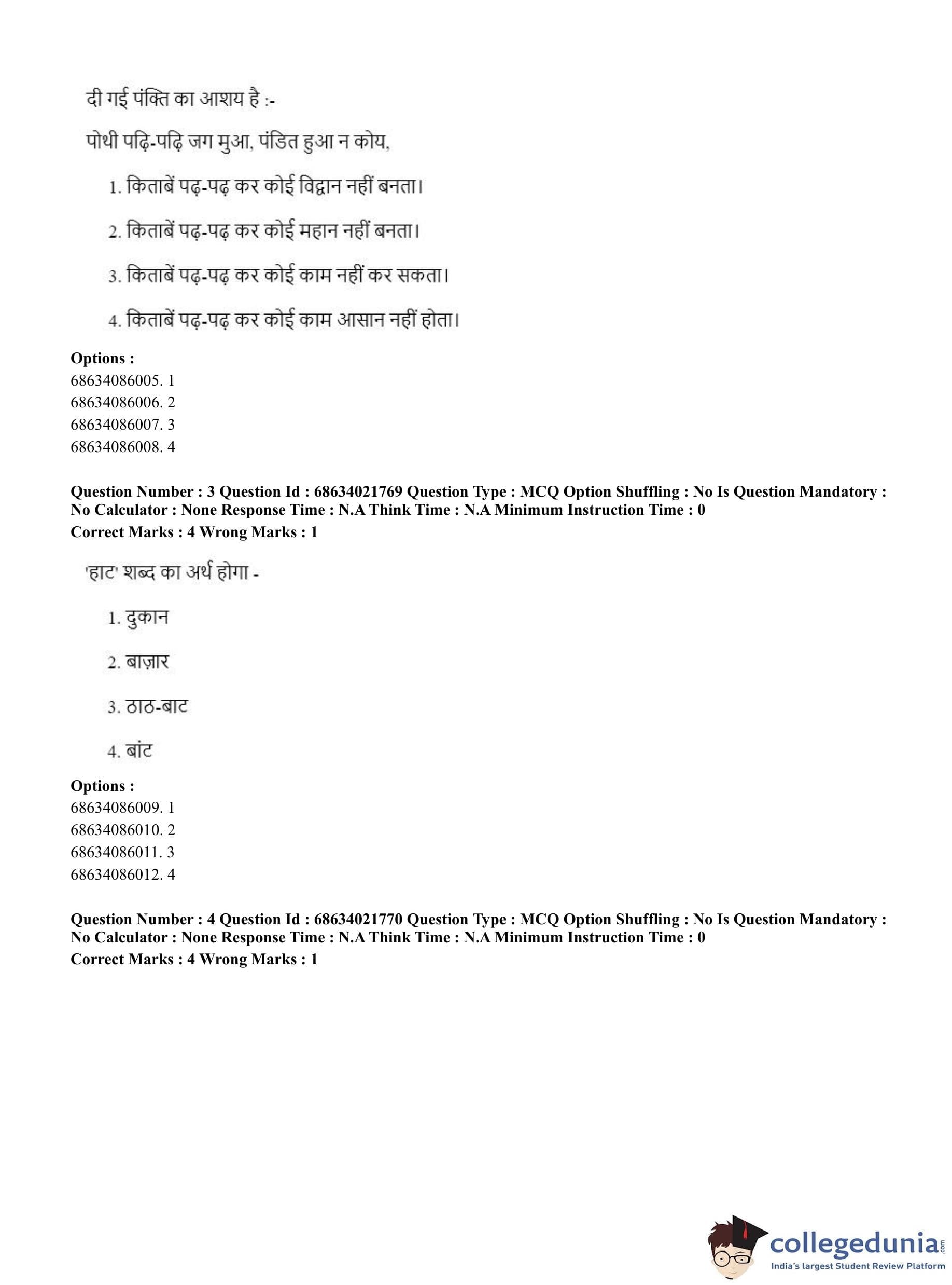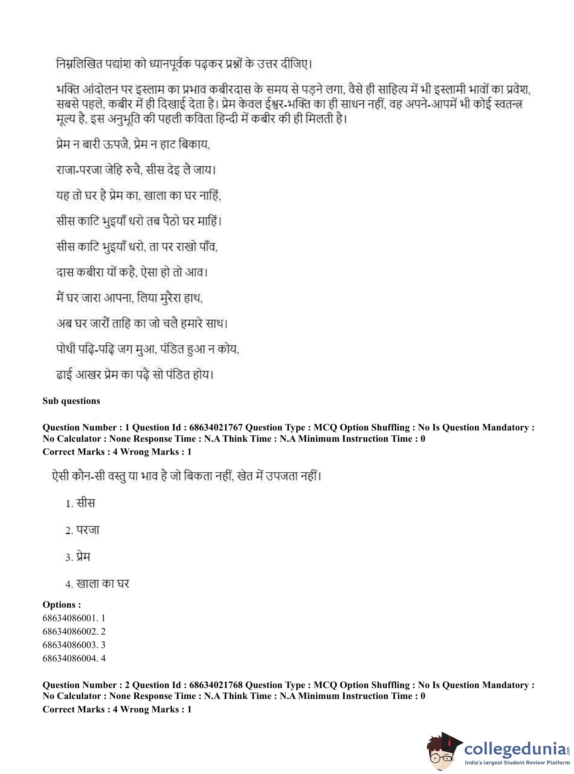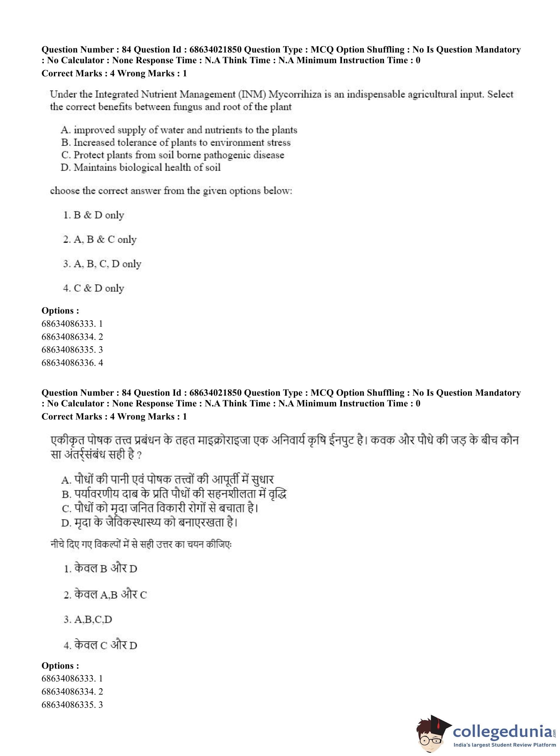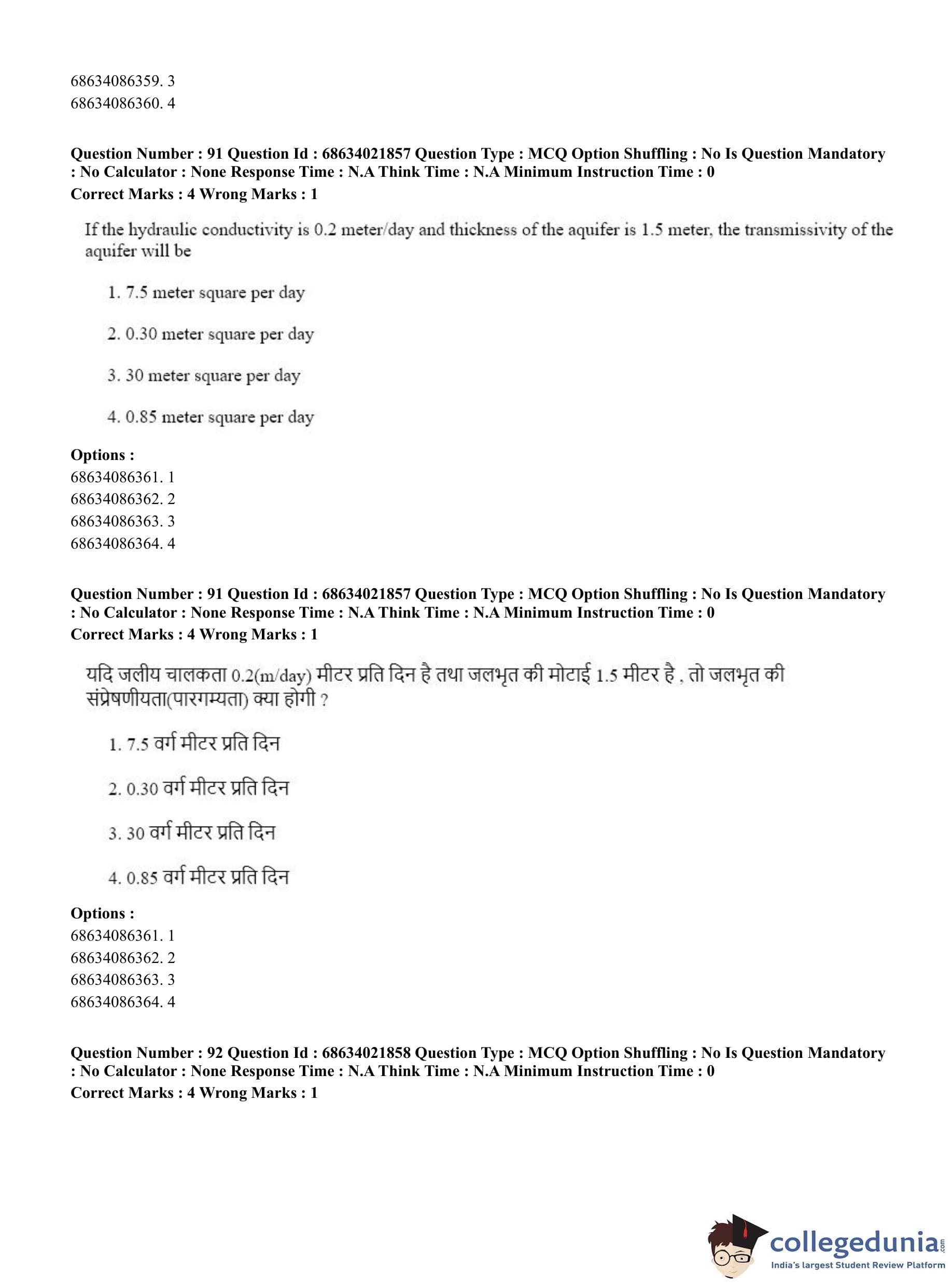 CUET PG 2023 Water Engineering and Management Question Paper in Hindi (June 15 - Shift 2)