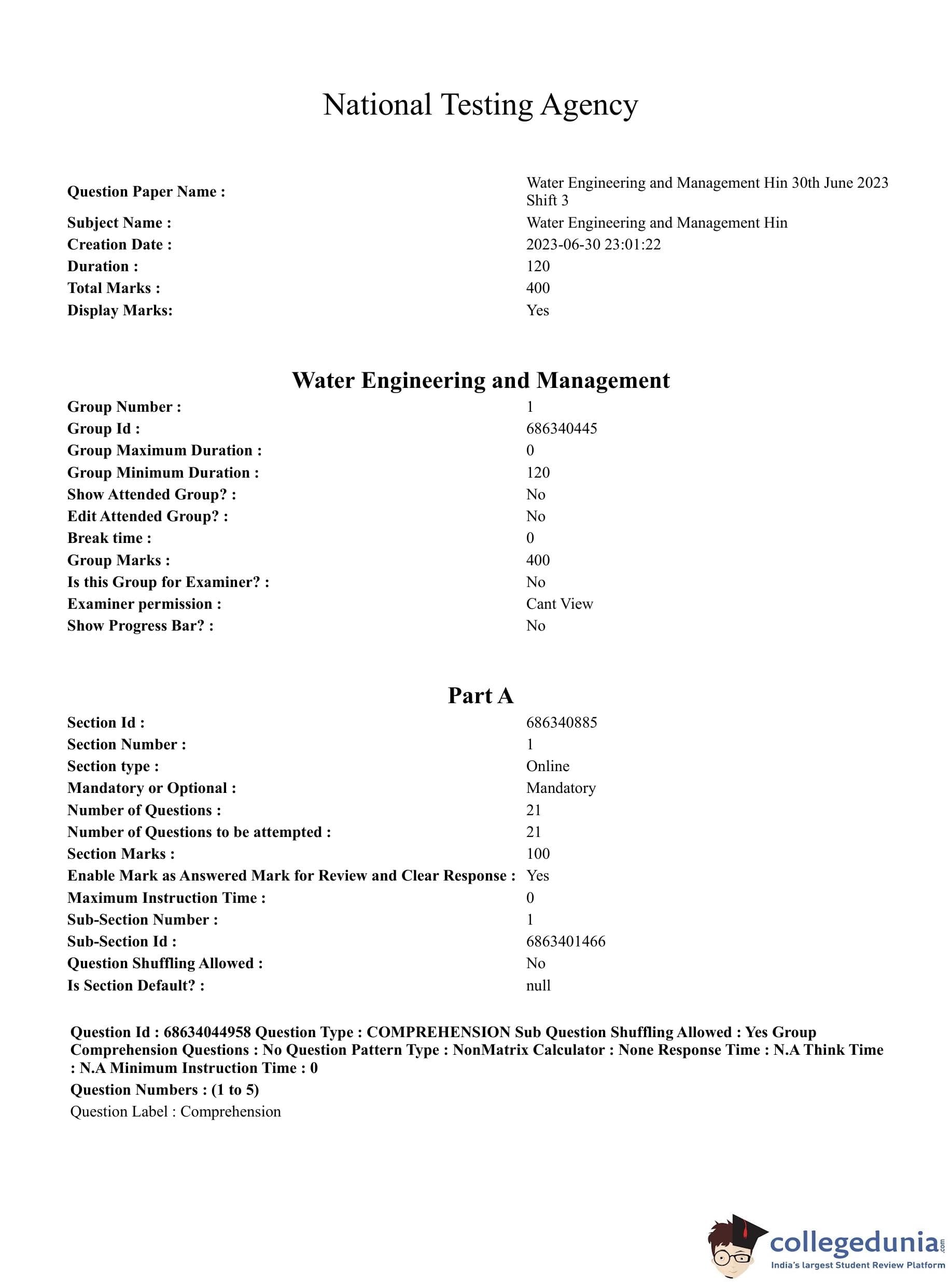 | CUET PG Water Engineering and Management Question Paper 2023 PDF | CUET PG Water Engineering and Management Answer Key 2023 PDF |