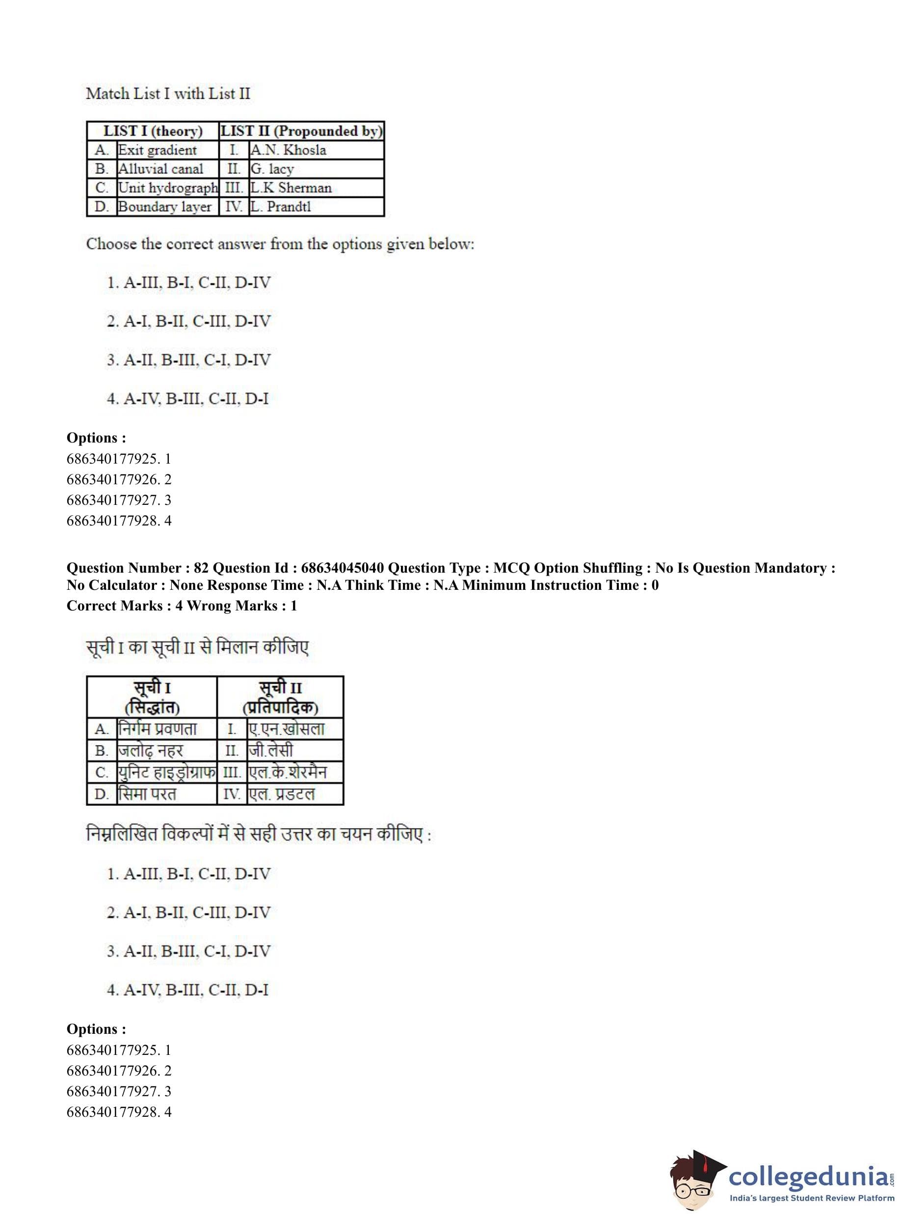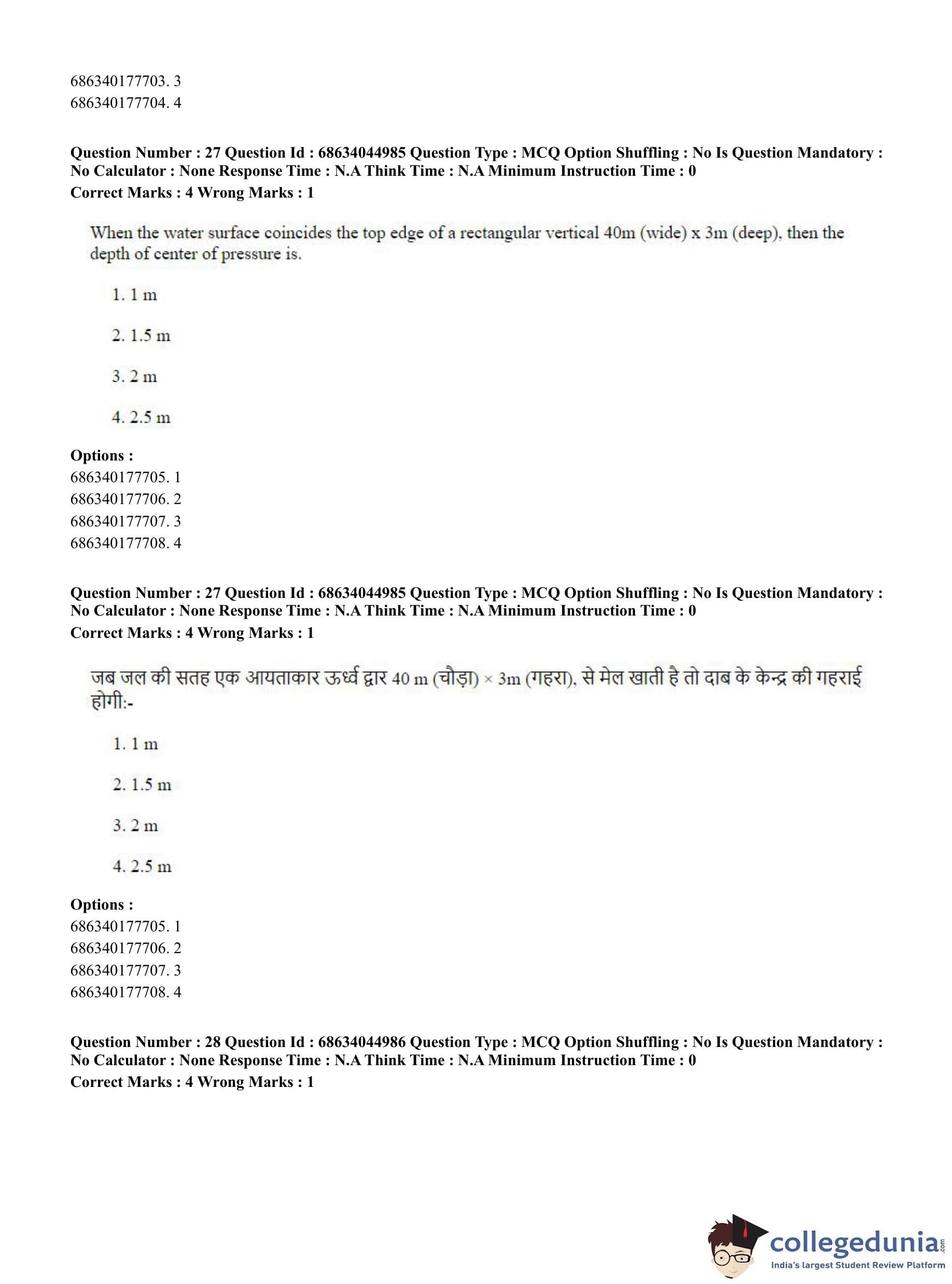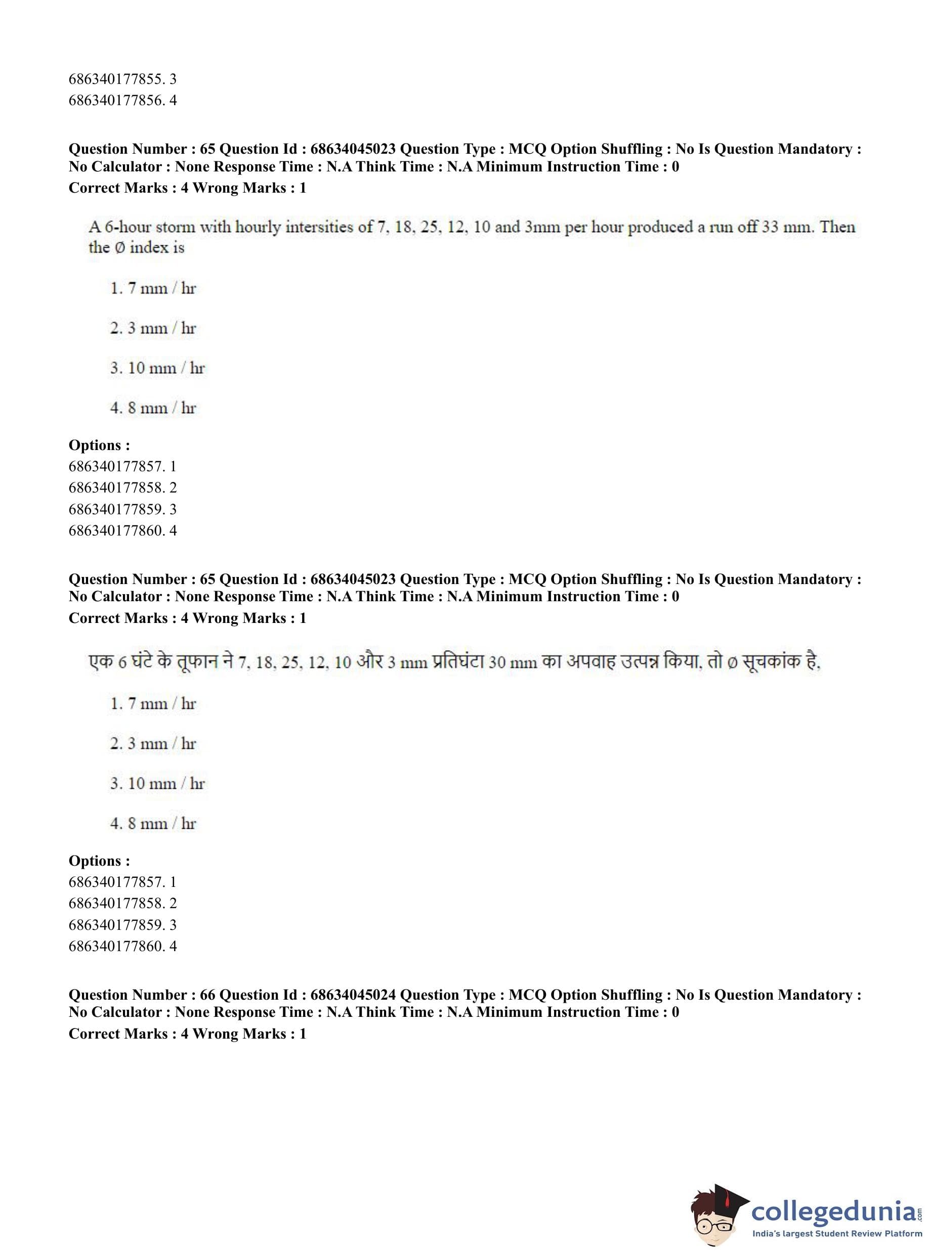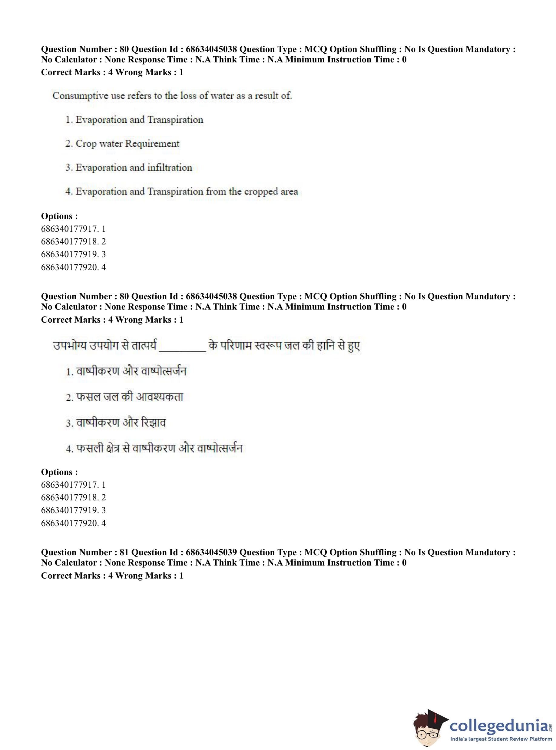 CUET PG 2023 Water Engineering and Management Question Paper in Hindi (June 30 - Shift 3)