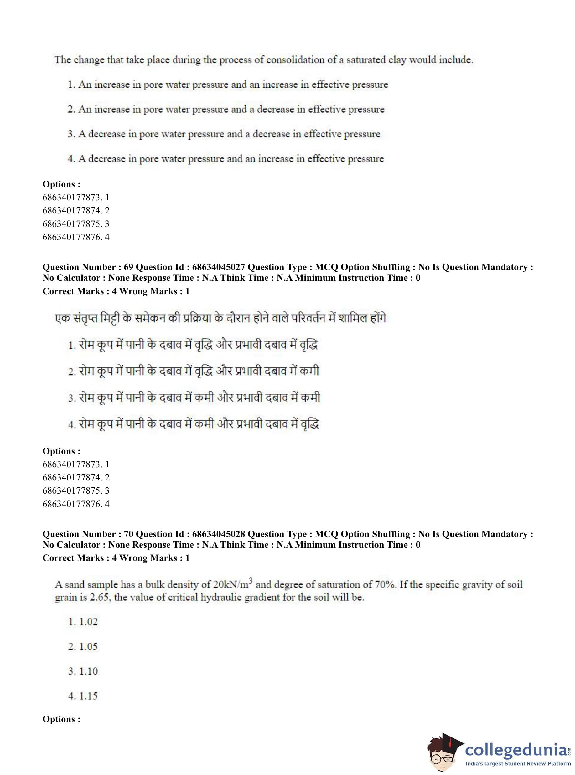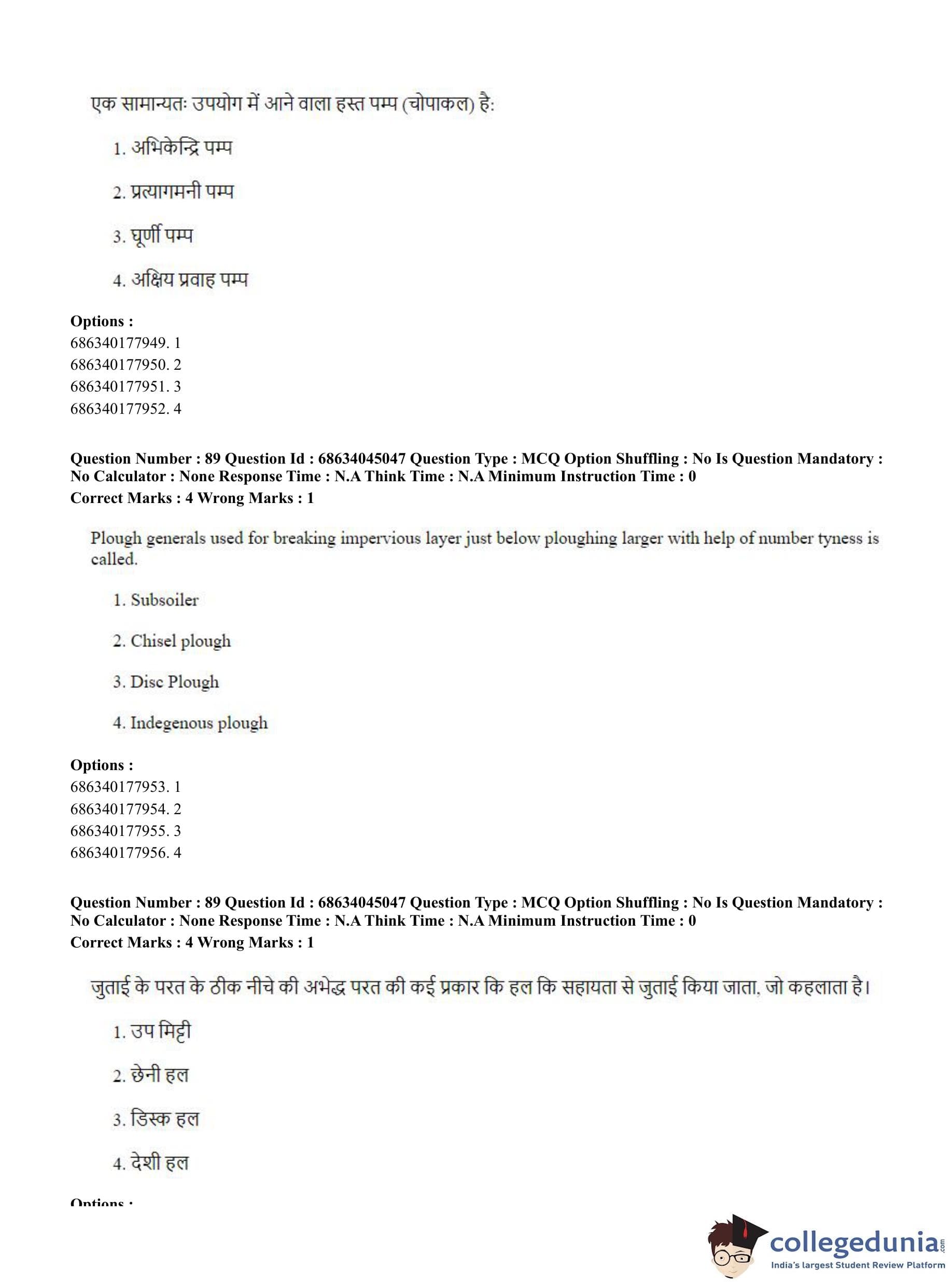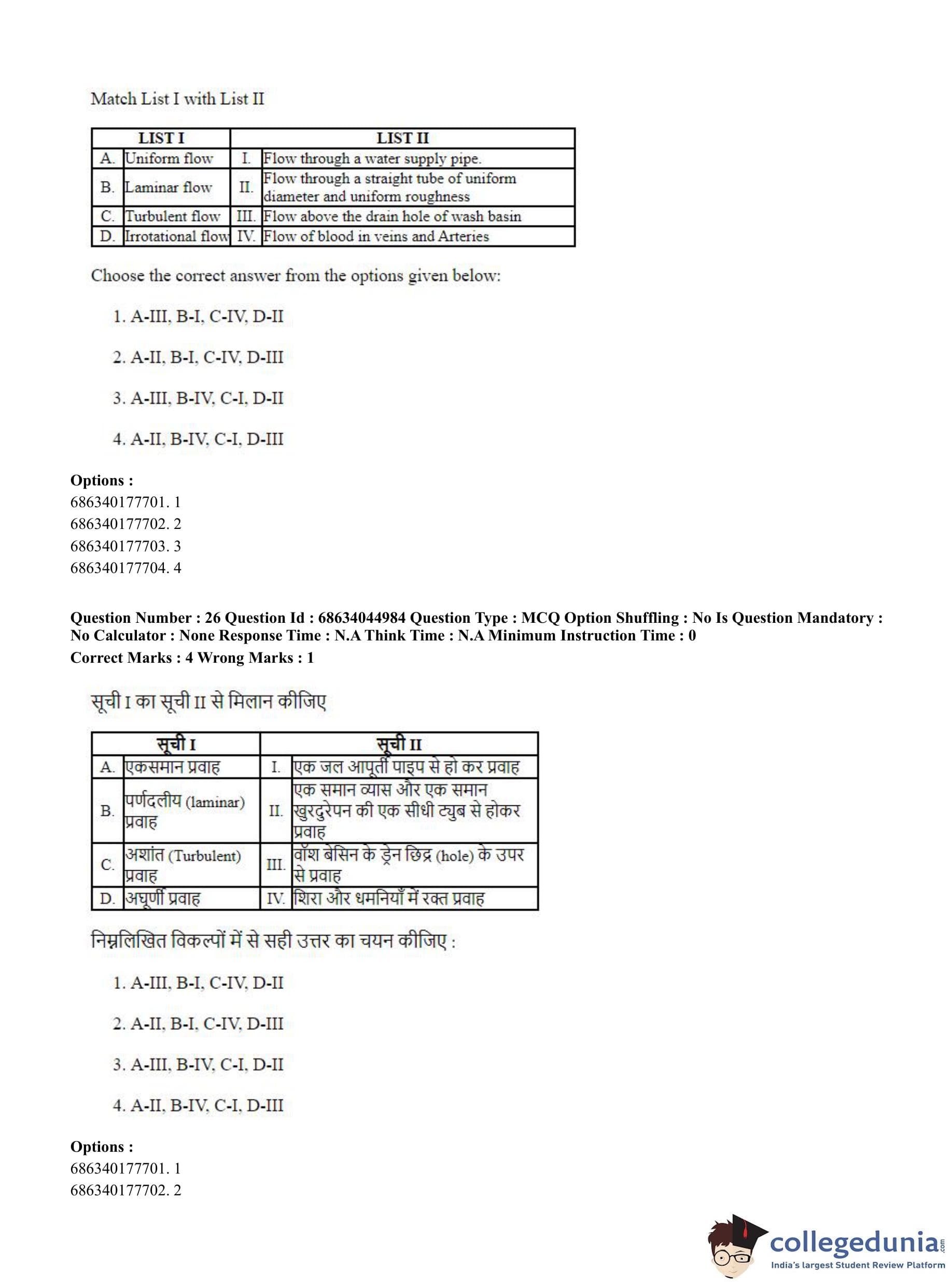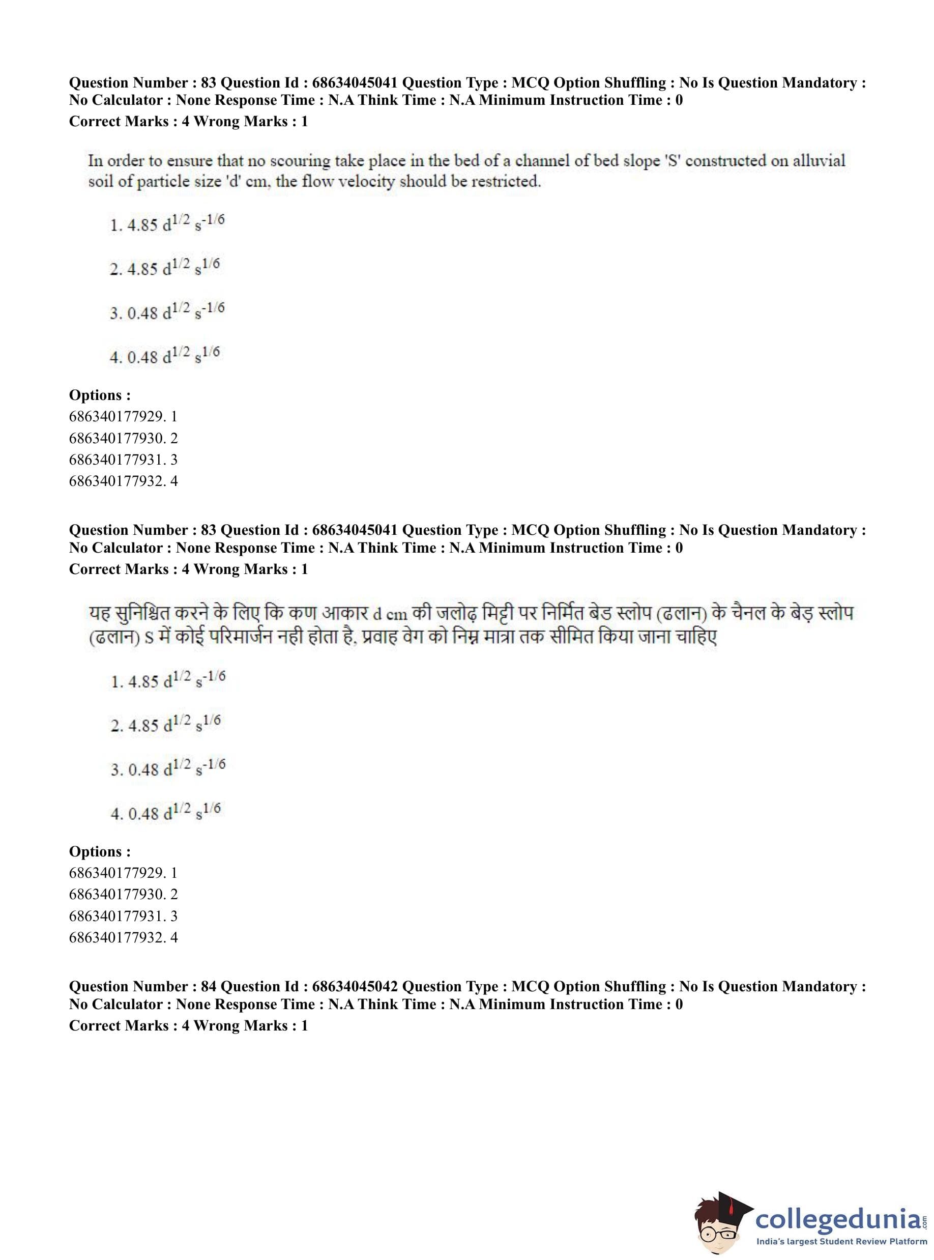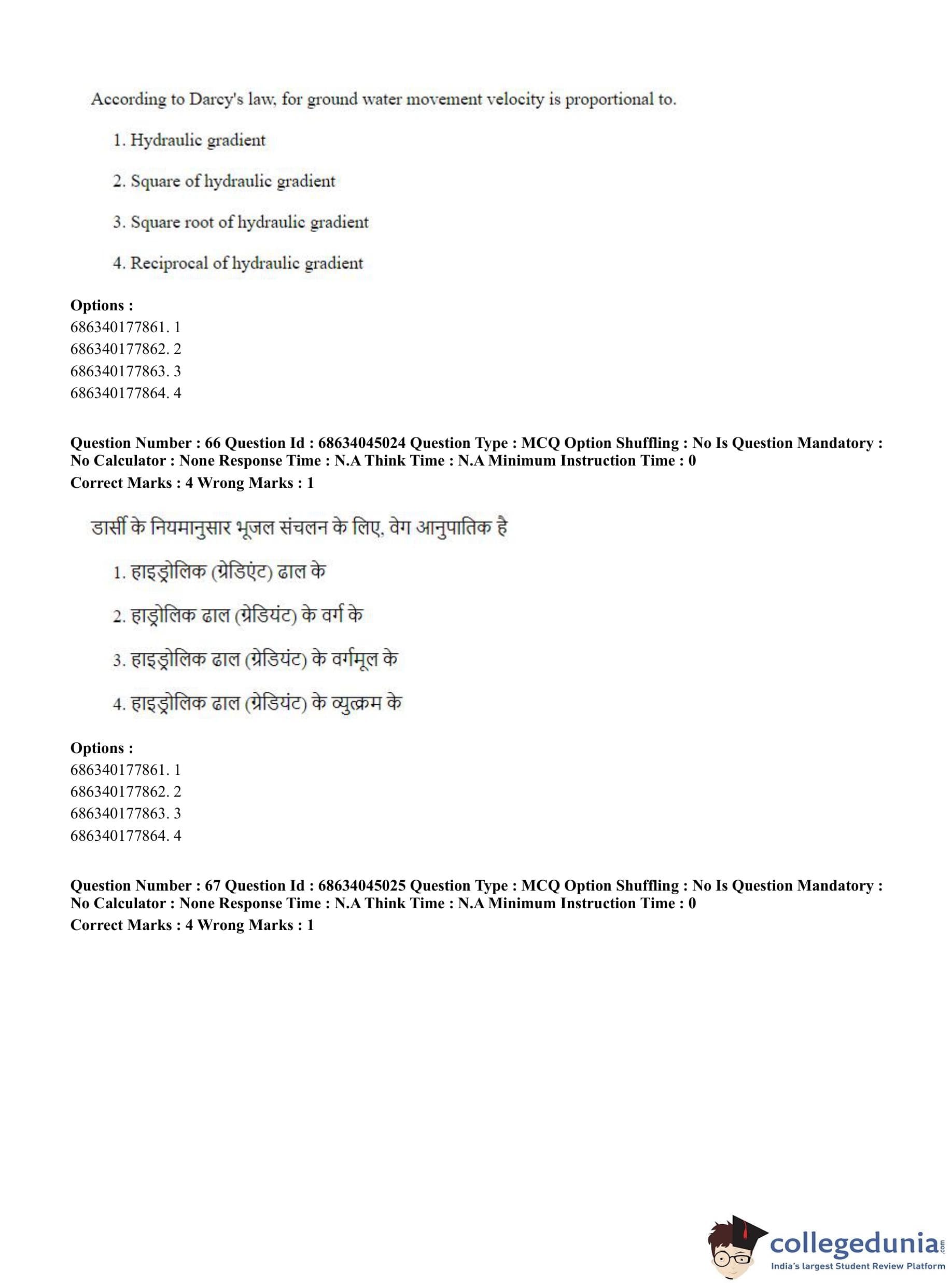 CUET PG 2023 Water Engineering and Management Question Paper in Hindi (June 30 - Shift 3)