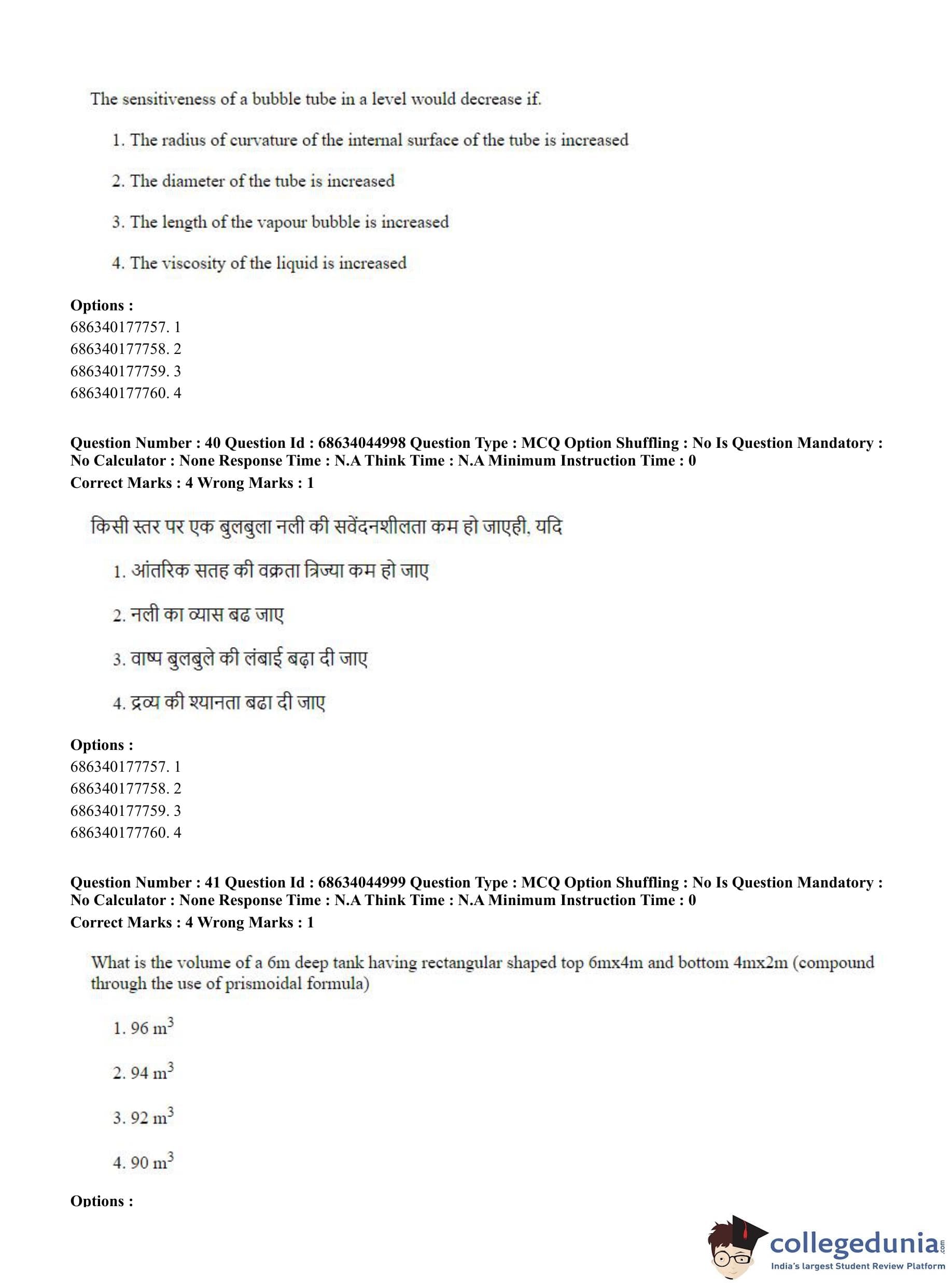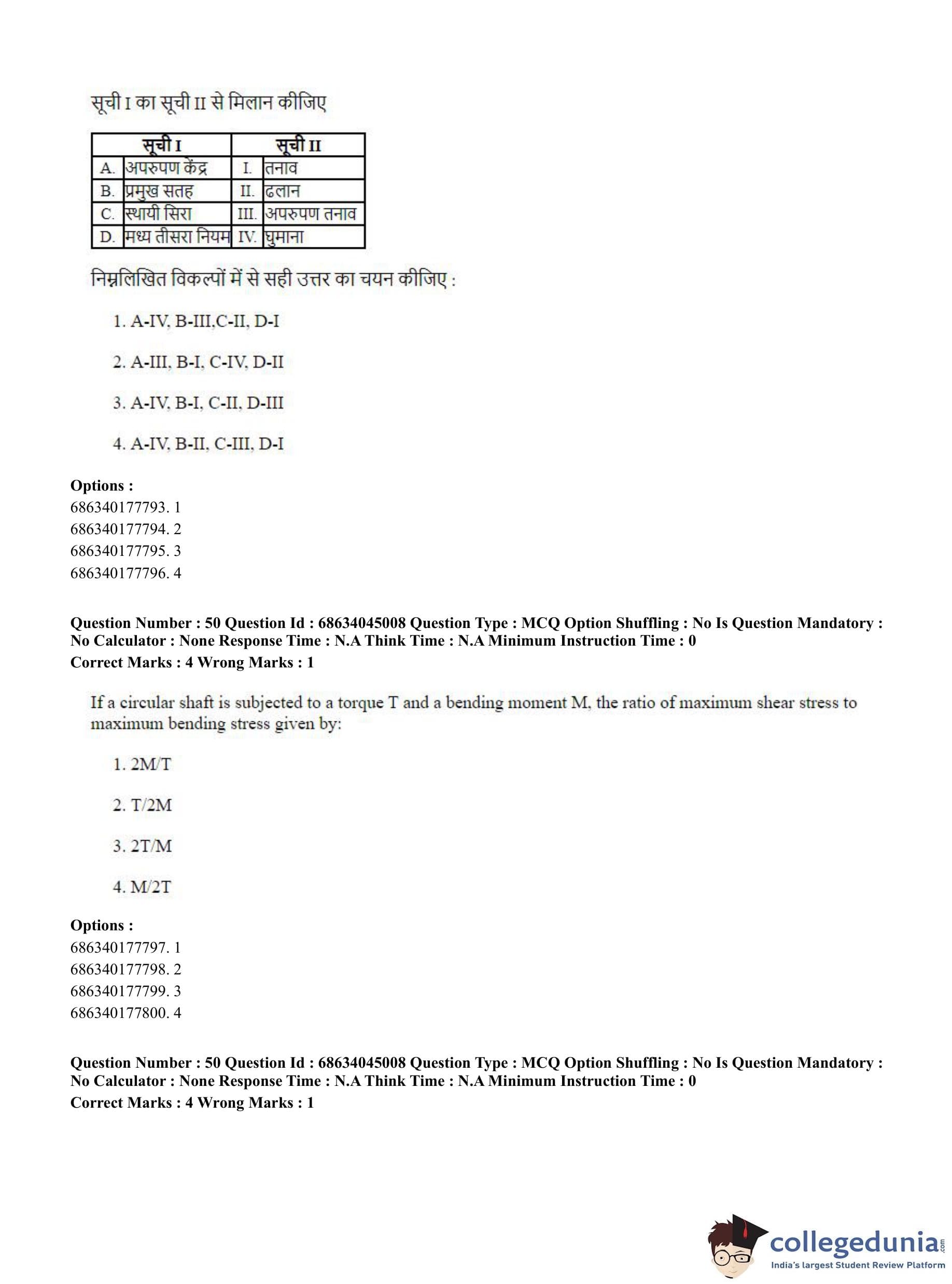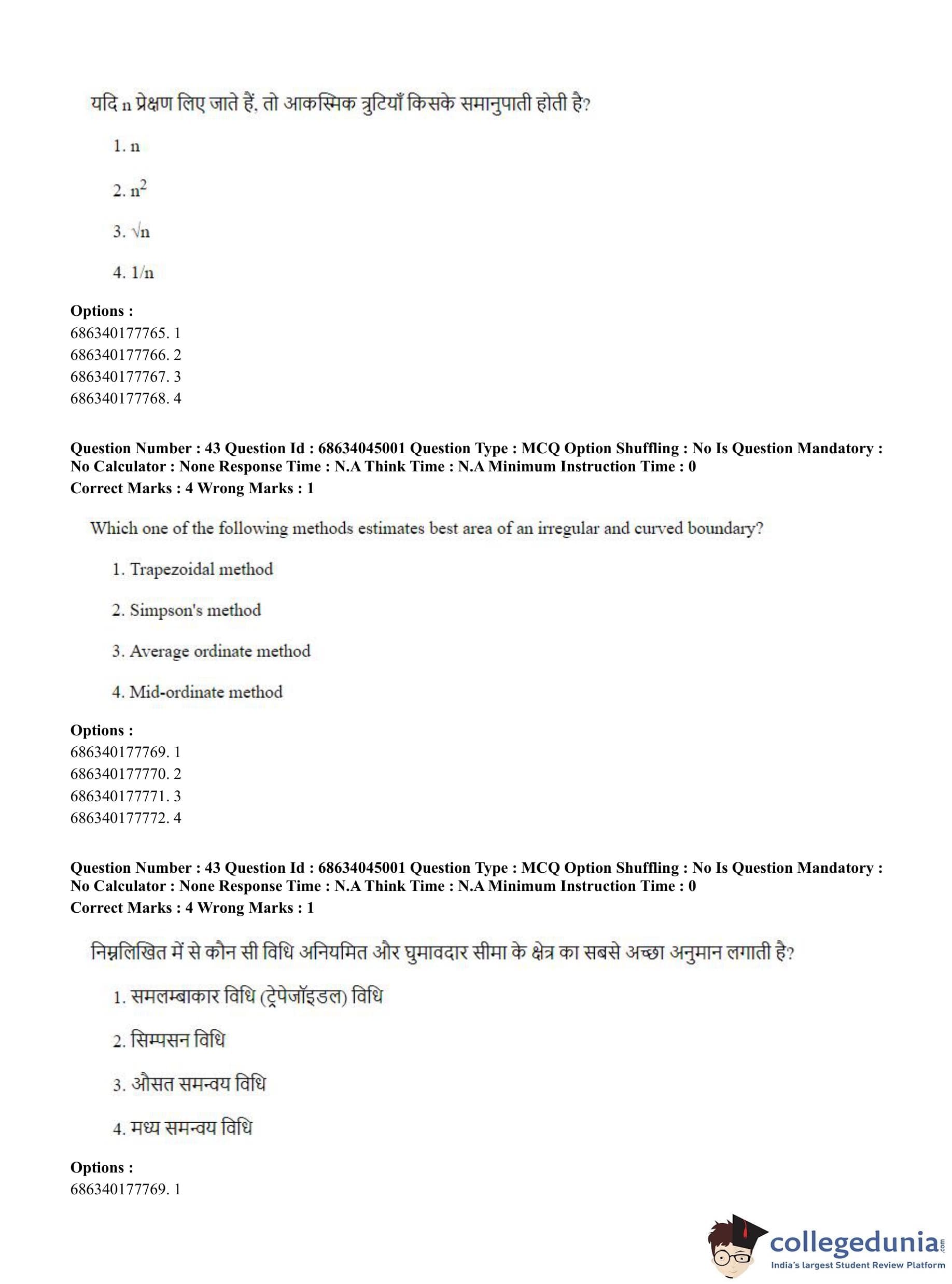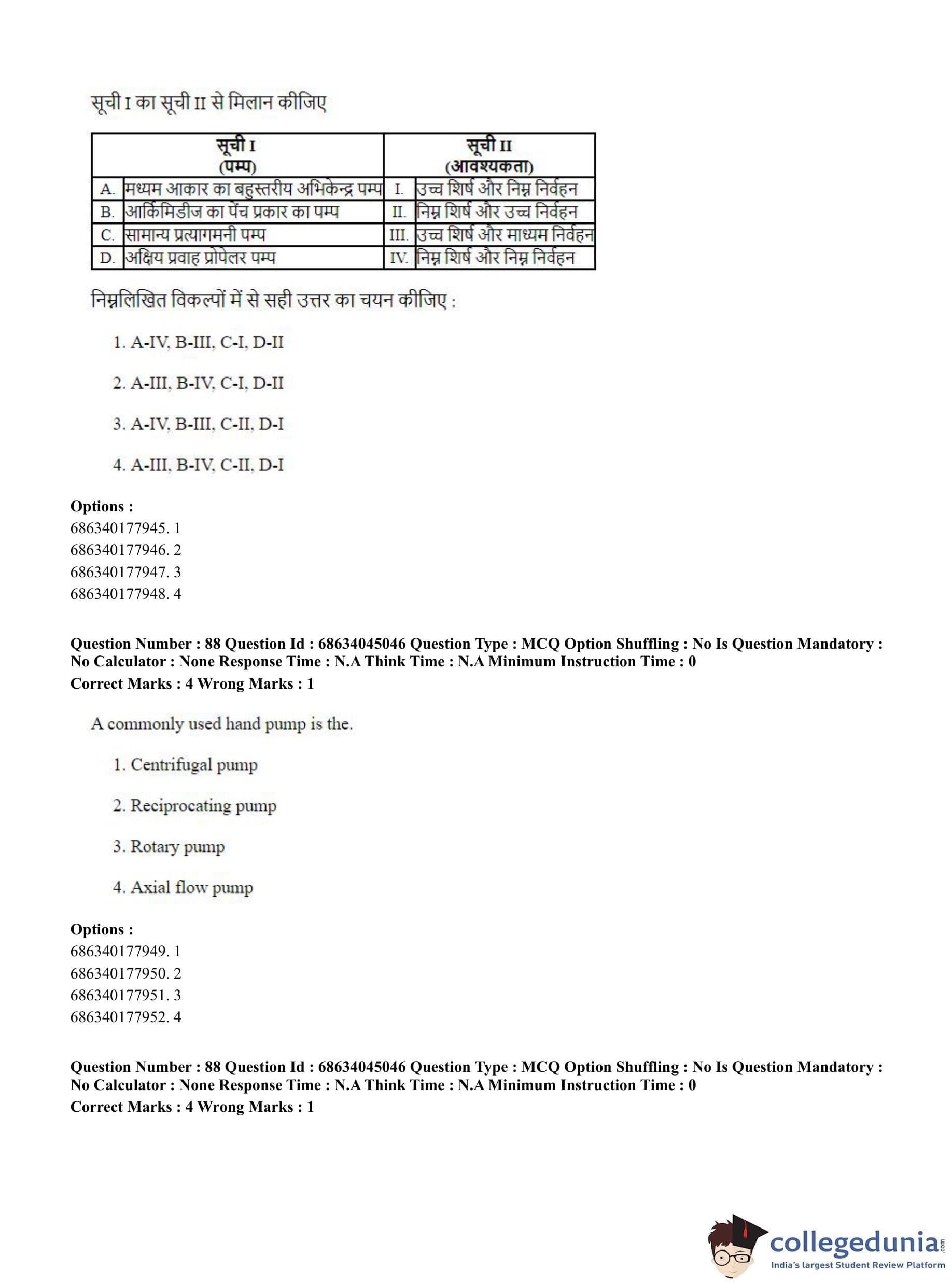 CUET PG 2023 Water Engineering and Management Question Paper in Hindi (June 30 - Shift 3)