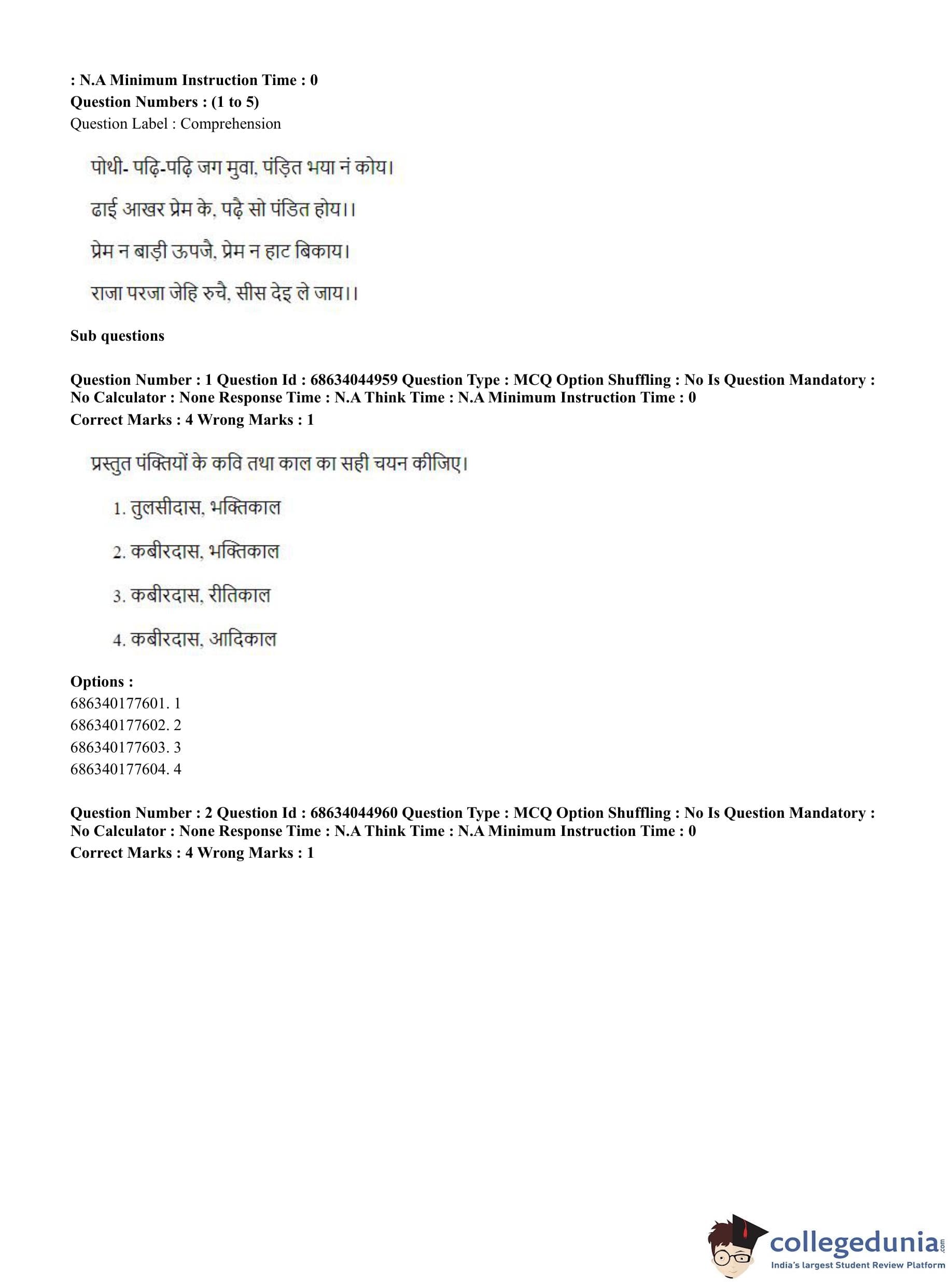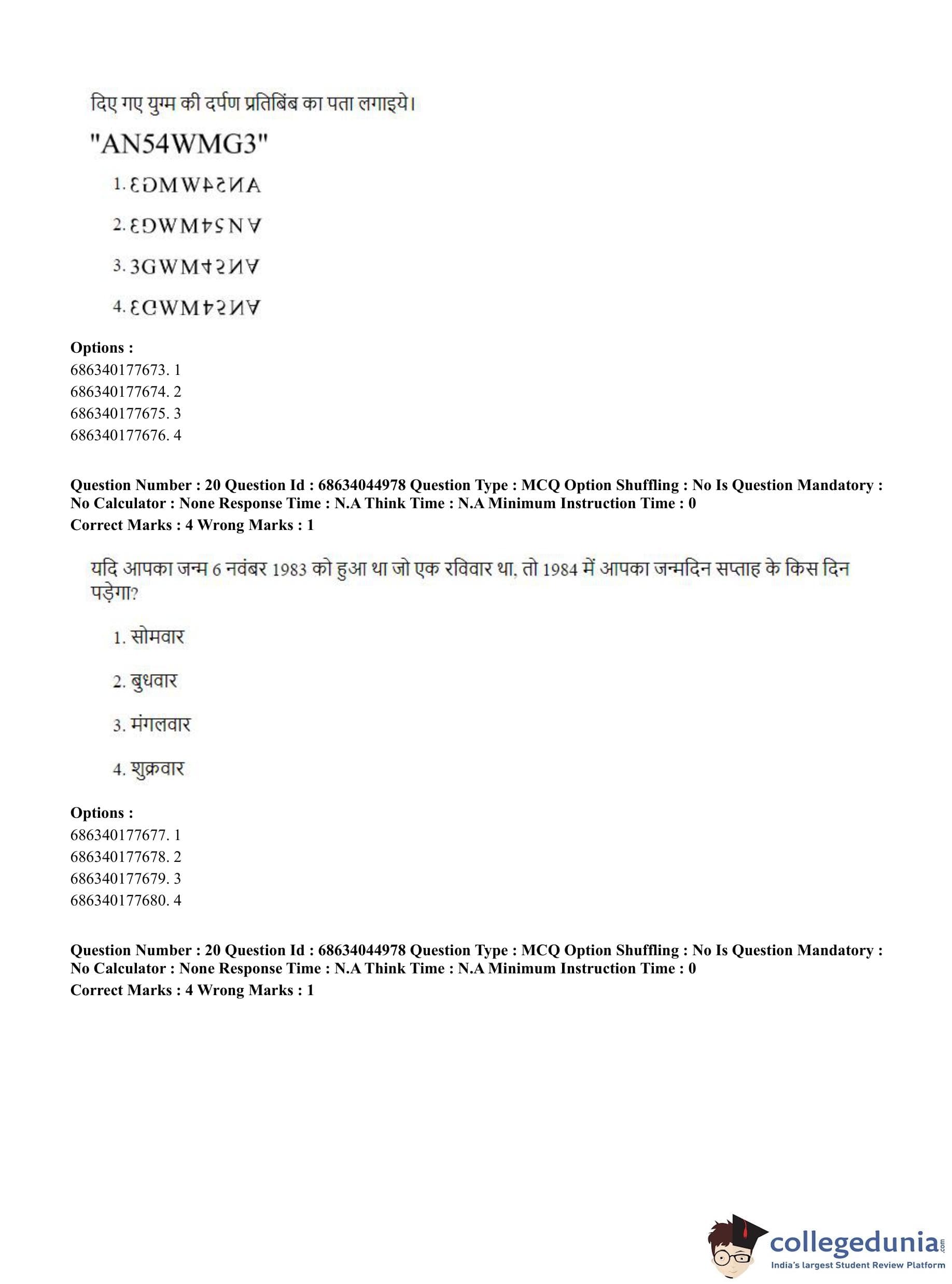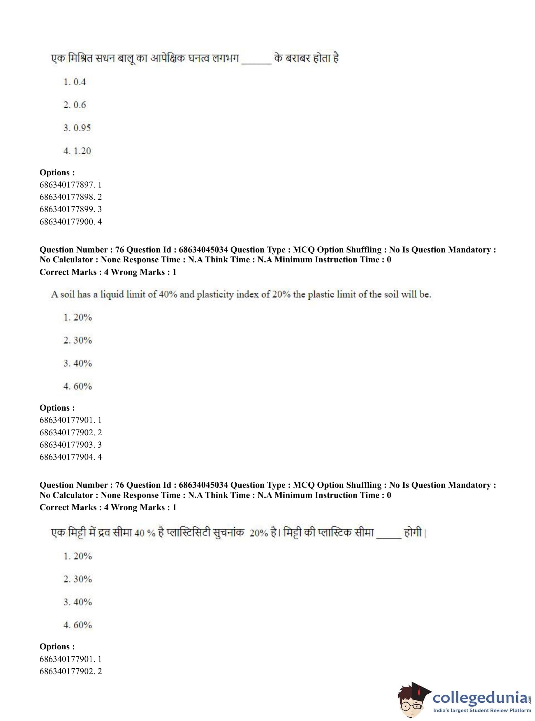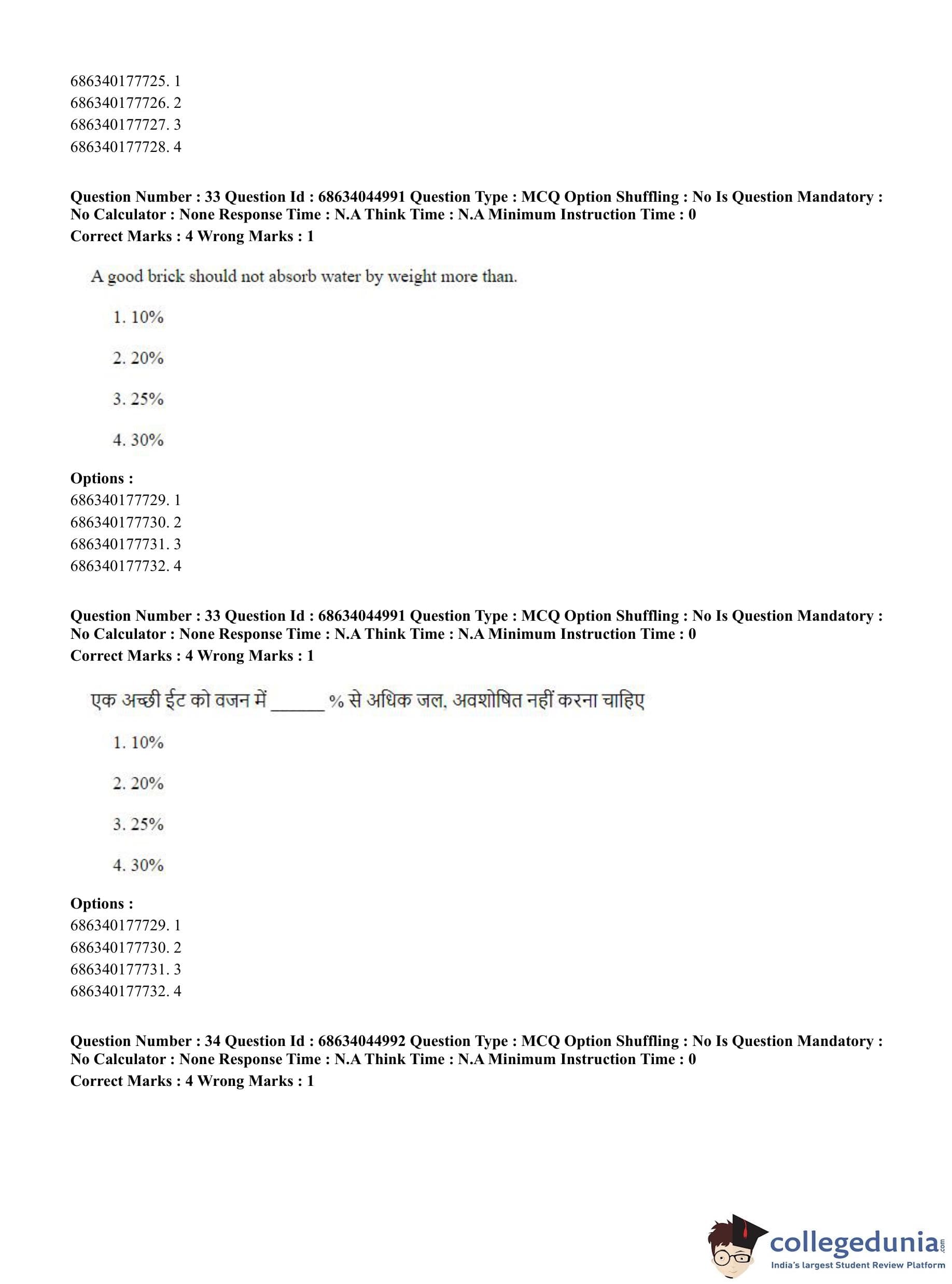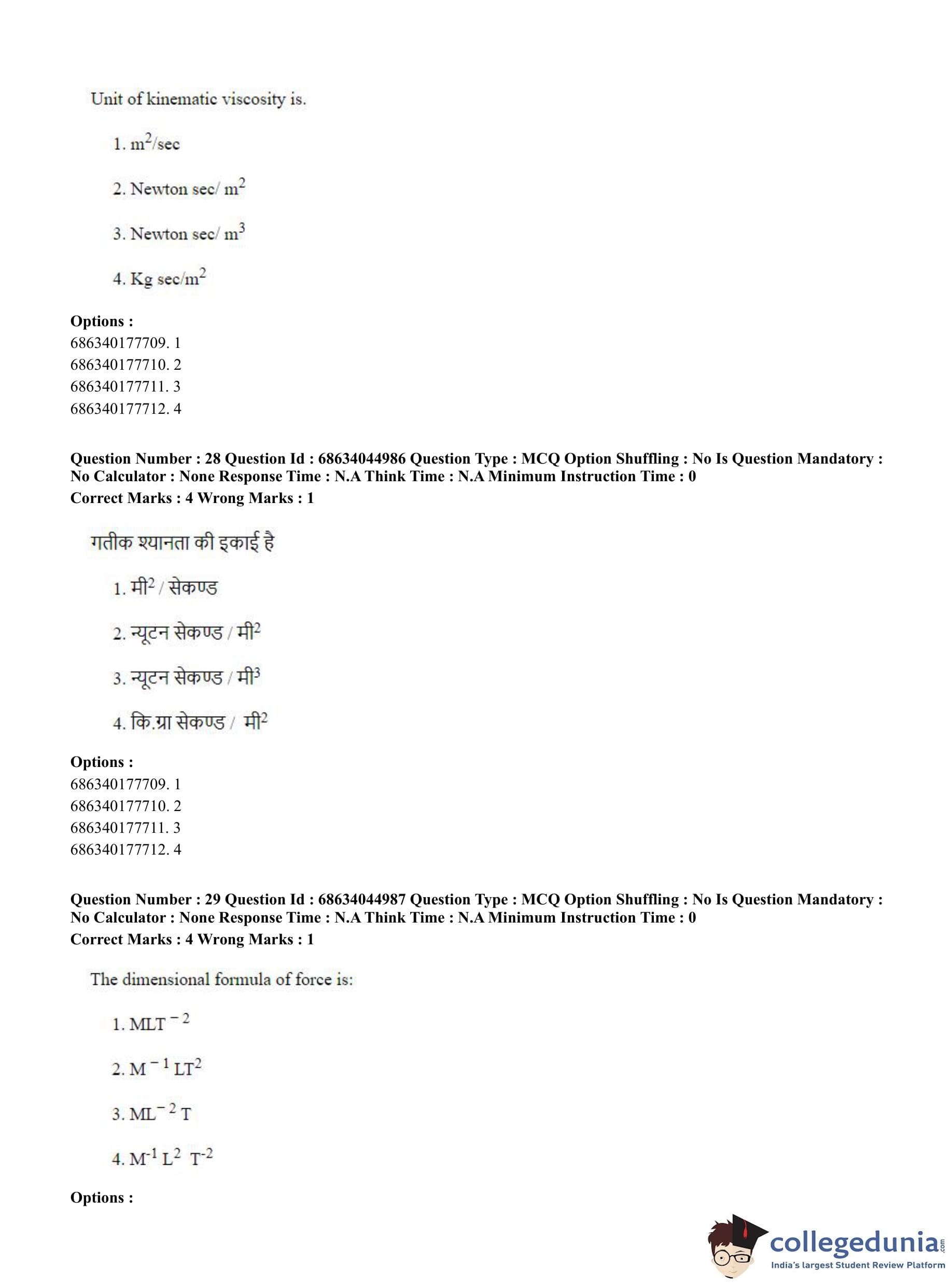 CUET PG 2023 Water Engineering and Management Question Paper in Hindi (June 30 - Shift 3)