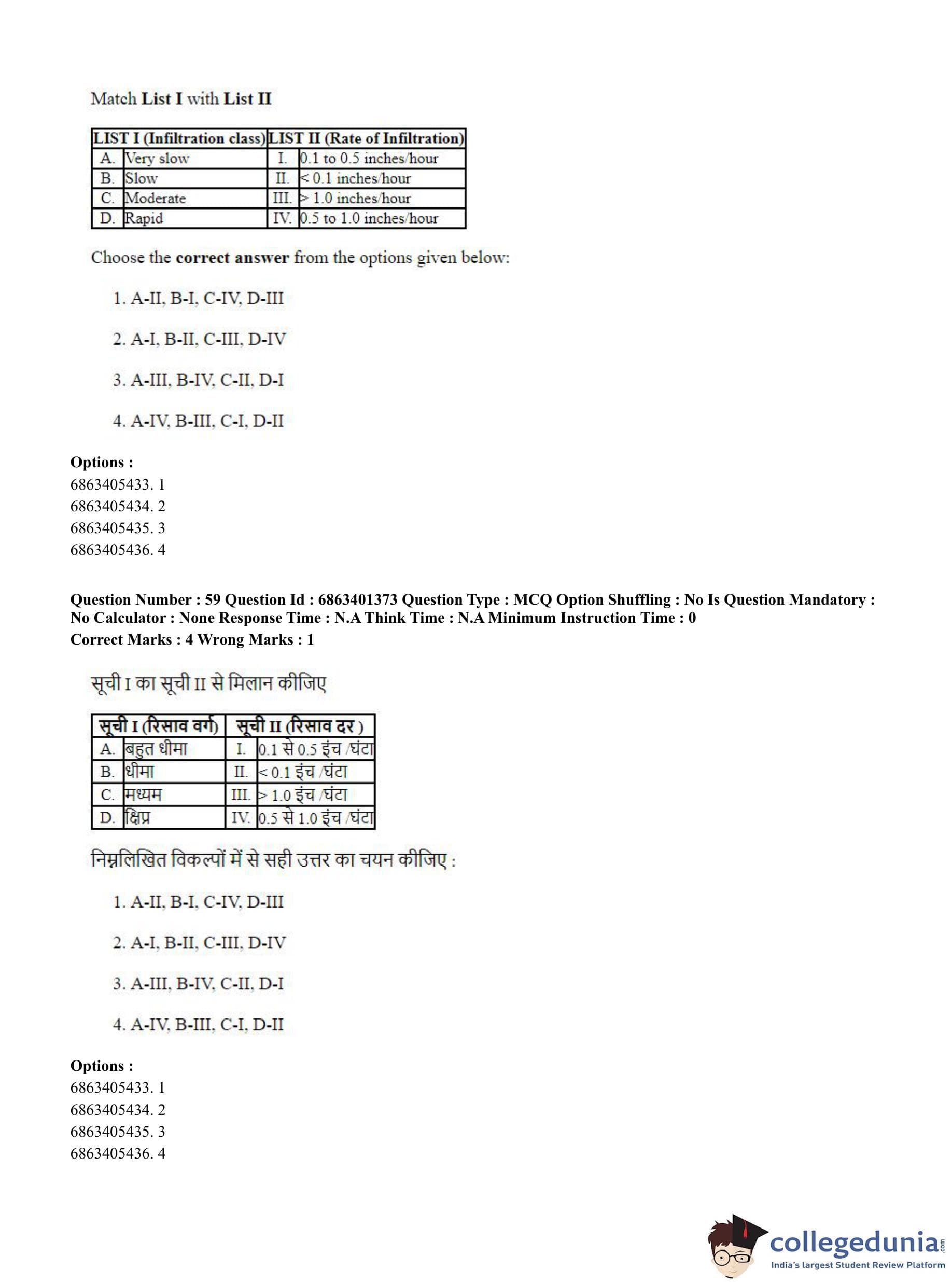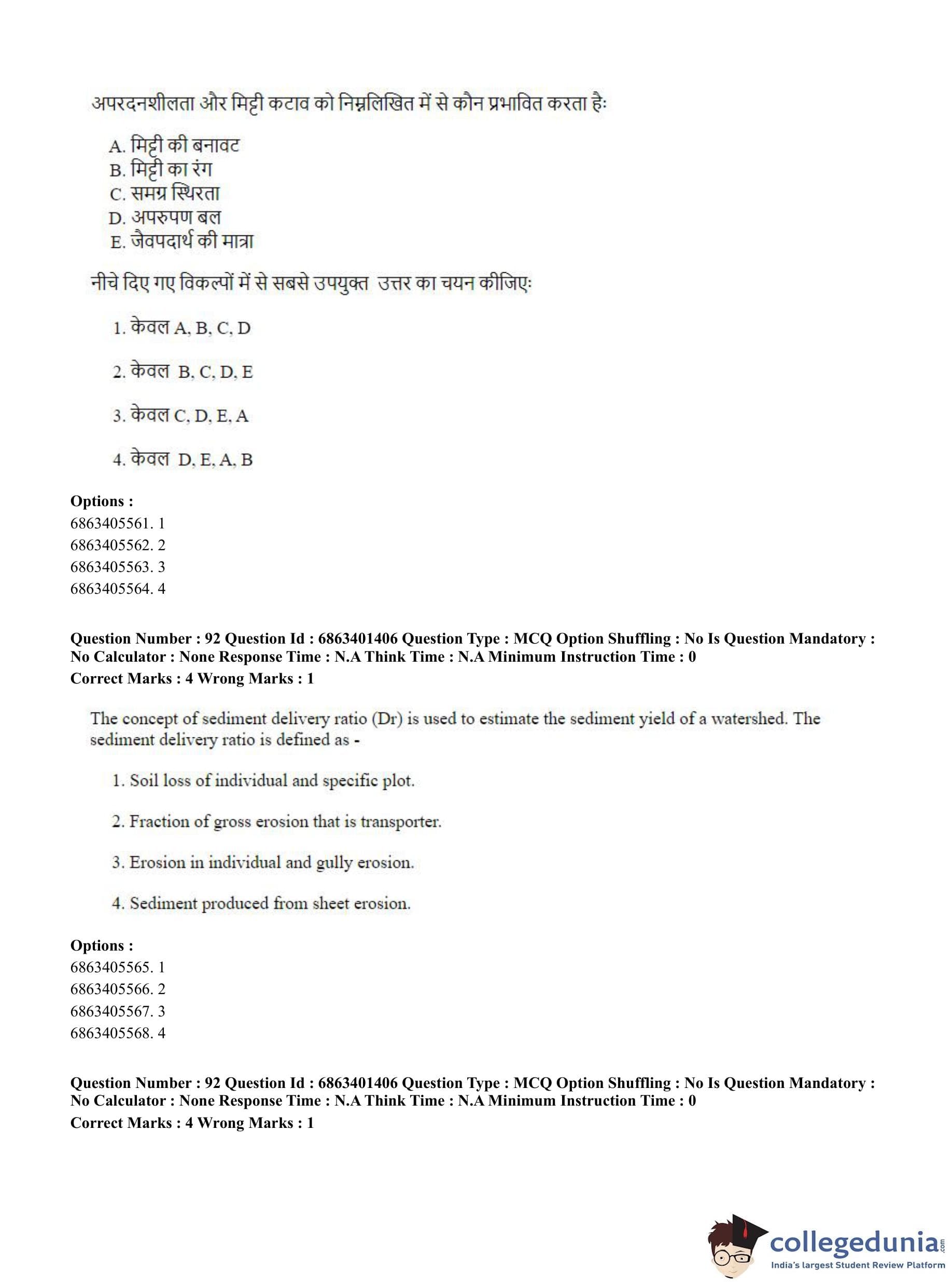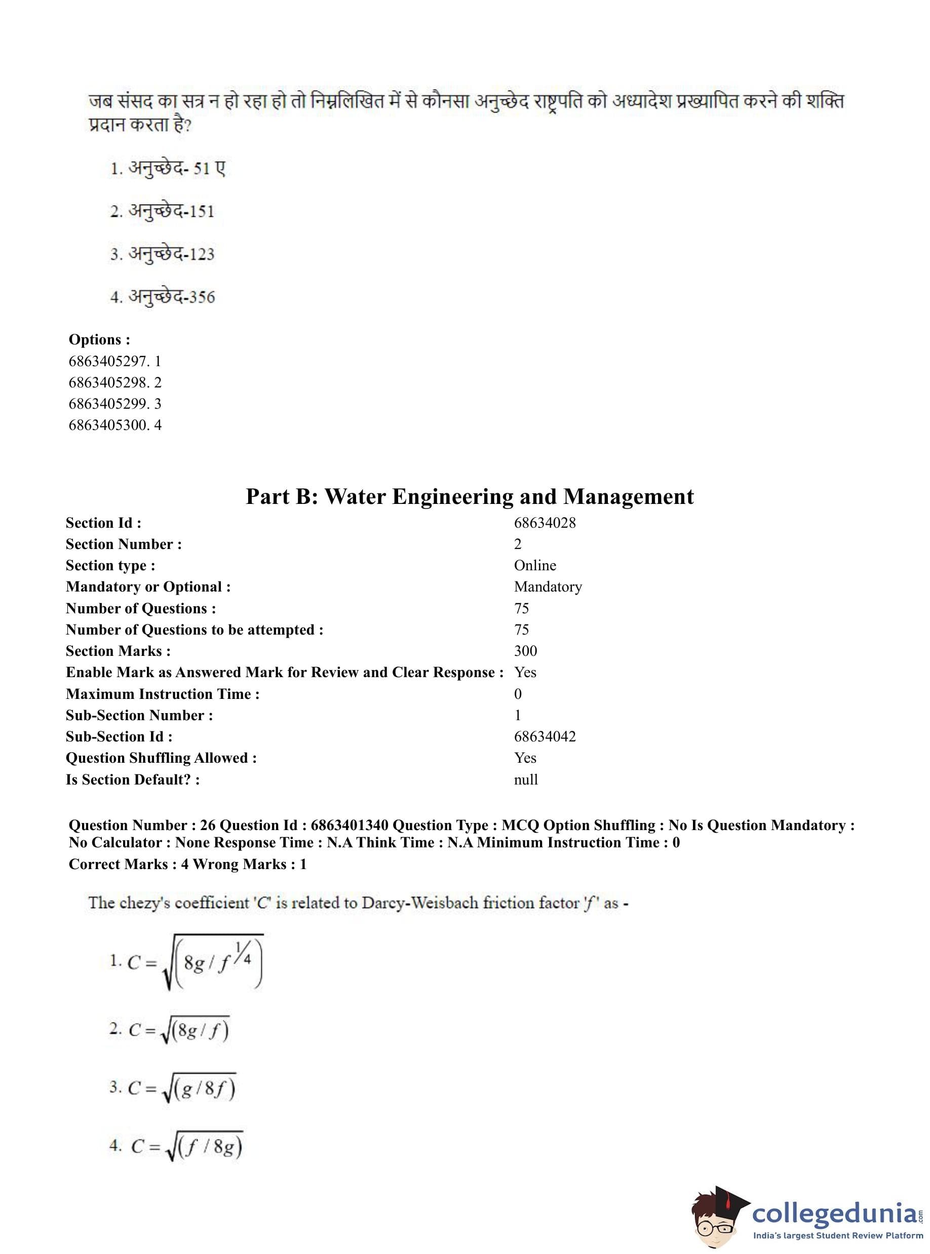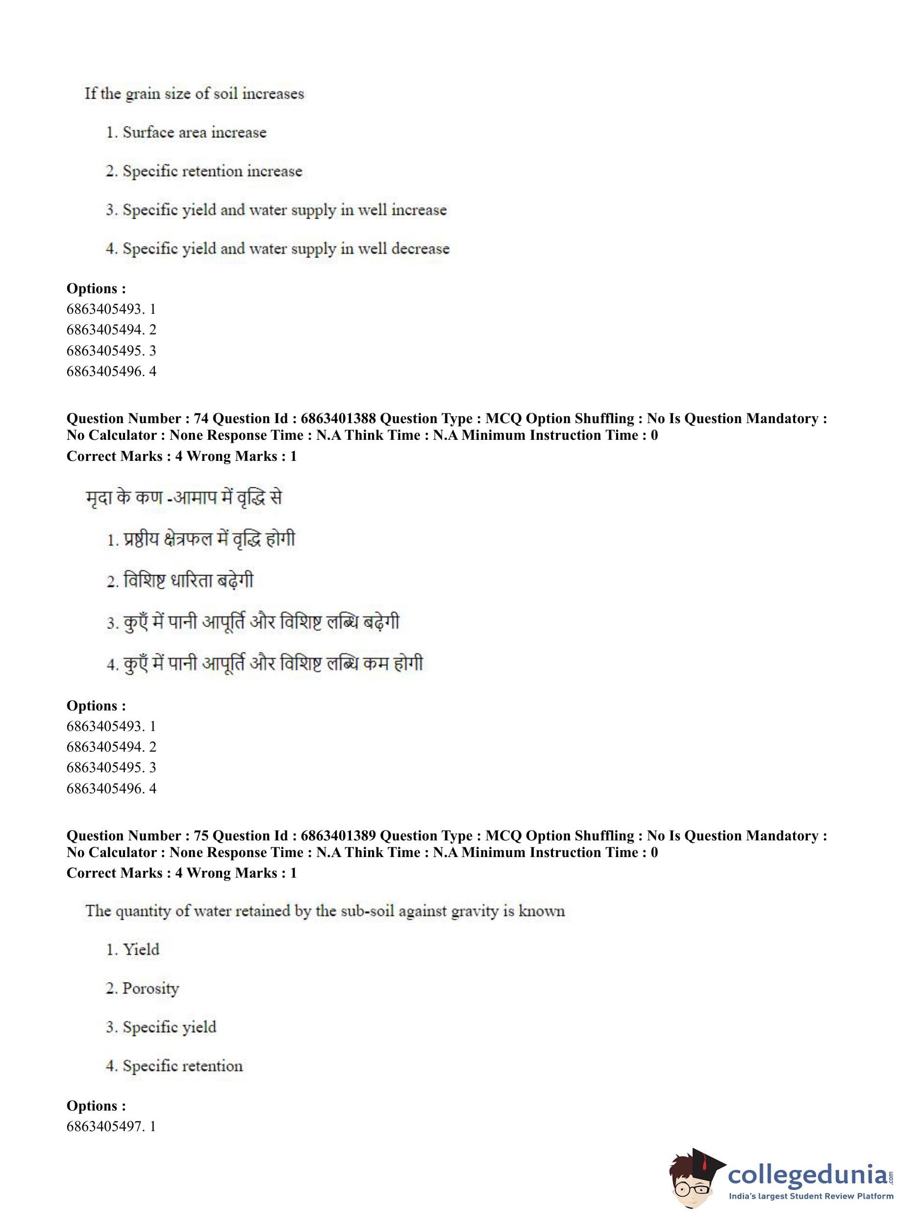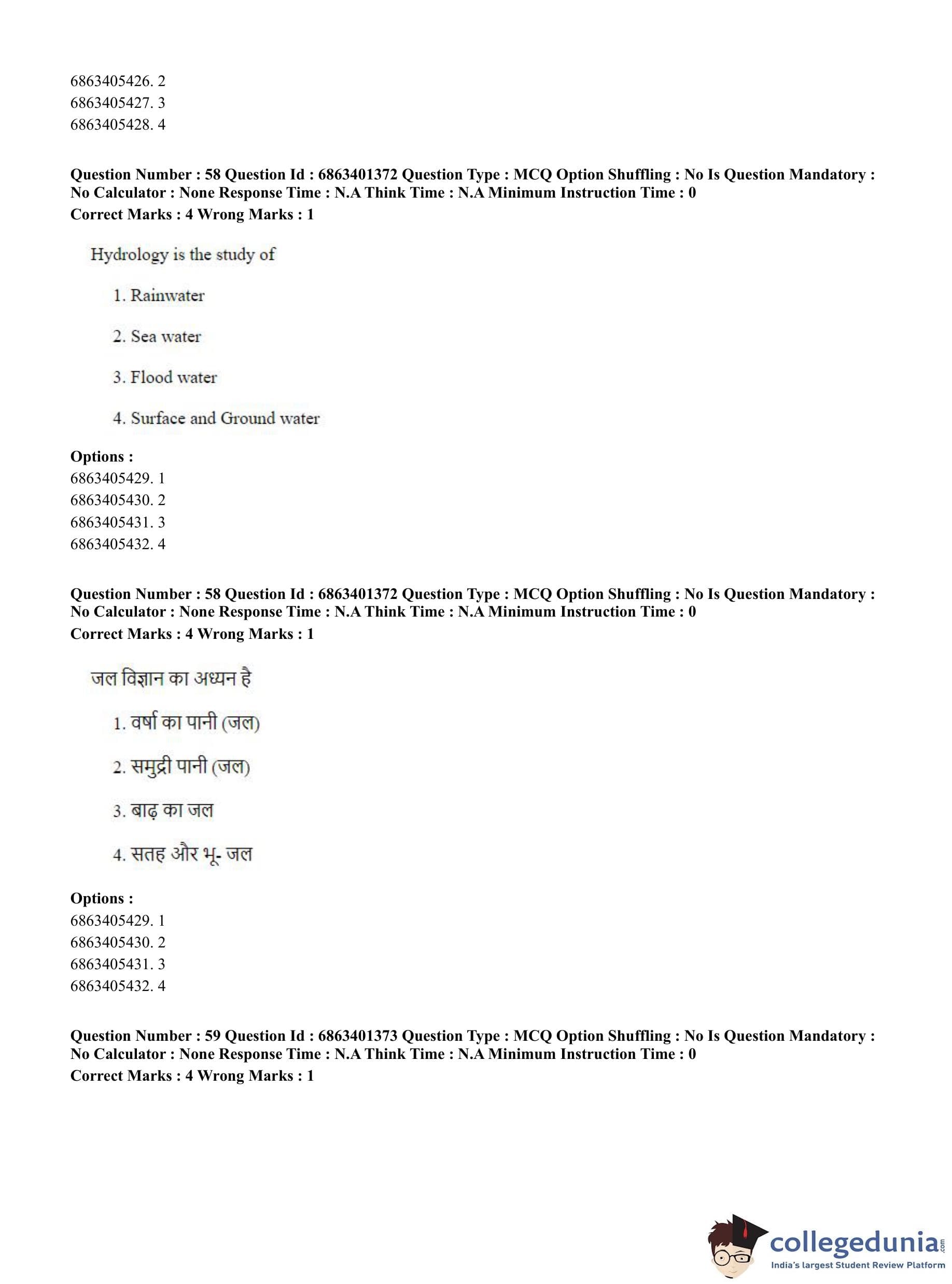 CUET PG 2023 Water Engineering and Management Question Paper in Hindi (June 5 - Shift 2)