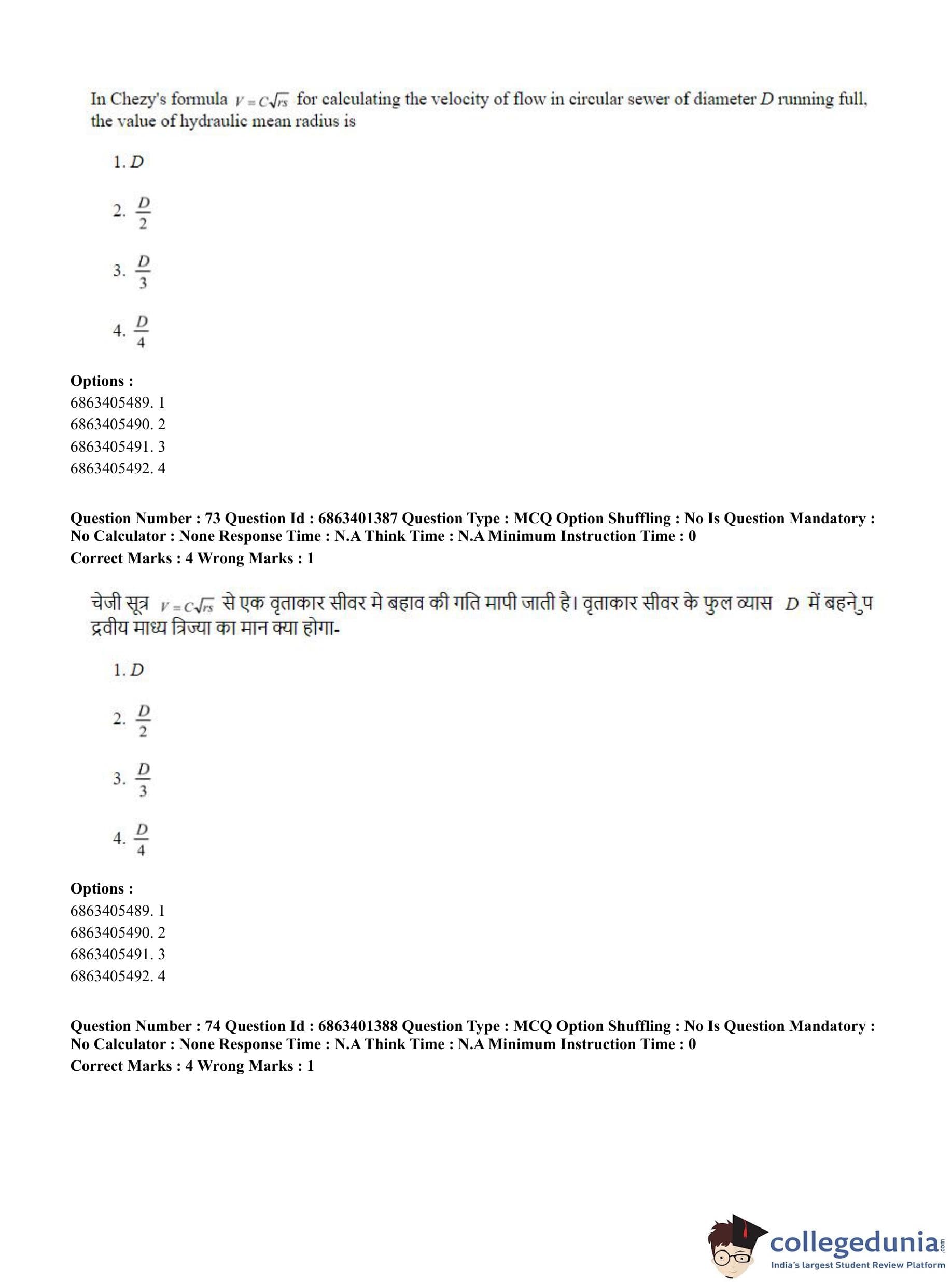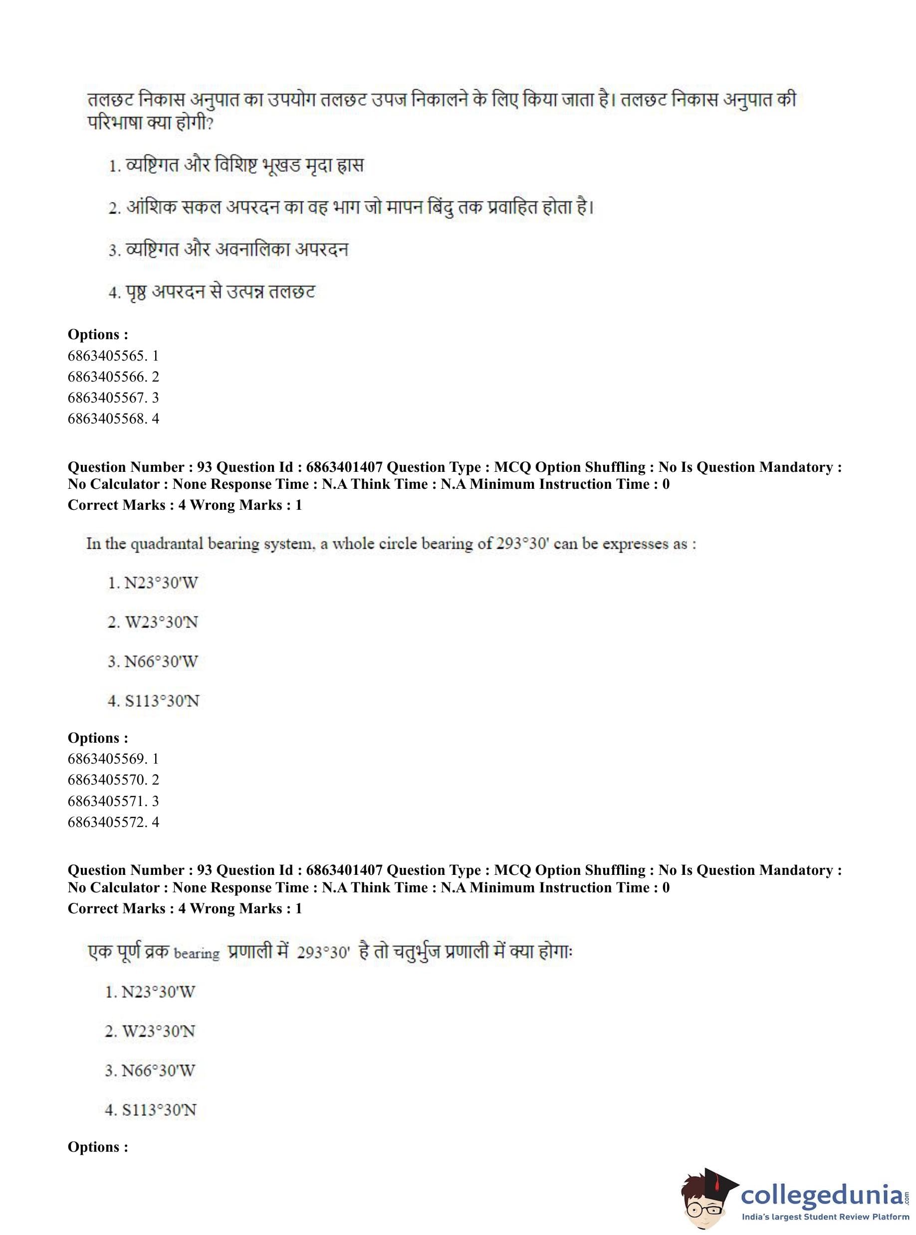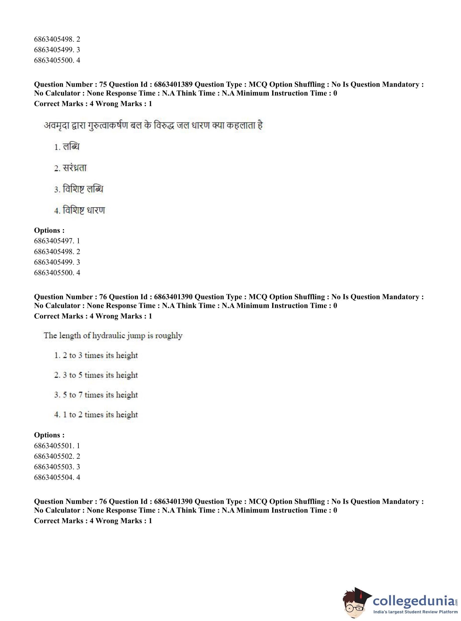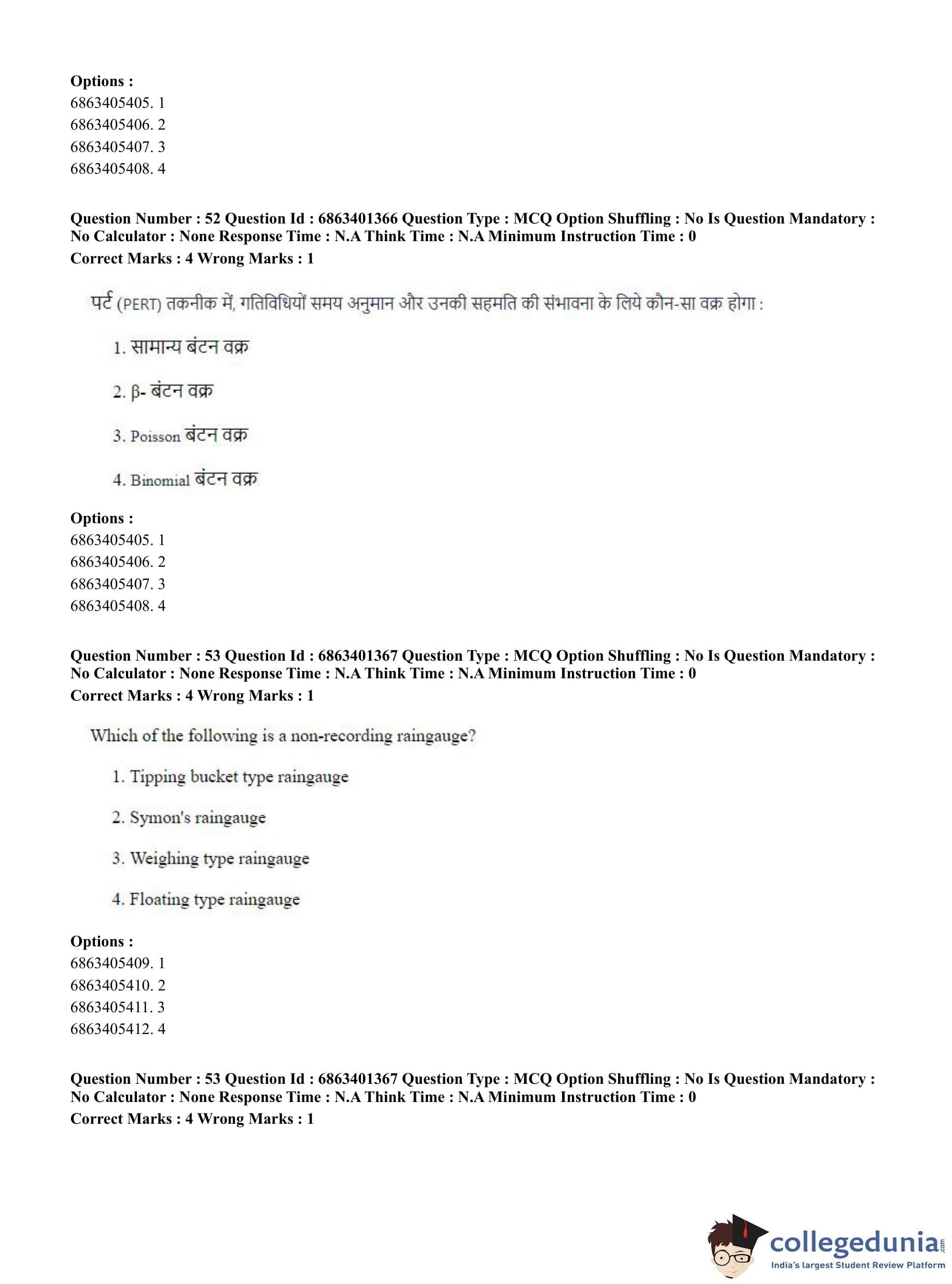 CUET PG 2023 Water Engineering and Management Question Paper in Hindi (June 5 - Shift 2)