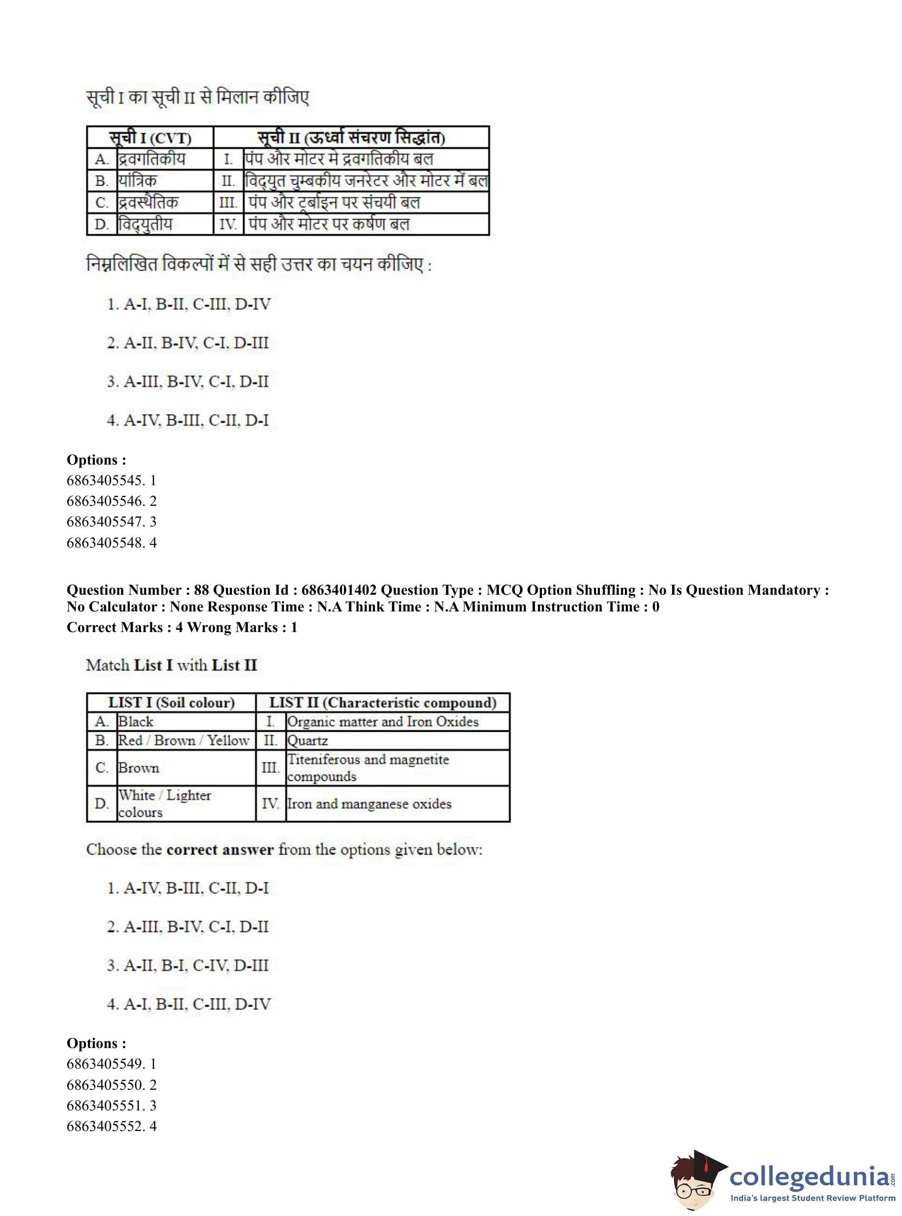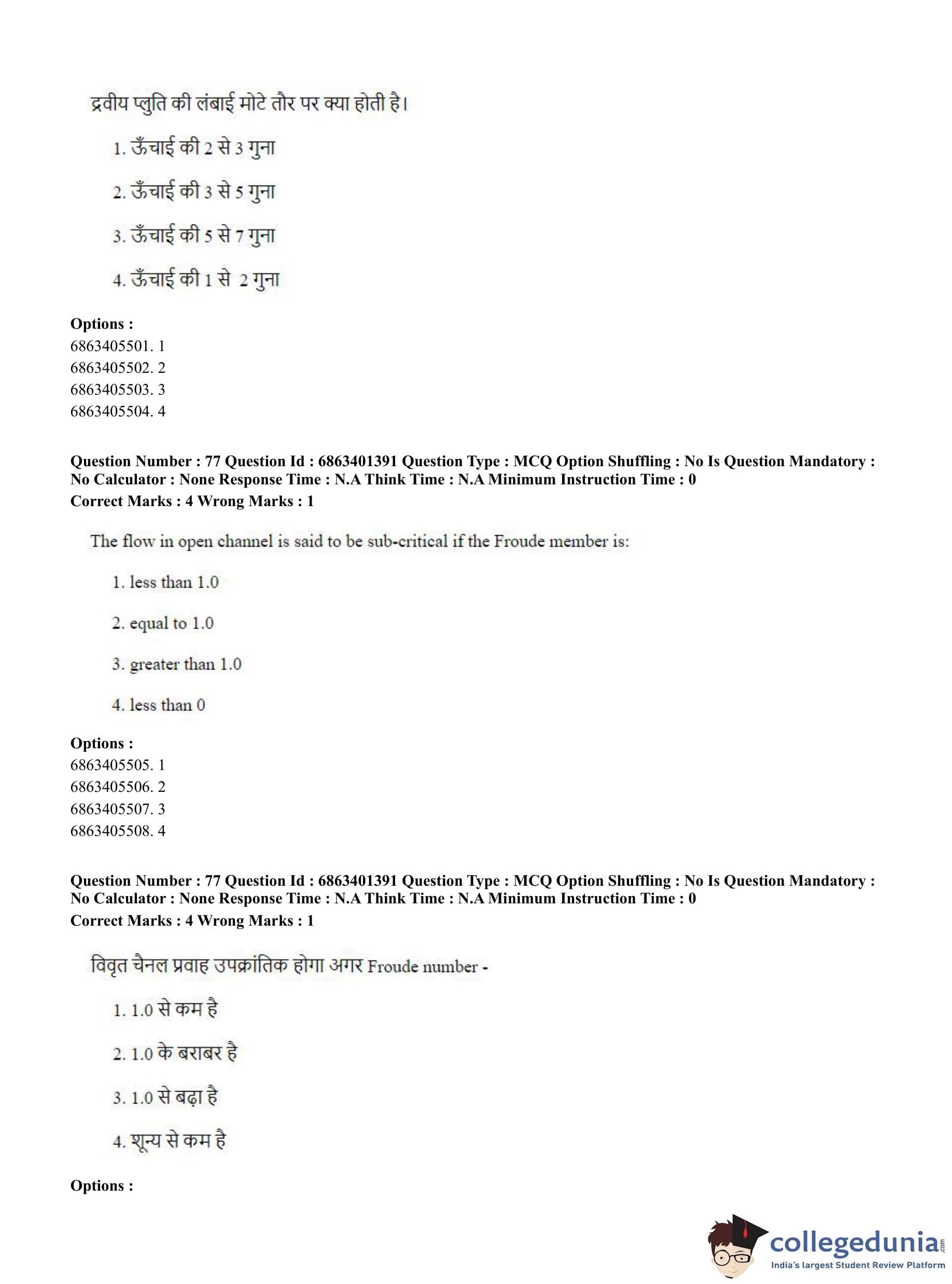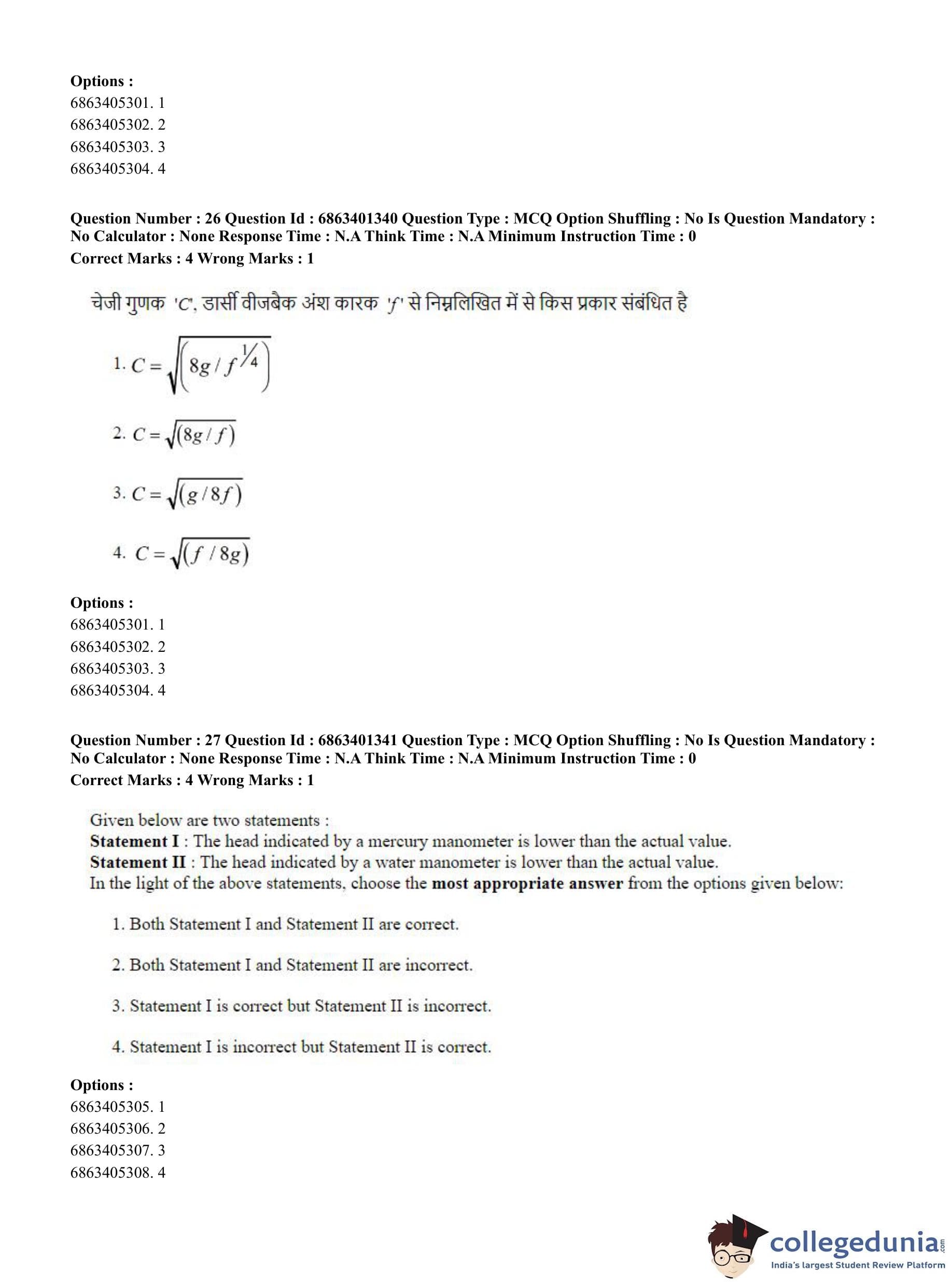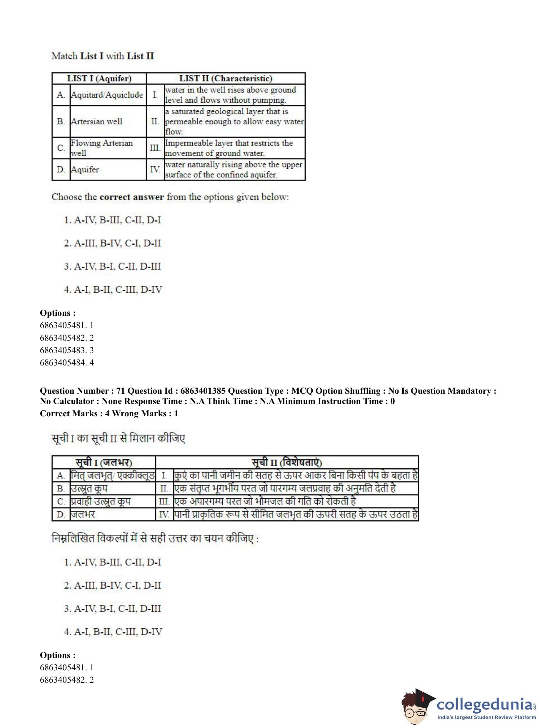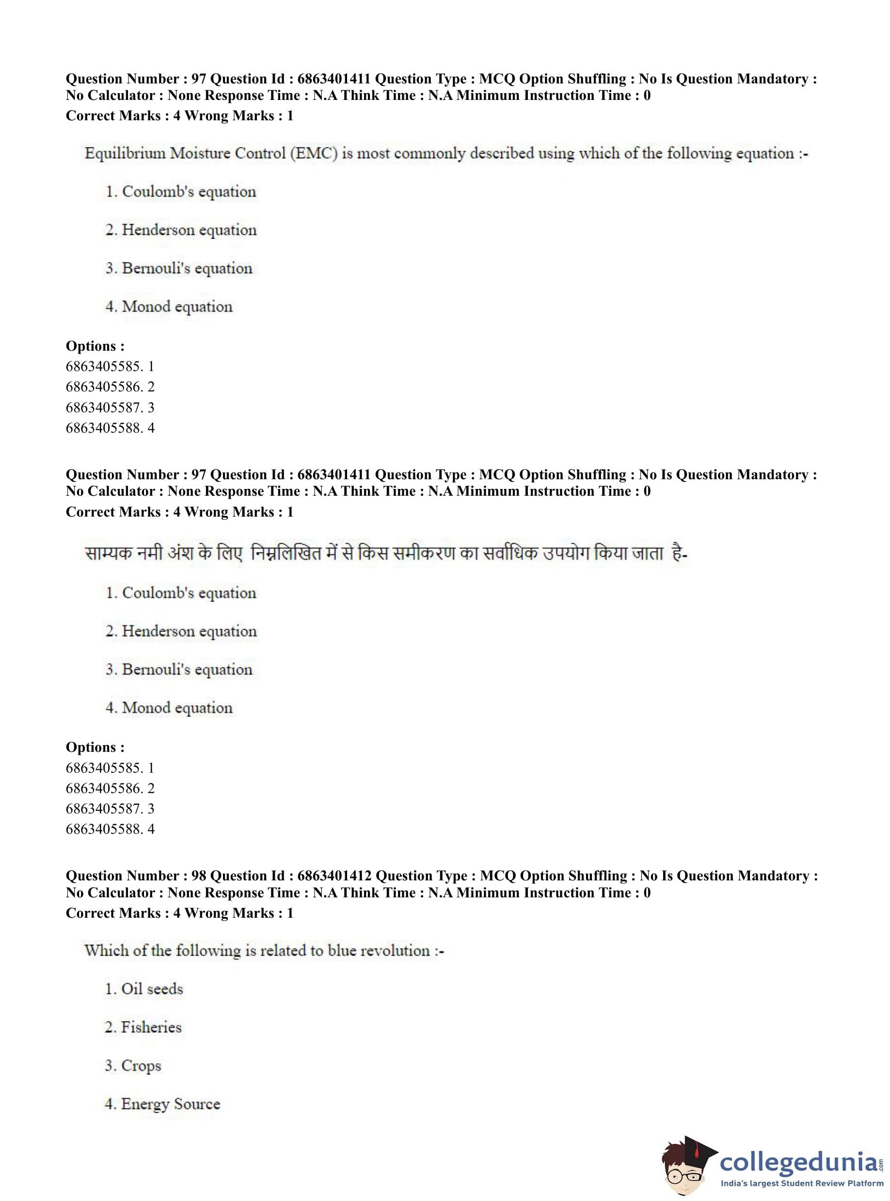 CUET PG 2023 Water Engineering and Management Question Paper in Hindi (June 5 - Shift 2)