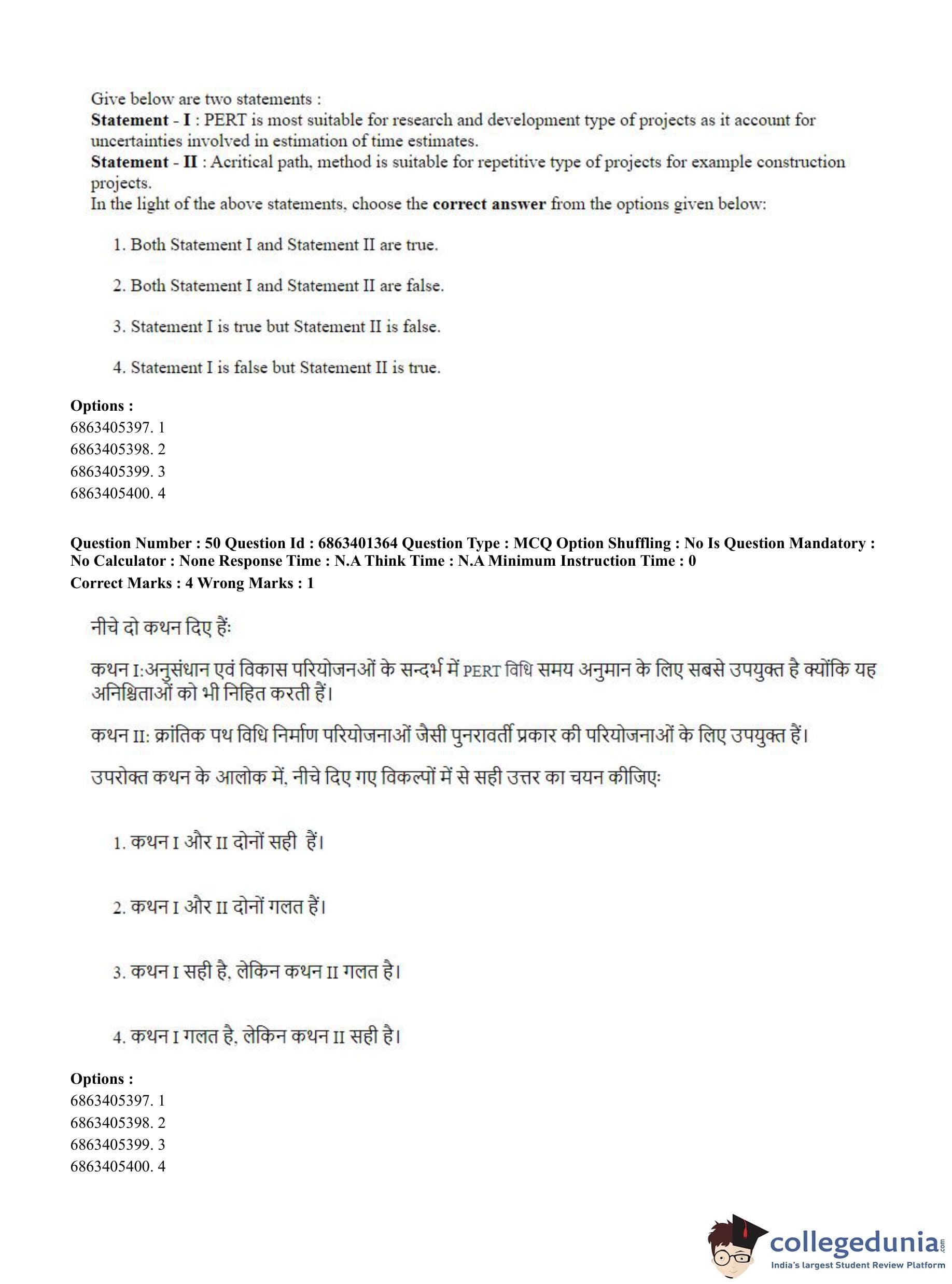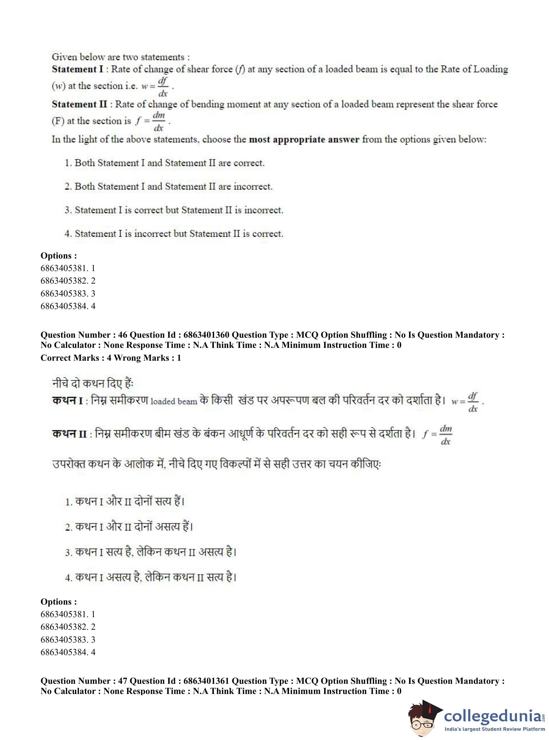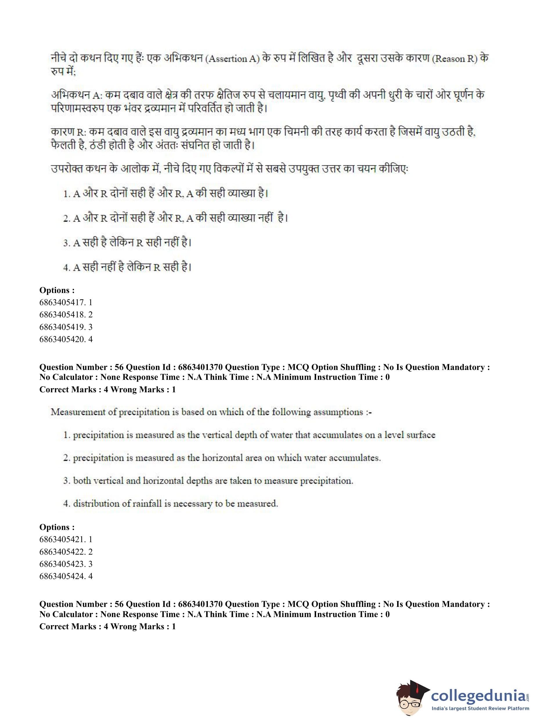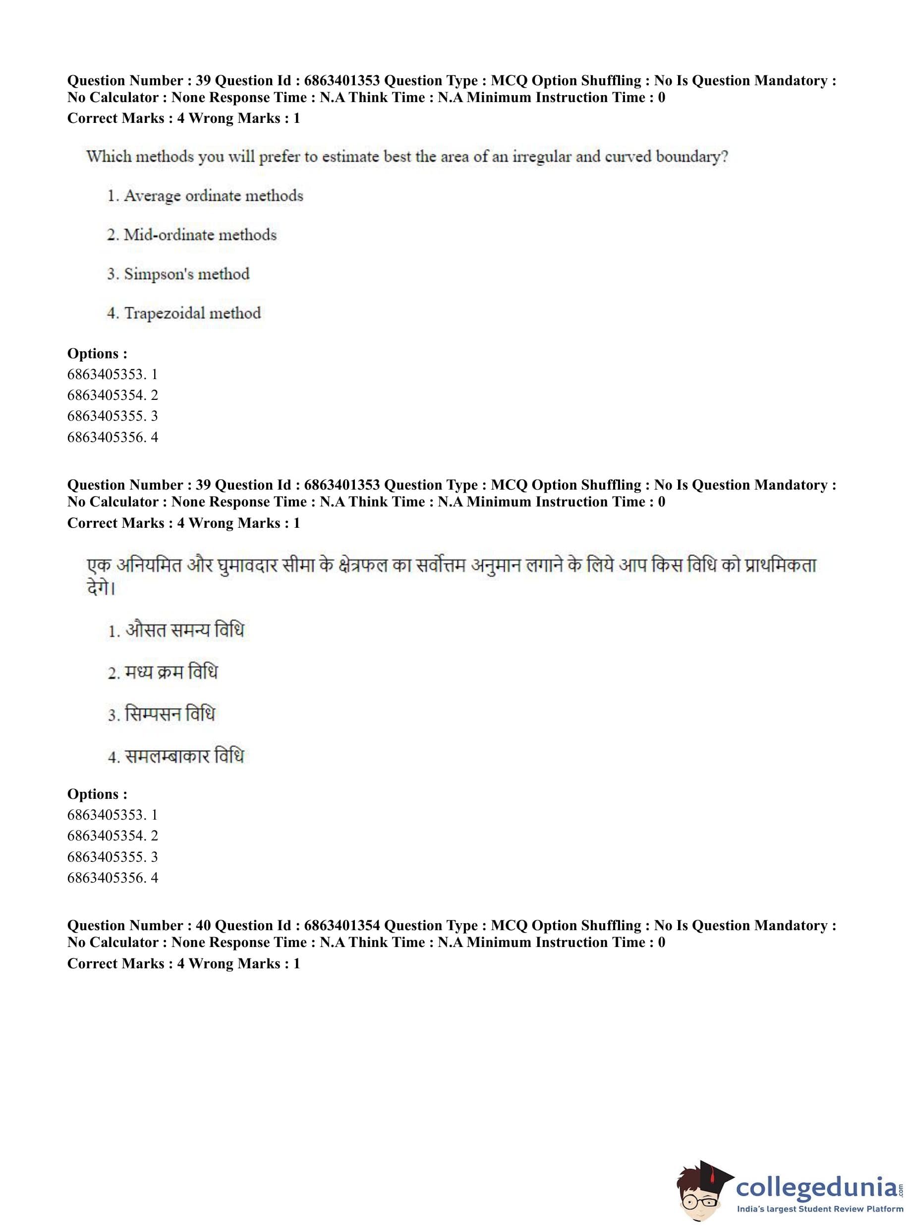 CUET PG 2023 Water Engineering and Management Question Paper in Hindi (June 5 - Shift 2)