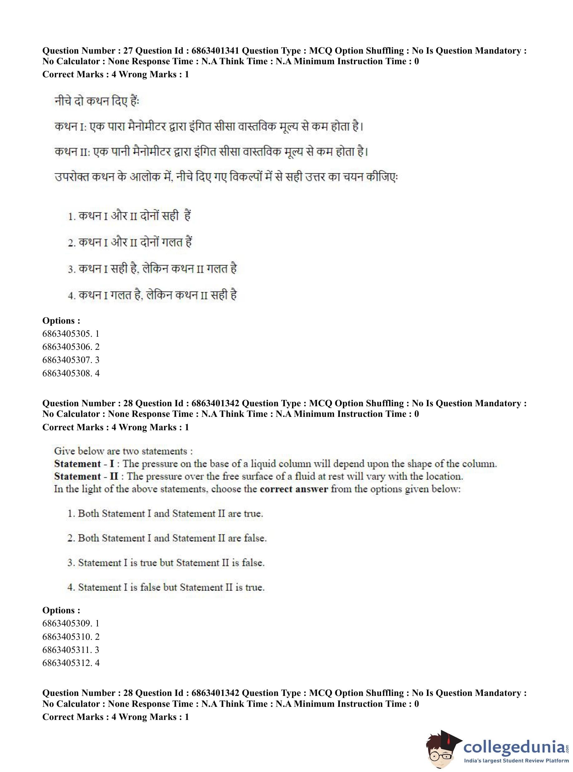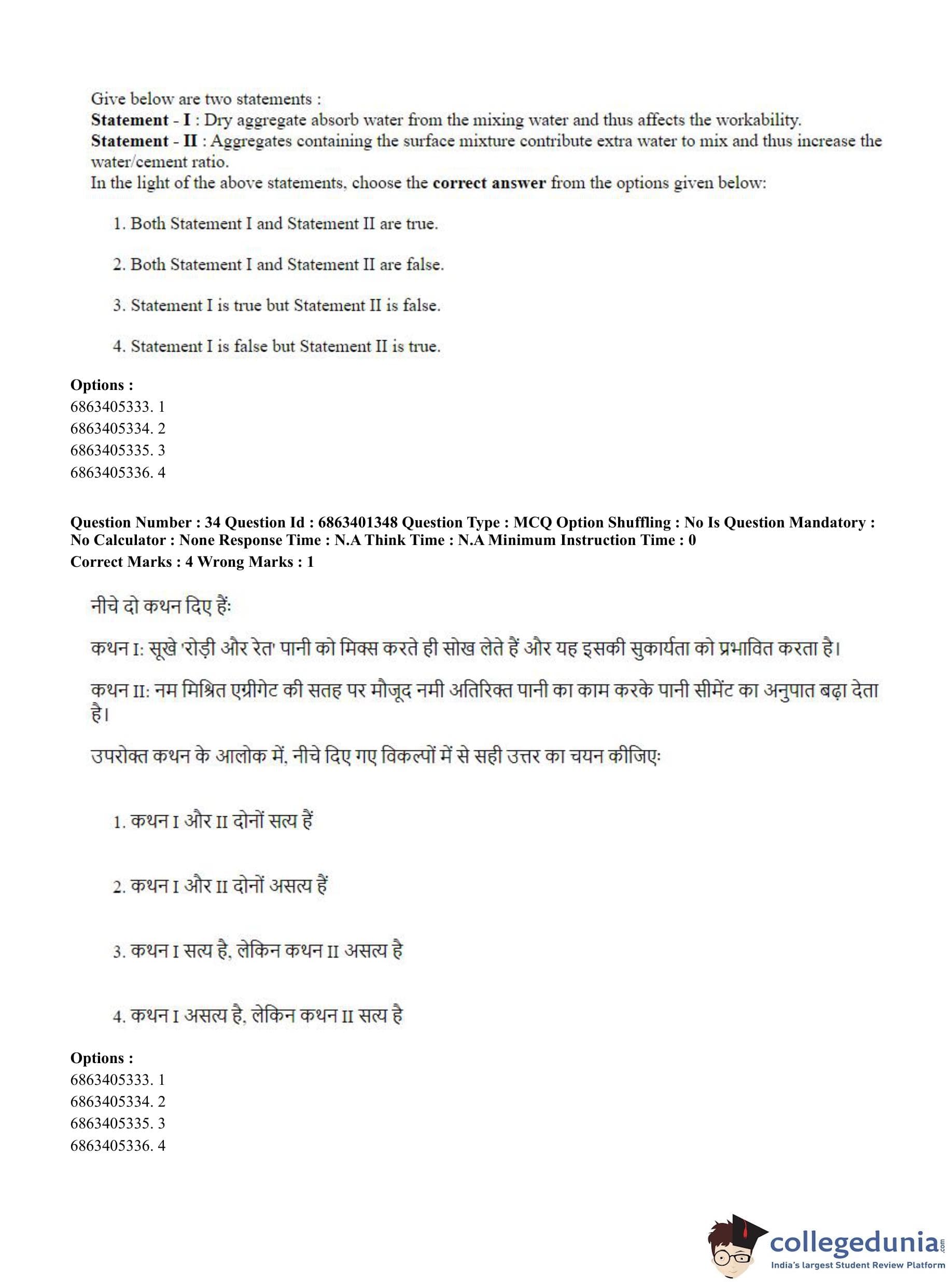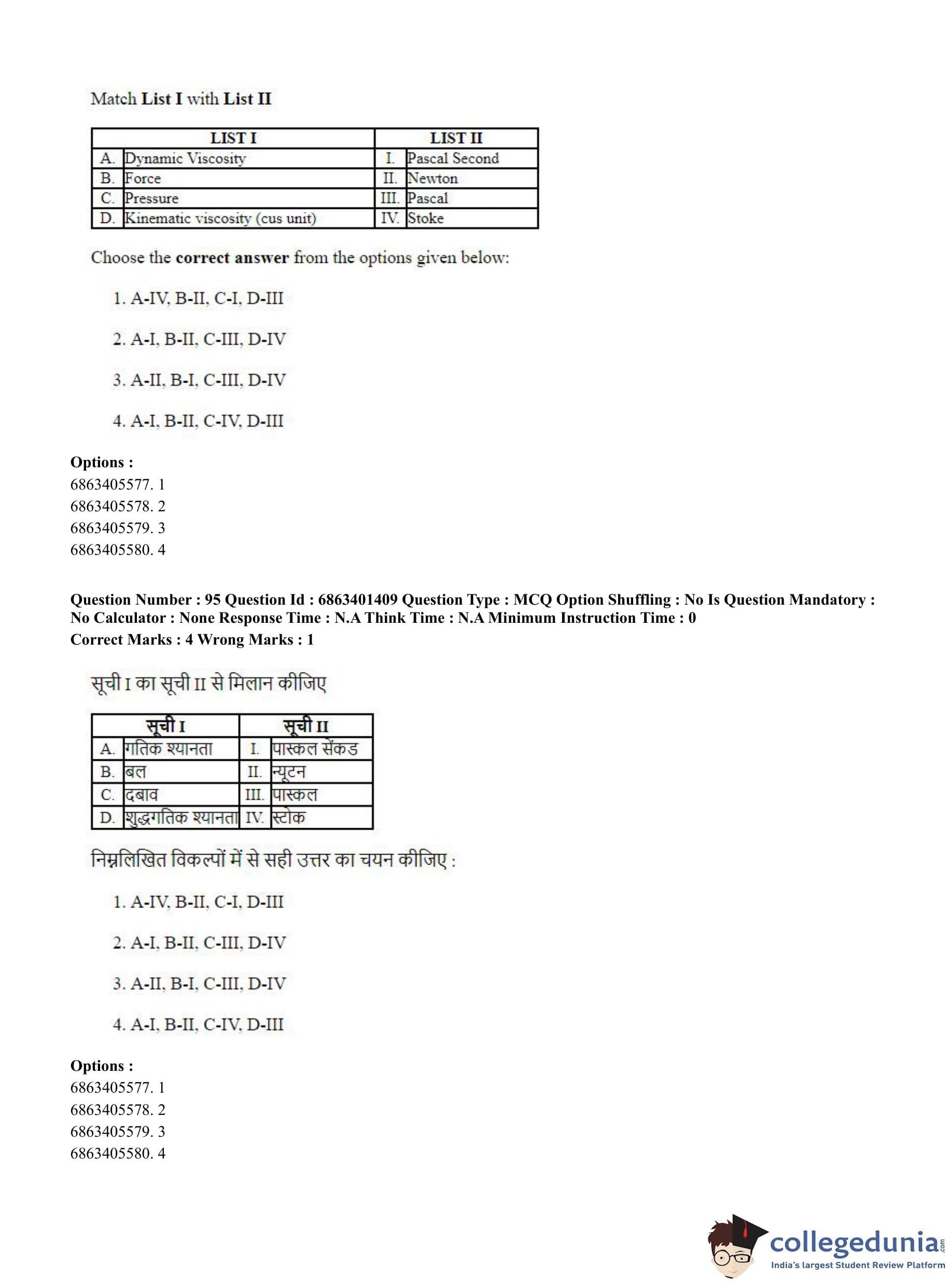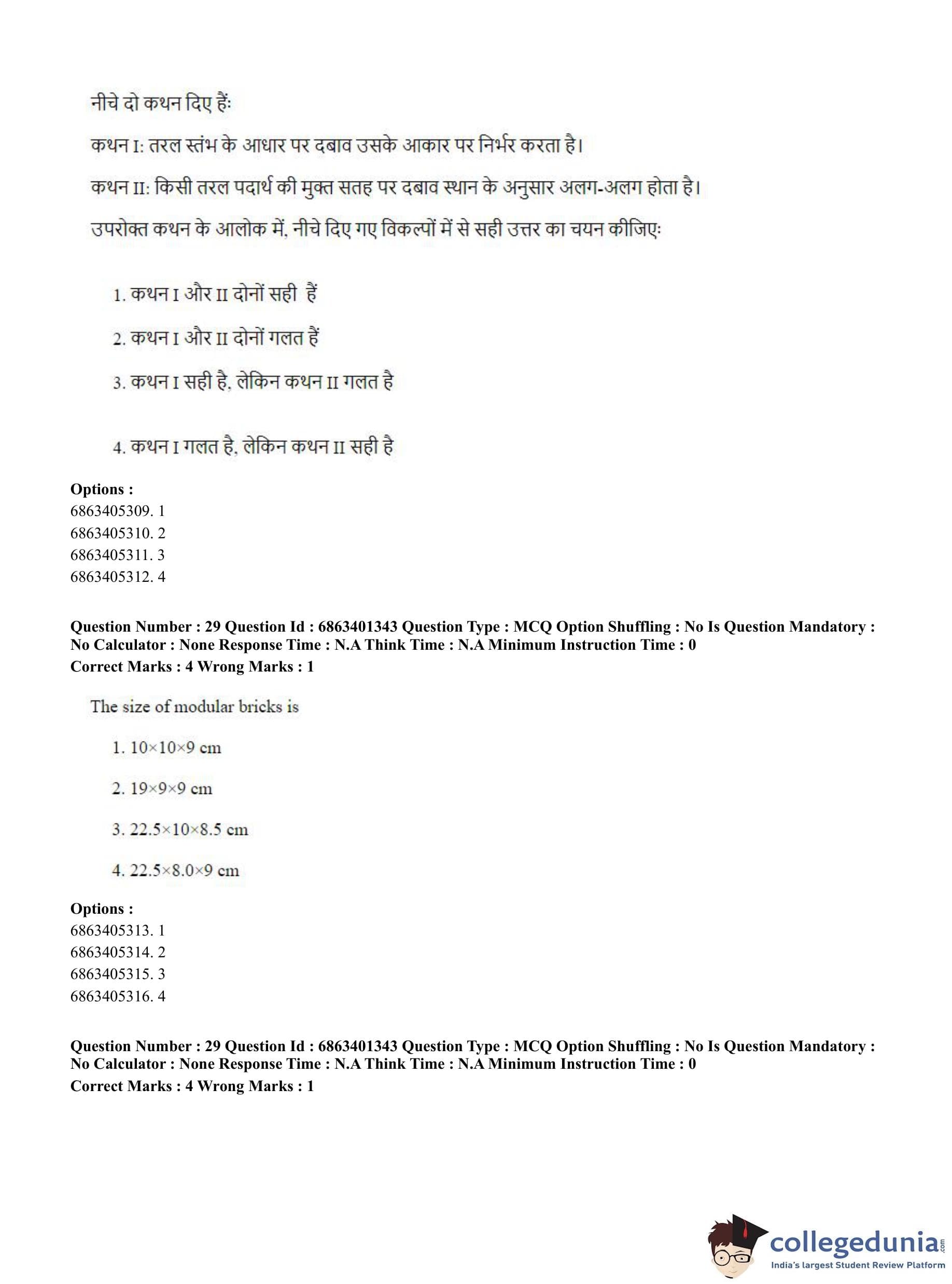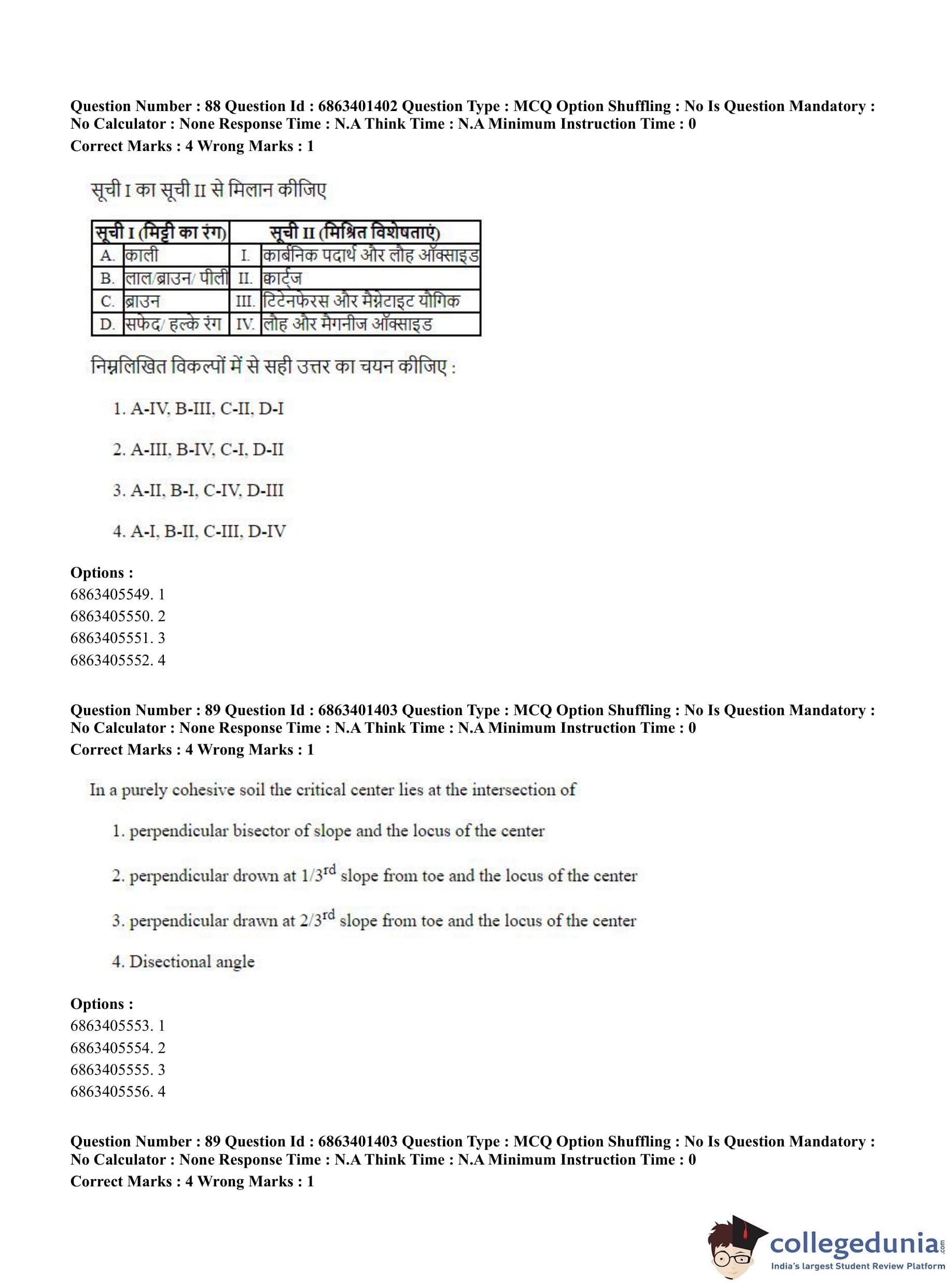 CUET PG 2023 Water Engineering and Management Question Paper in Hindi (June 5 - Shift 2)