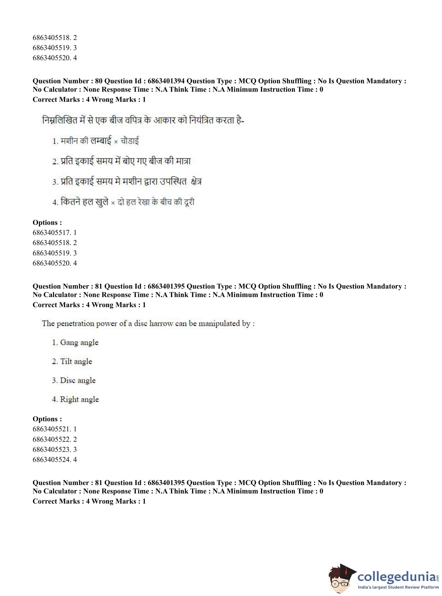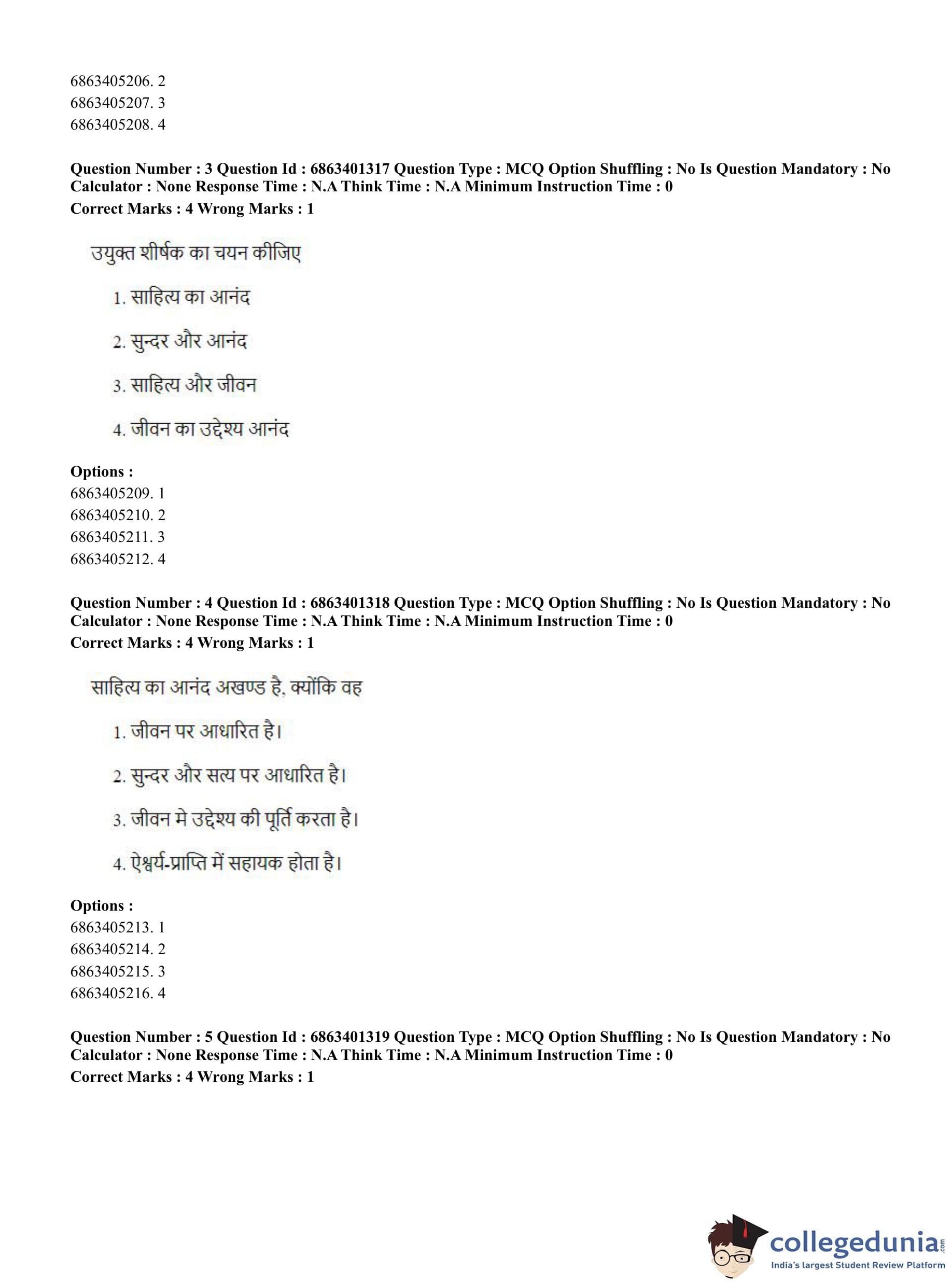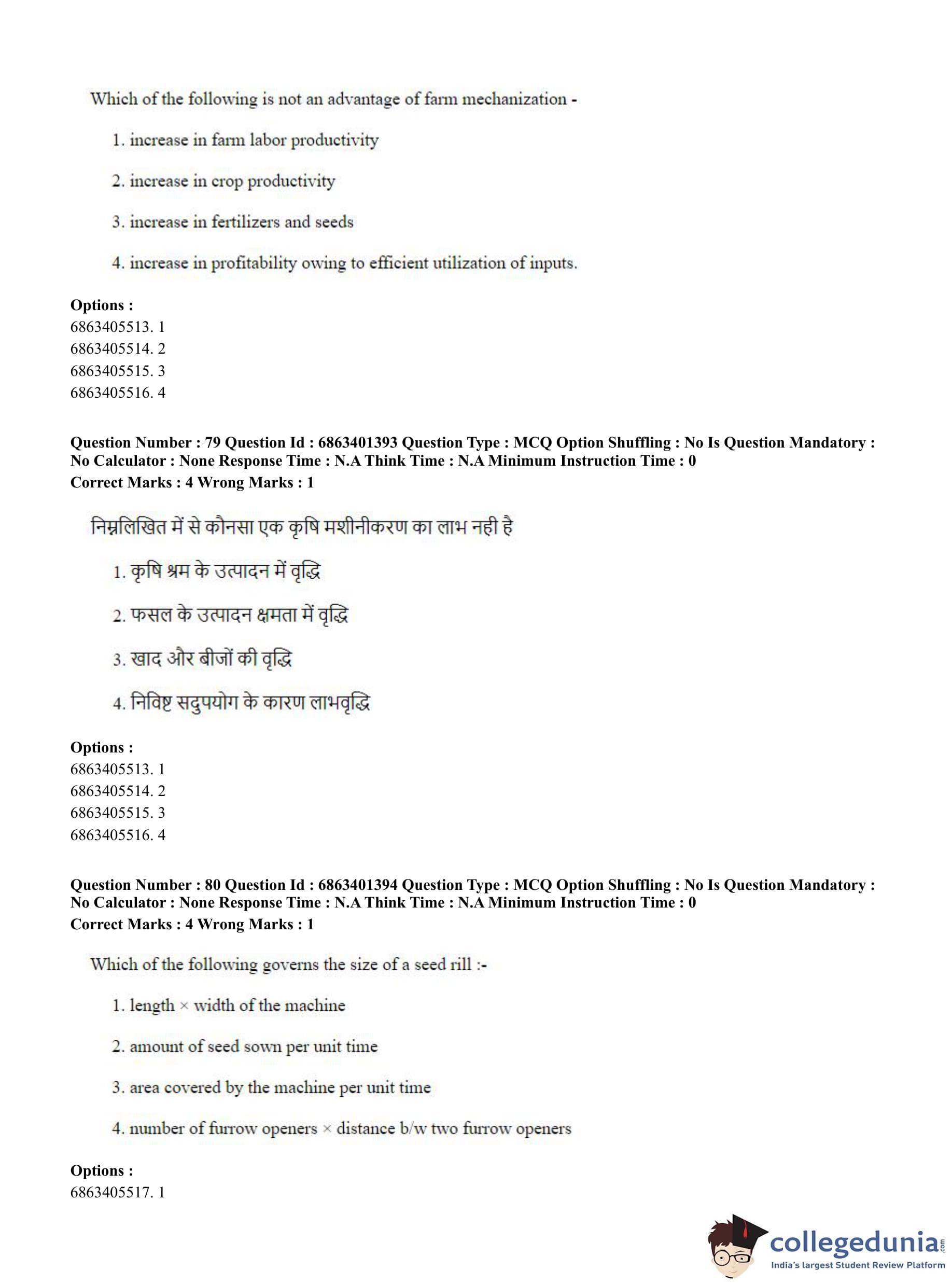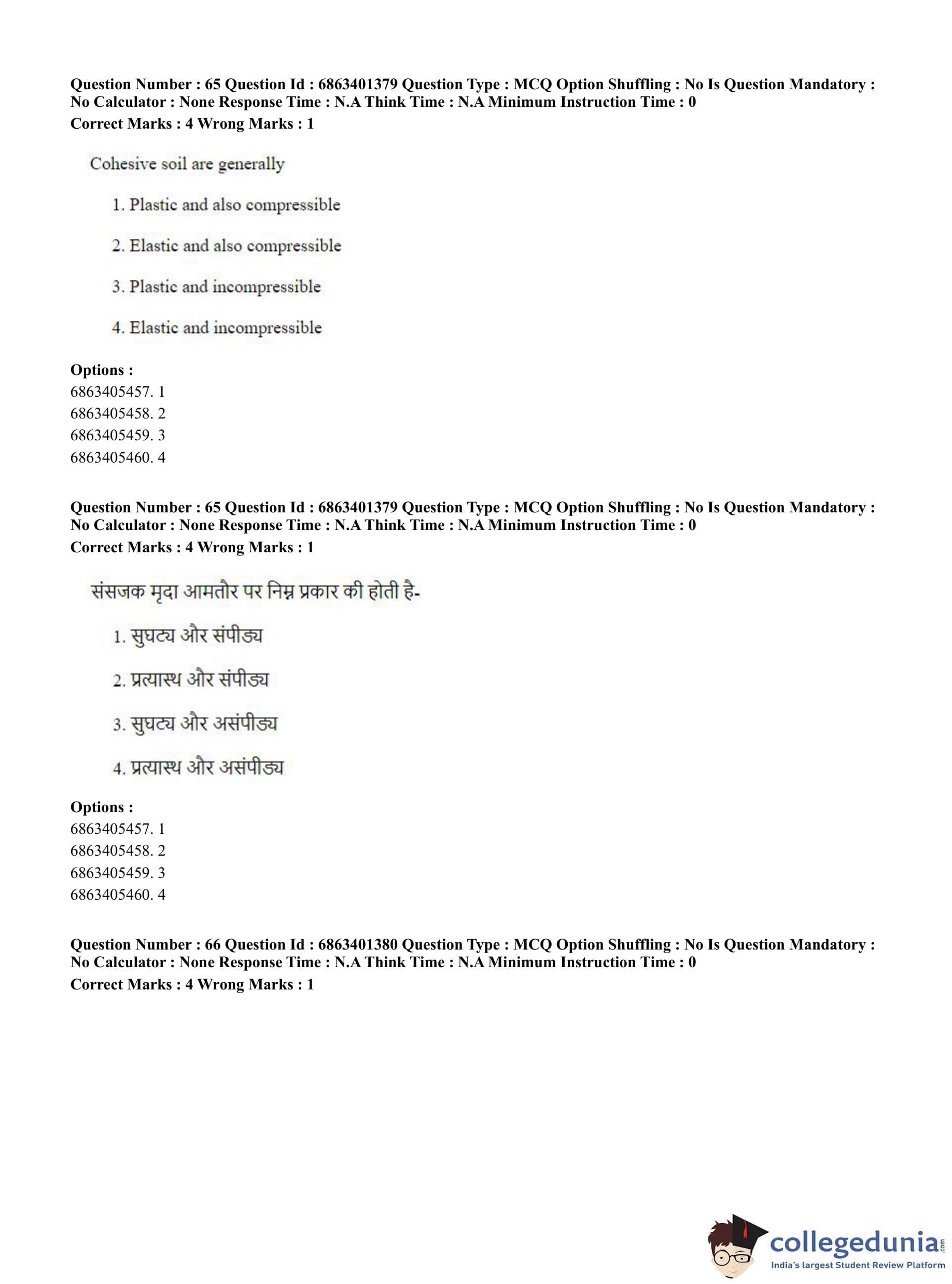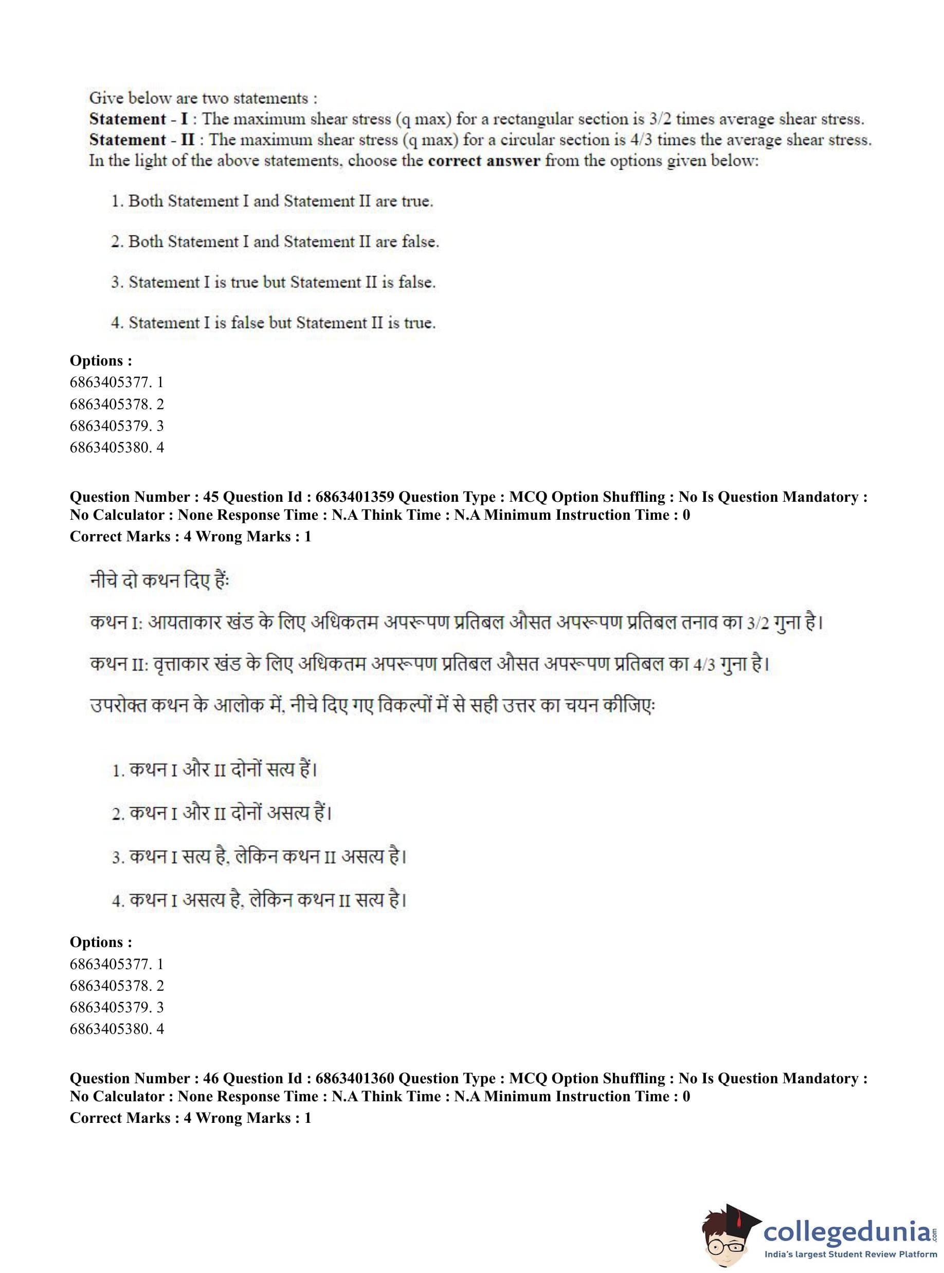 CUET PG 2023 Water Engineering and Management Question Paper in Hindi (June 5 - Shift 2)