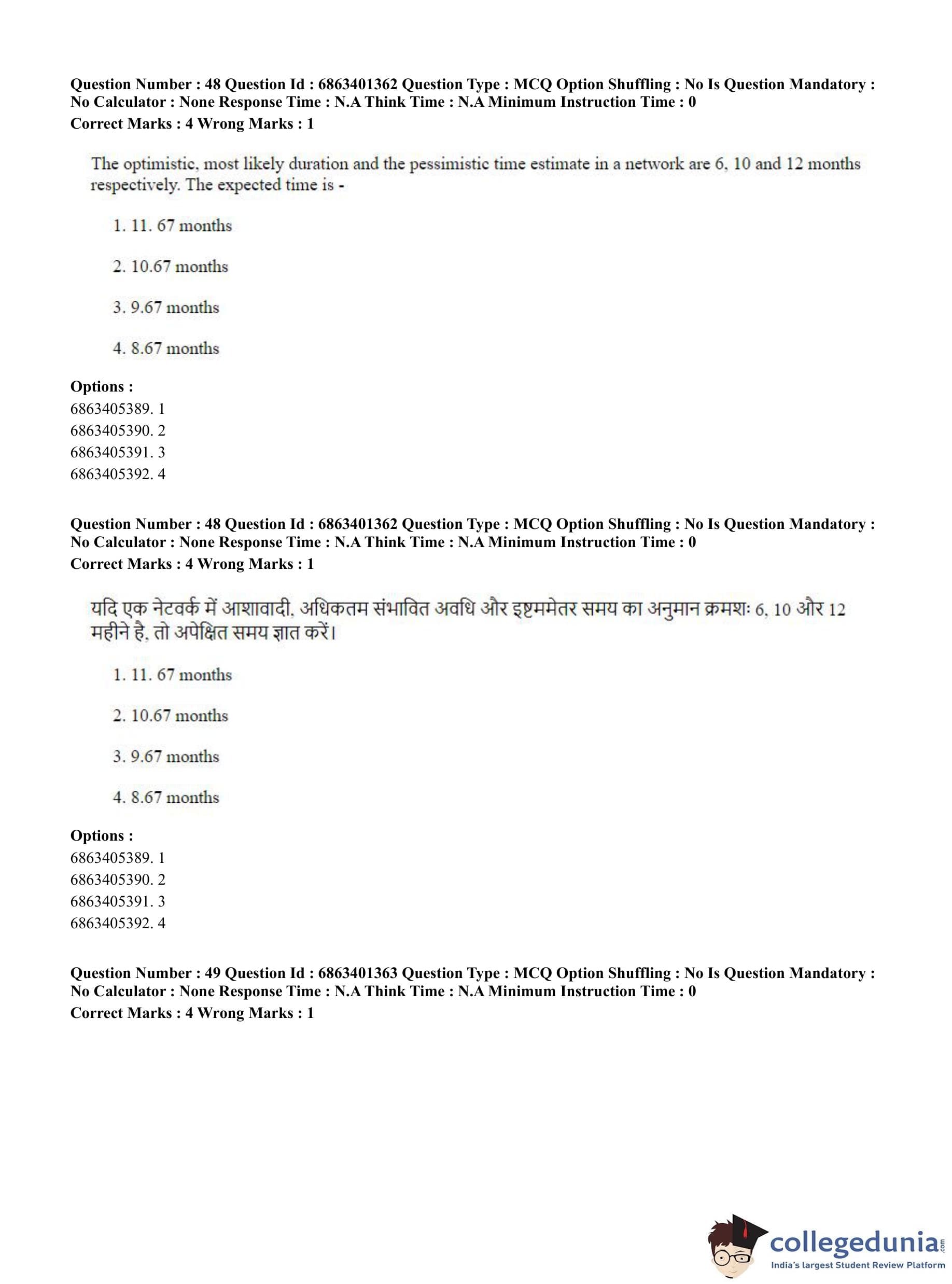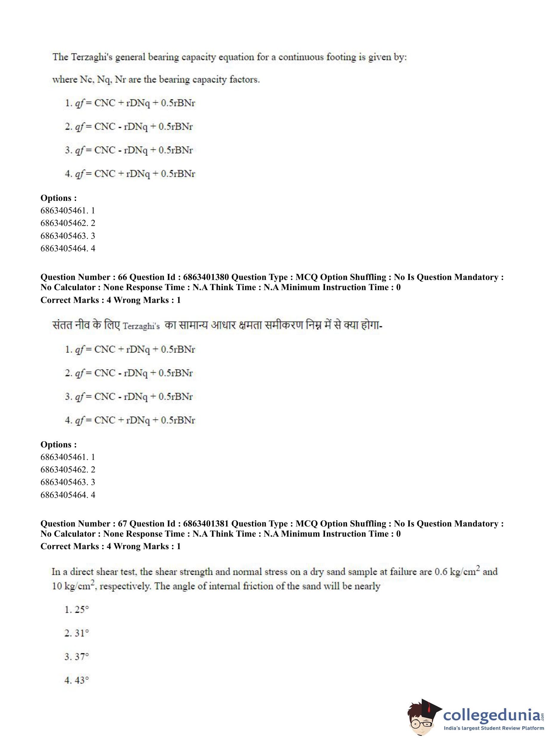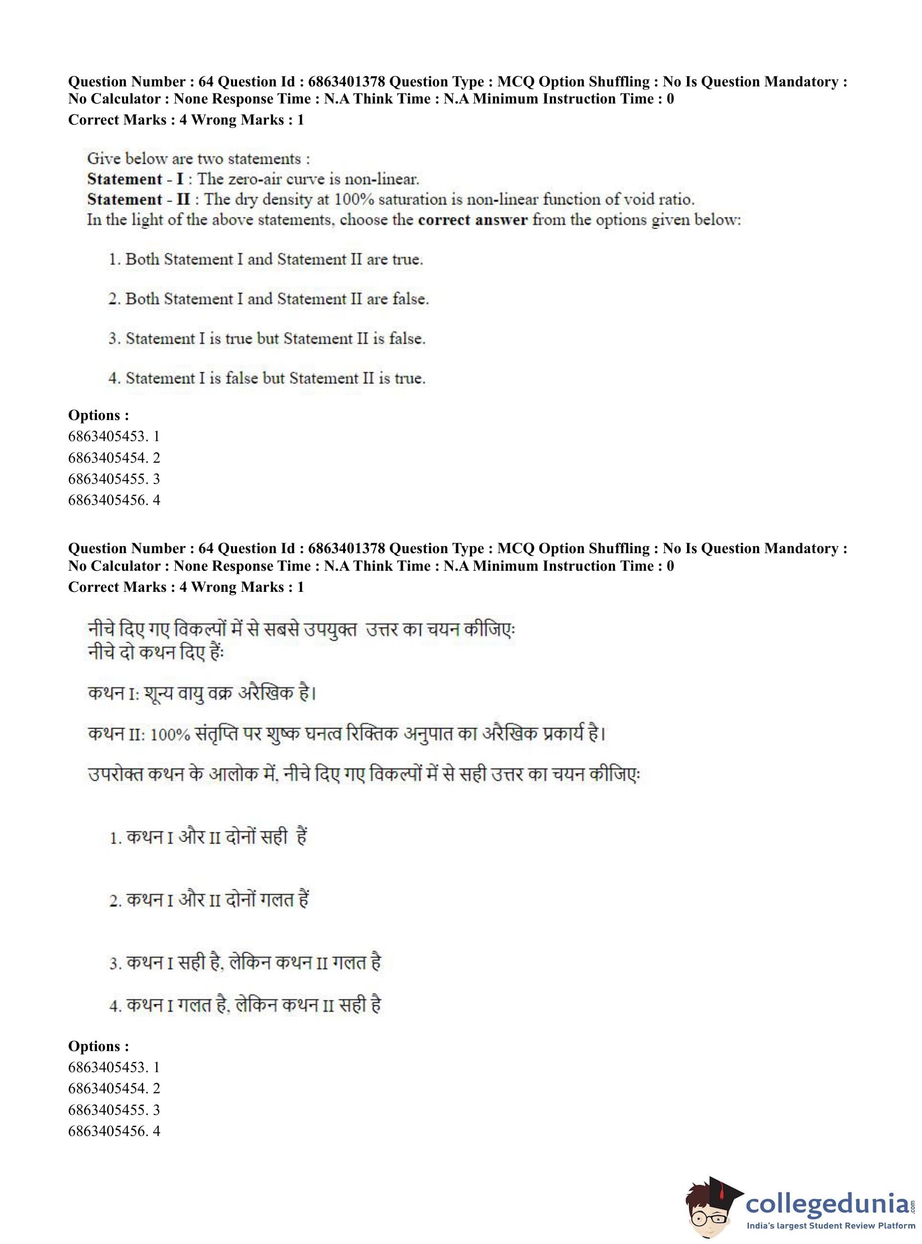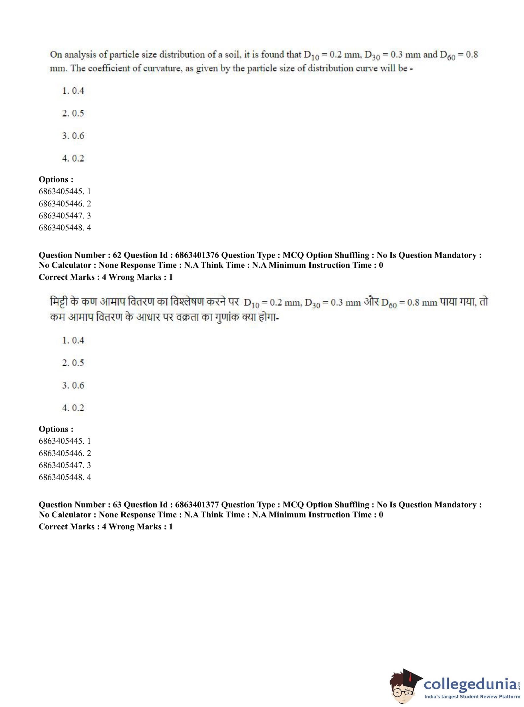 CUET PG 2023 Water Engineering and Management Question Paper in Hindi (June 5 - Shift 2)
