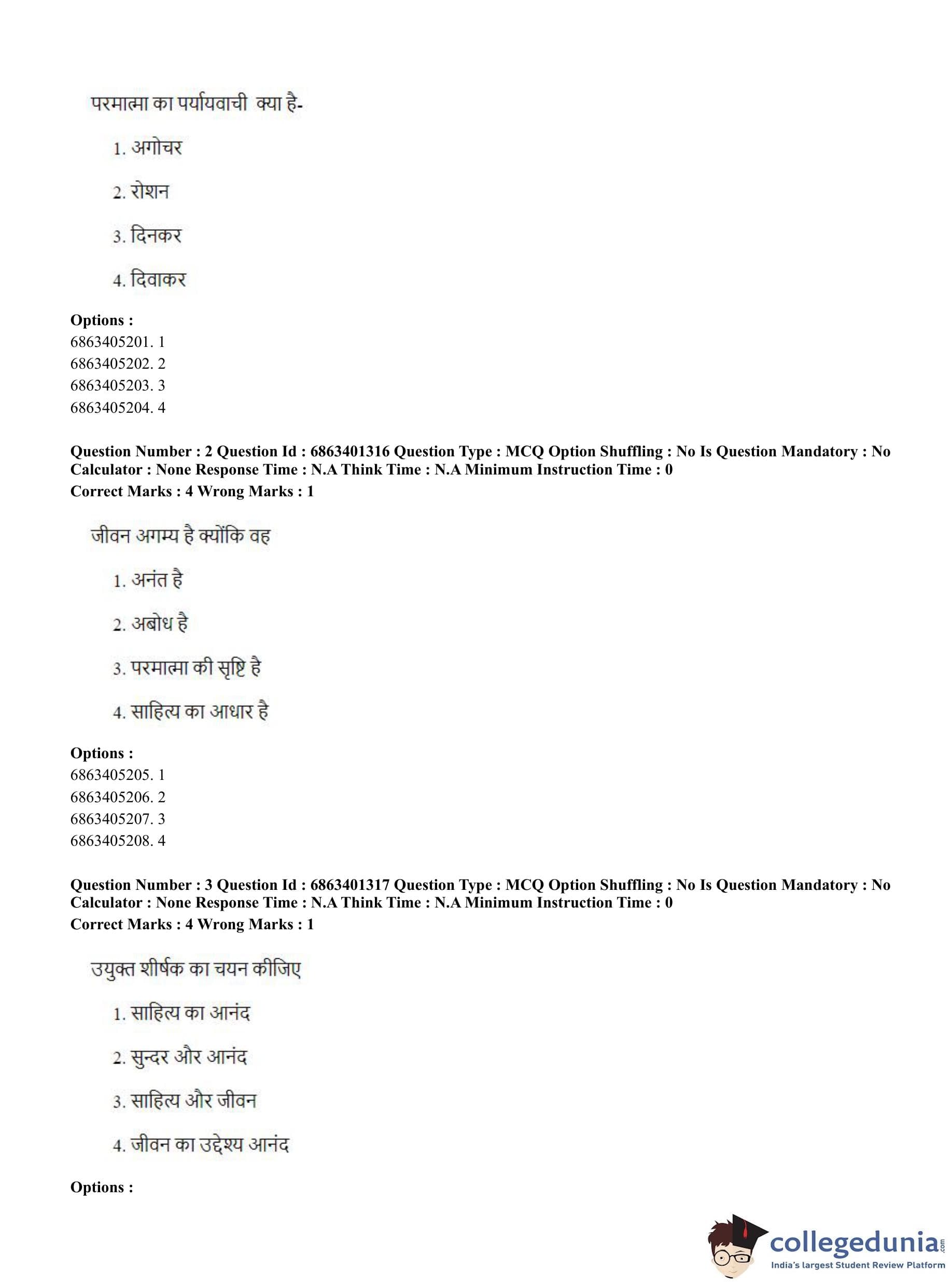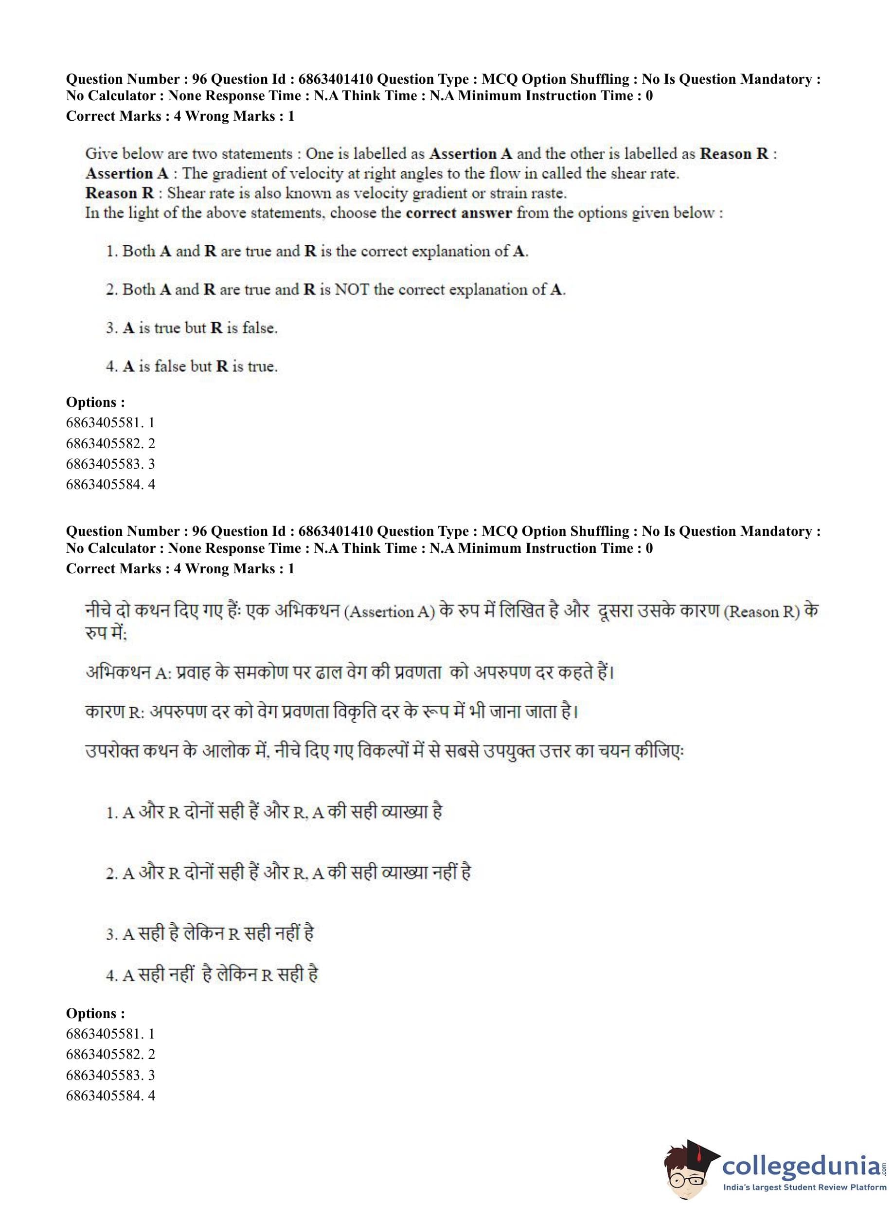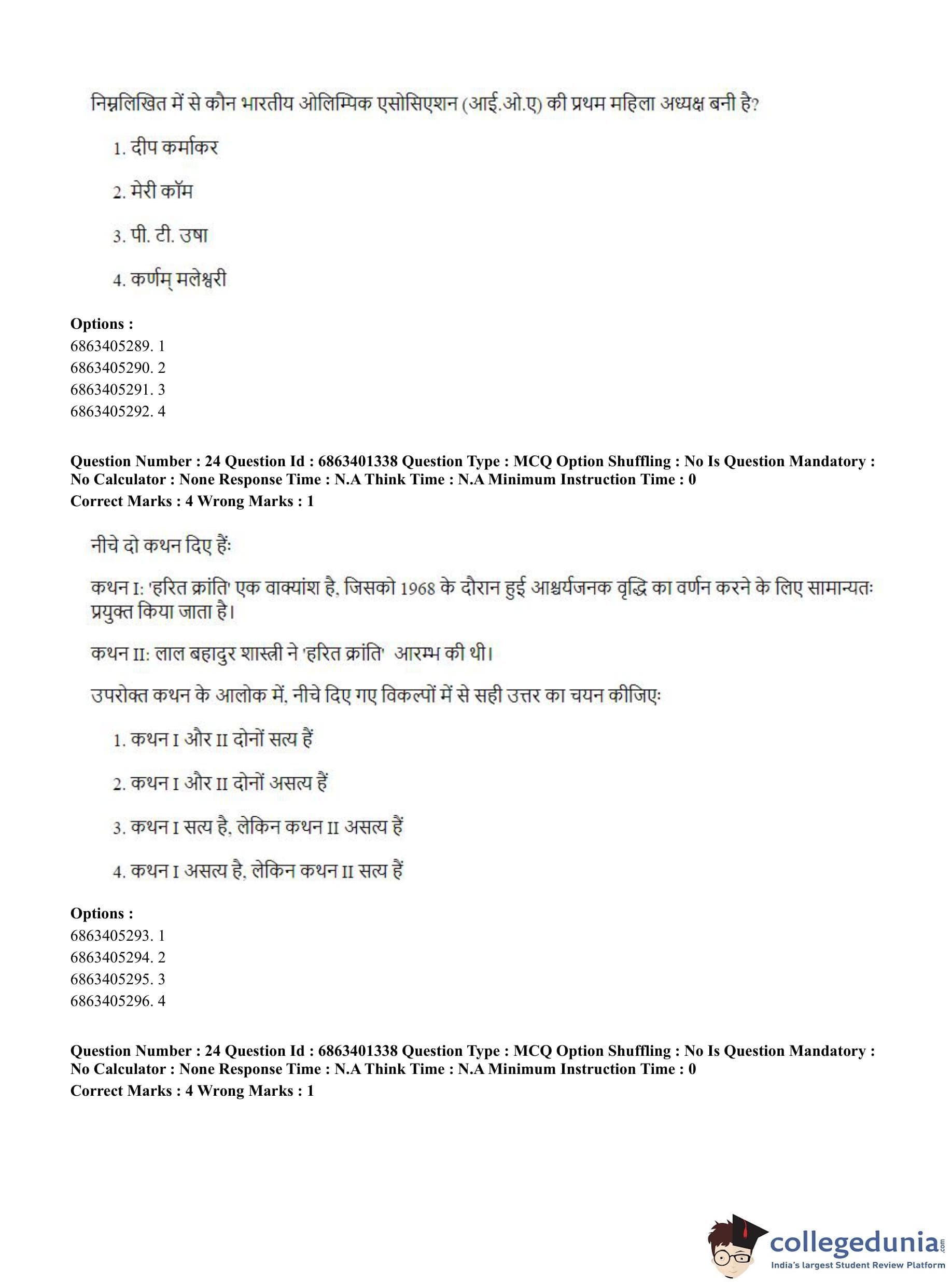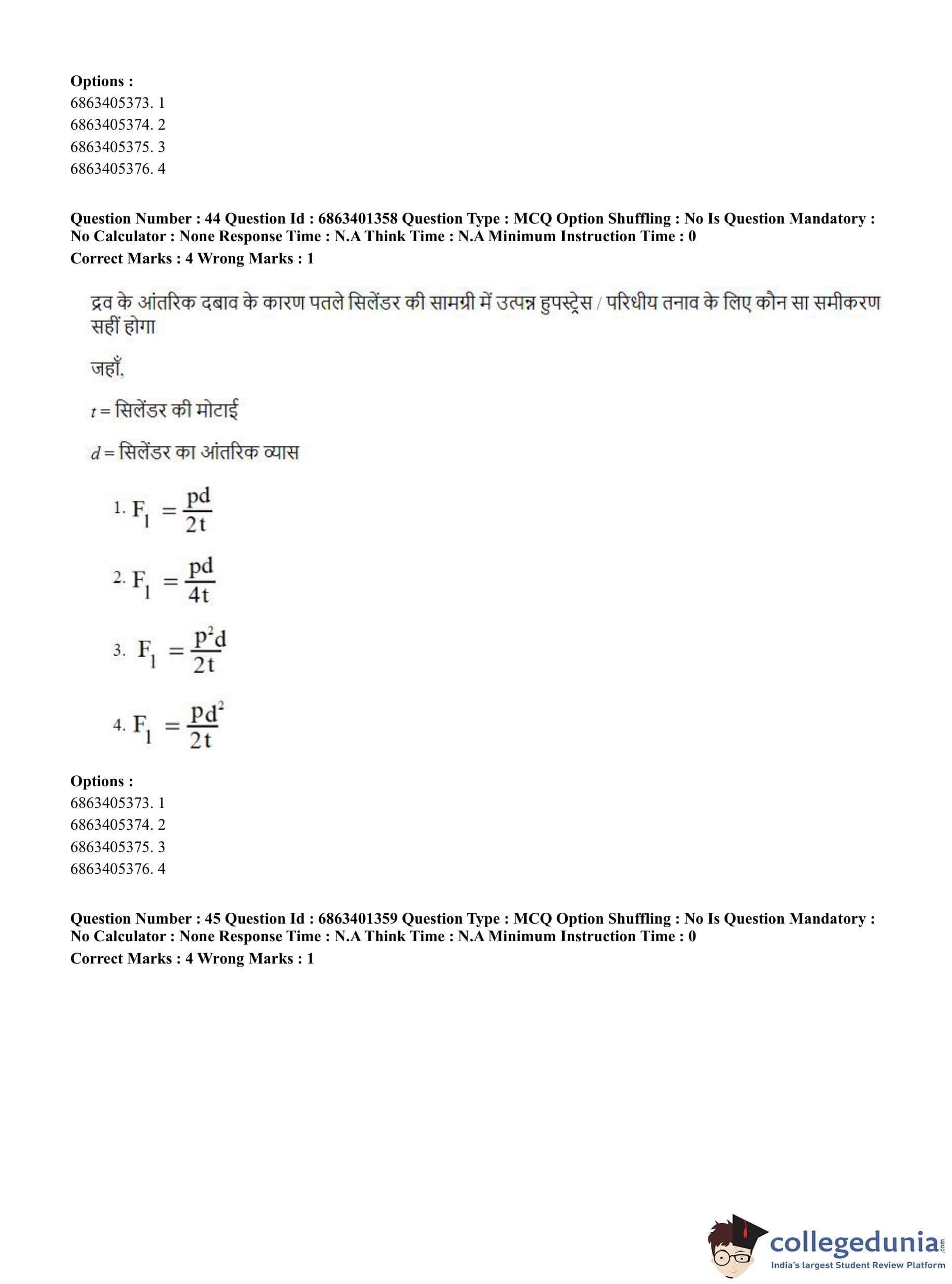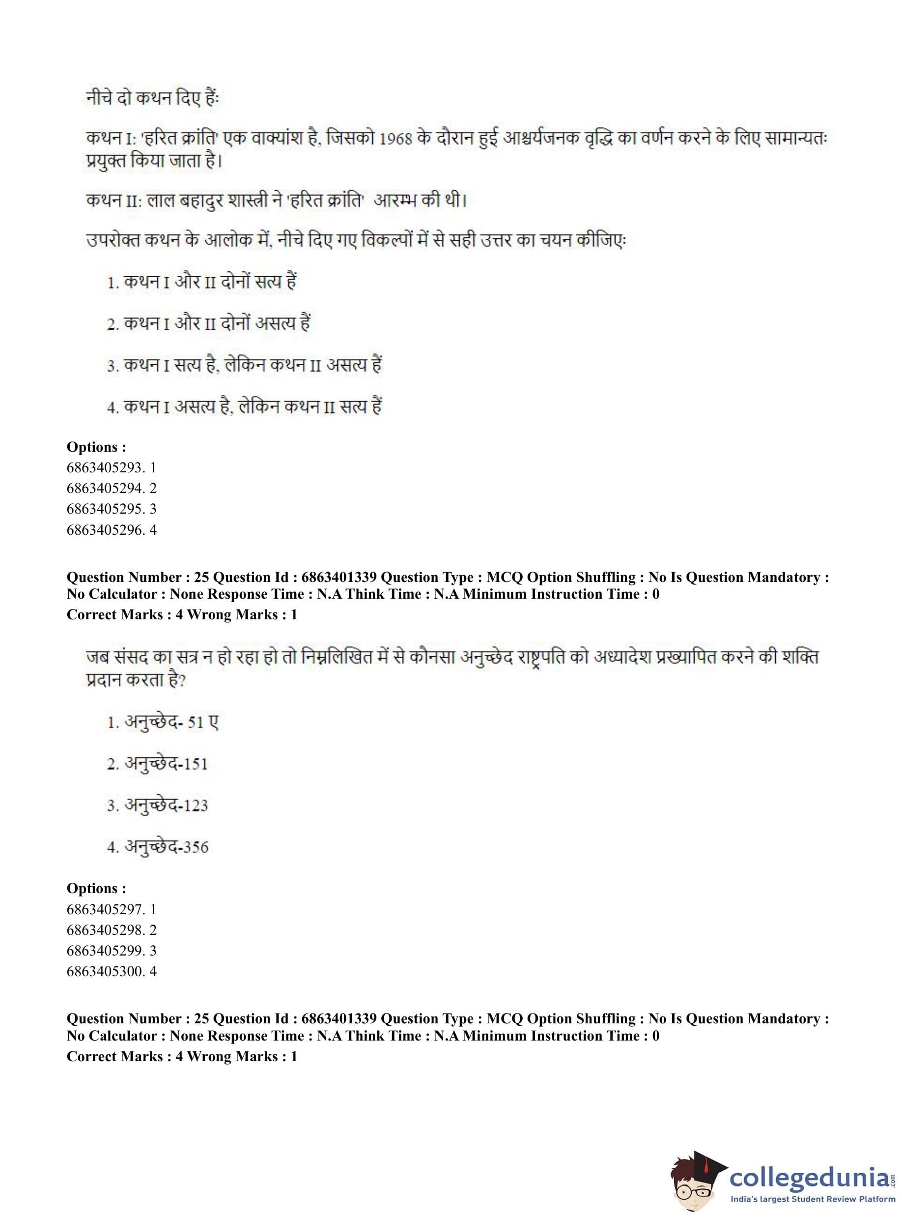 CUET PG 2023 Water Engineering and Management Question Paper in Hindi (June 5 - Shift 2)