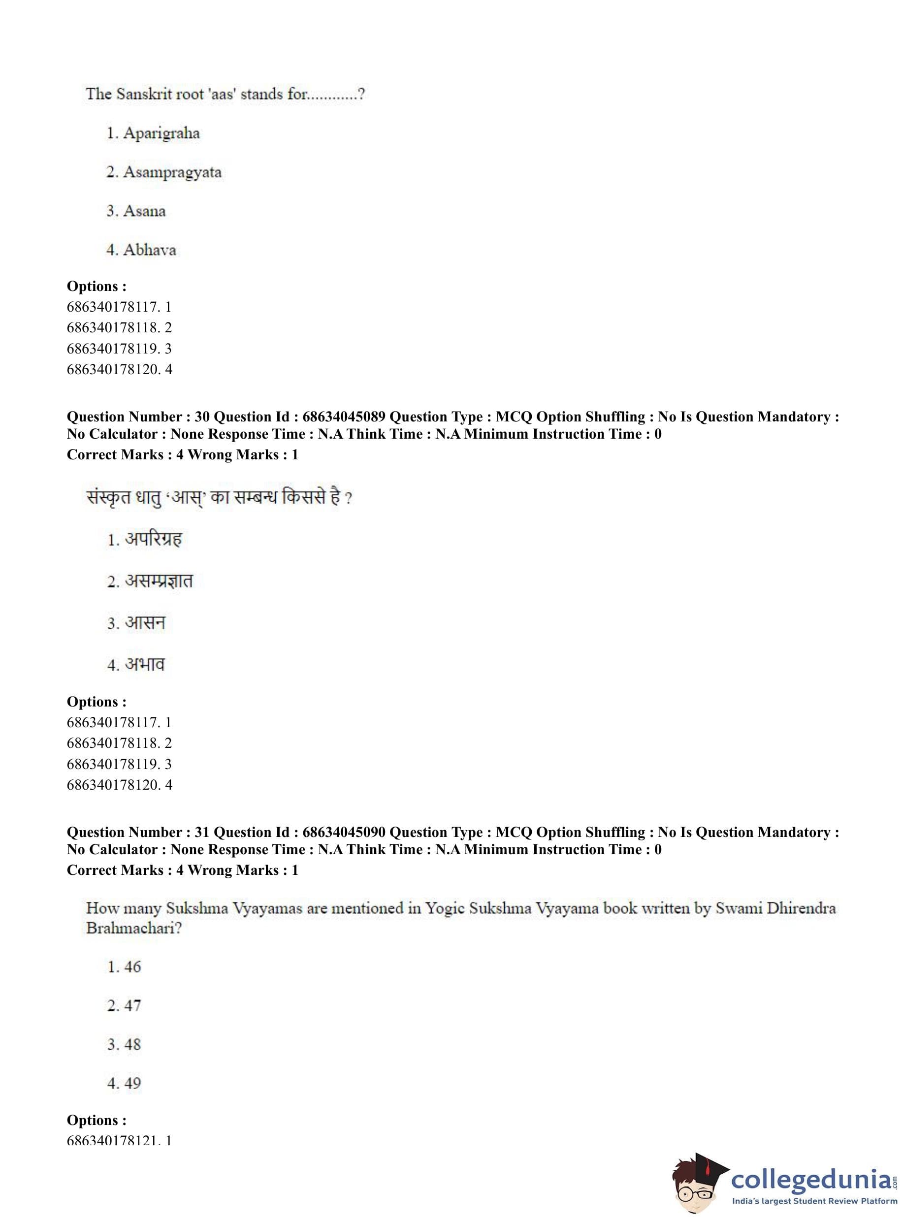 CUET PG 2023 Yoga Question Paper in English (June 30 - Shift 3)