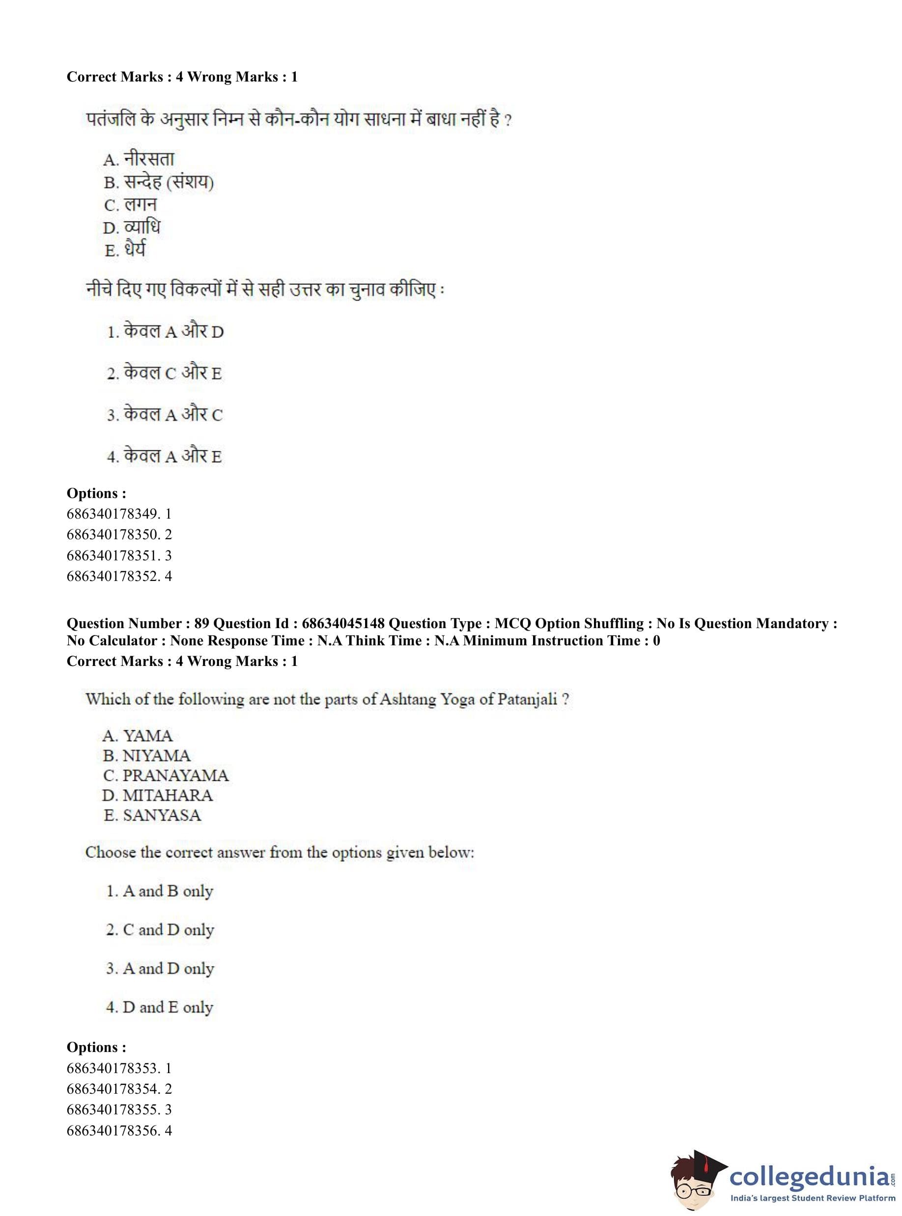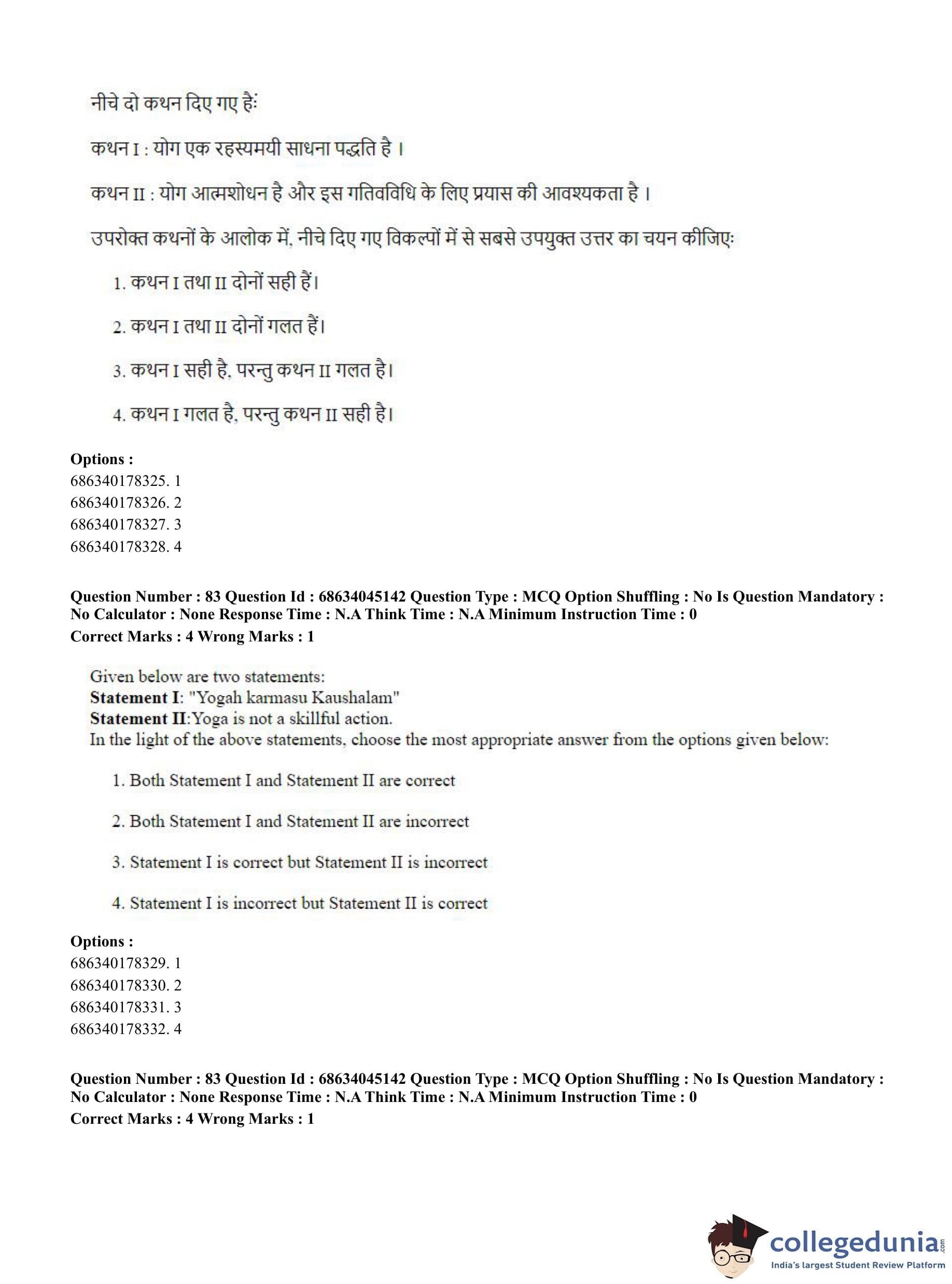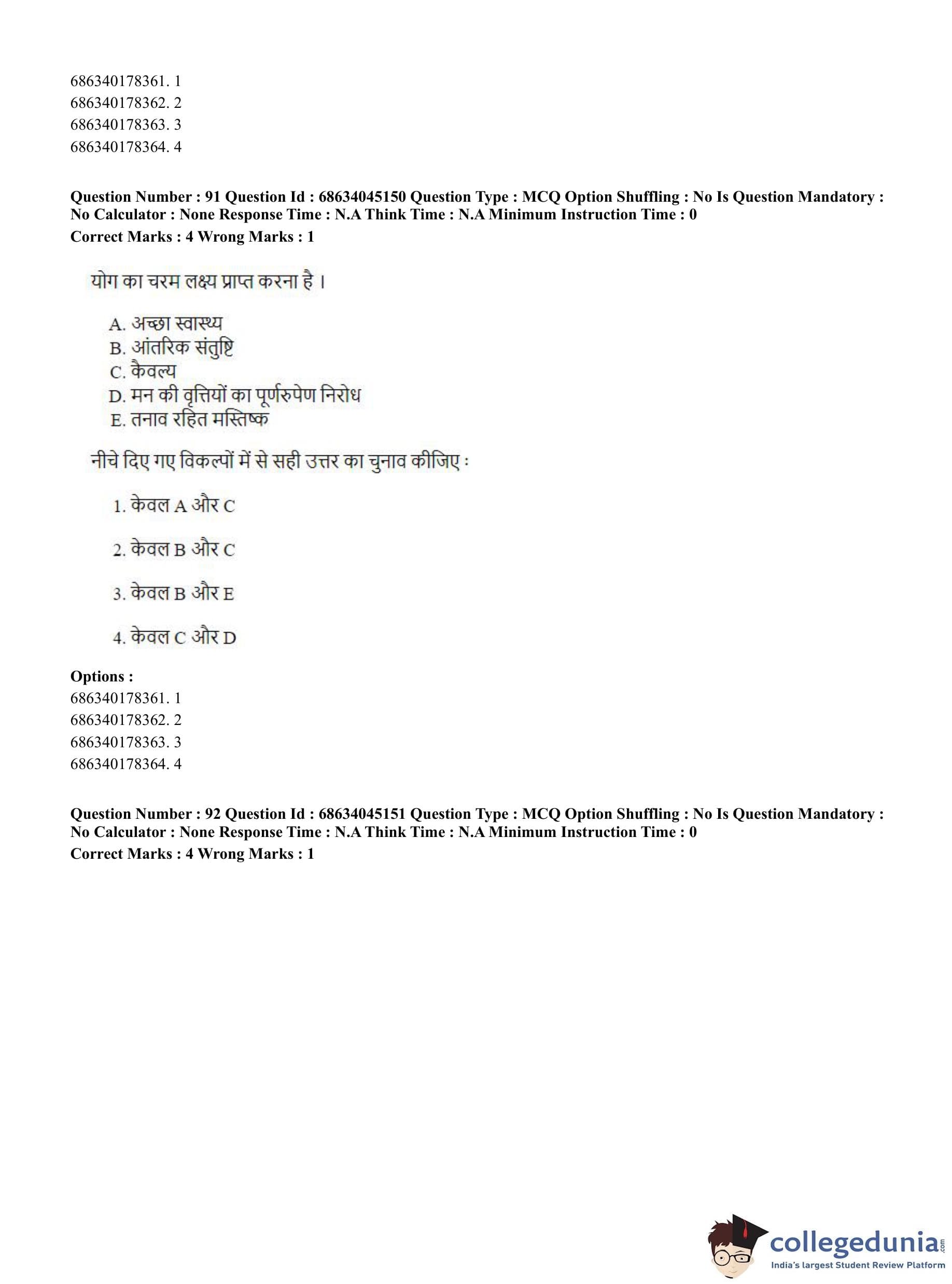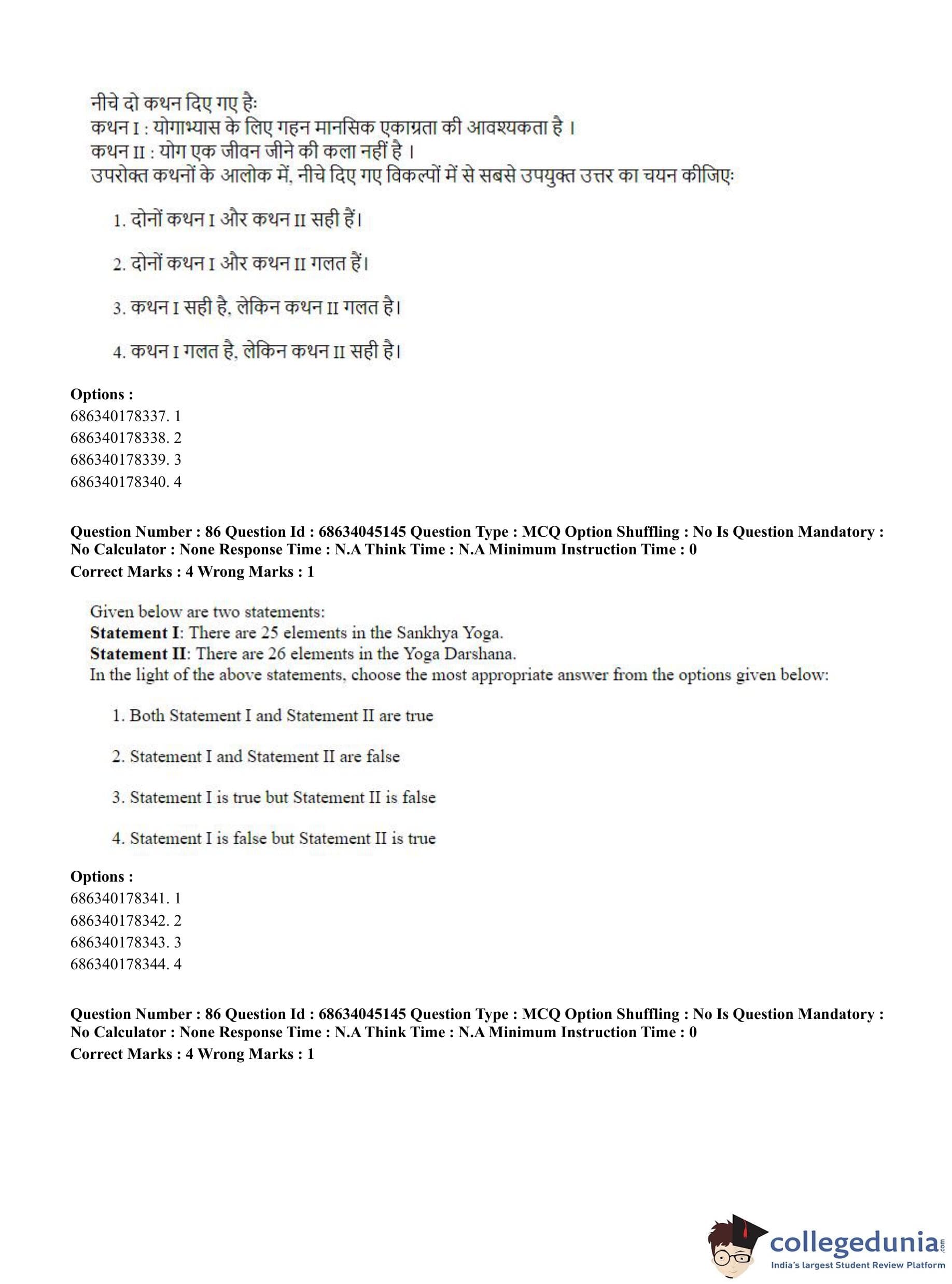 CUET PG 2023 Yoga Question Paper with Answer Key PDF in English is available for download here. The exam was conducted by National Testing Agency (NTA) on June 30, 2023 in Shift 3. The question paper comprised a total of 100 questions divided into 2 sections.