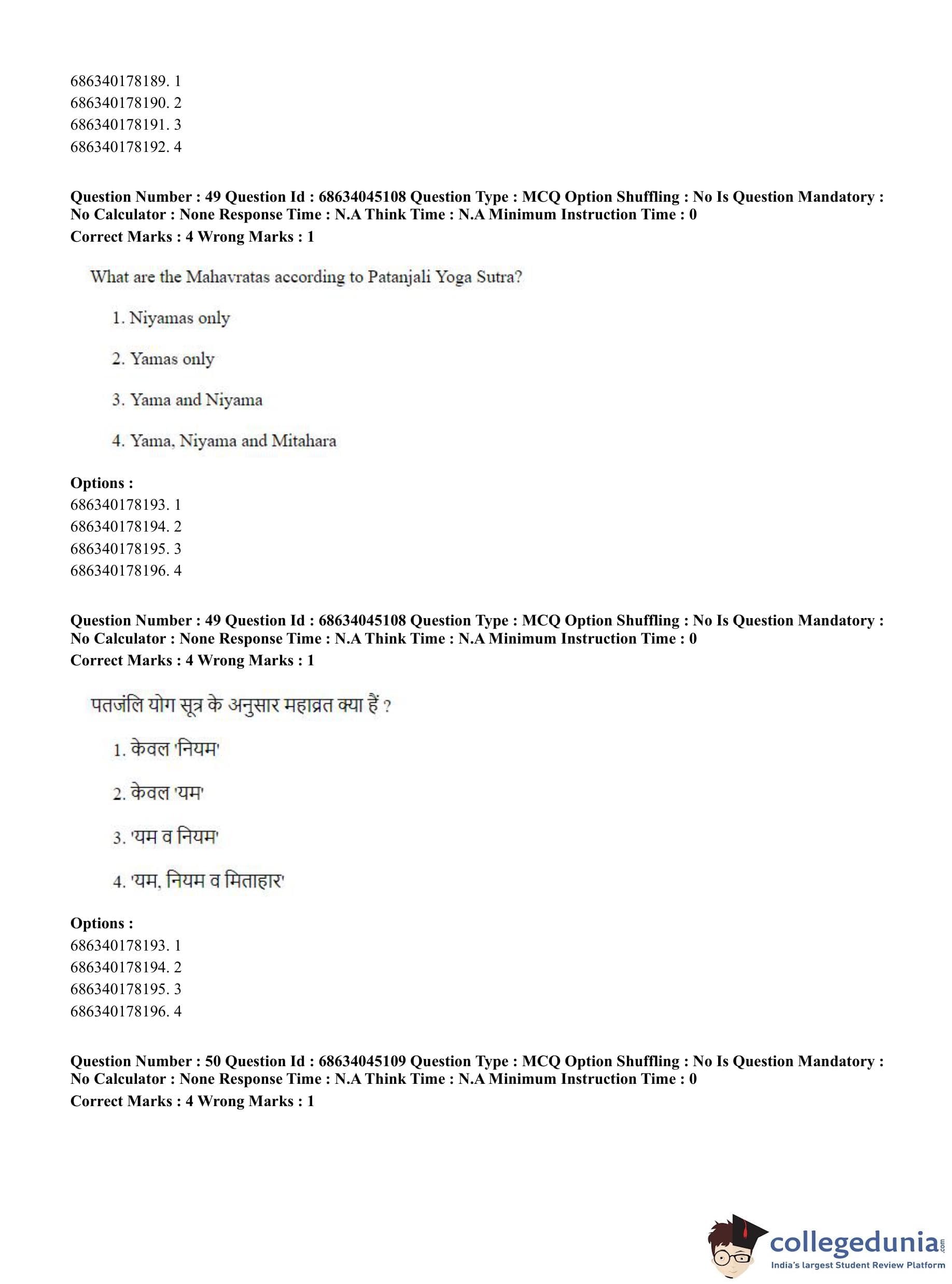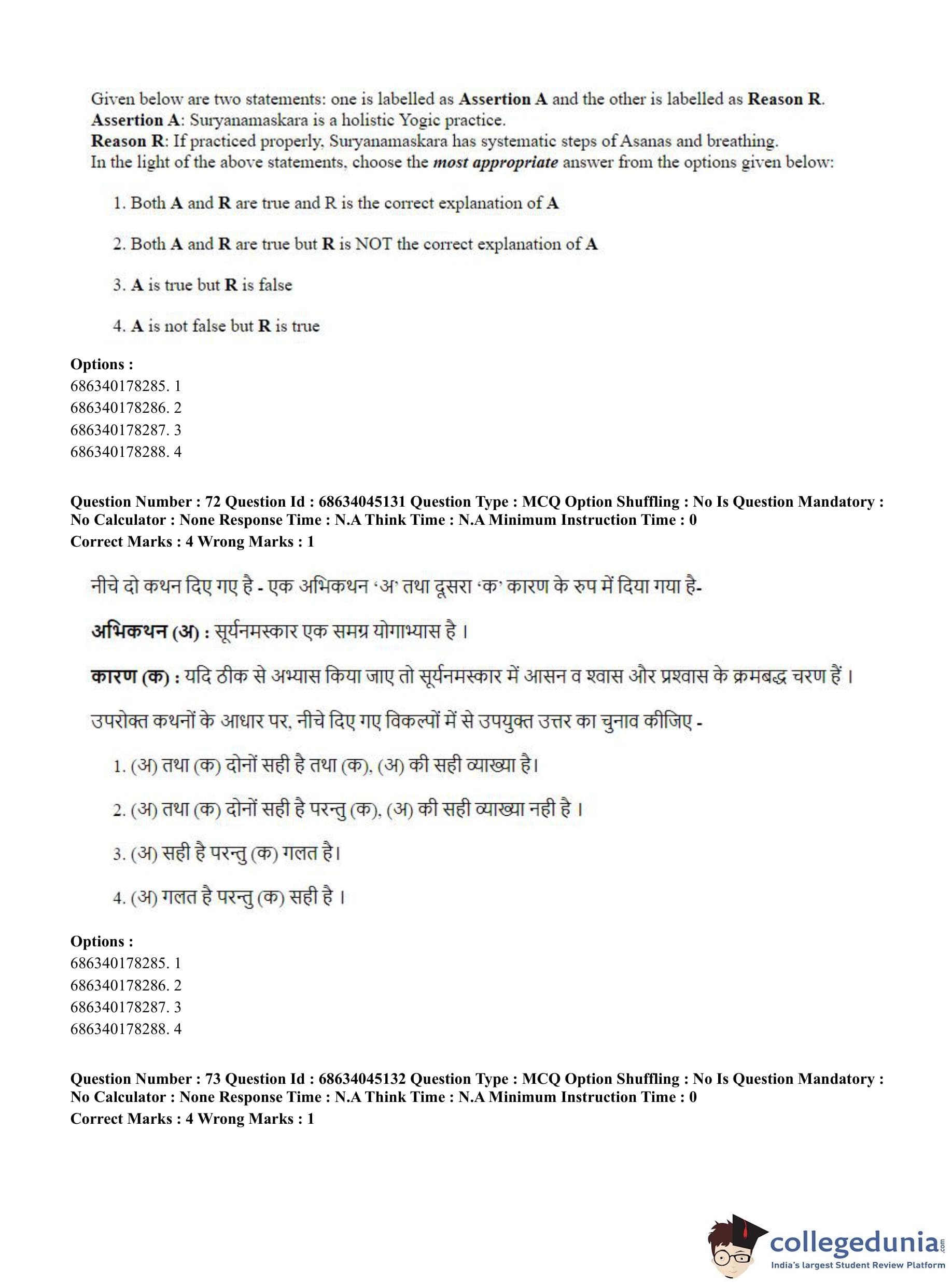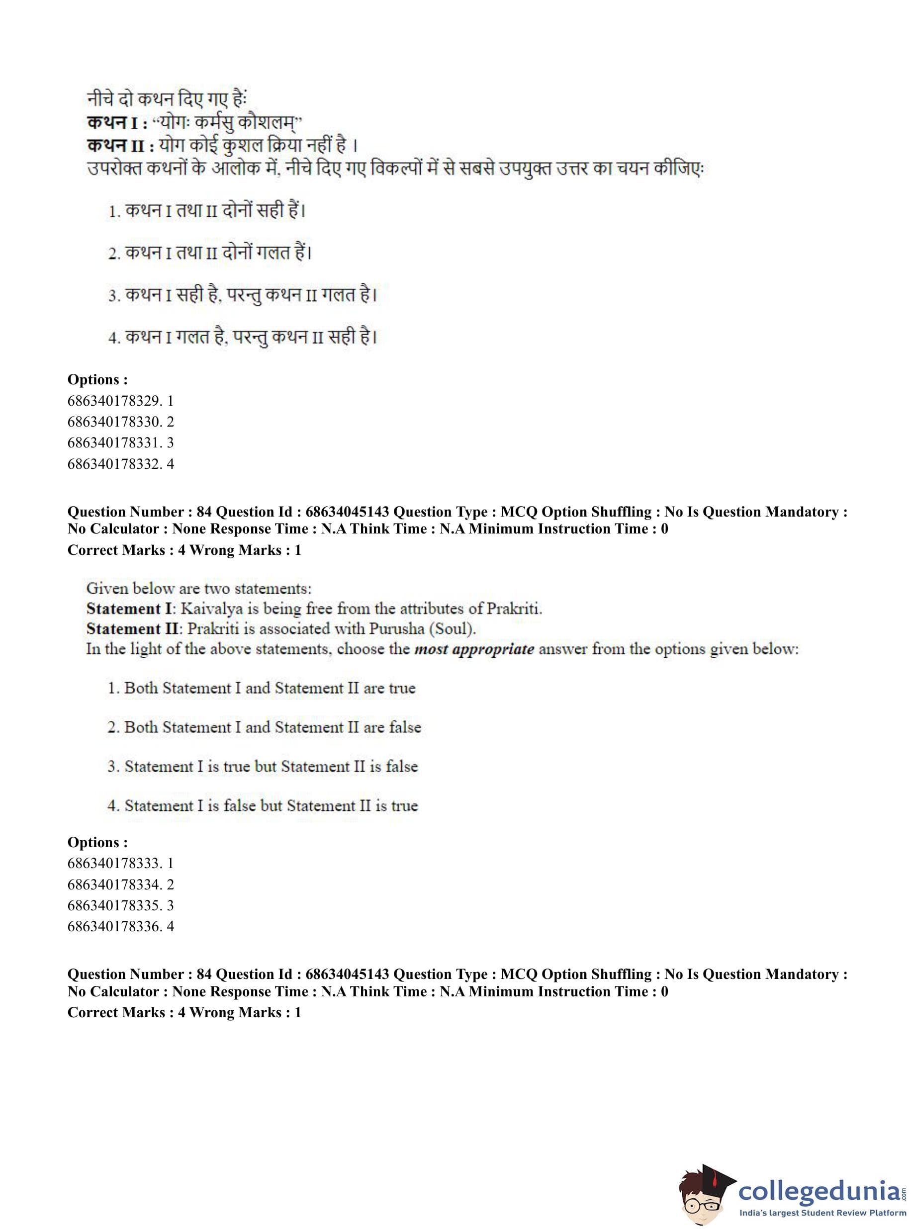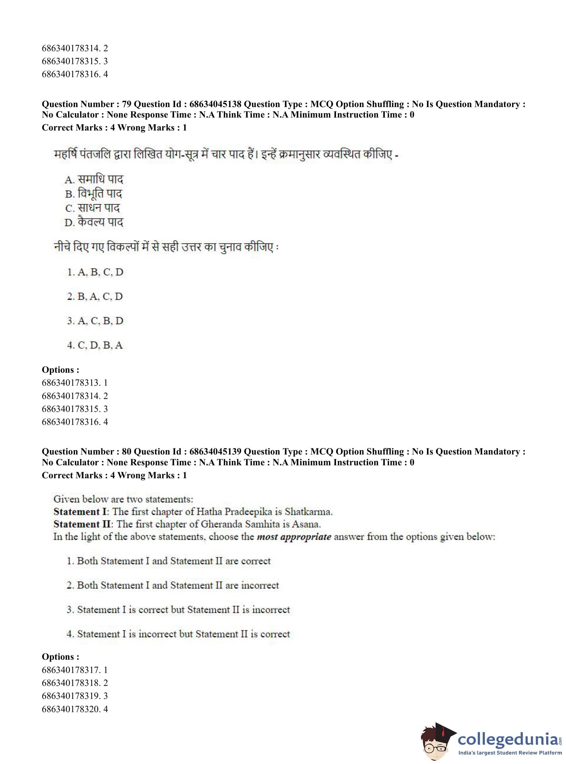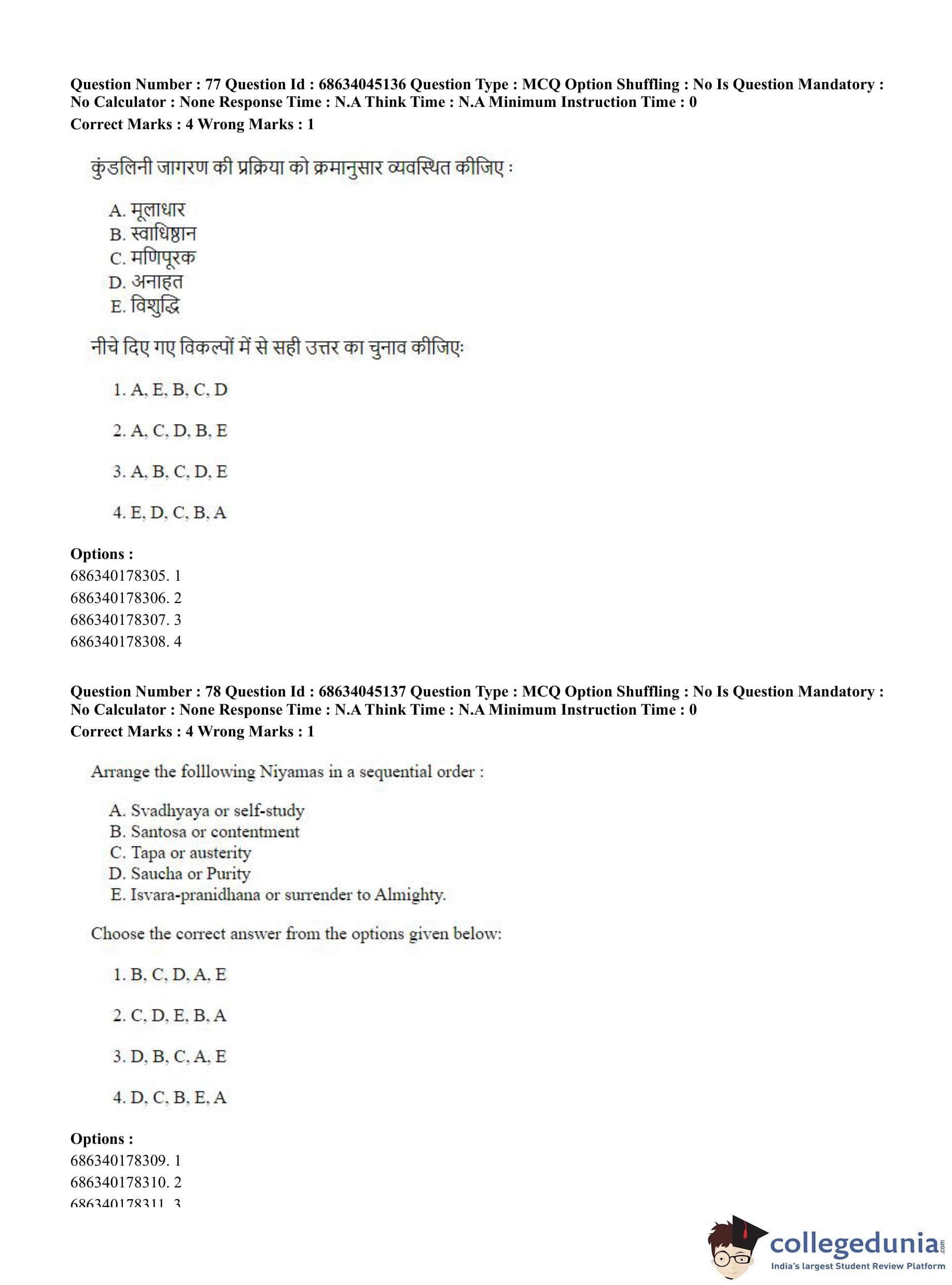 CUET PG 2023 Yoga Question Paper with Answer Key PDF in English is available for download here. The exam was conducted by National Testing Agency (NTA) on June 30, 2023 in Shift 3. The question paper comprised a total of 100 questions divided into 2 sections.