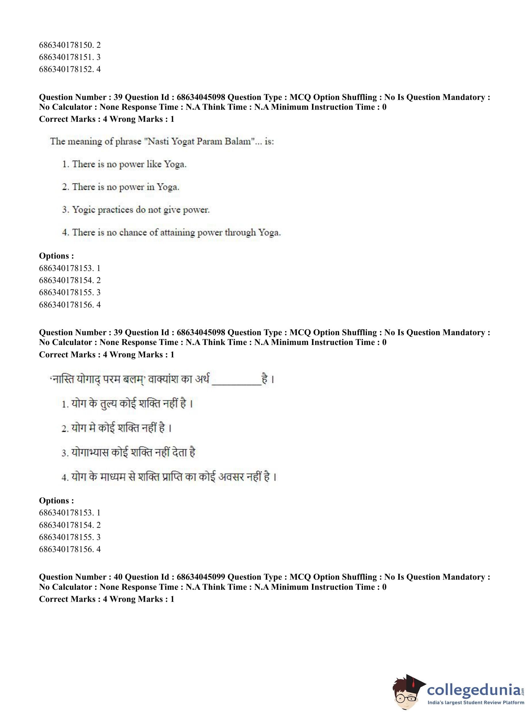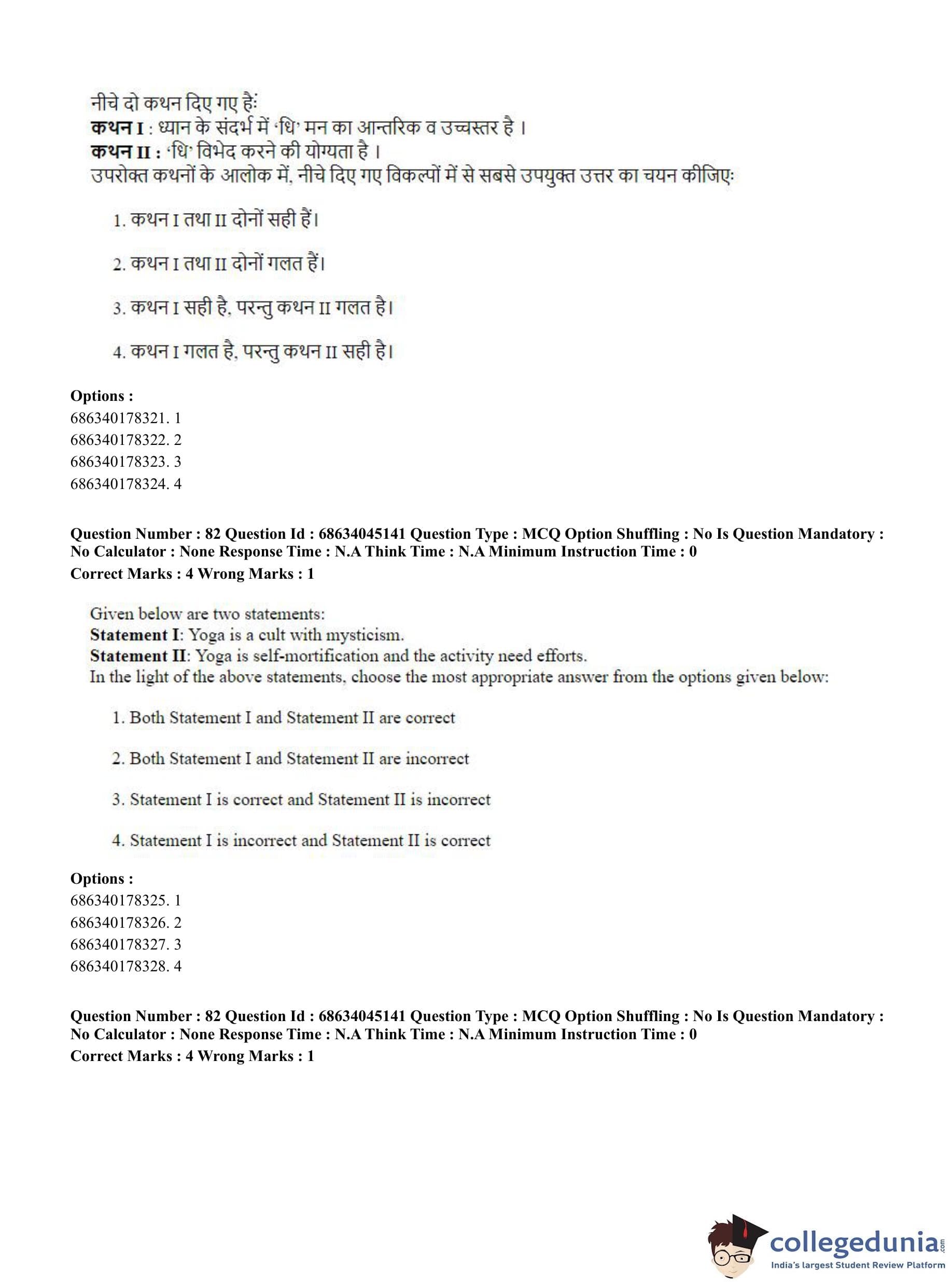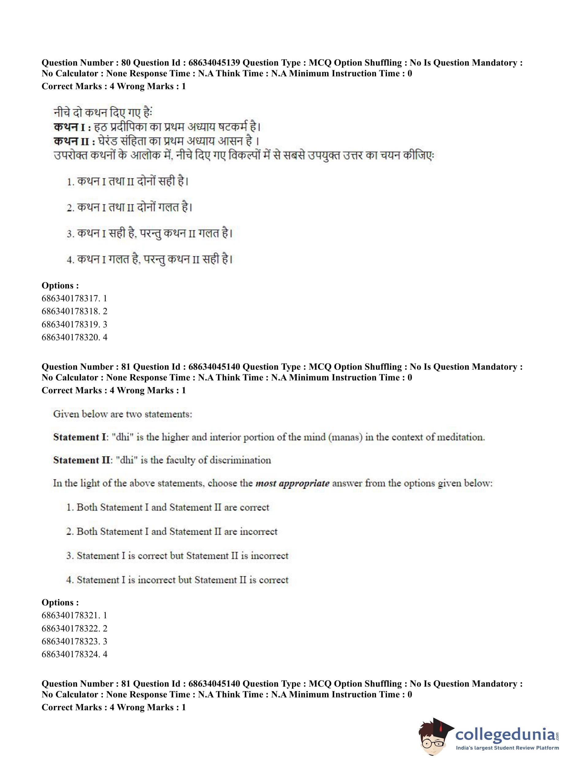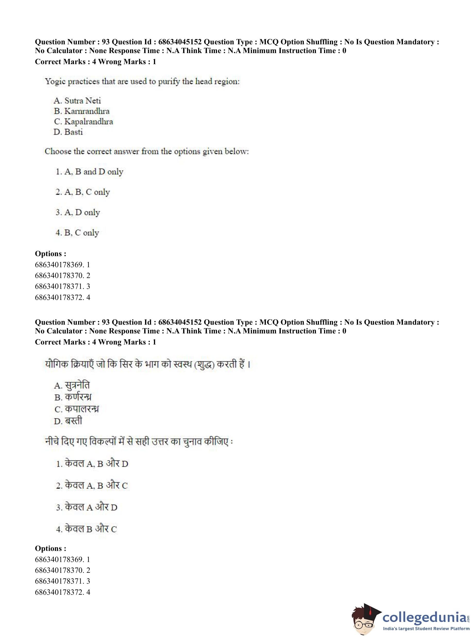 CUET PG 2023 Yoga Question Paper with Answer Key PDF in English is available for download here. The exam was conducted by National Testing Agency (NTA) on June 30, 2023 in Shift 3. The question paper comprised a total of 100 questions divided into 2 sections.