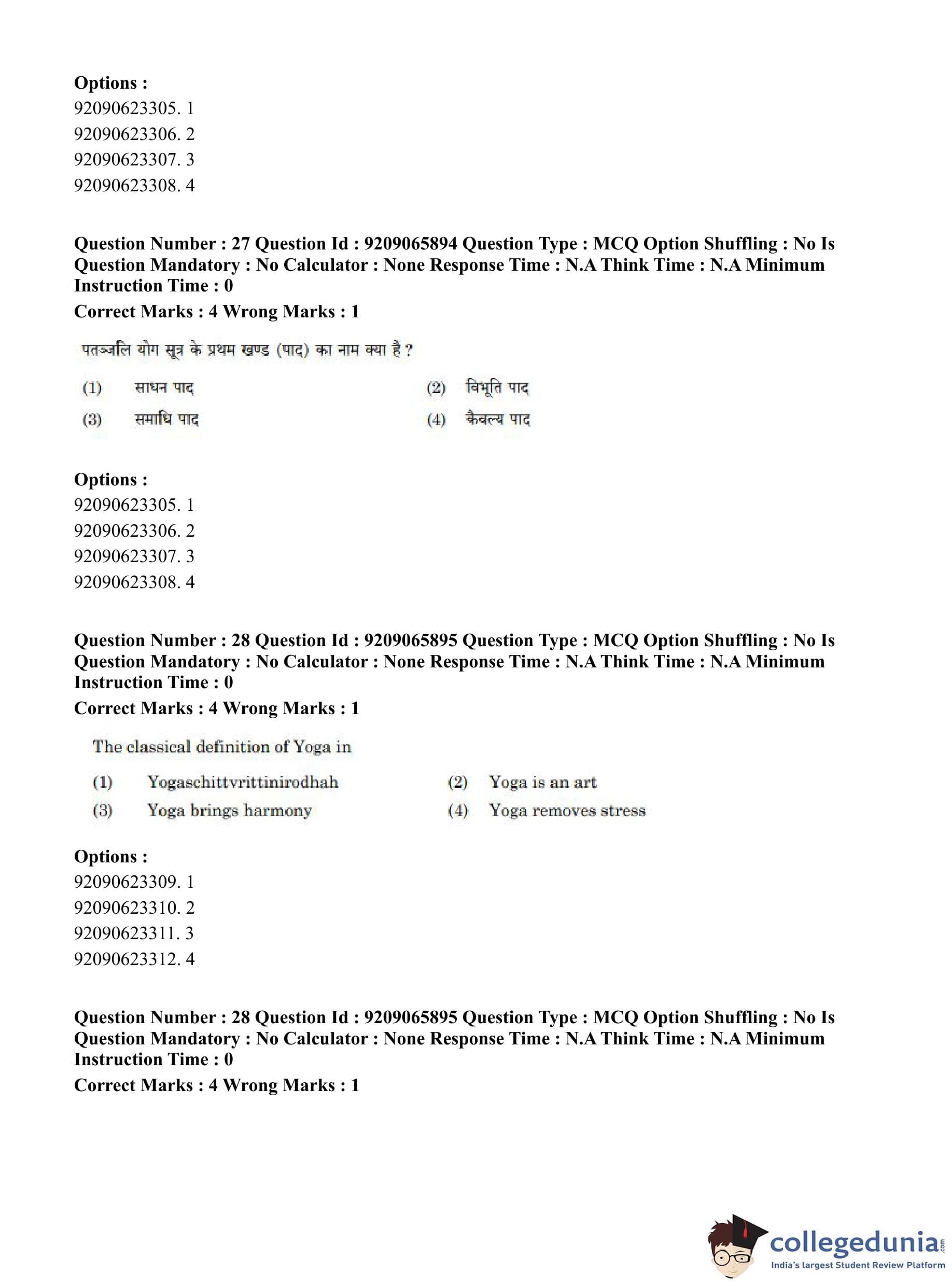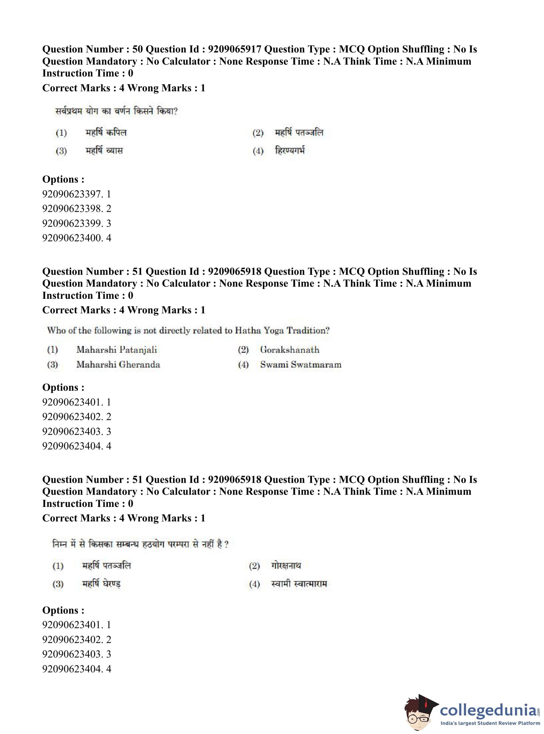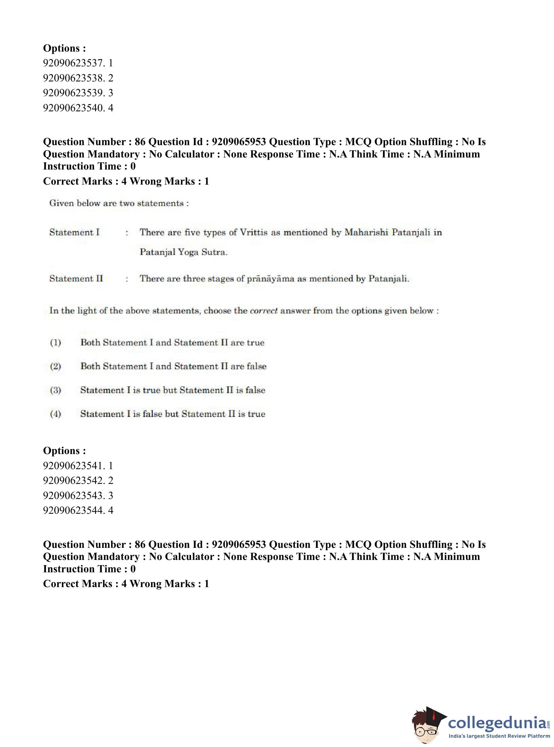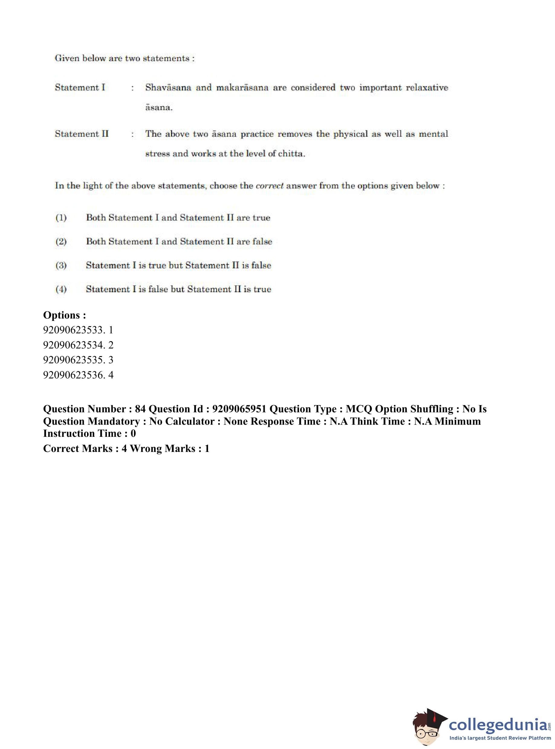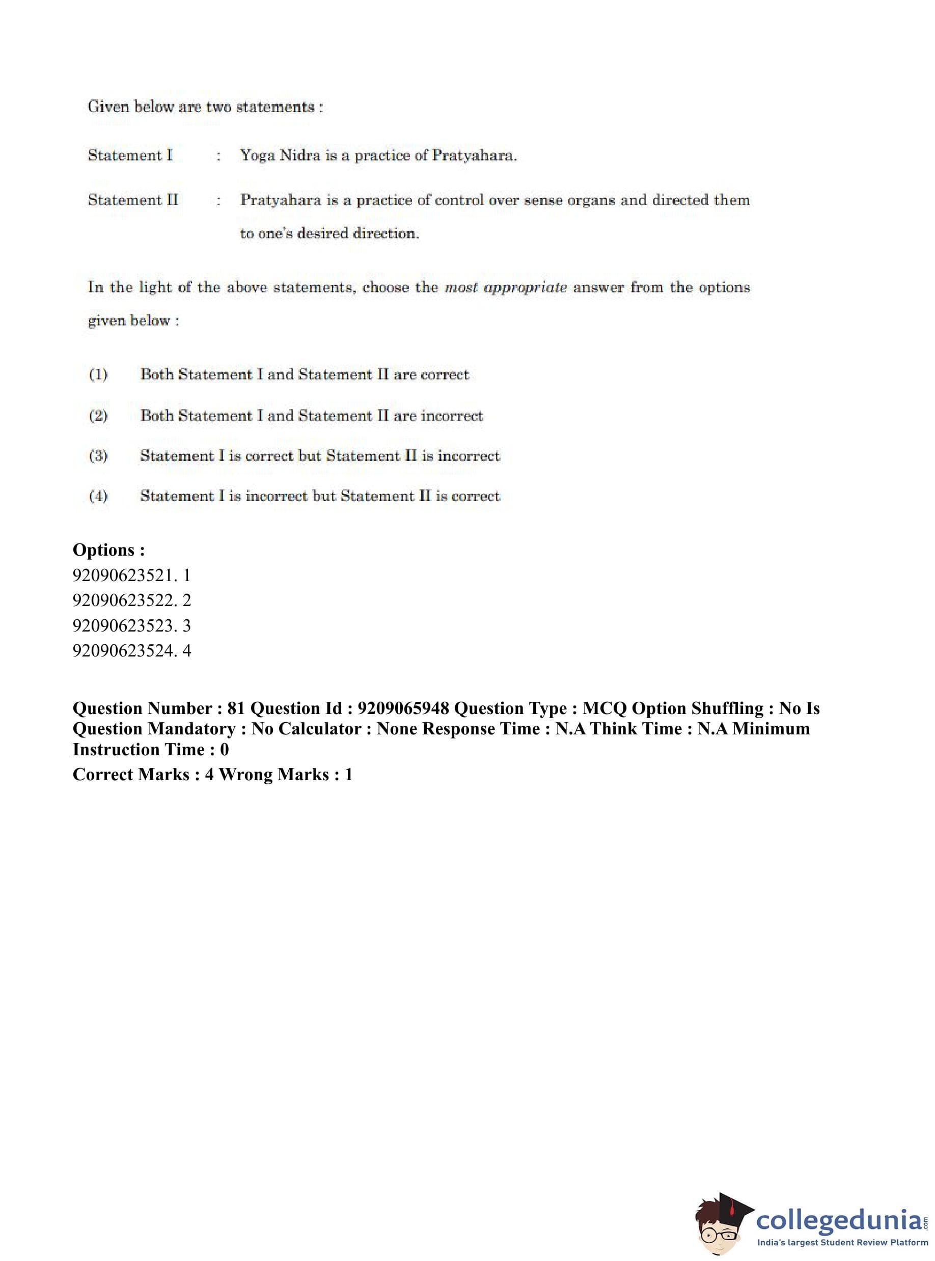 CUET PG 2023 Yoga Question Paper with Answer Key PDF IN English is available for download here. The exam was conducted by National Testing Agency (NTA) on June 8, 2023 in Shift 1. The question paper comprised a total of 100 questions divided into 2 sections.