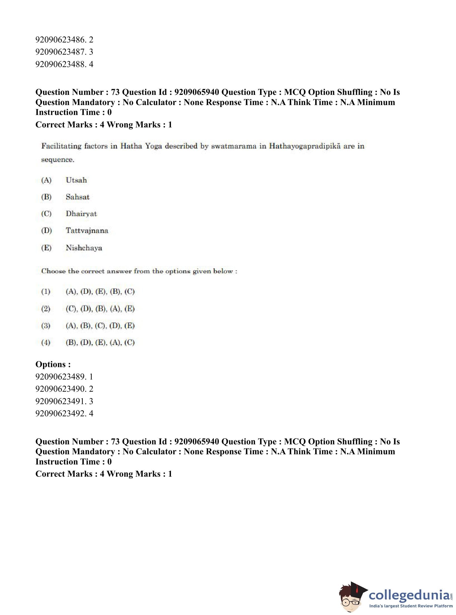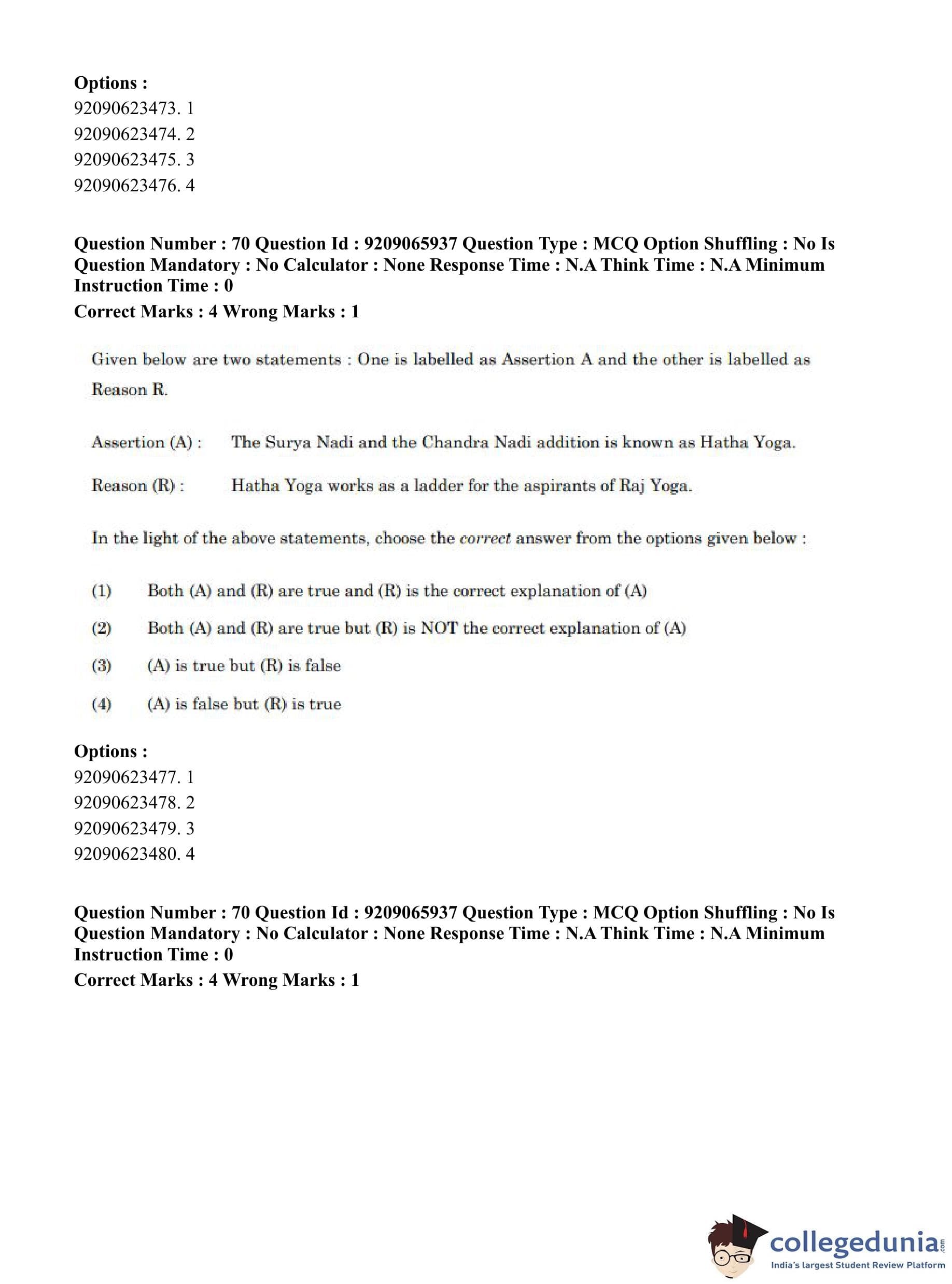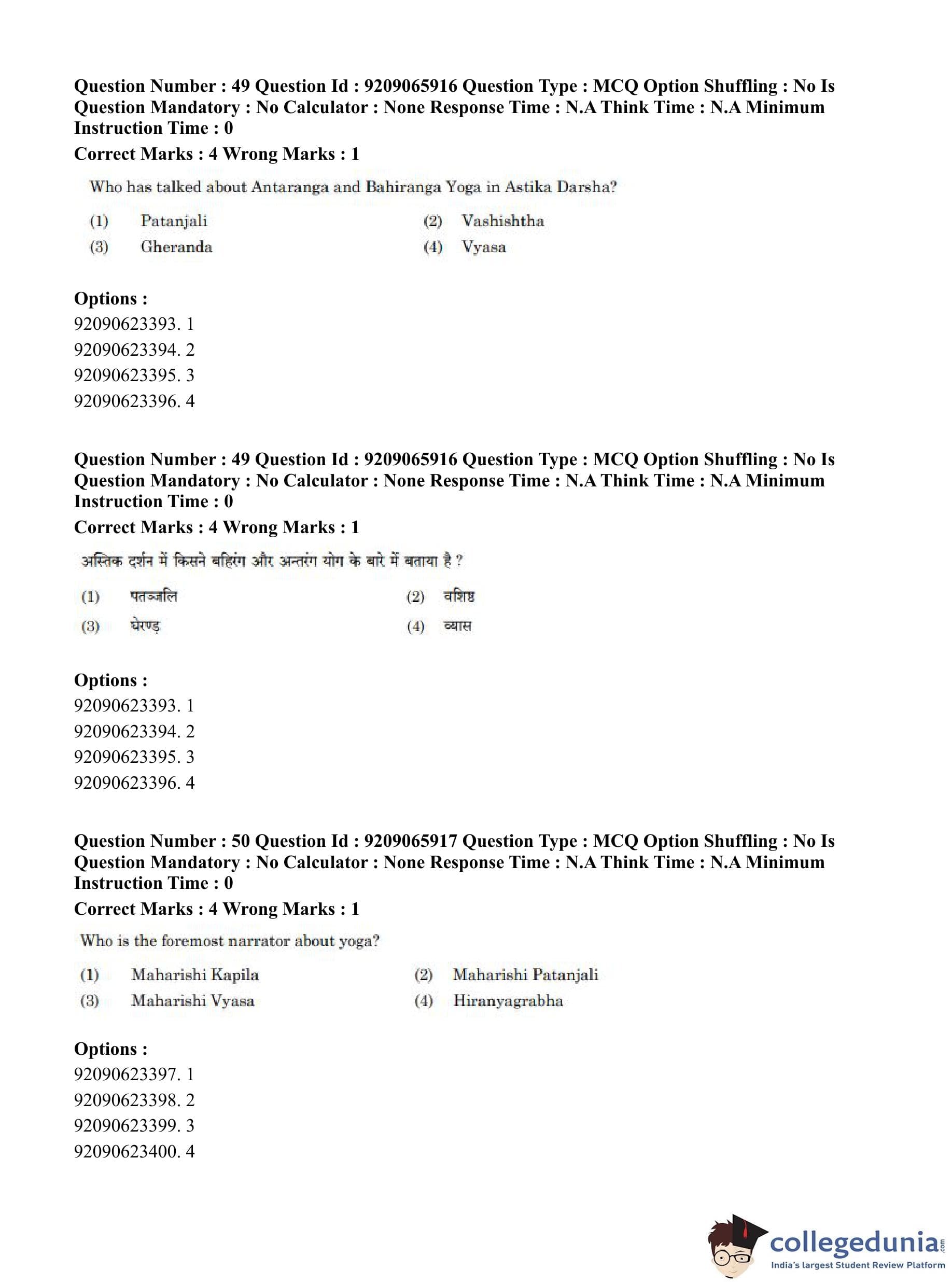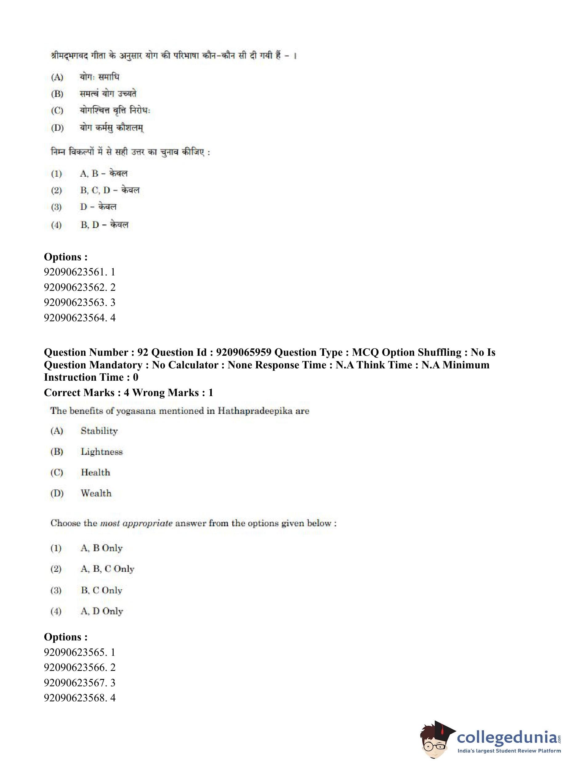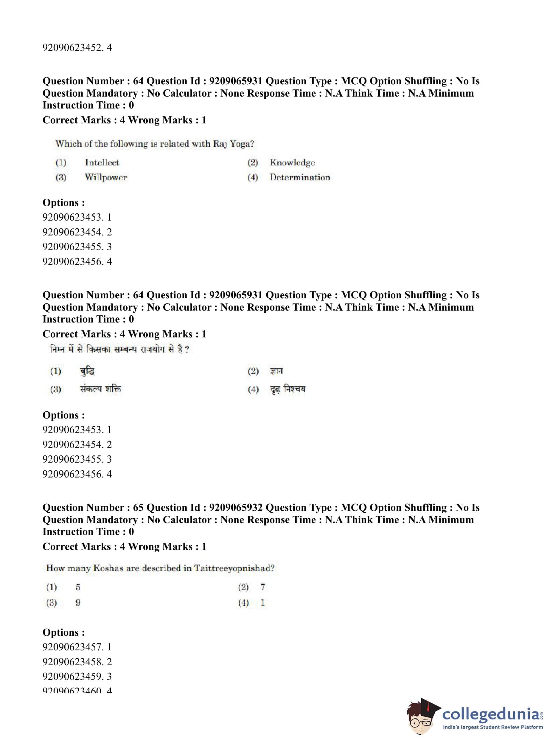 CUET PG 2023 Yoga Question Paper with Answer Key PDF IN English is available for download here. The exam was conducted by National Testing Agency (NTA) on June 8, 2023 in Shift 1. The question paper comprised a total of 100 questions divided into 2 sections.