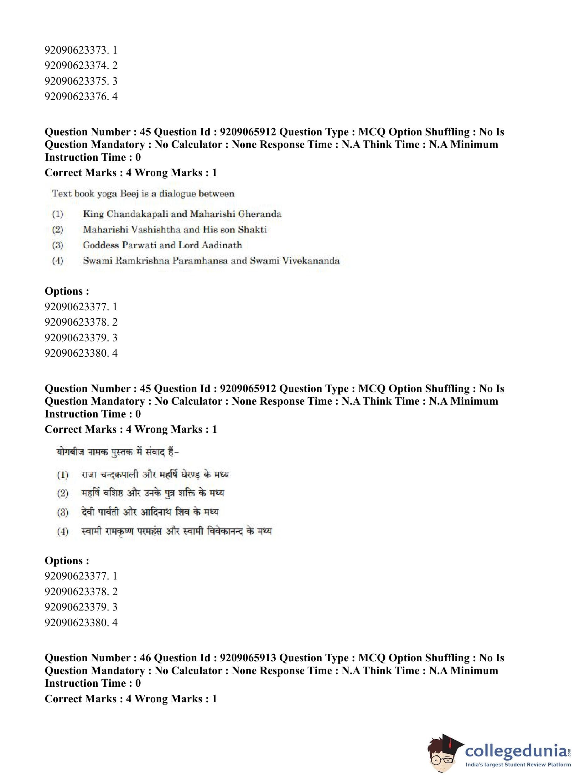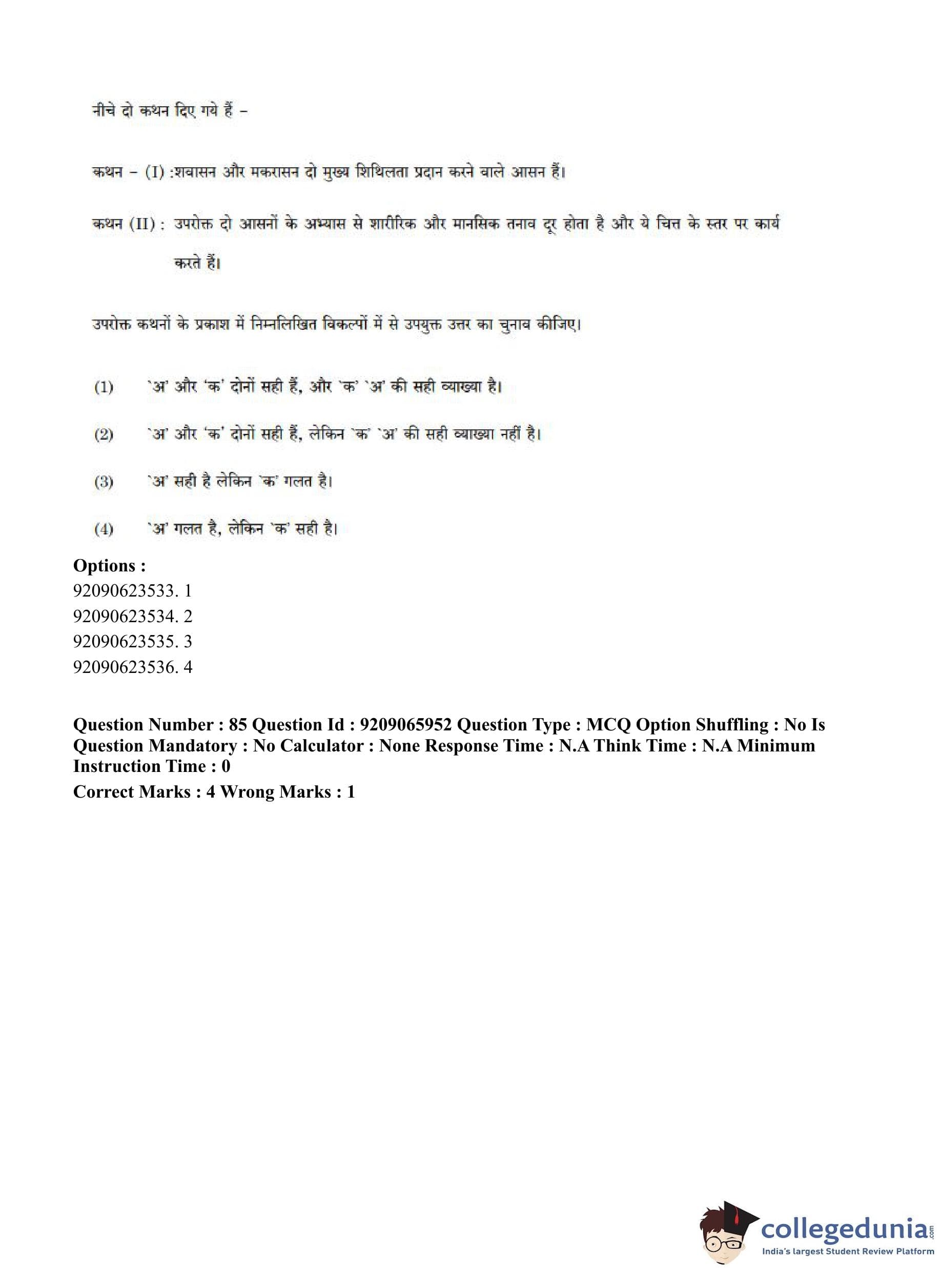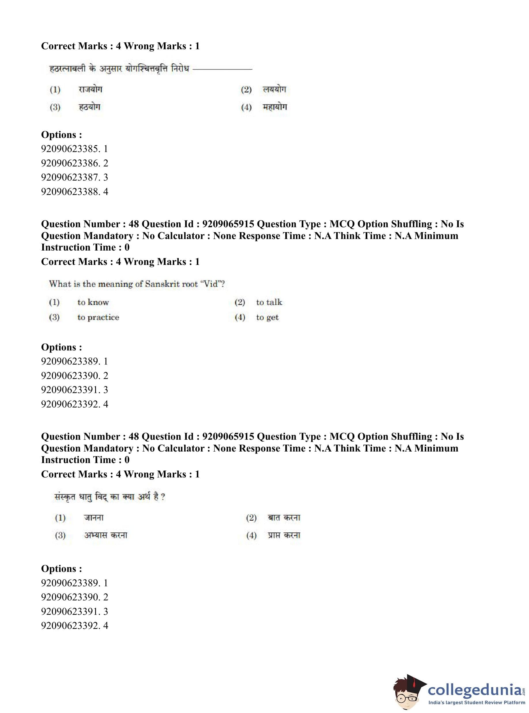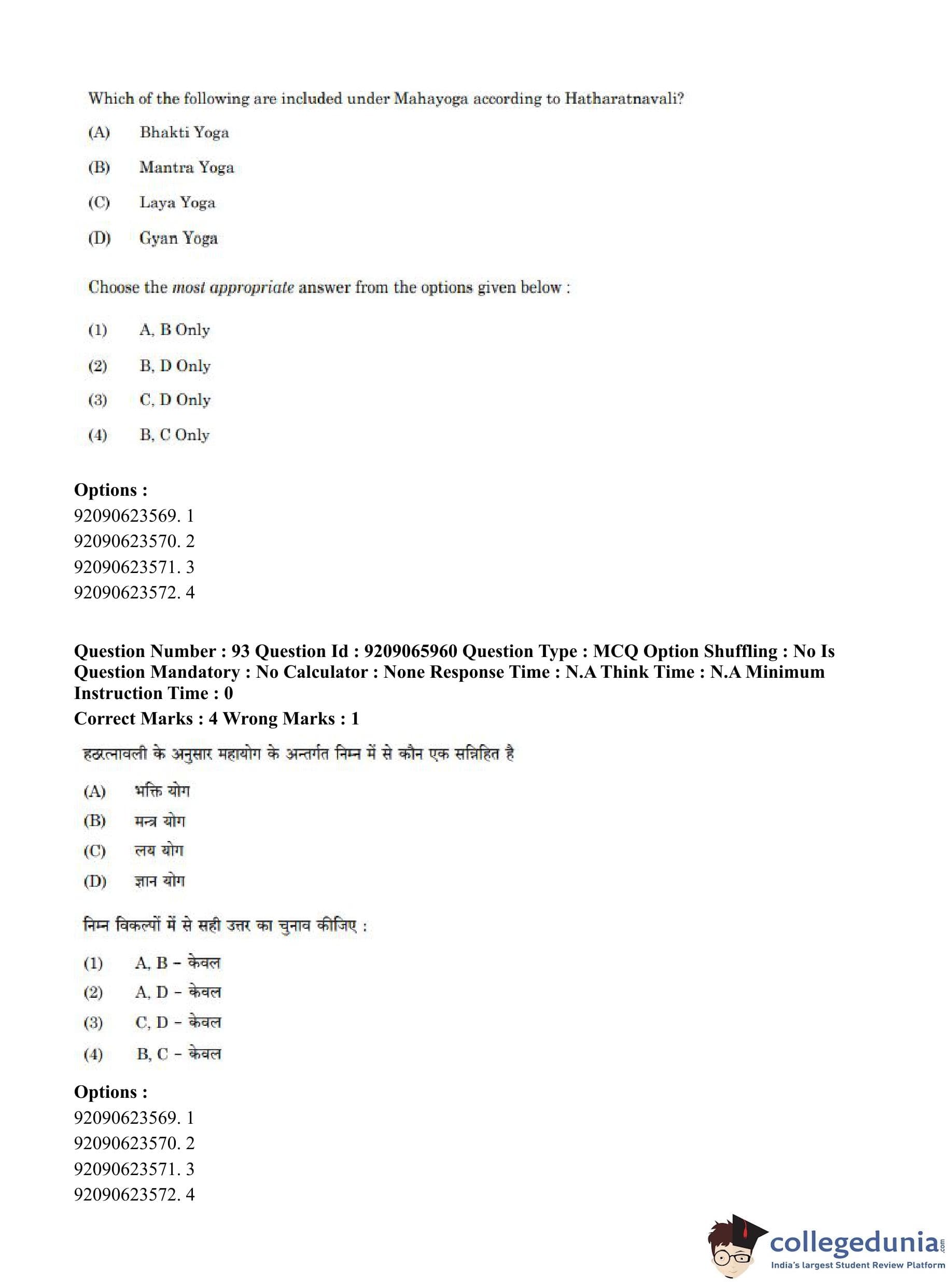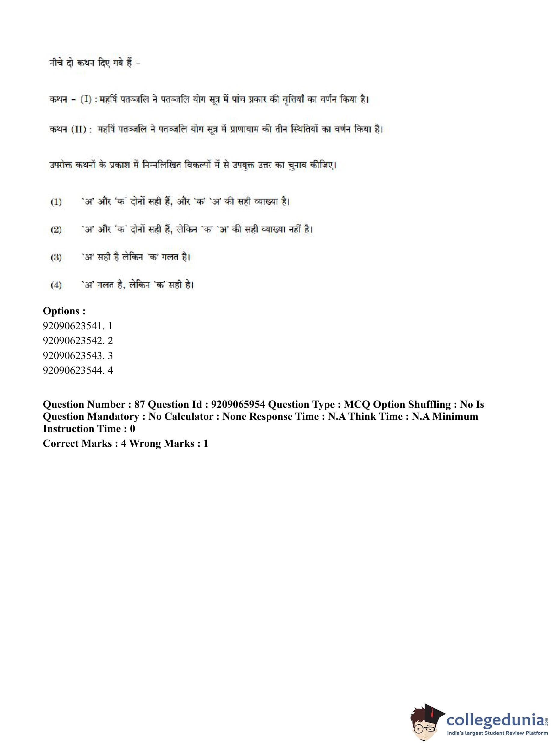 CUET PG 2023 Yoga Question Paper with Answer Key PDF IN English is available for download here. The exam was conducted by National Testing Agency (NTA) on June 8, 2023 in Shift 1. The question paper comprised a total of 100 questions divided into 2 sections.