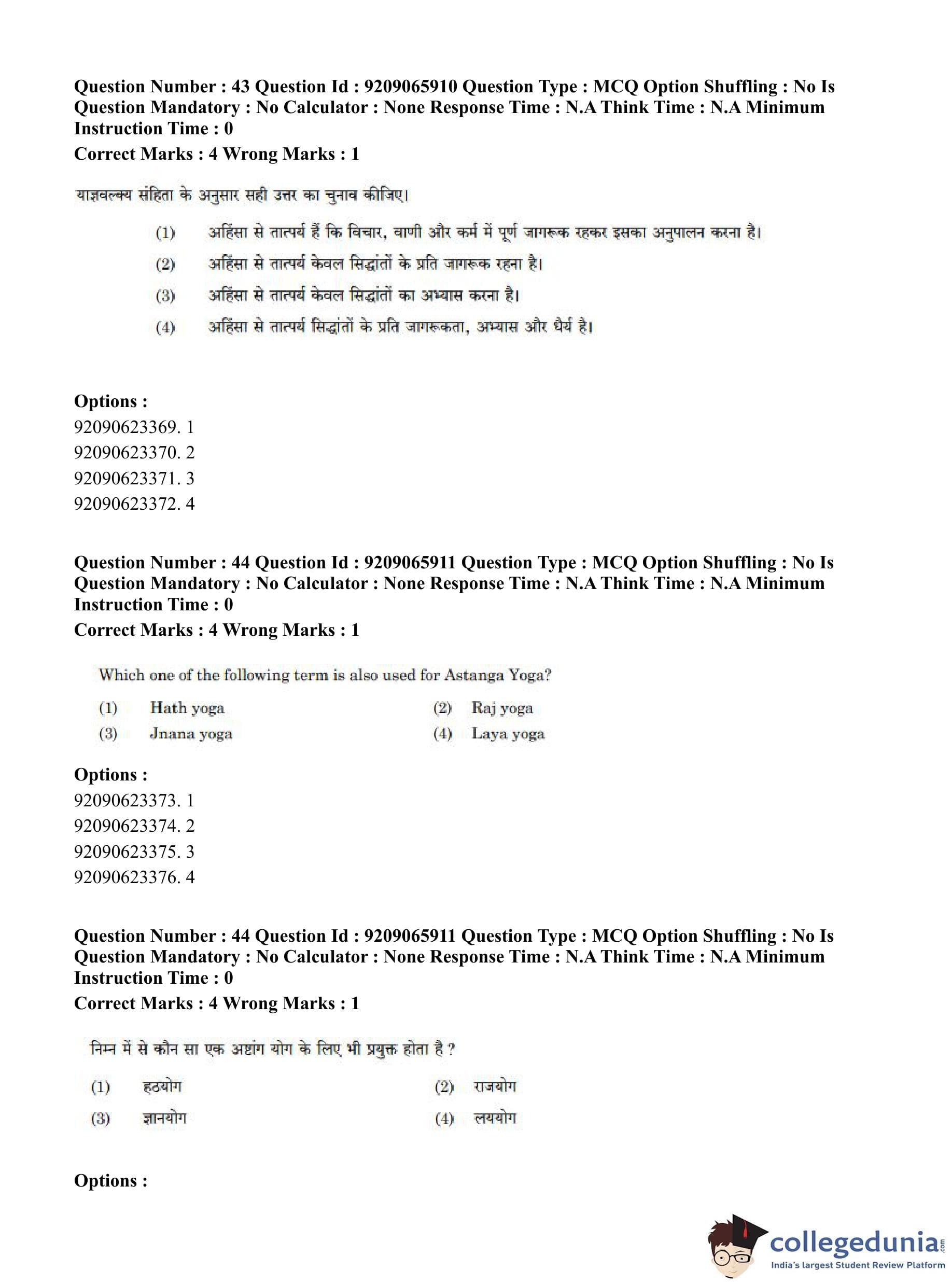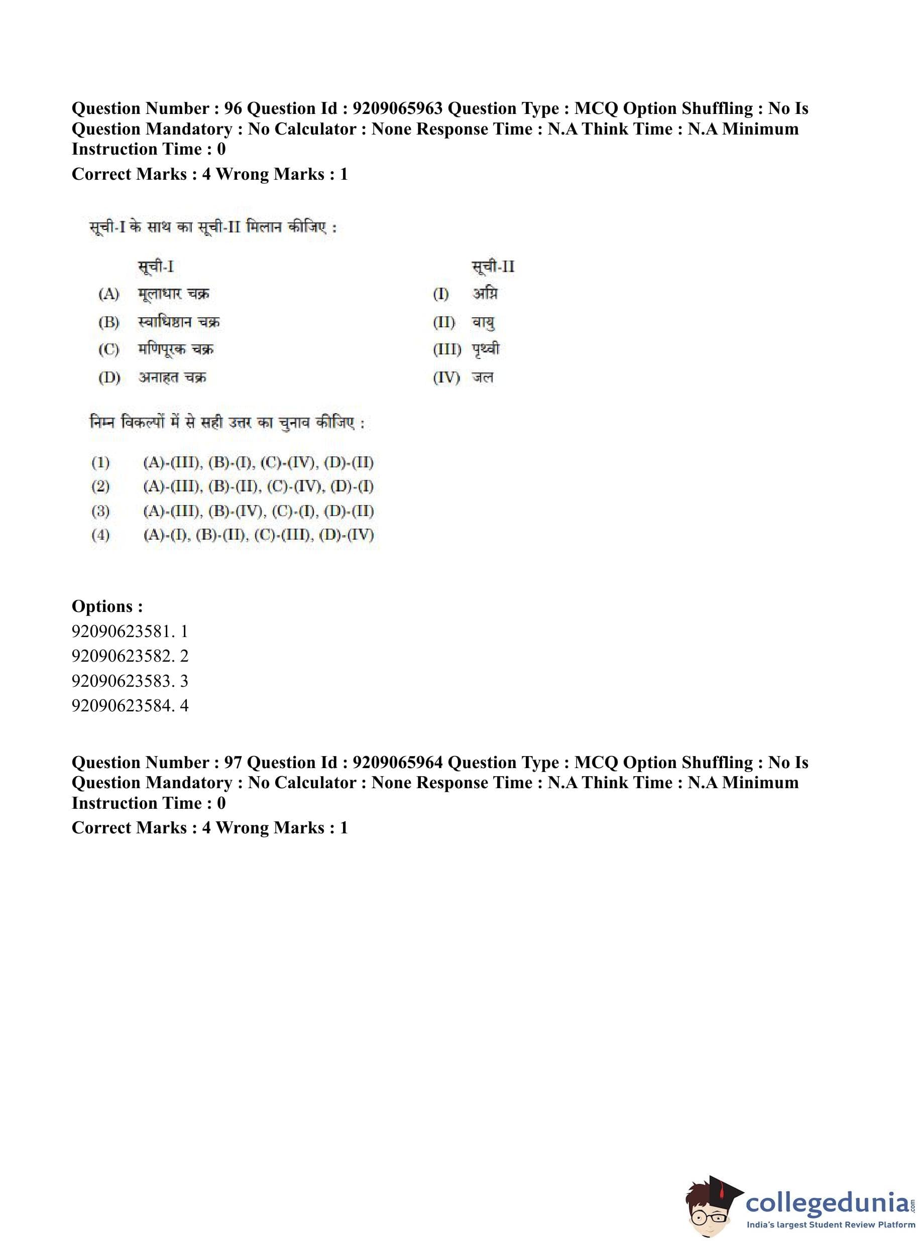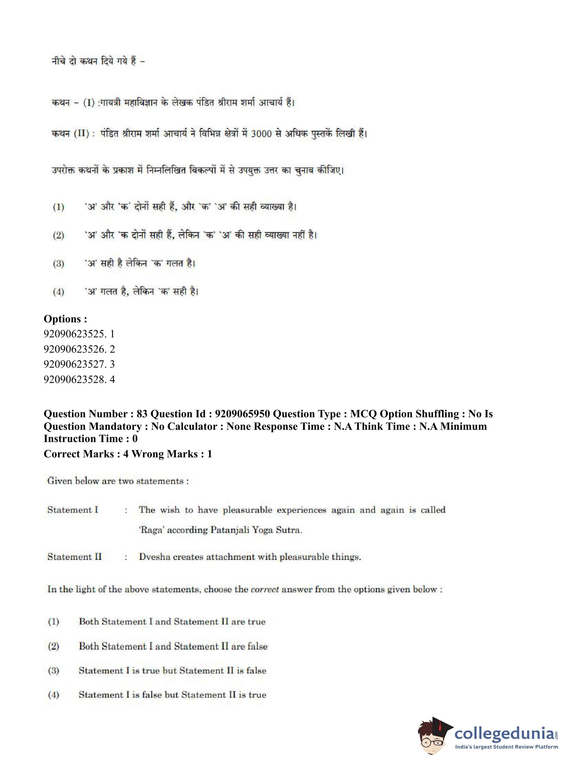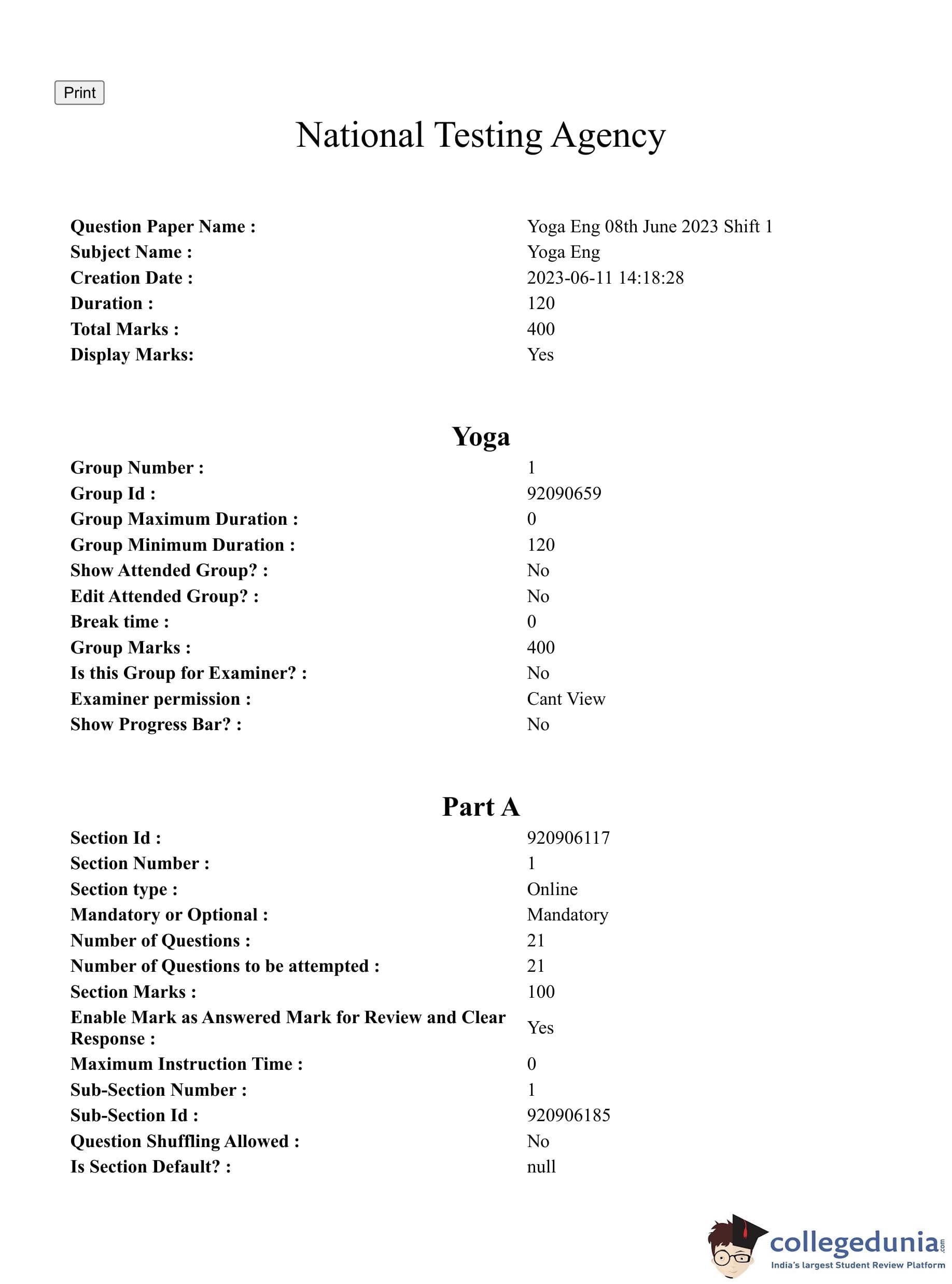 CUET PG 2023 Yoga Question Paper with Answer Key PDF IN English is available for download here. The exam was conducted by National Testing Agency (NTA) on June 8, 2023 in Shift 1. The question paper comprised a total of 100 questions divided into 2 sections.