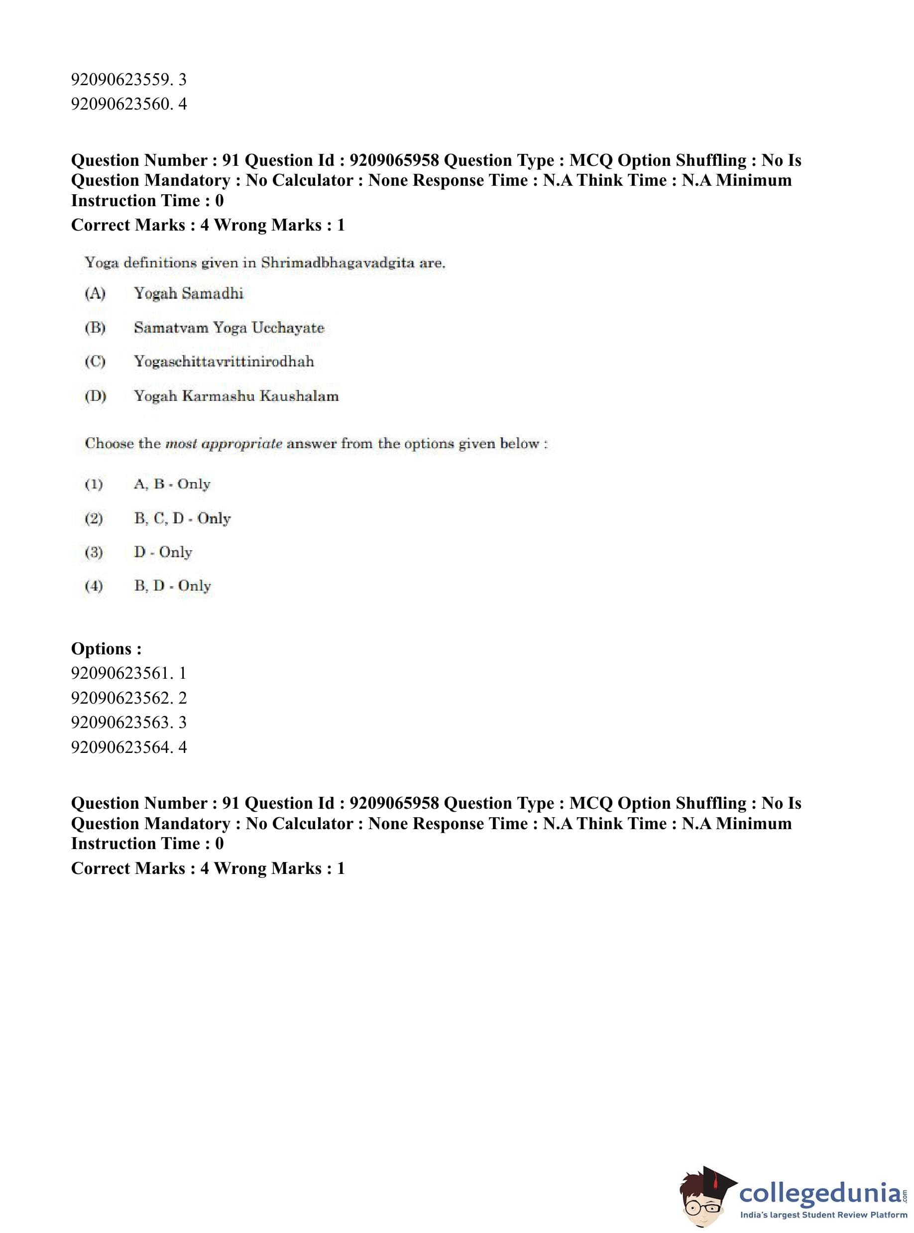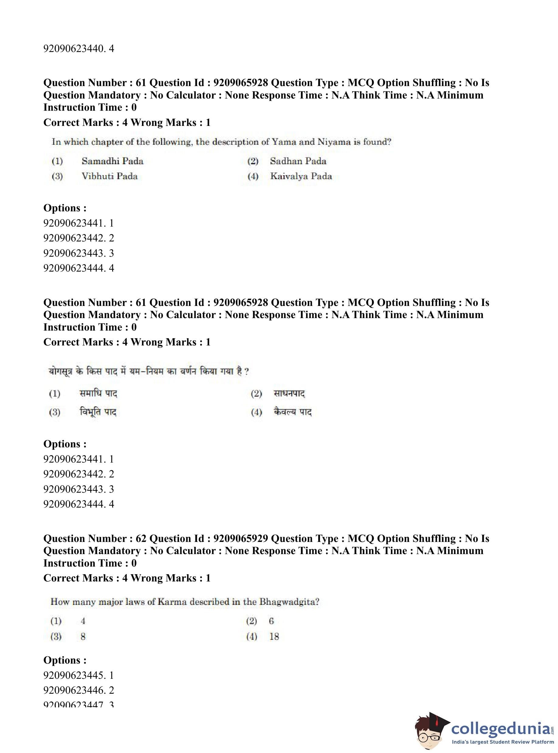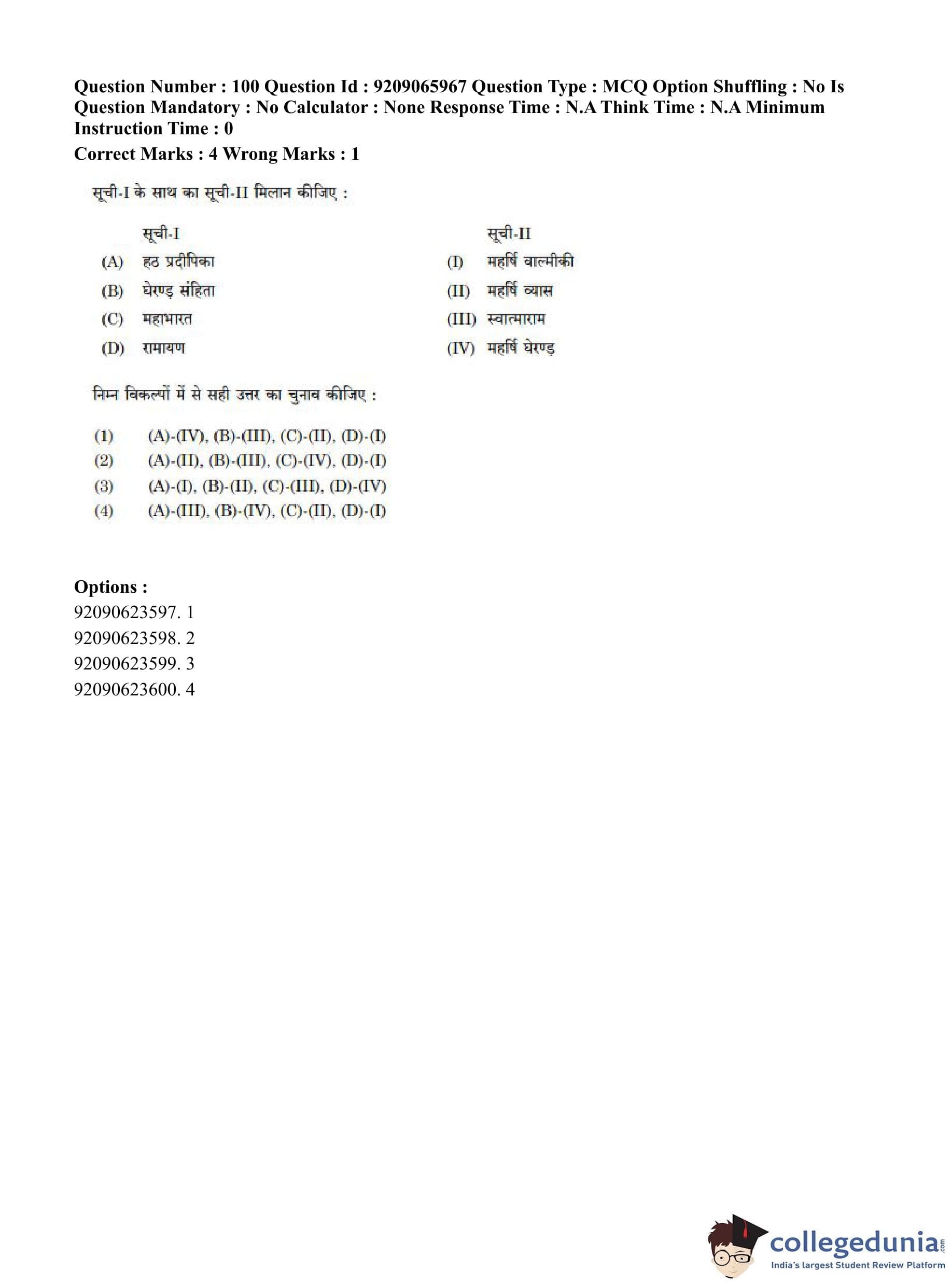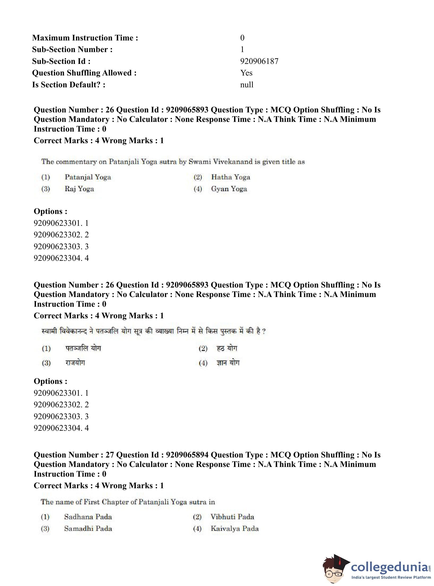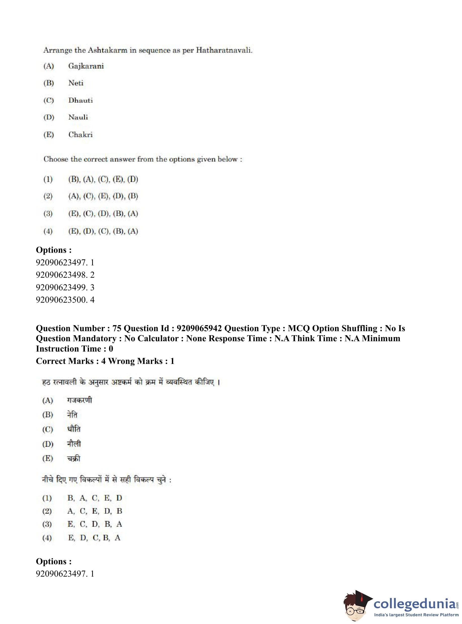 CUET PG 2023 Yoga Question Paper with Answer Key PDF IN English is available for download here. The exam was conducted by National Testing Agency (NTA) on June 8, 2023 in Shift 1. The question paper comprised a total of 100 questions divided into 2 sections.