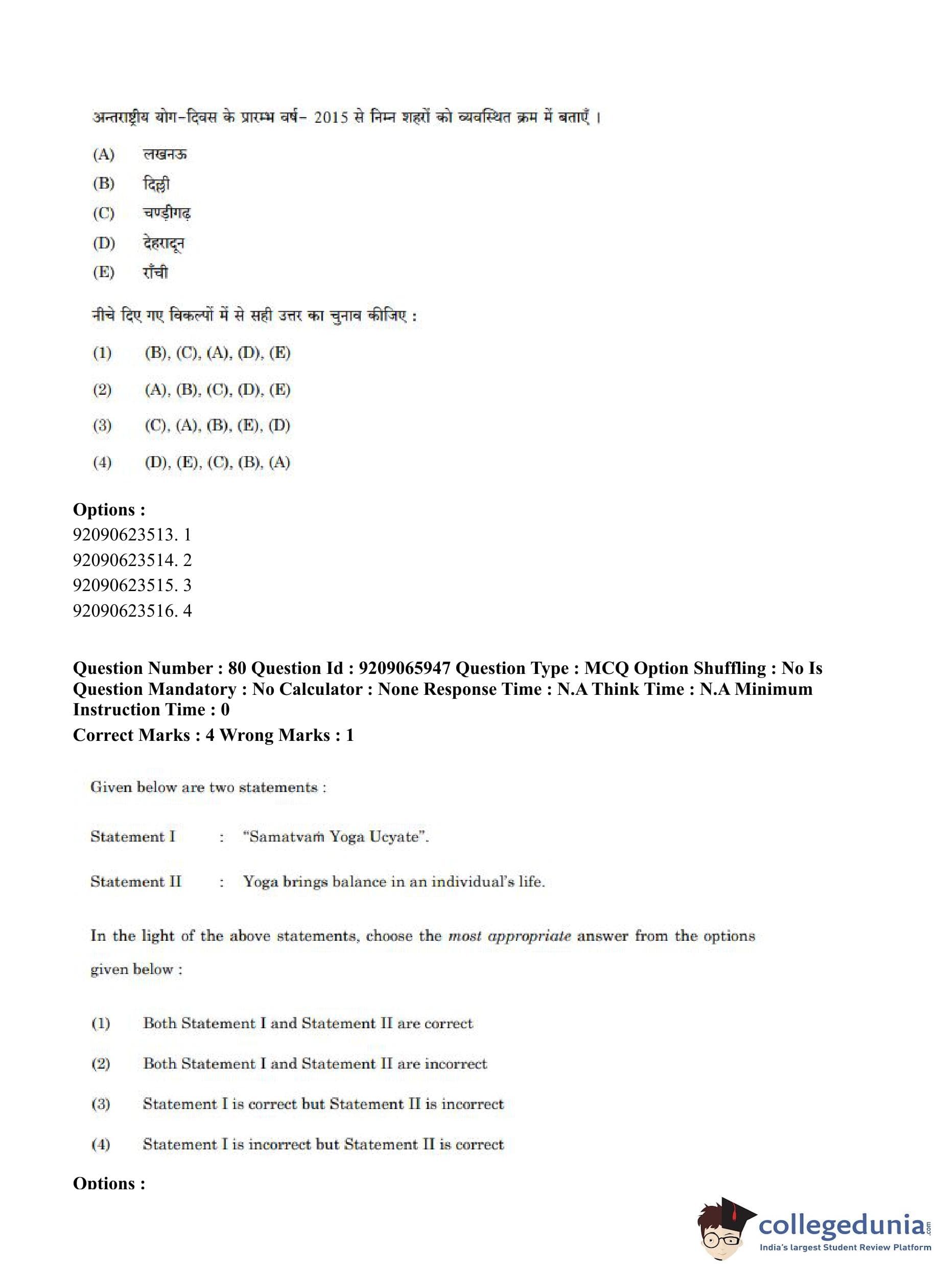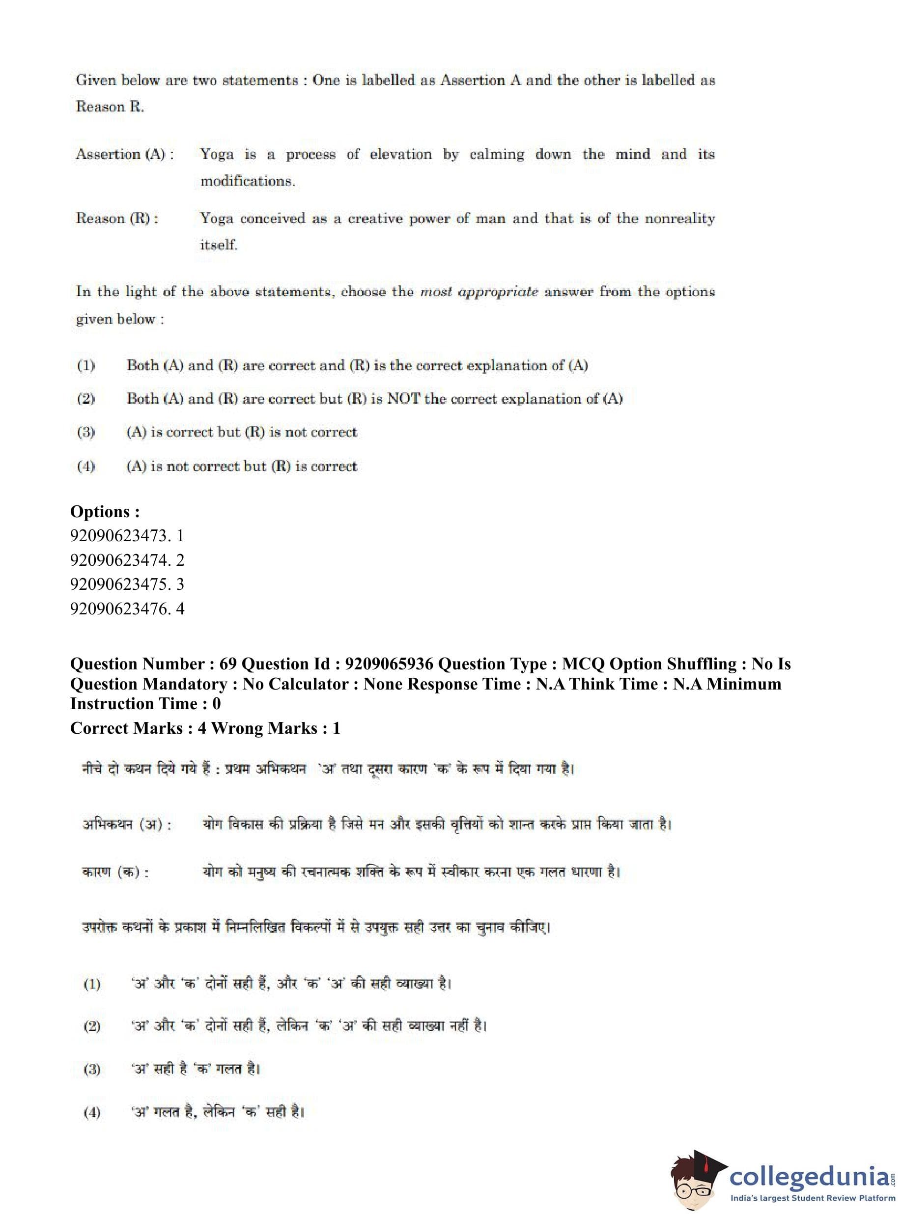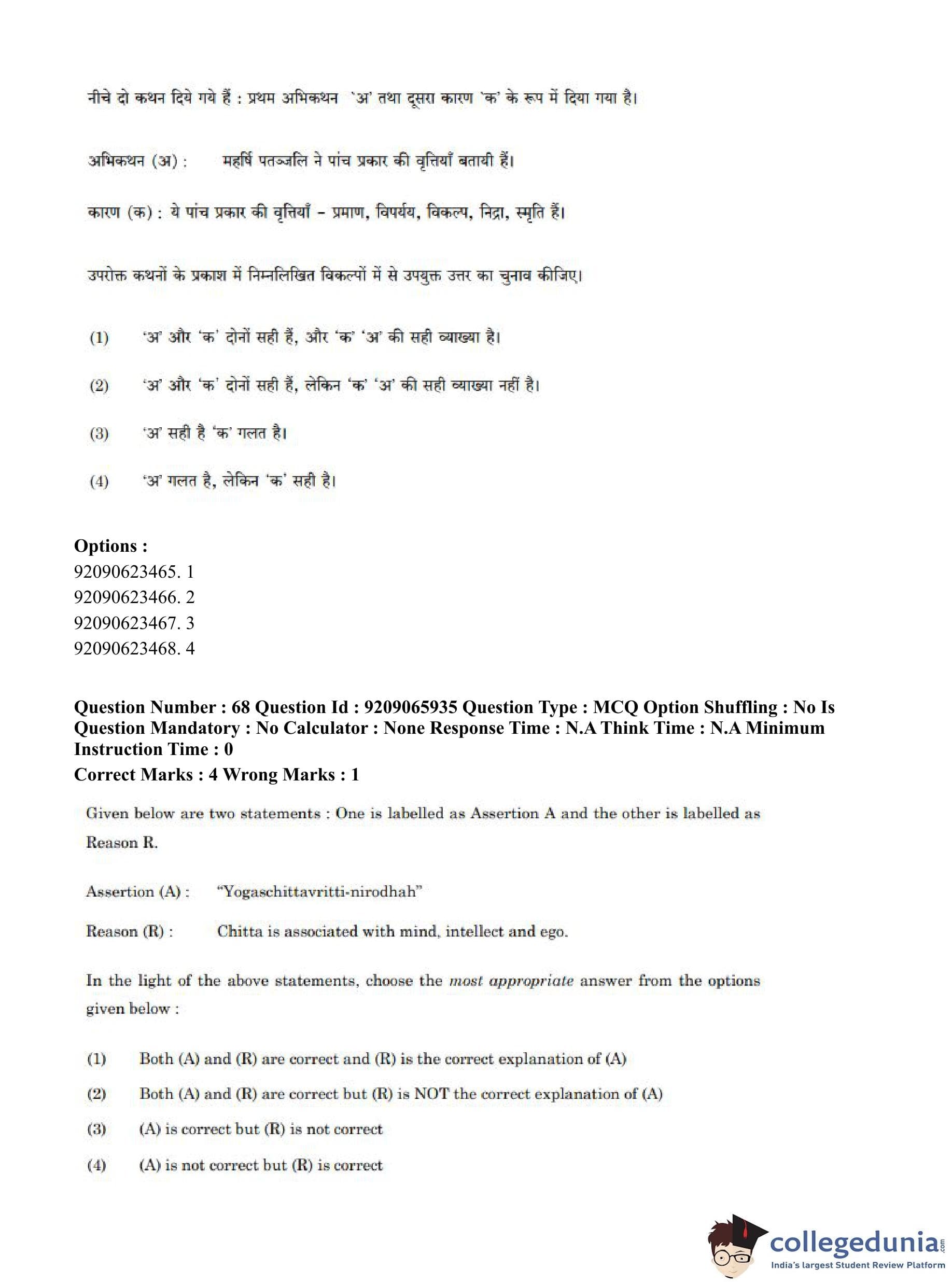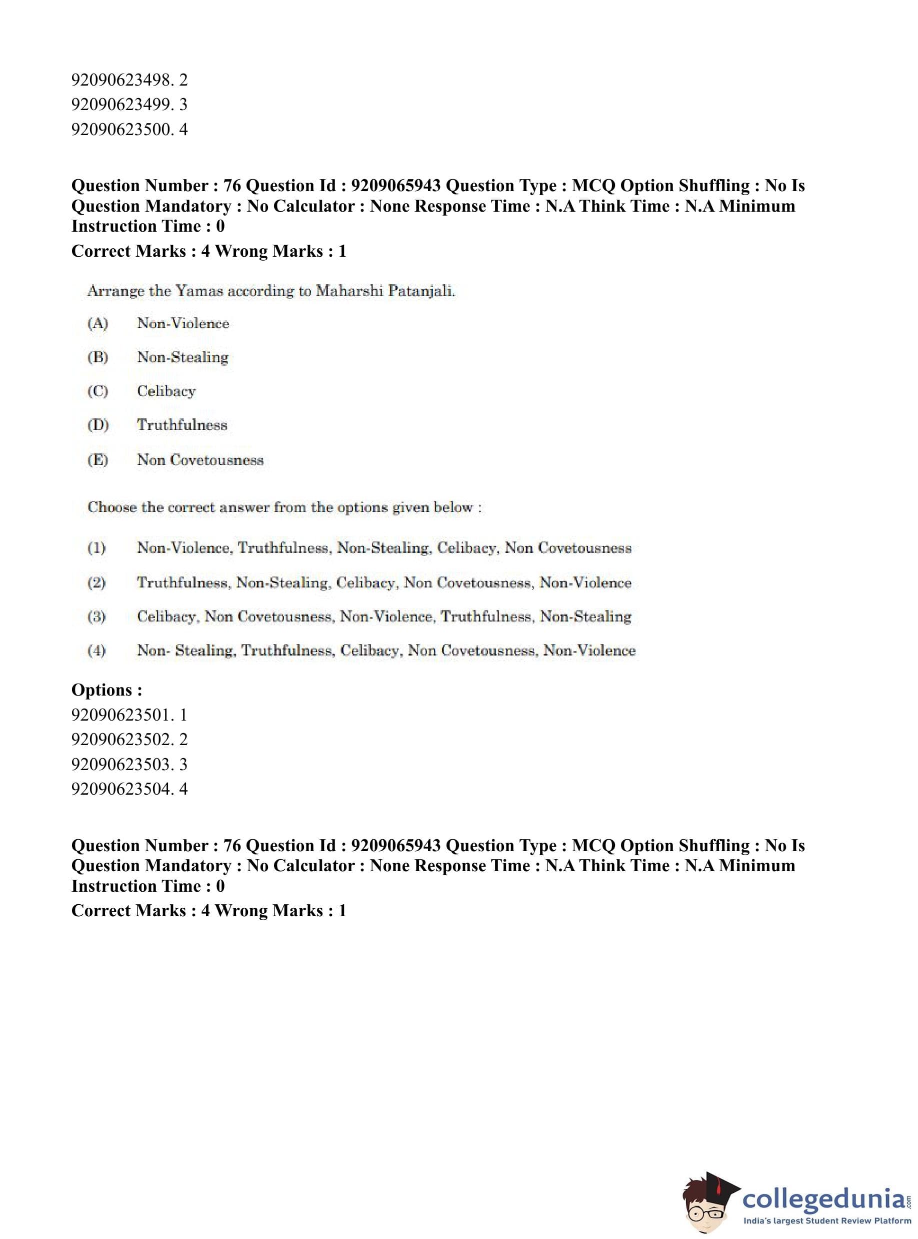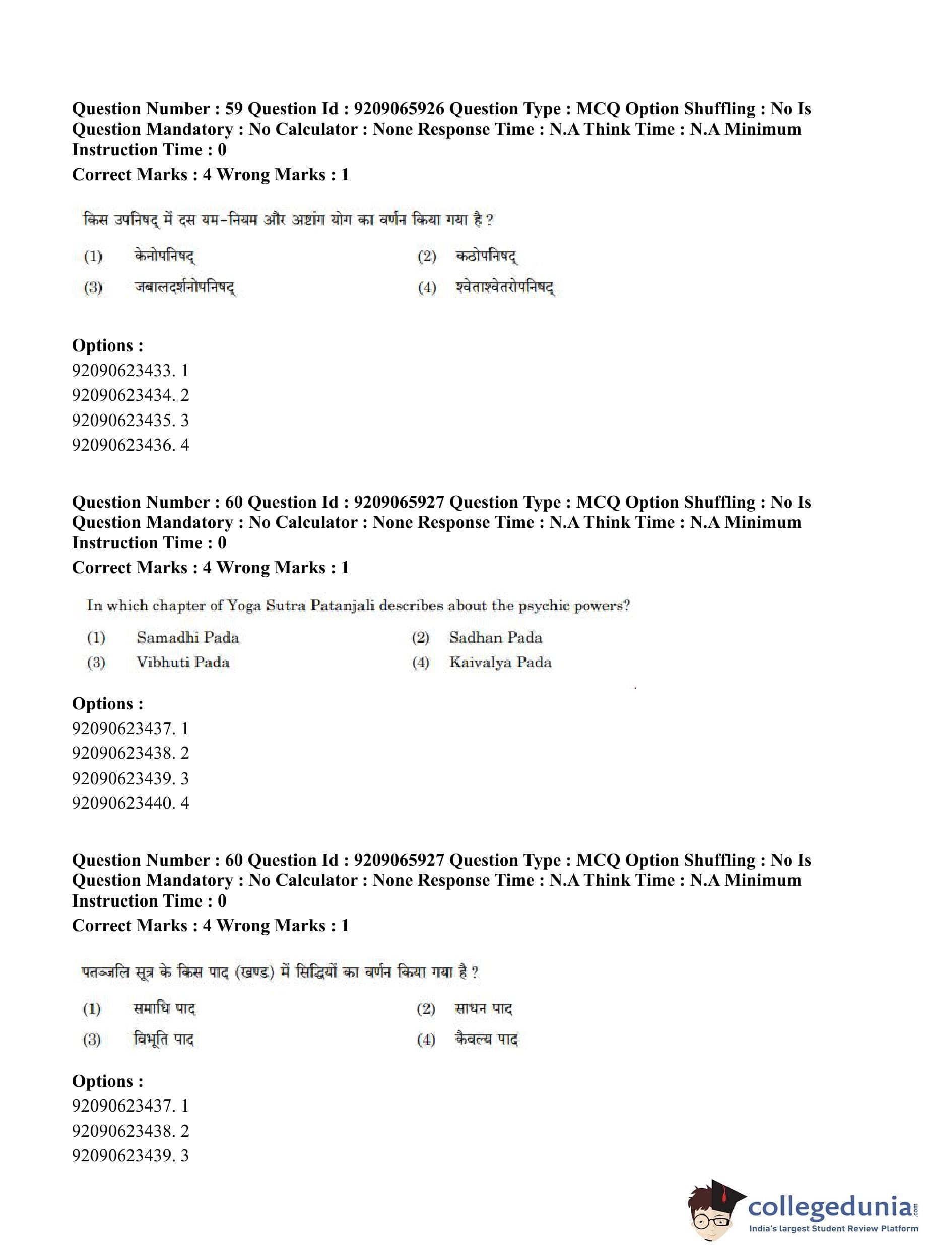 CUET PG 2023 Yoga Question Paper with Answer Key PDF IN English is available for download here. The exam was conducted by National Testing Agency (NTA) on June 8, 2023 in Shift 1. The question paper comprised a total of 100 questions divided into 2 sections.