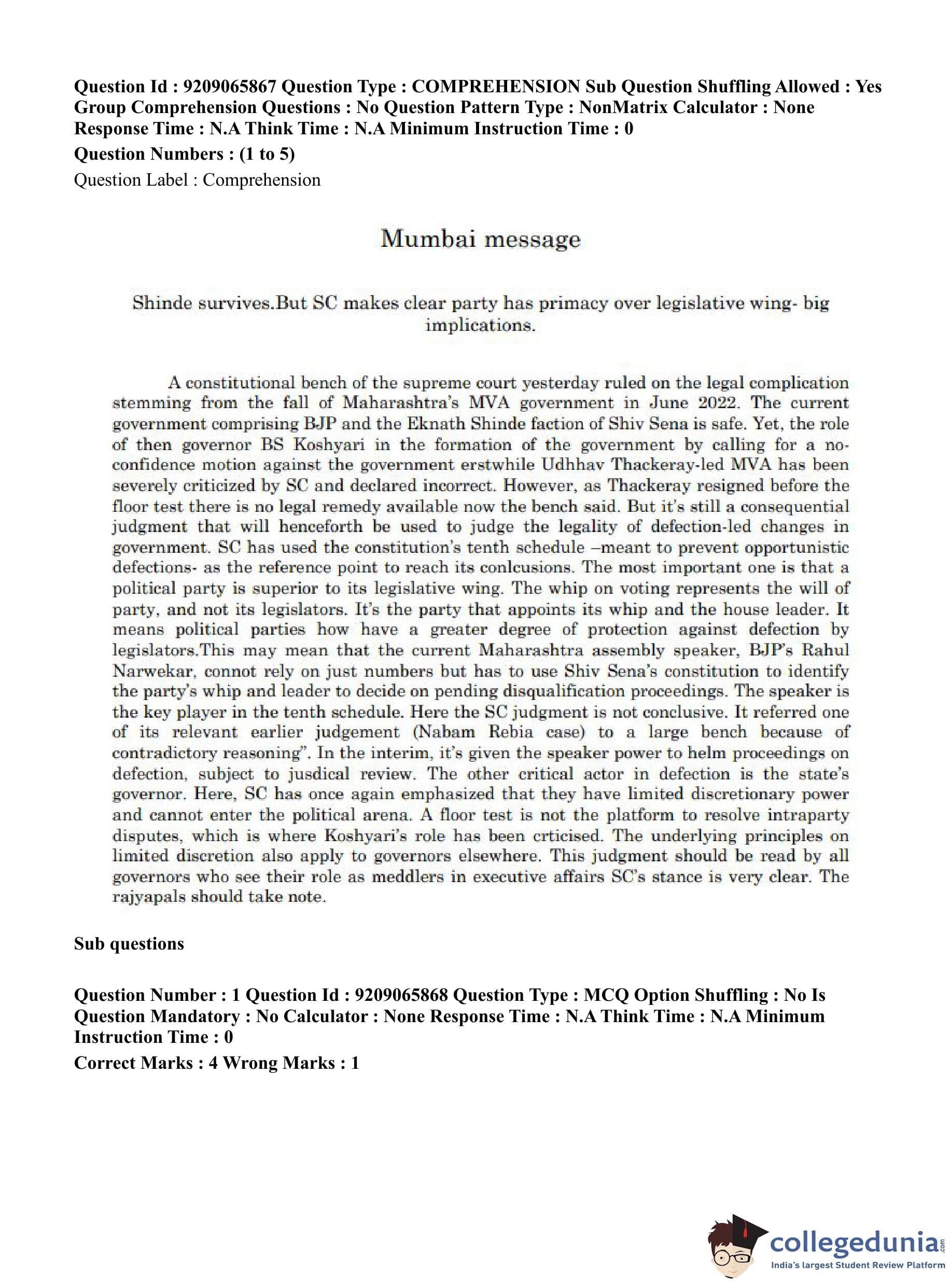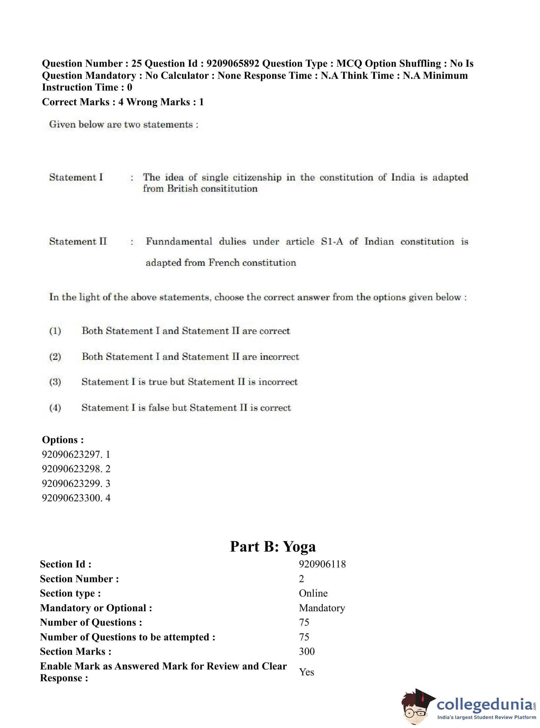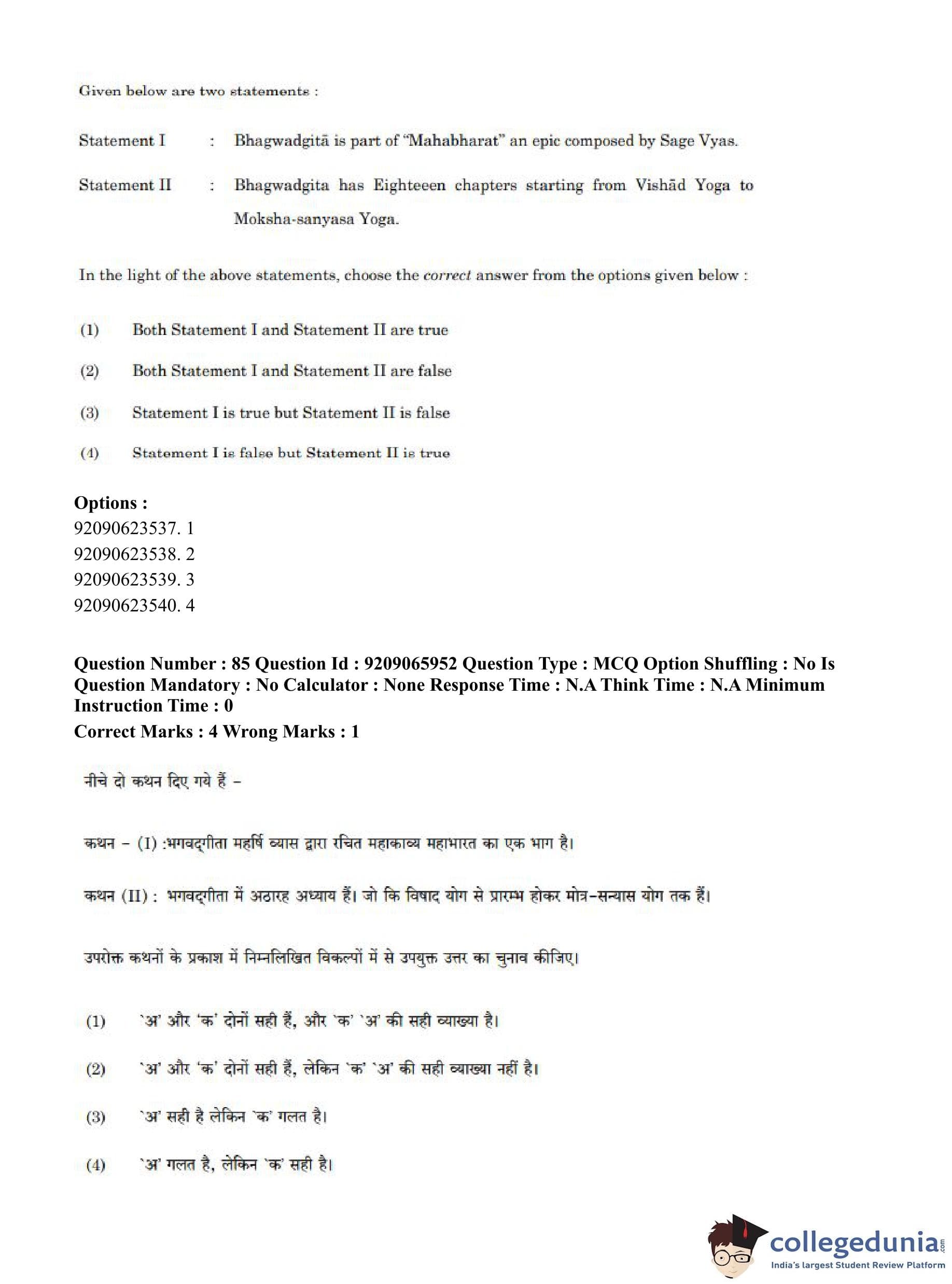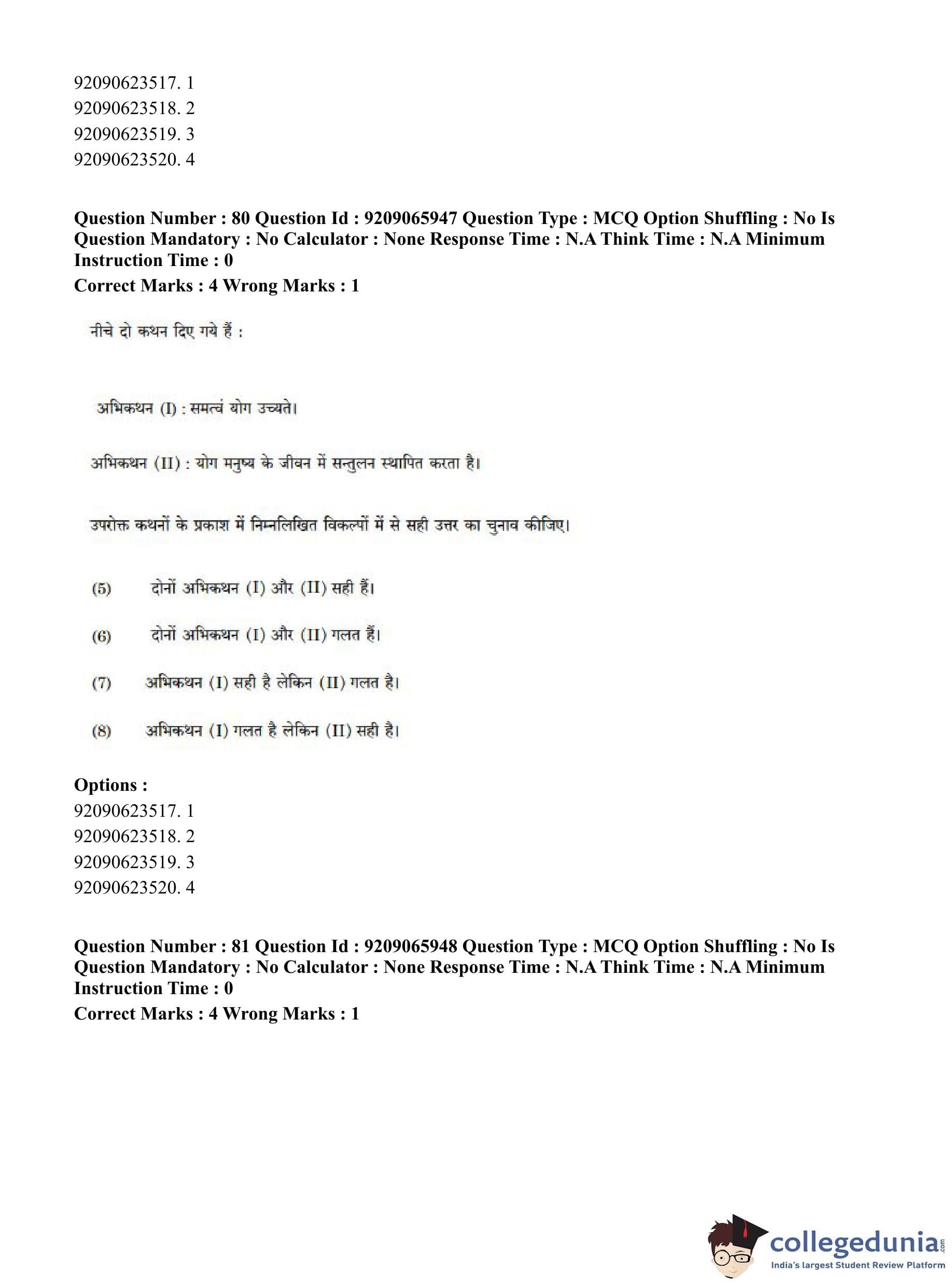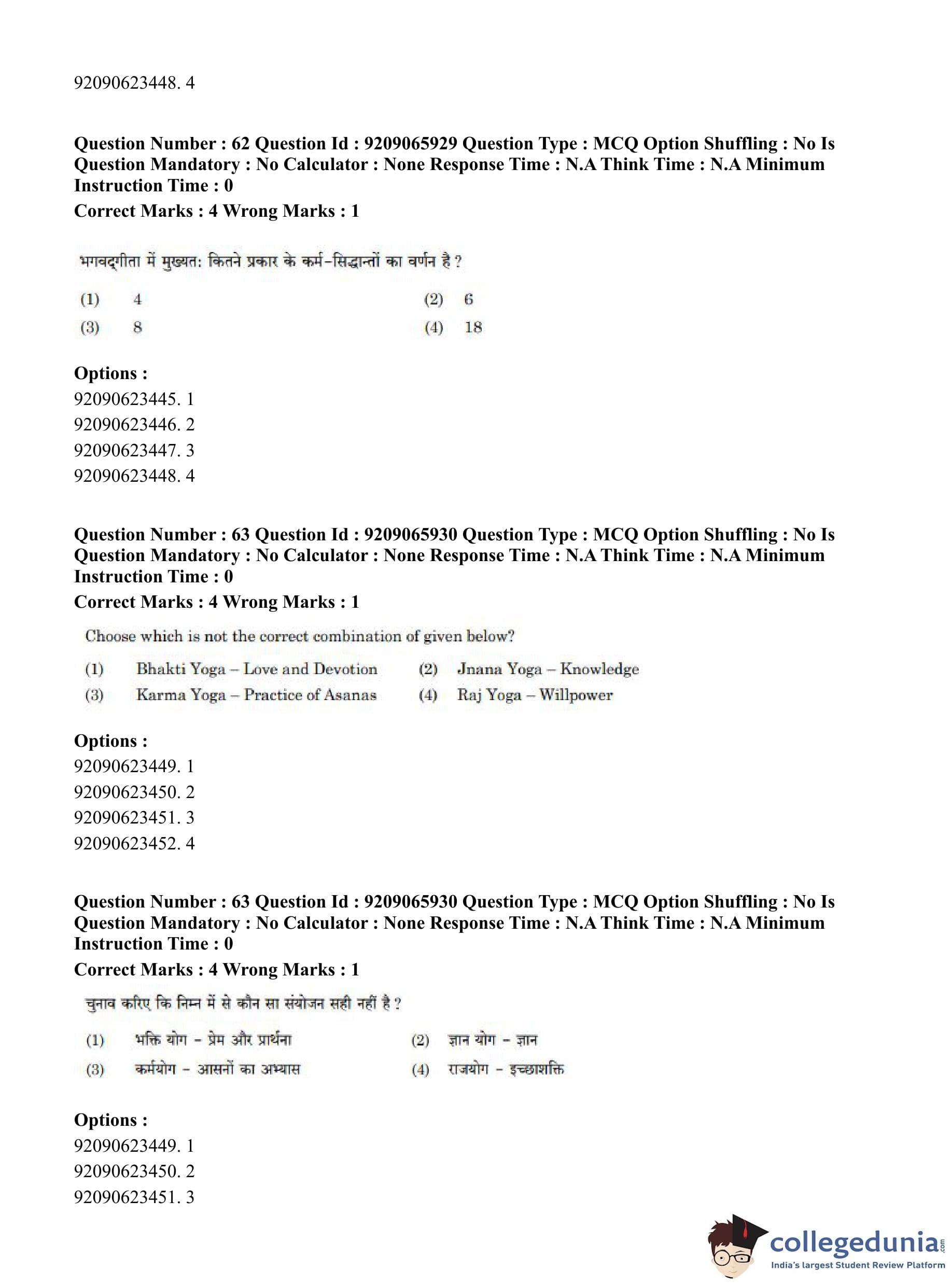 CUET PG 2023 Yoga Question Paper with Answer Key PDF IN English is available for download here. The exam was conducted by National Testing Agency (NTA) on June 8, 2023 in Shift 1. The question paper comprised a total of 100 questions divided into 2 sections.