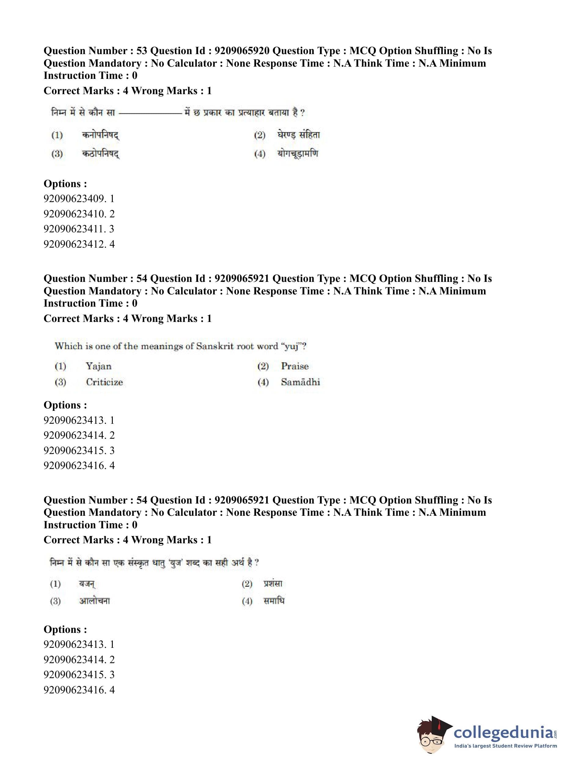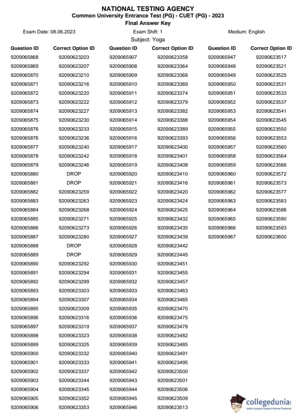 | CUET PG Yoga Question Paper 2023 PDF | CUET PG Yoga Answer Key 2023 PDF |