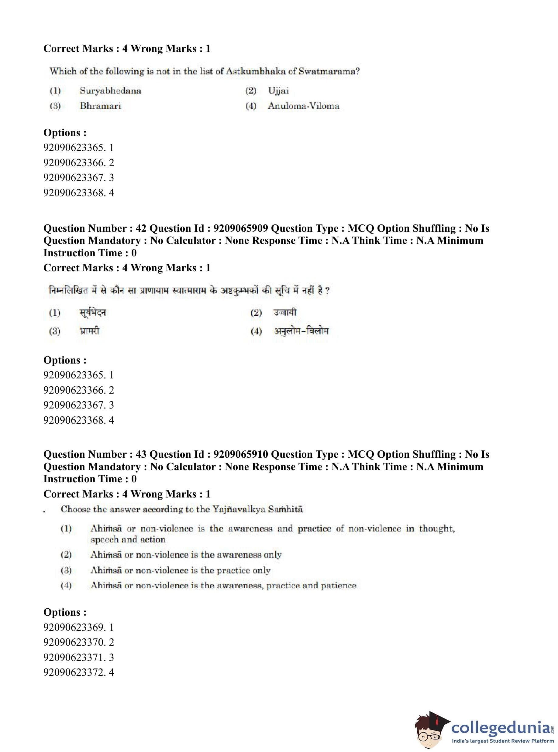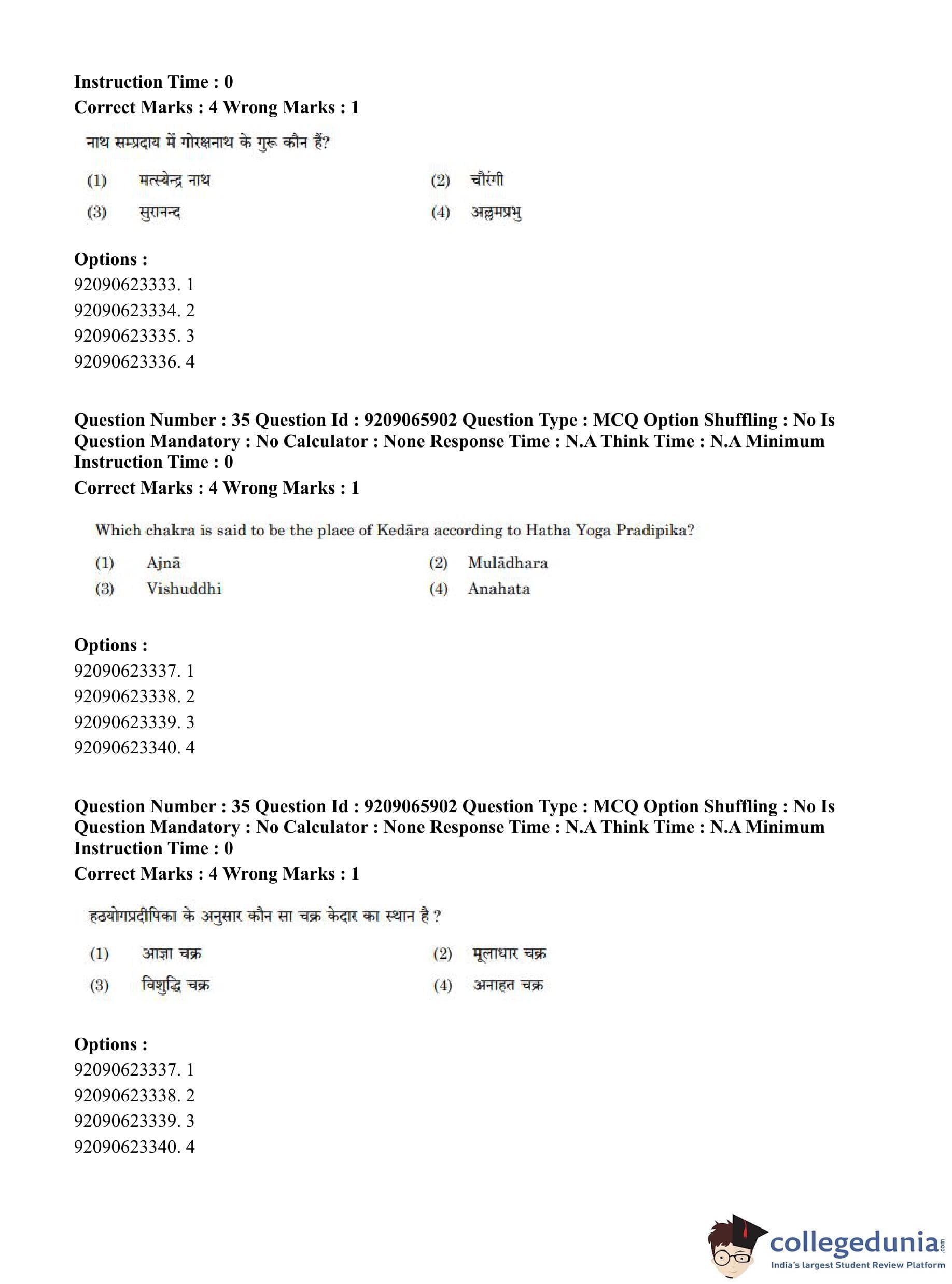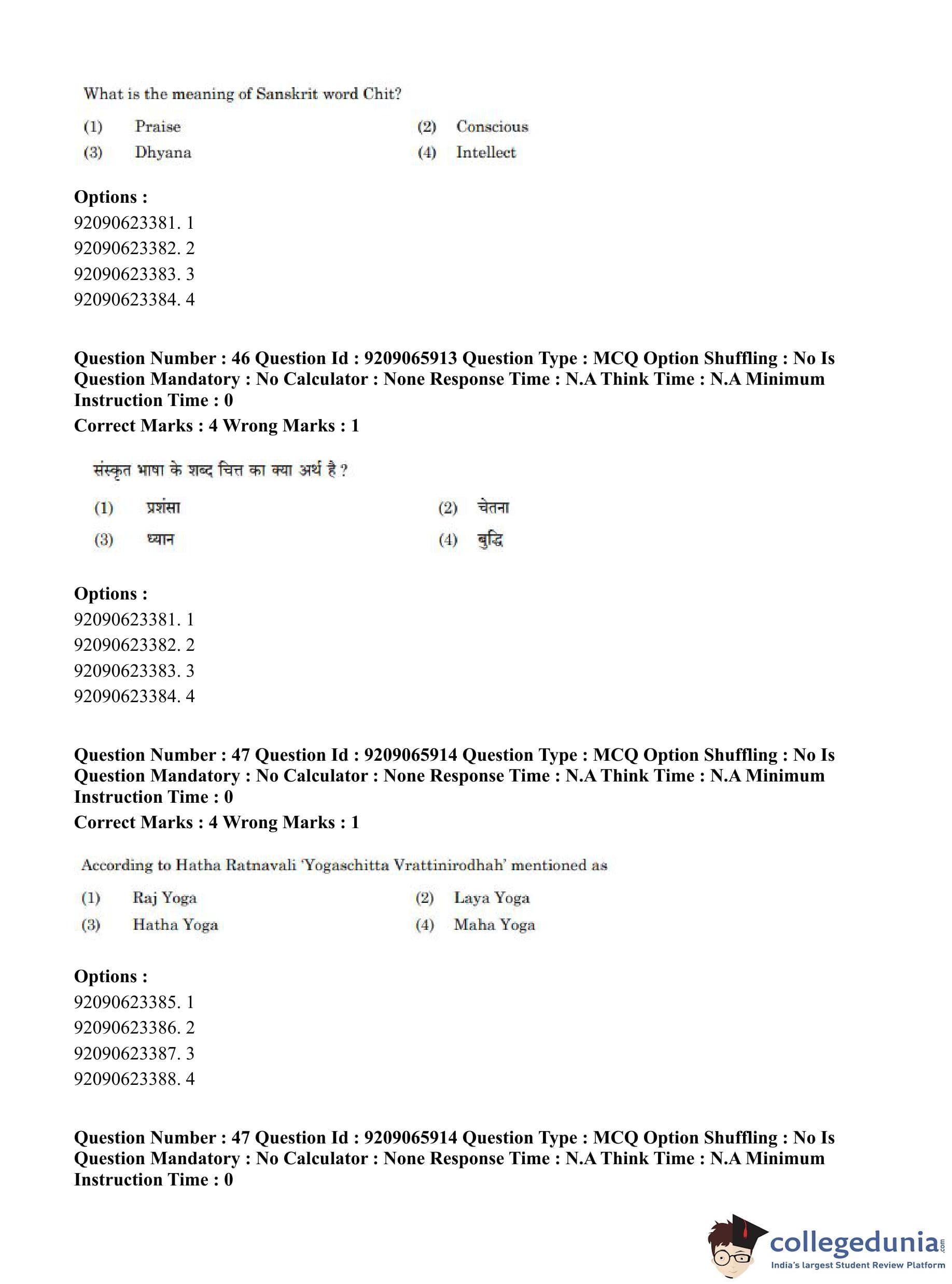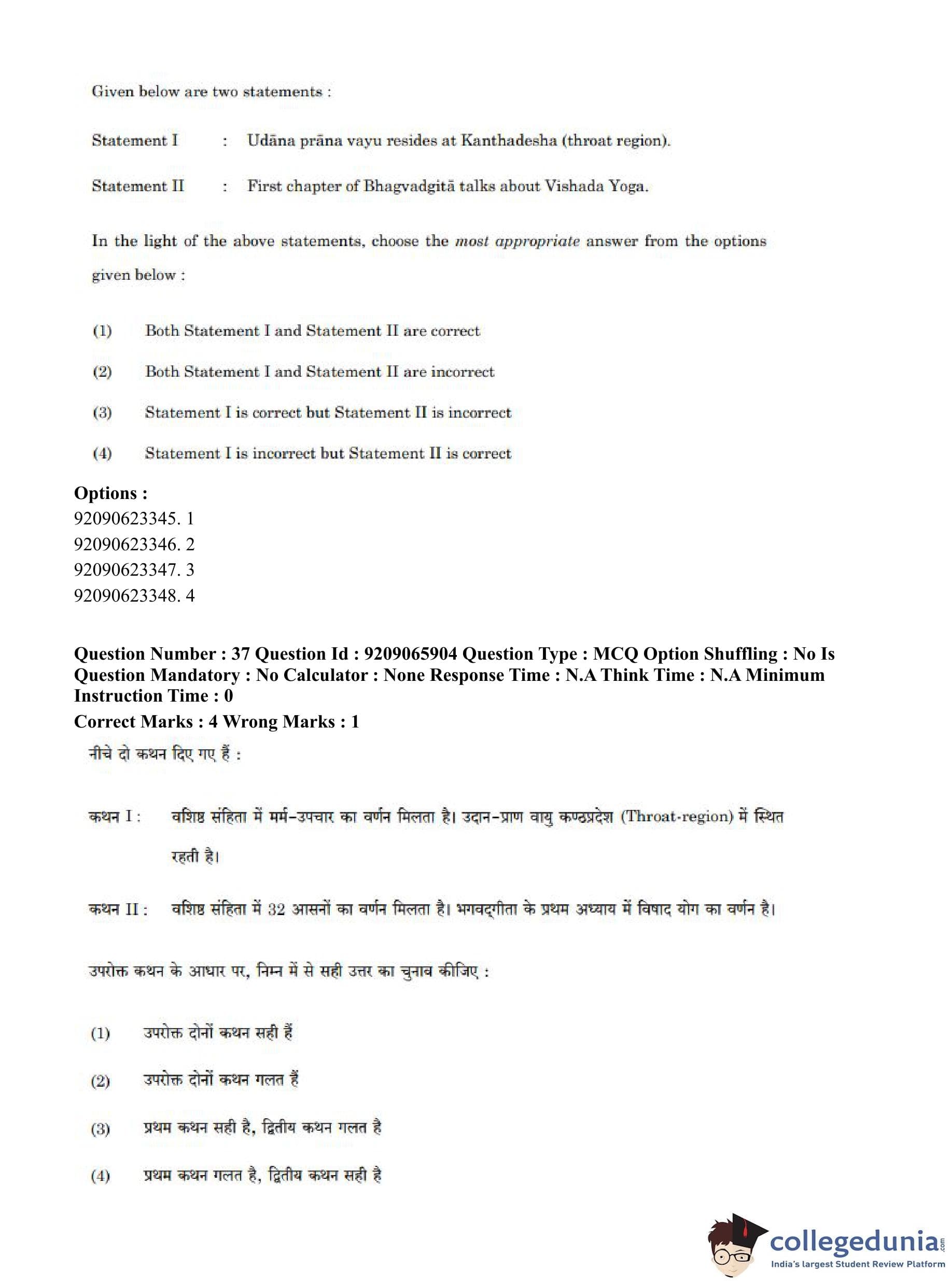 CUET PG 2023 Yoga Question Paper in English (June 8 - Shift 1)