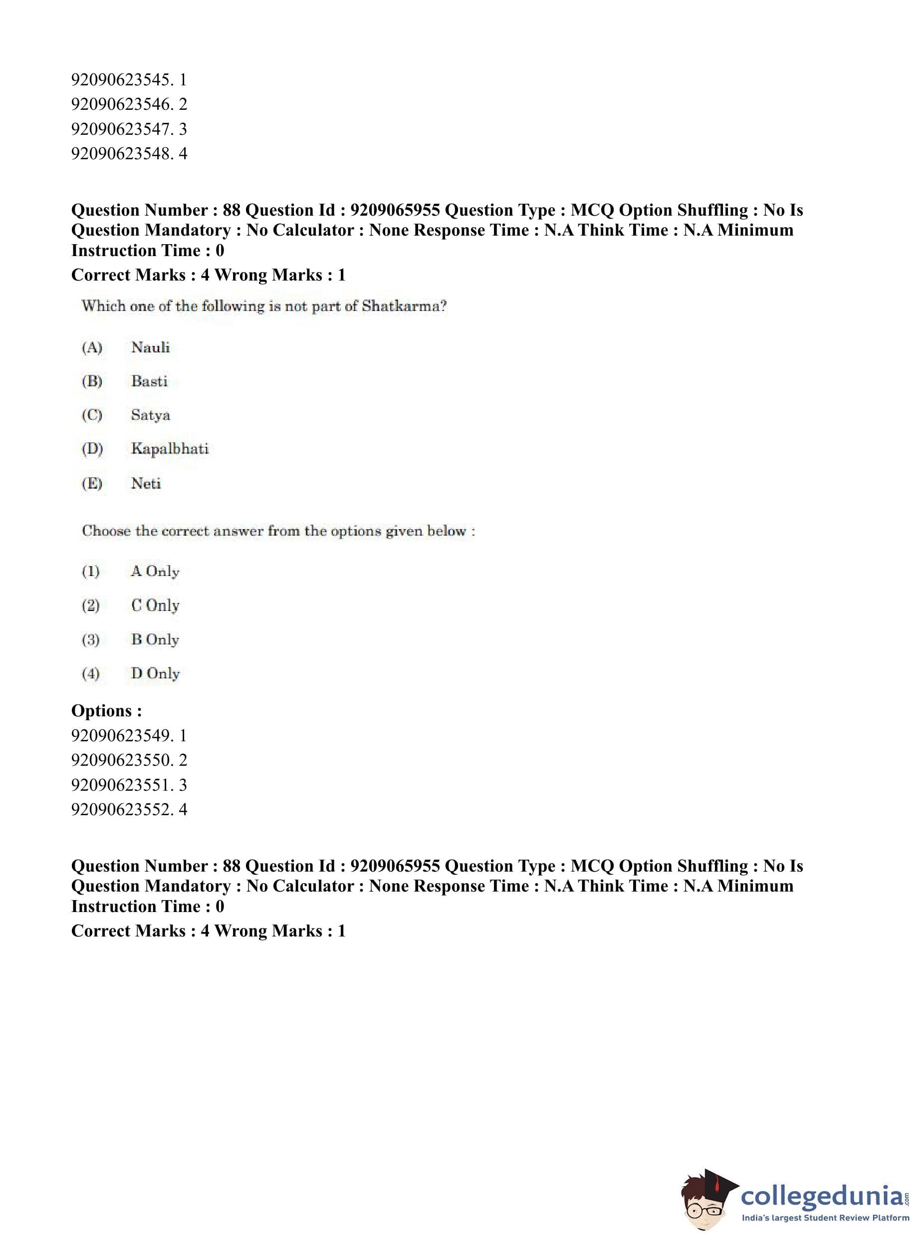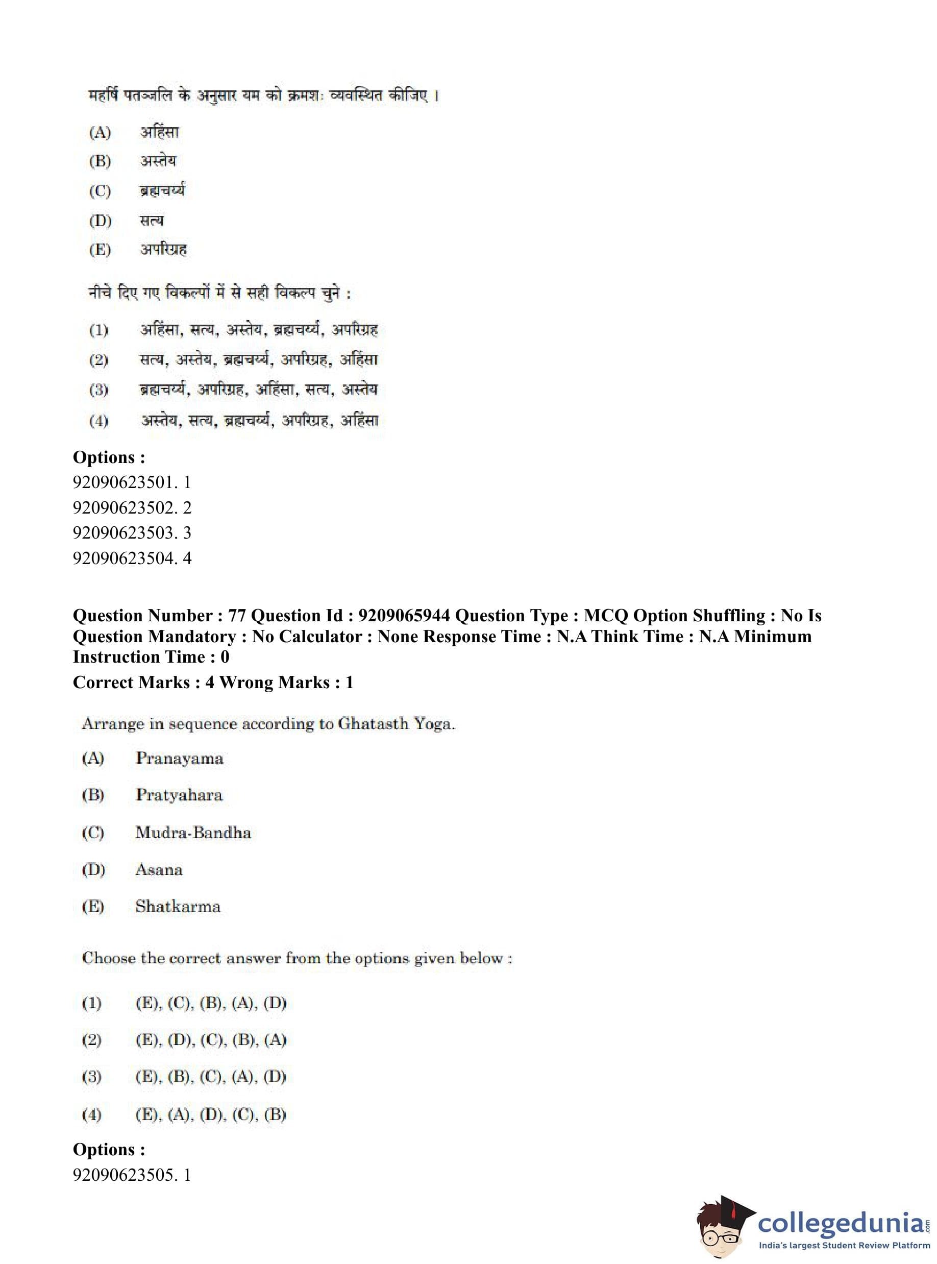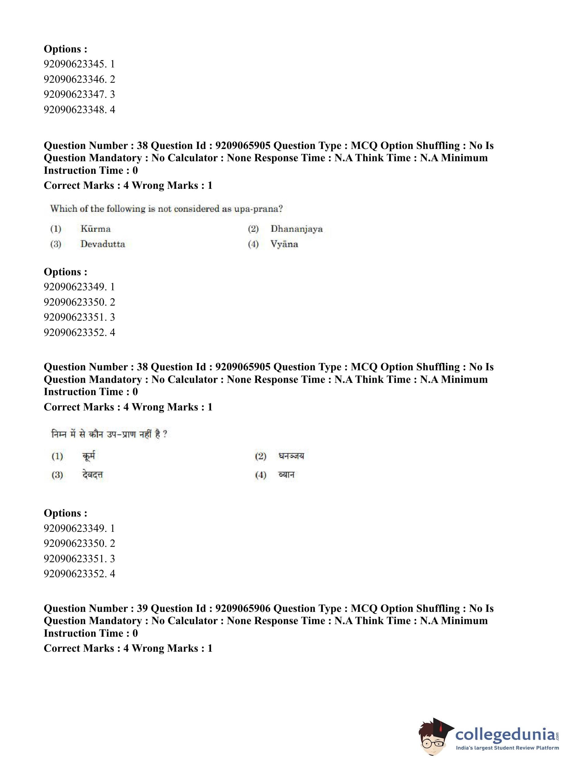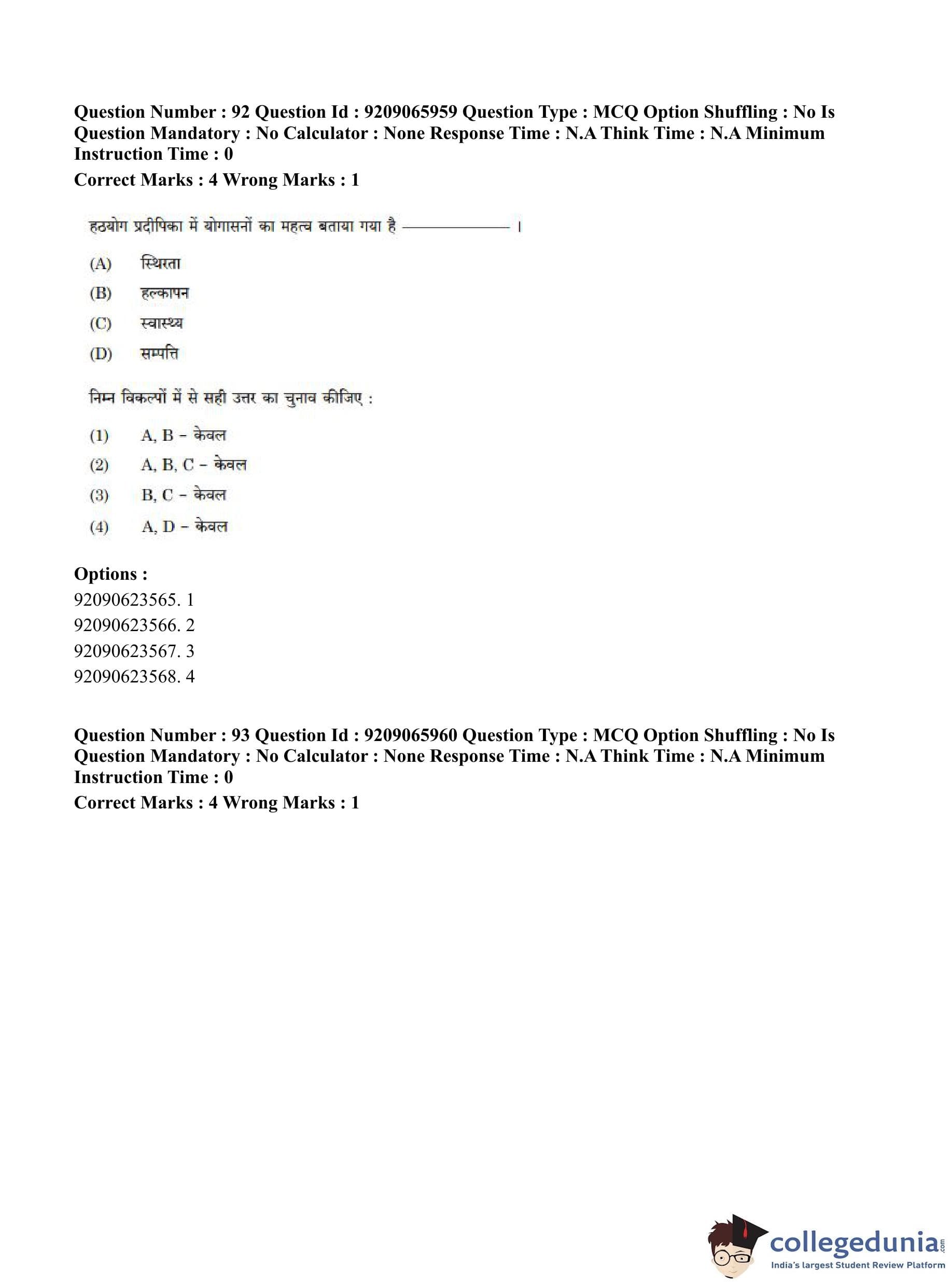 CUET PG 2023 Yoga Question Paper in English (June 8 - Shift 1)