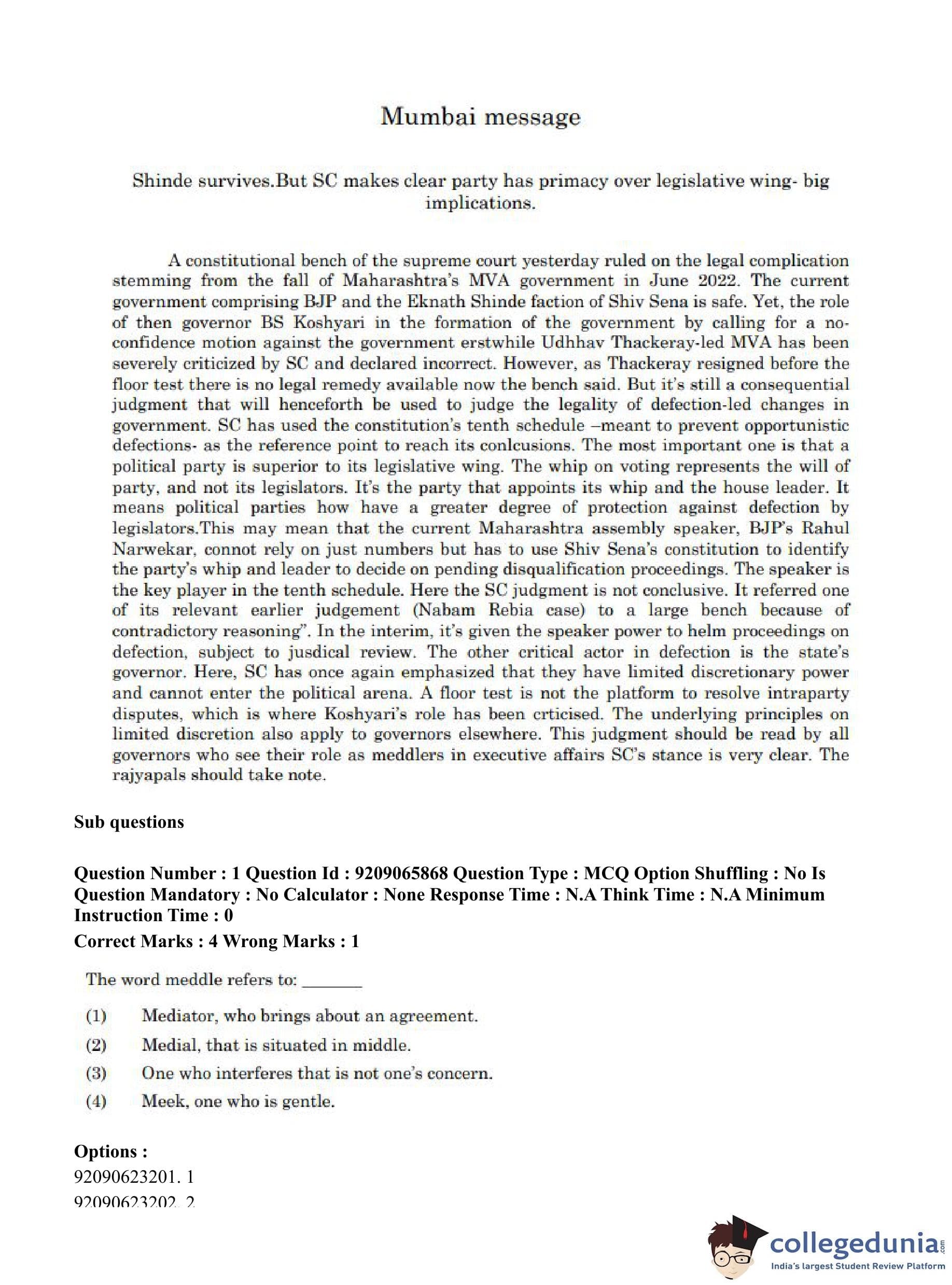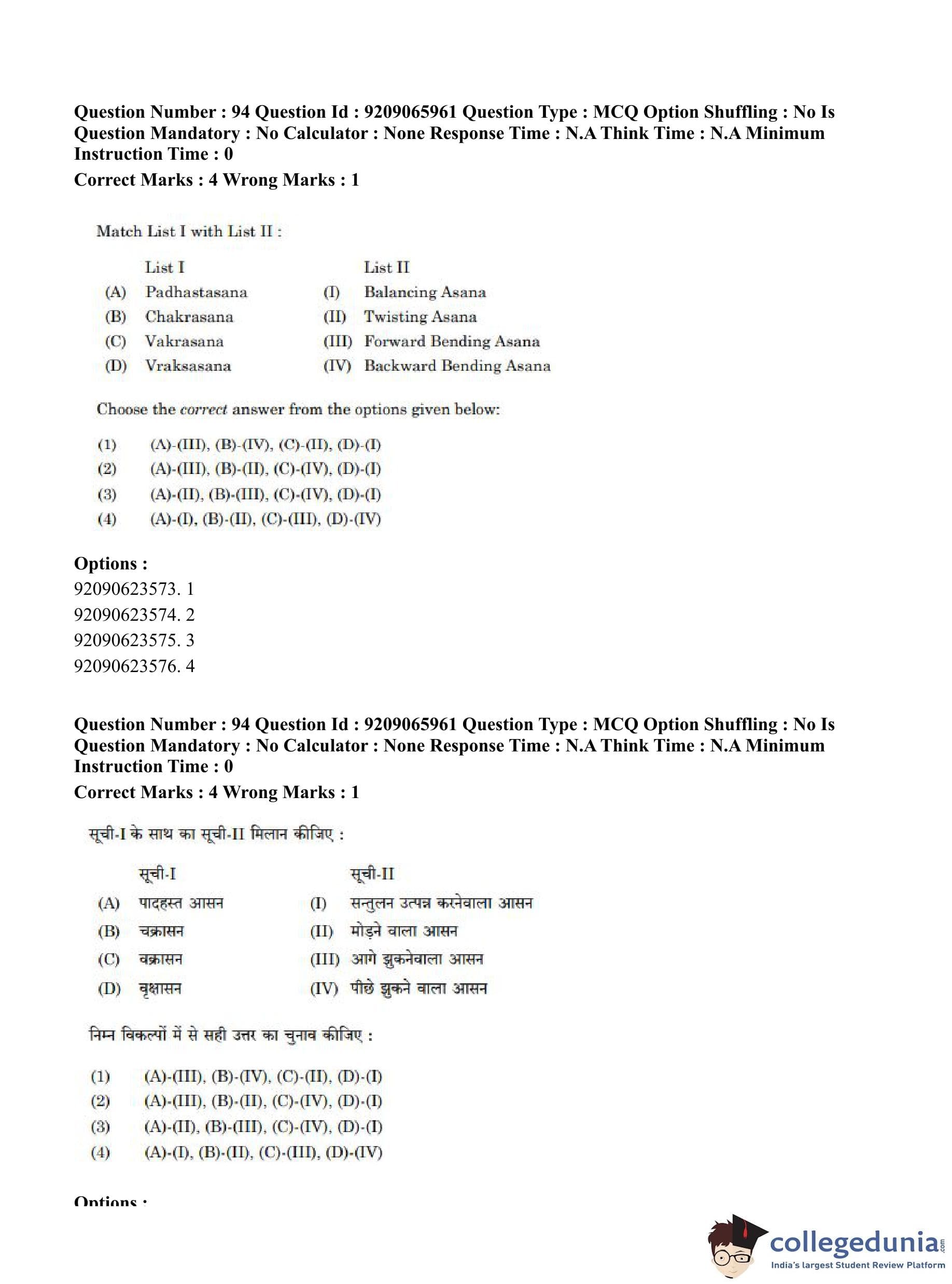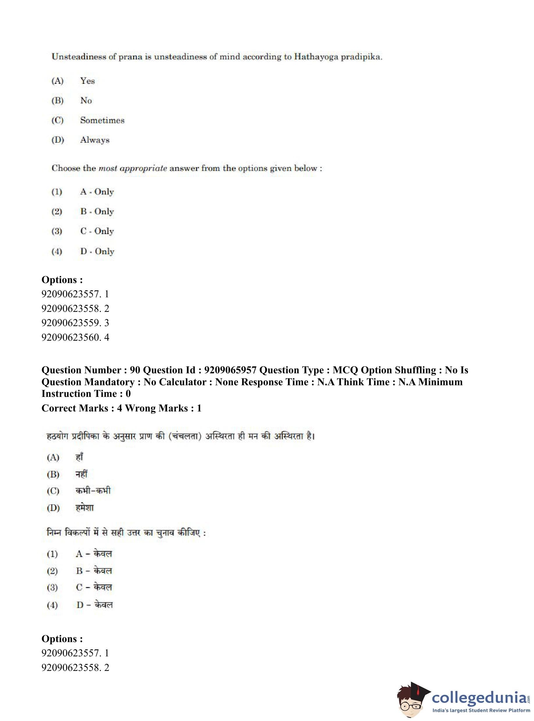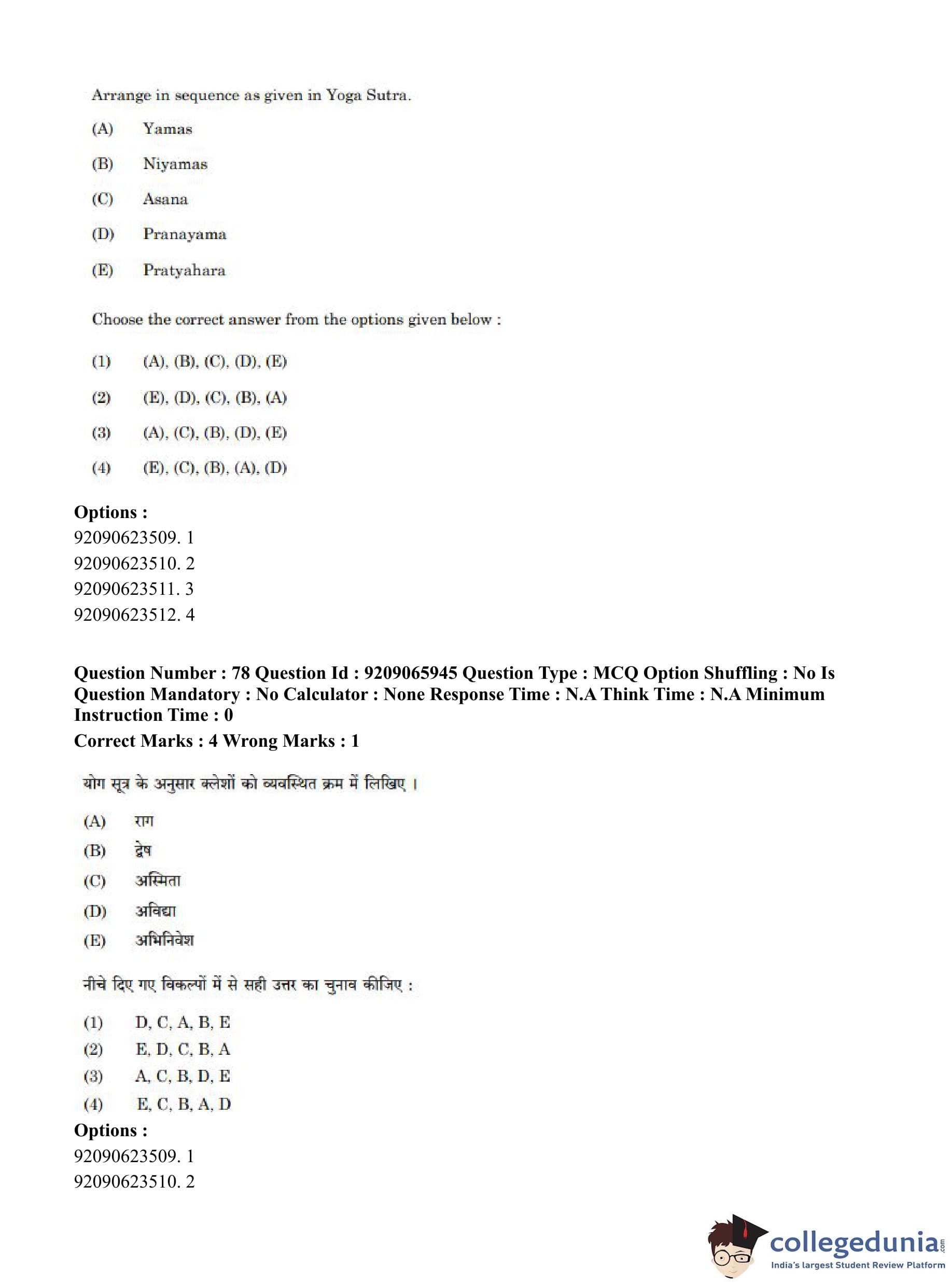 CUET PG 2023 Yoga Question Paper in English (June 8 - Shift 1)