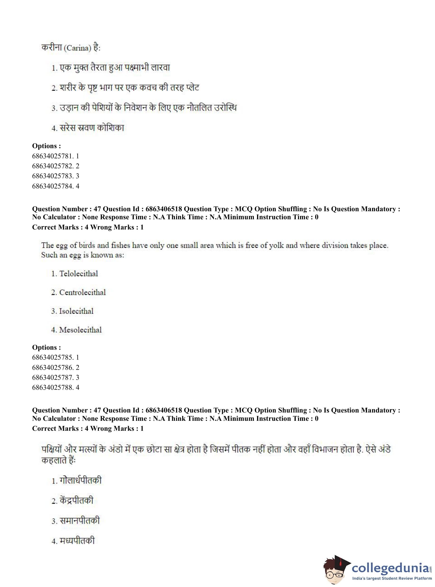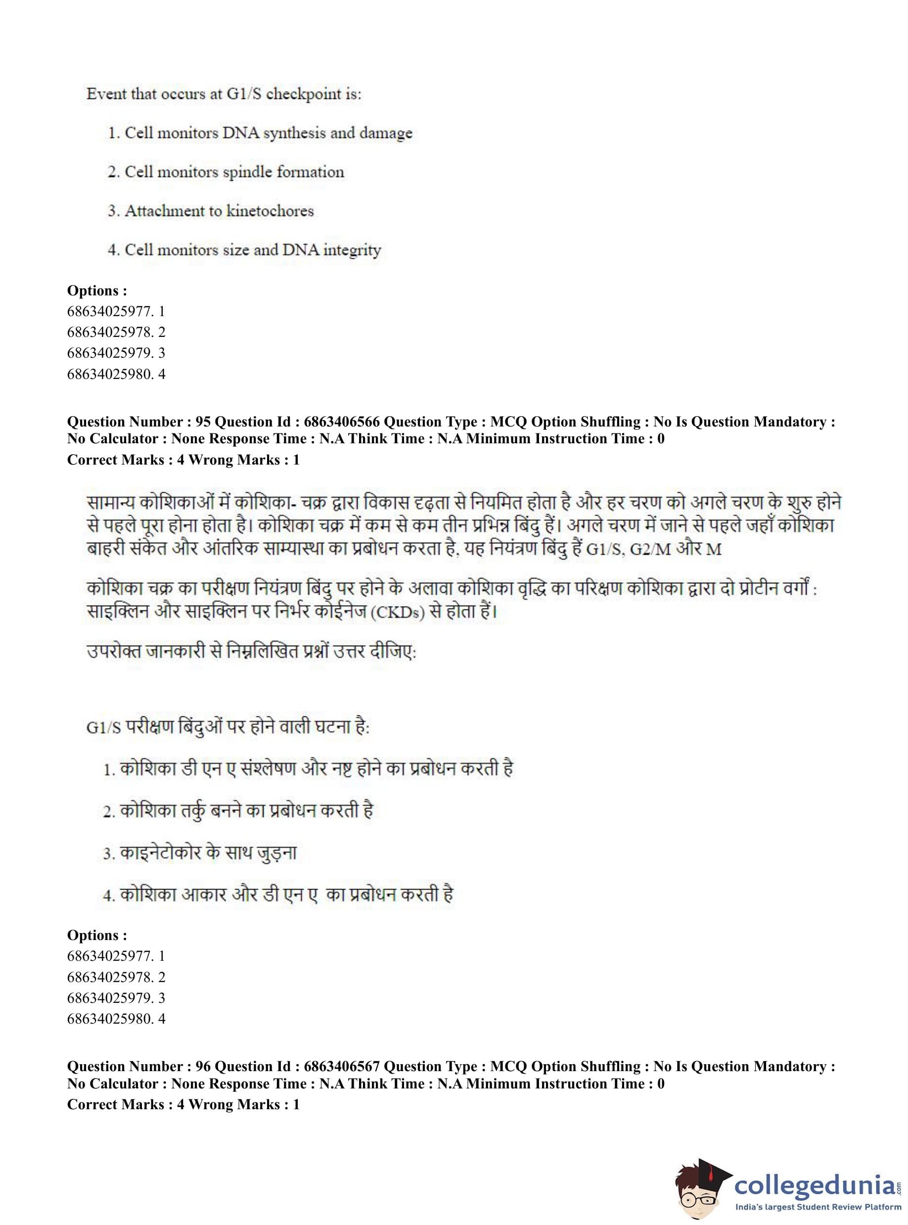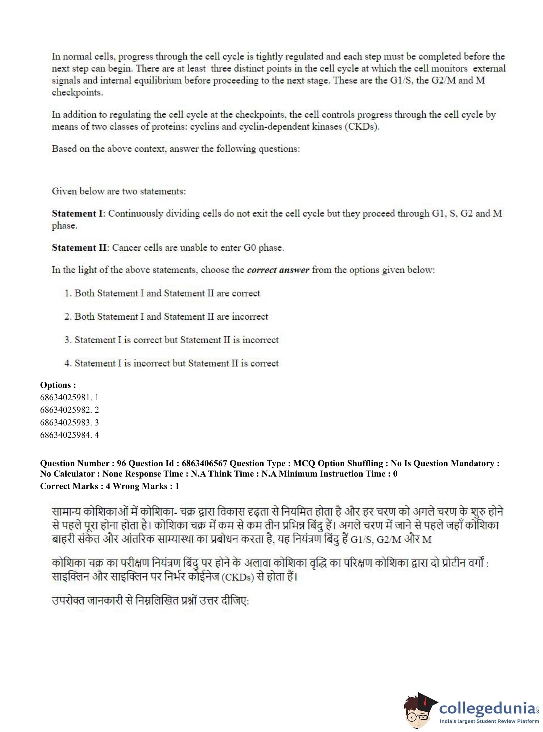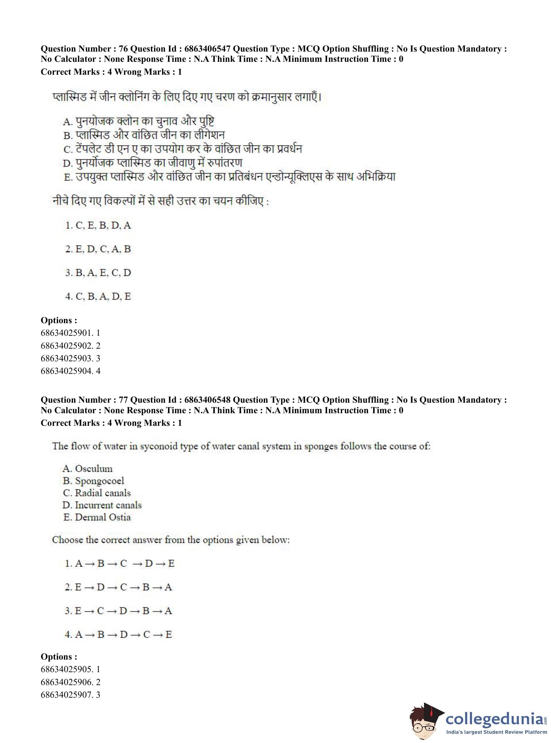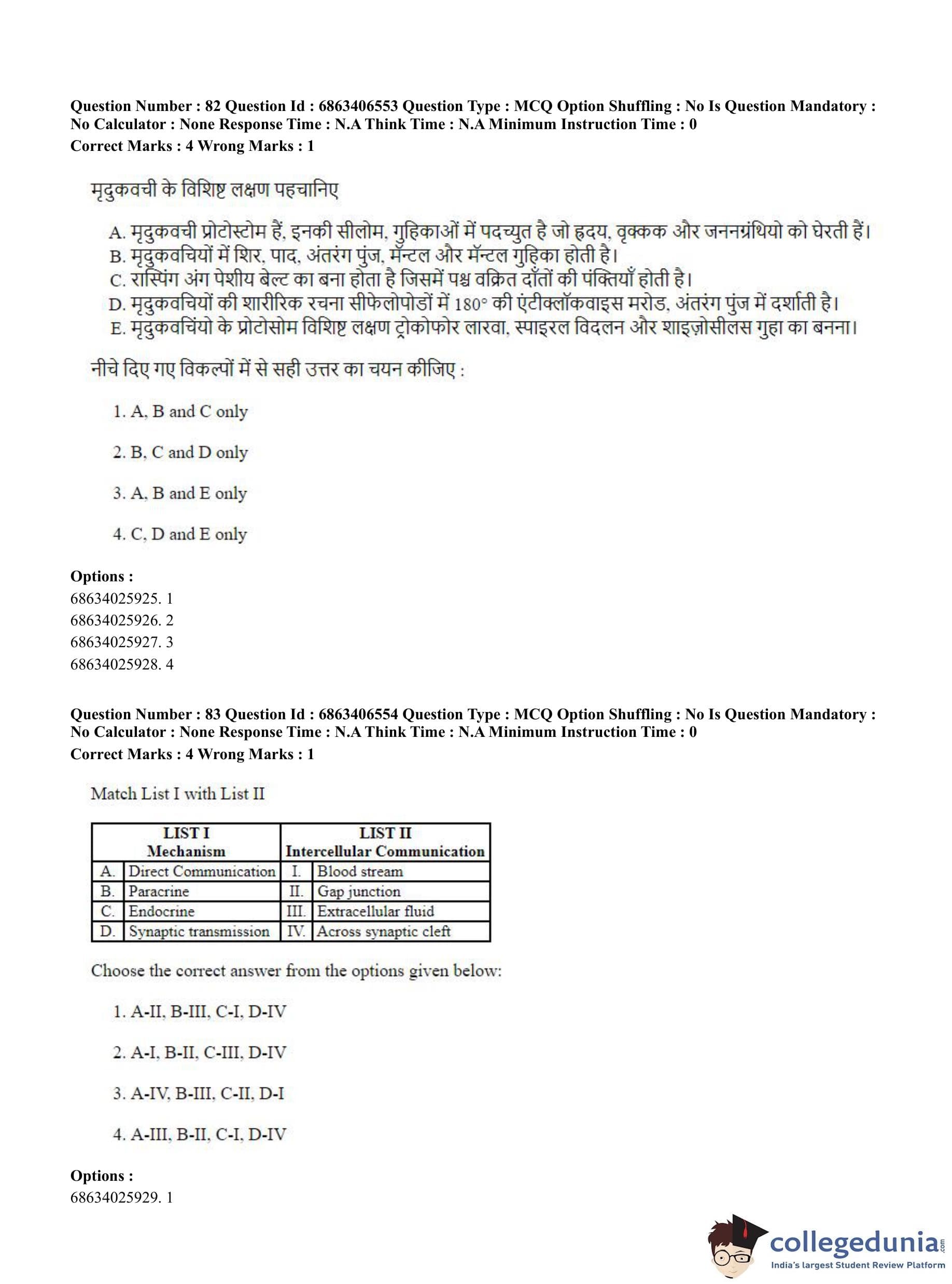CUET PG 2023 Zoology Question Paper in Hindi (June 5 - Shift 3)