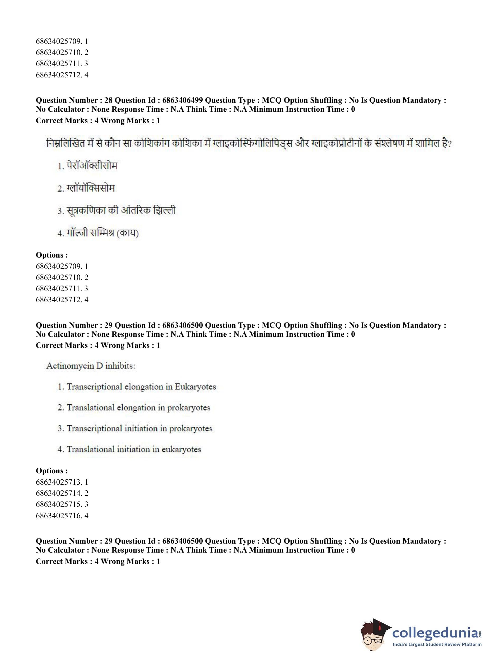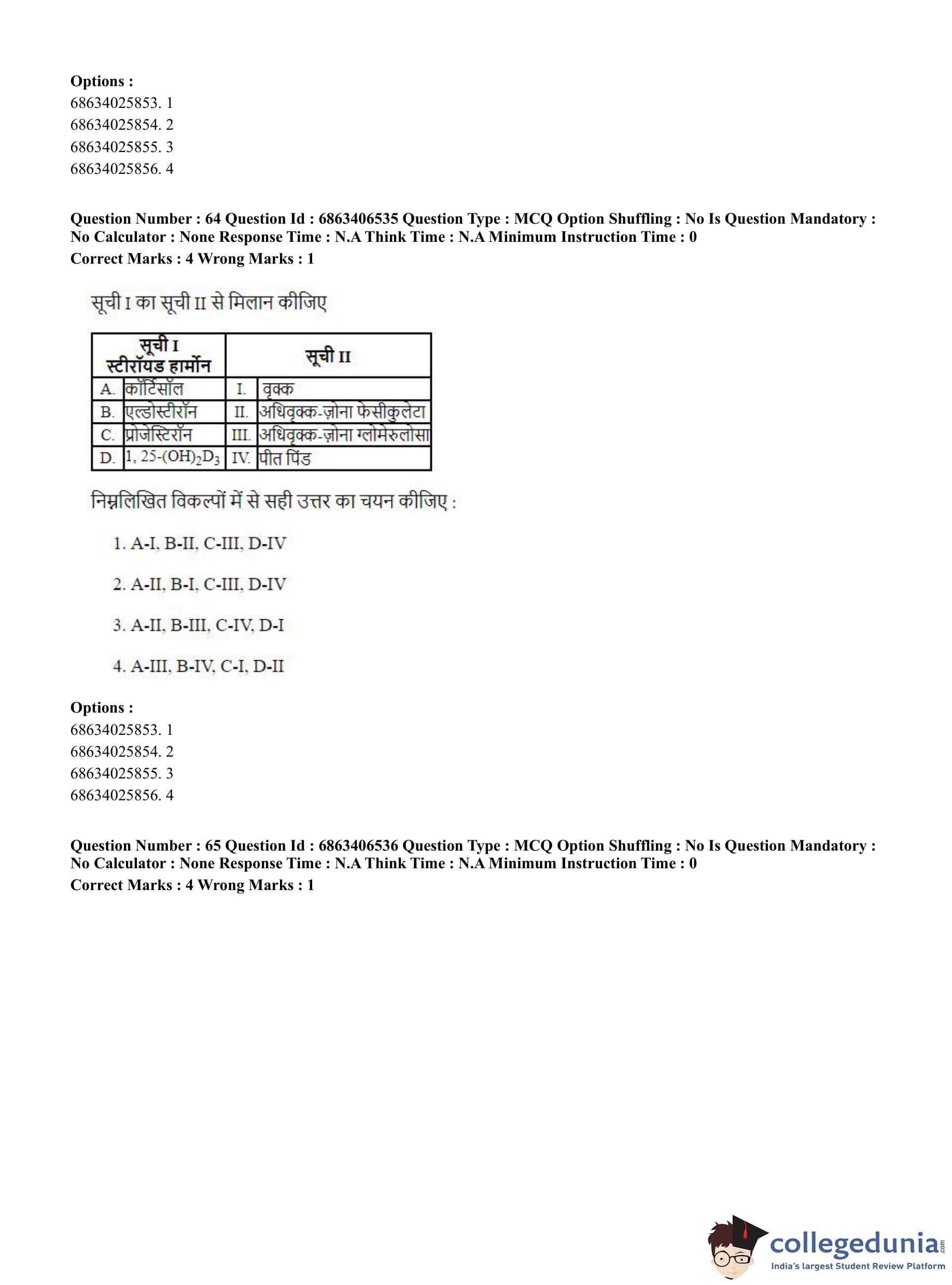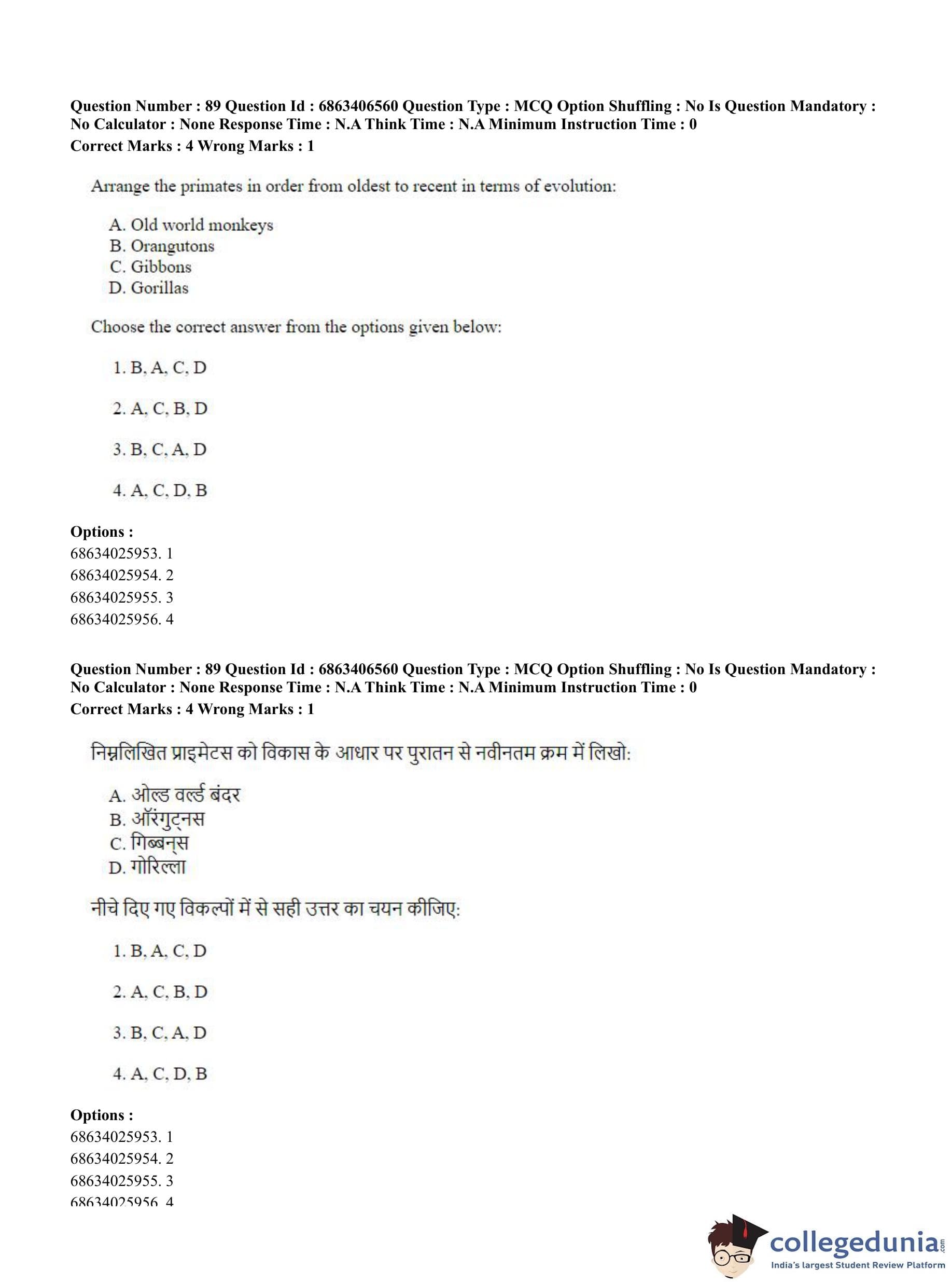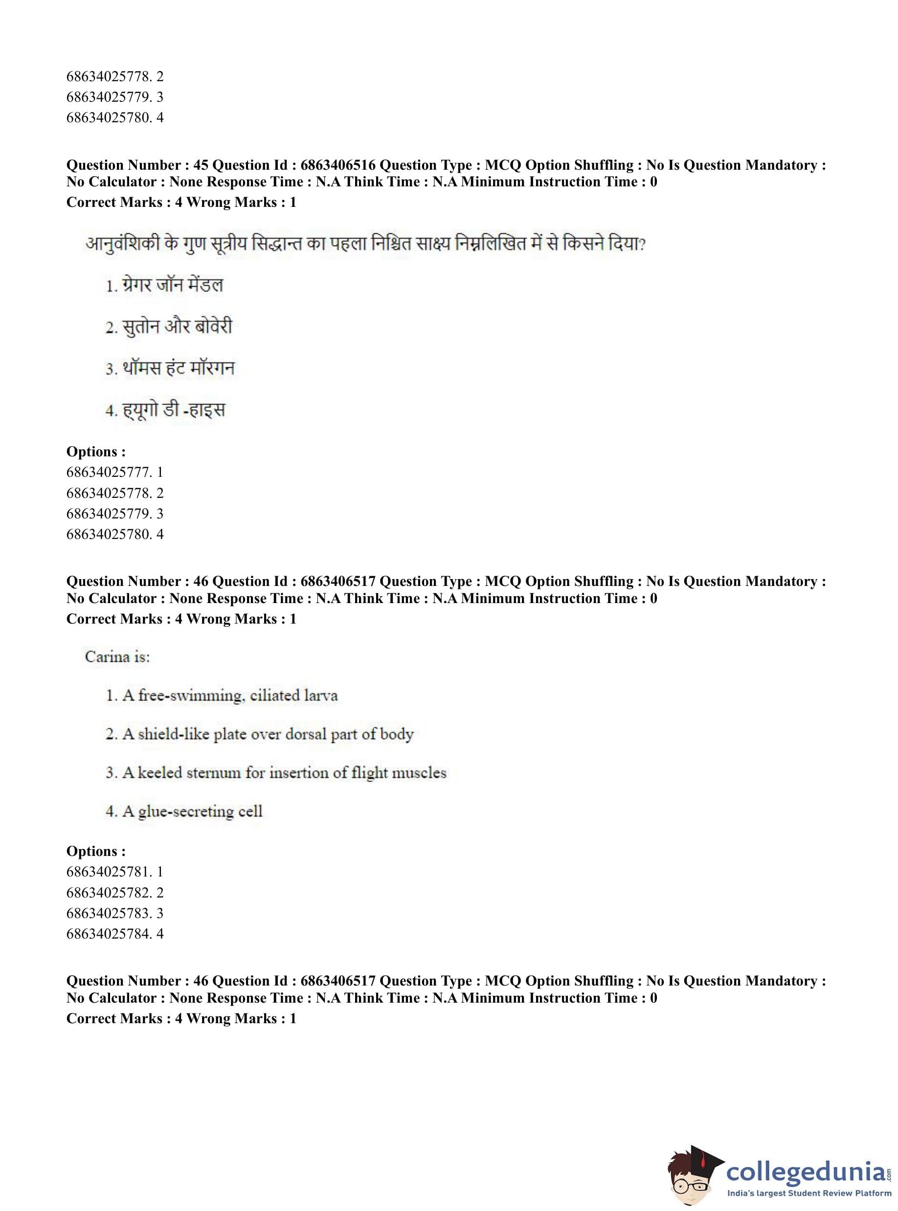 CUET PG 2023 Zoology Question Paper in Hindi (June 5 - Shift 3)