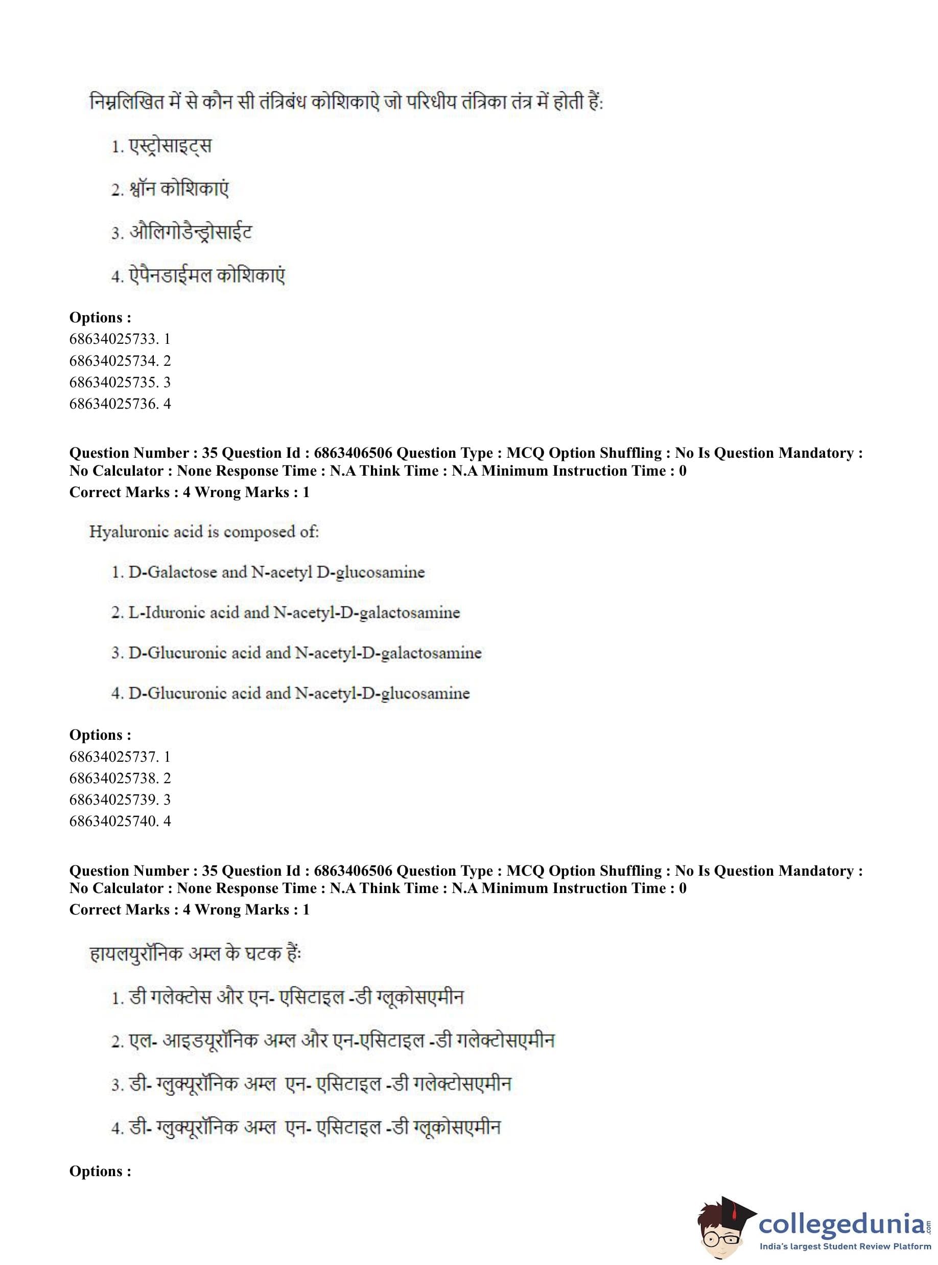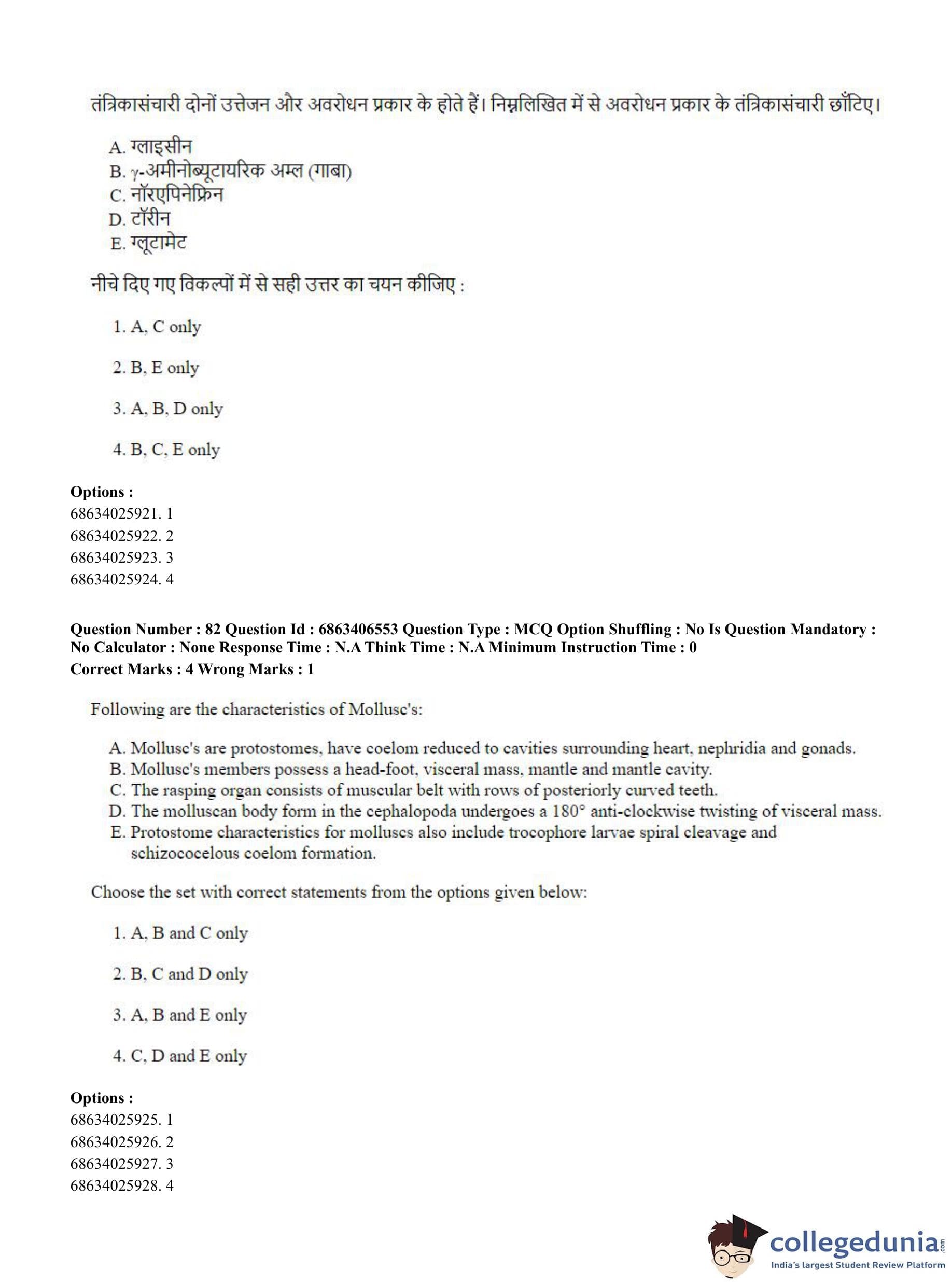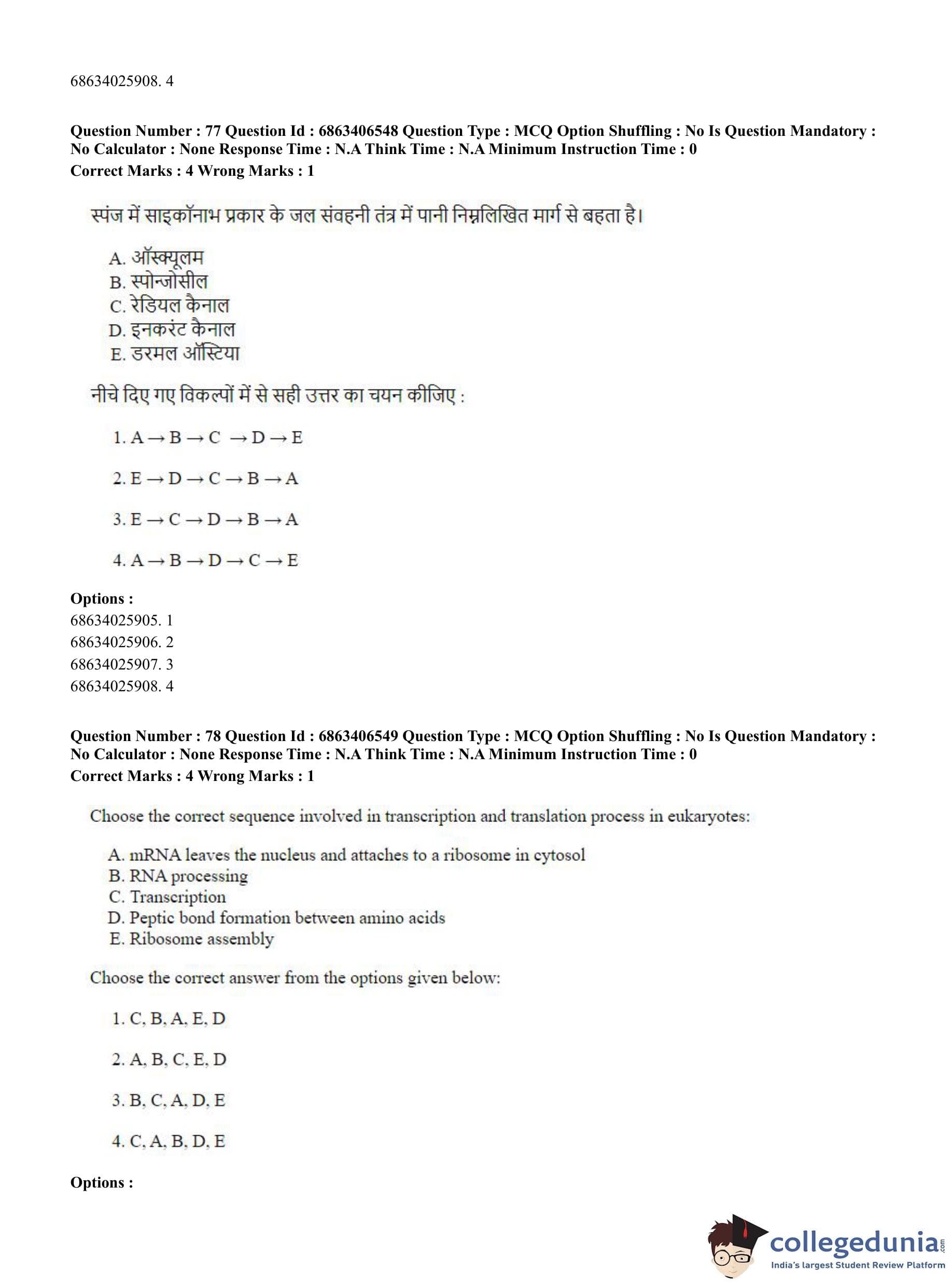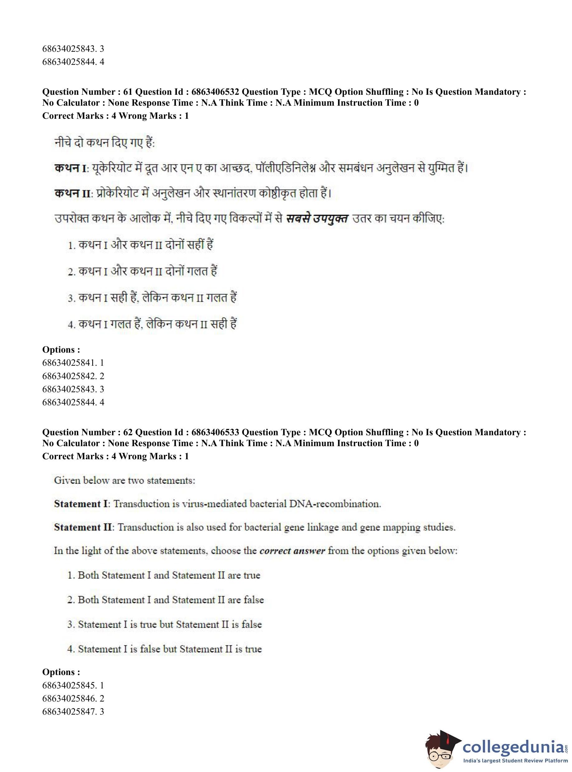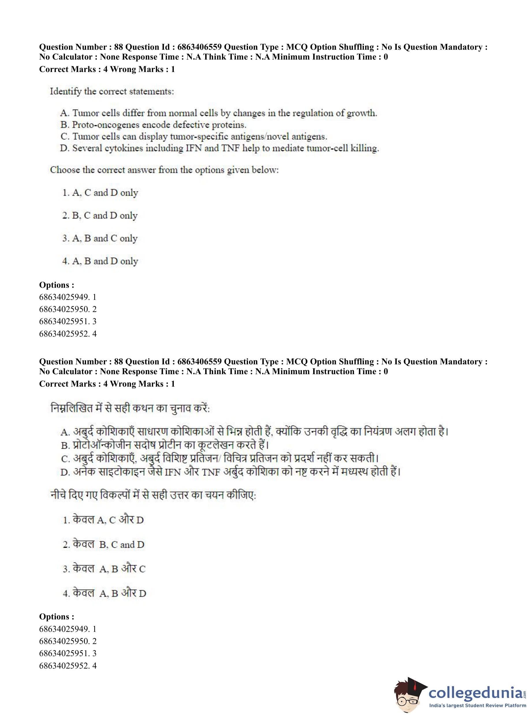 CUET PG 2023 Zoology Question Paper in Hindi (June 5 - Shift 3)