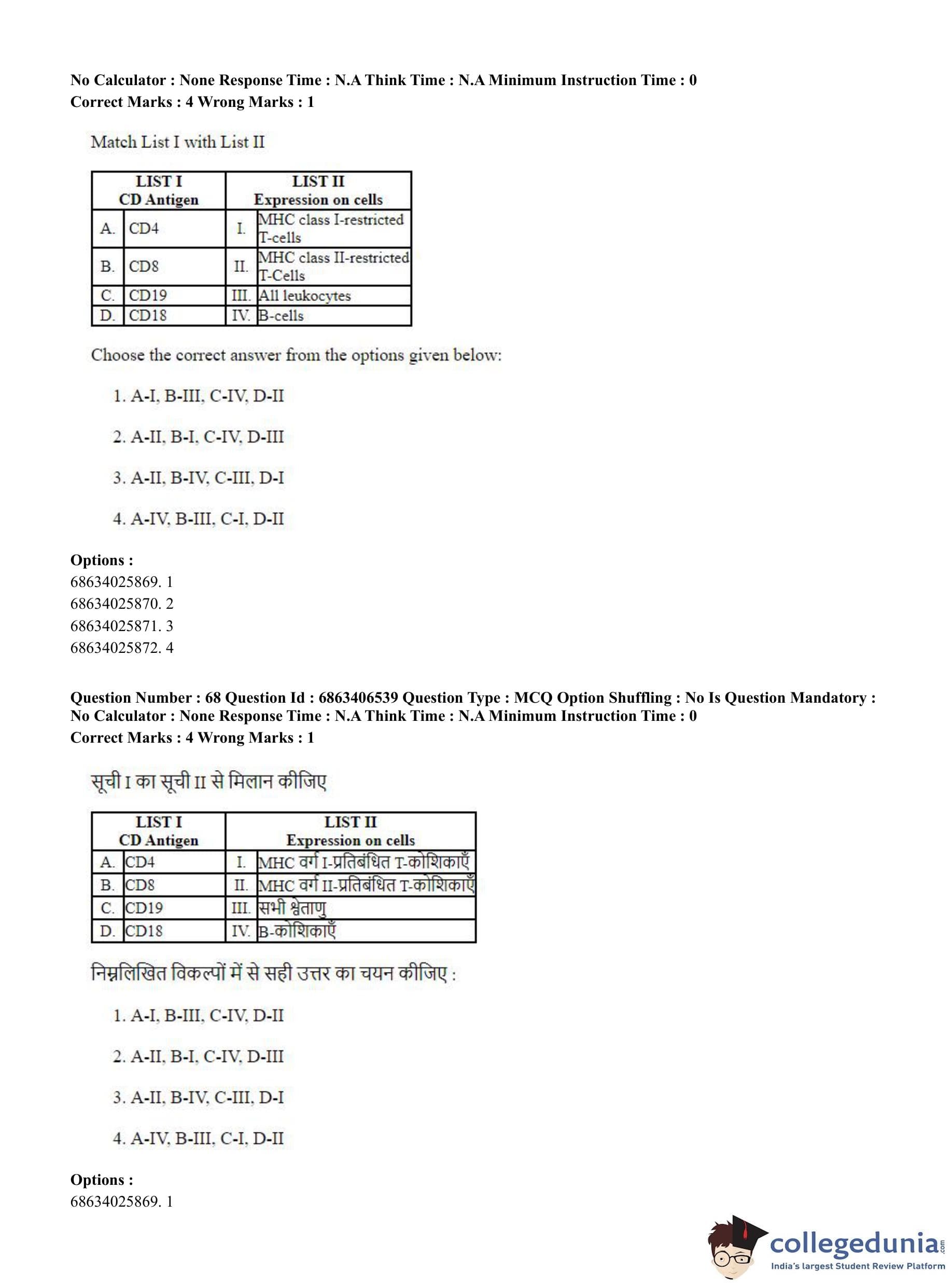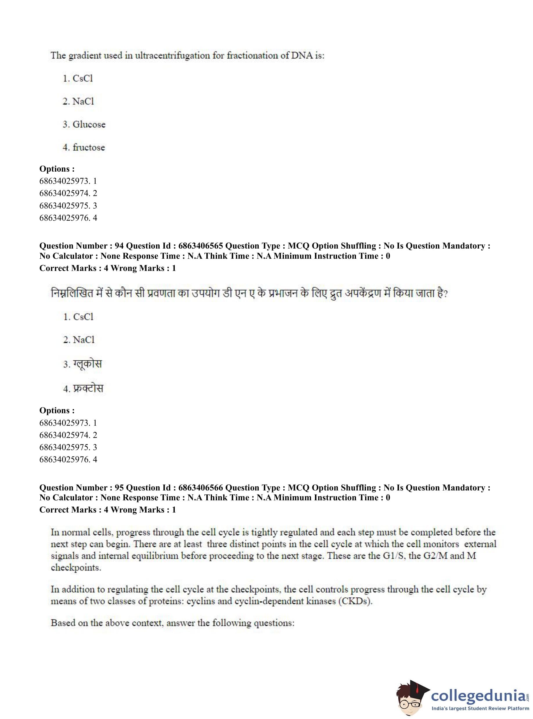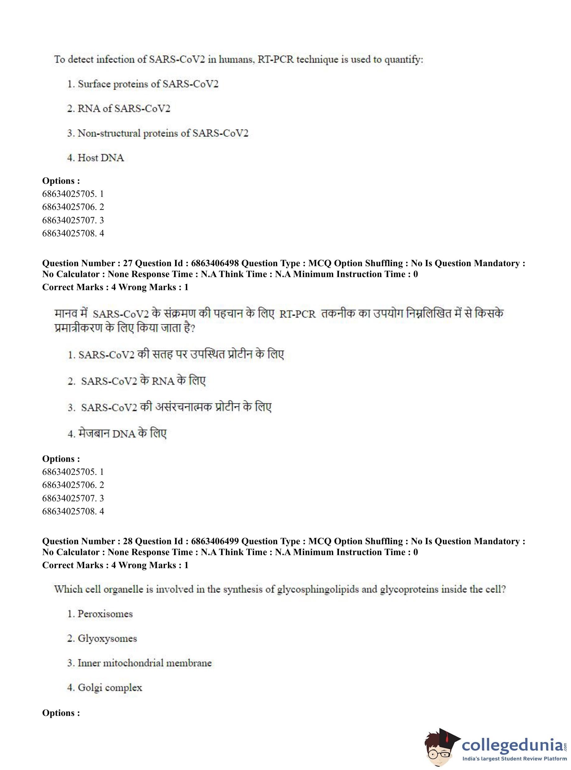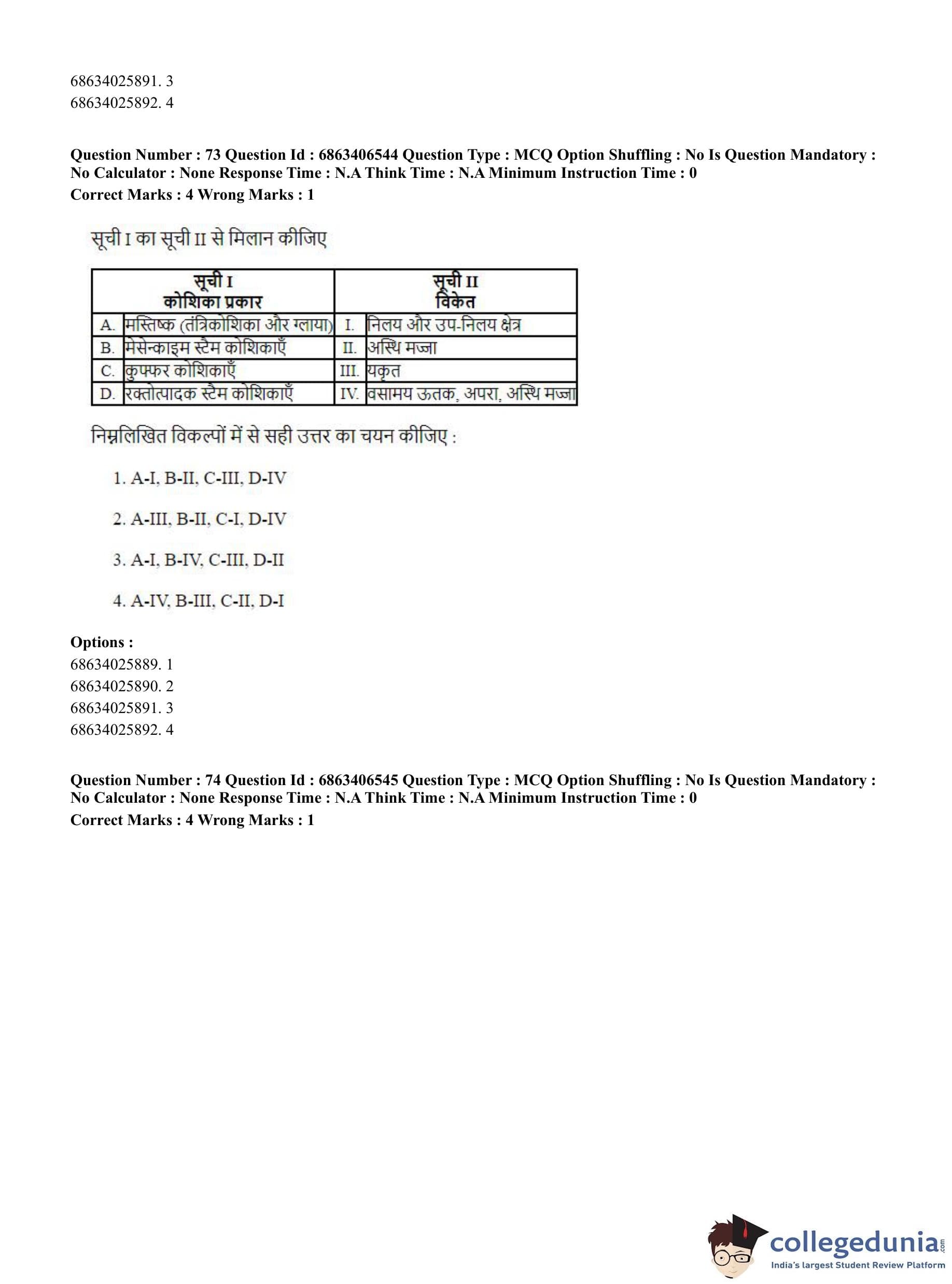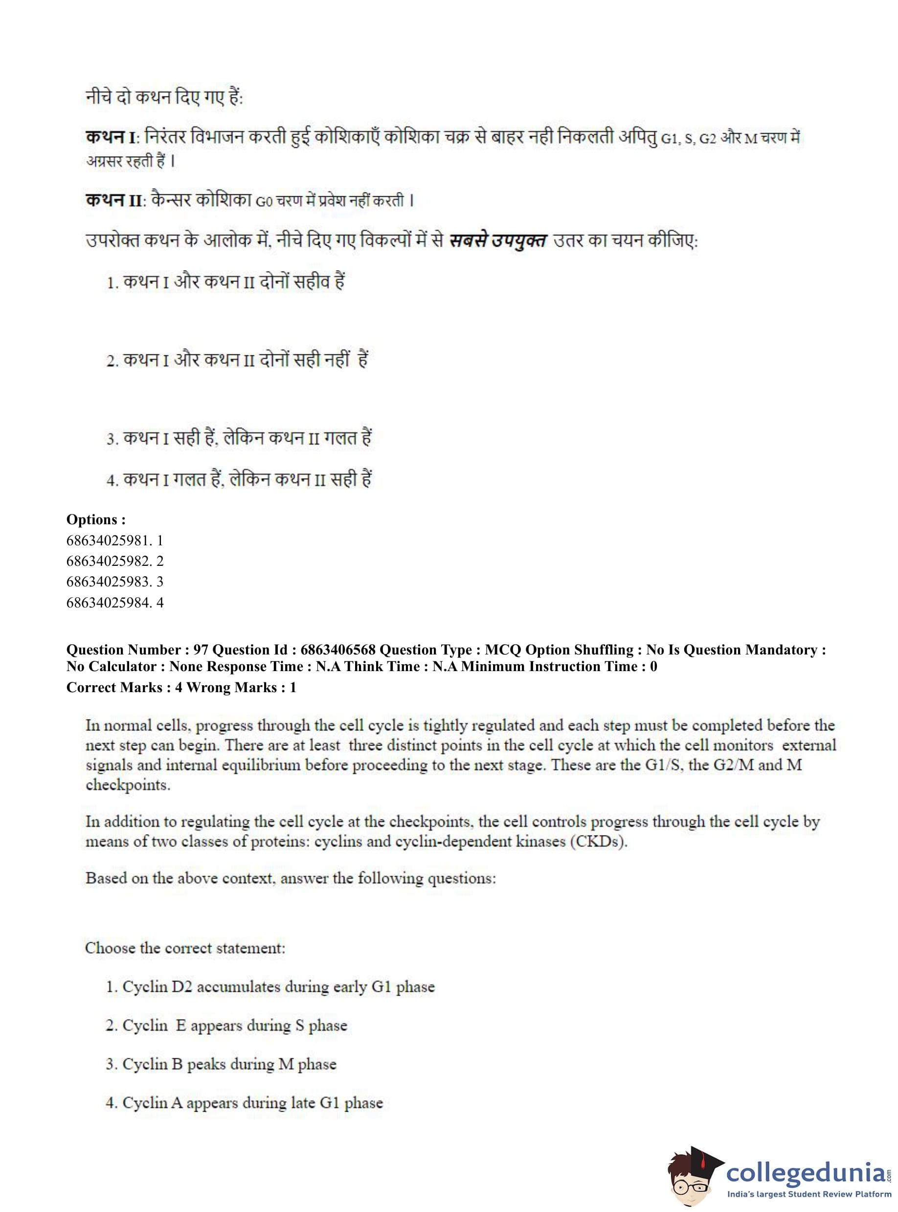 CUET PG 2023 Zoology Question Paper in Hindi (June 5 - Shift 3)