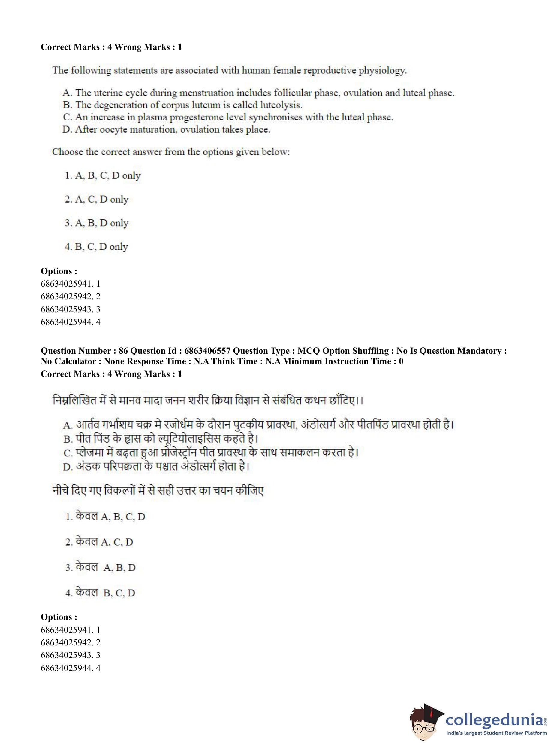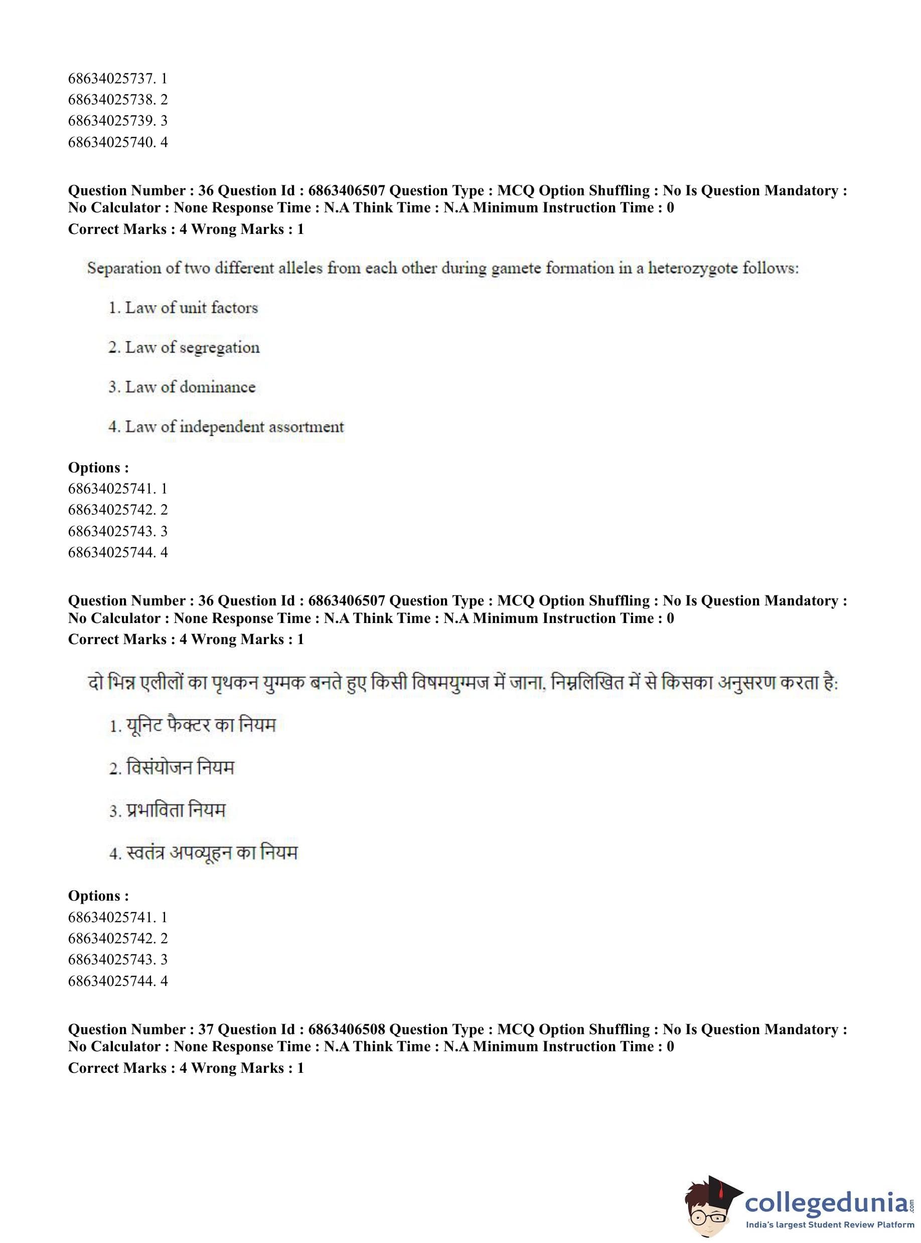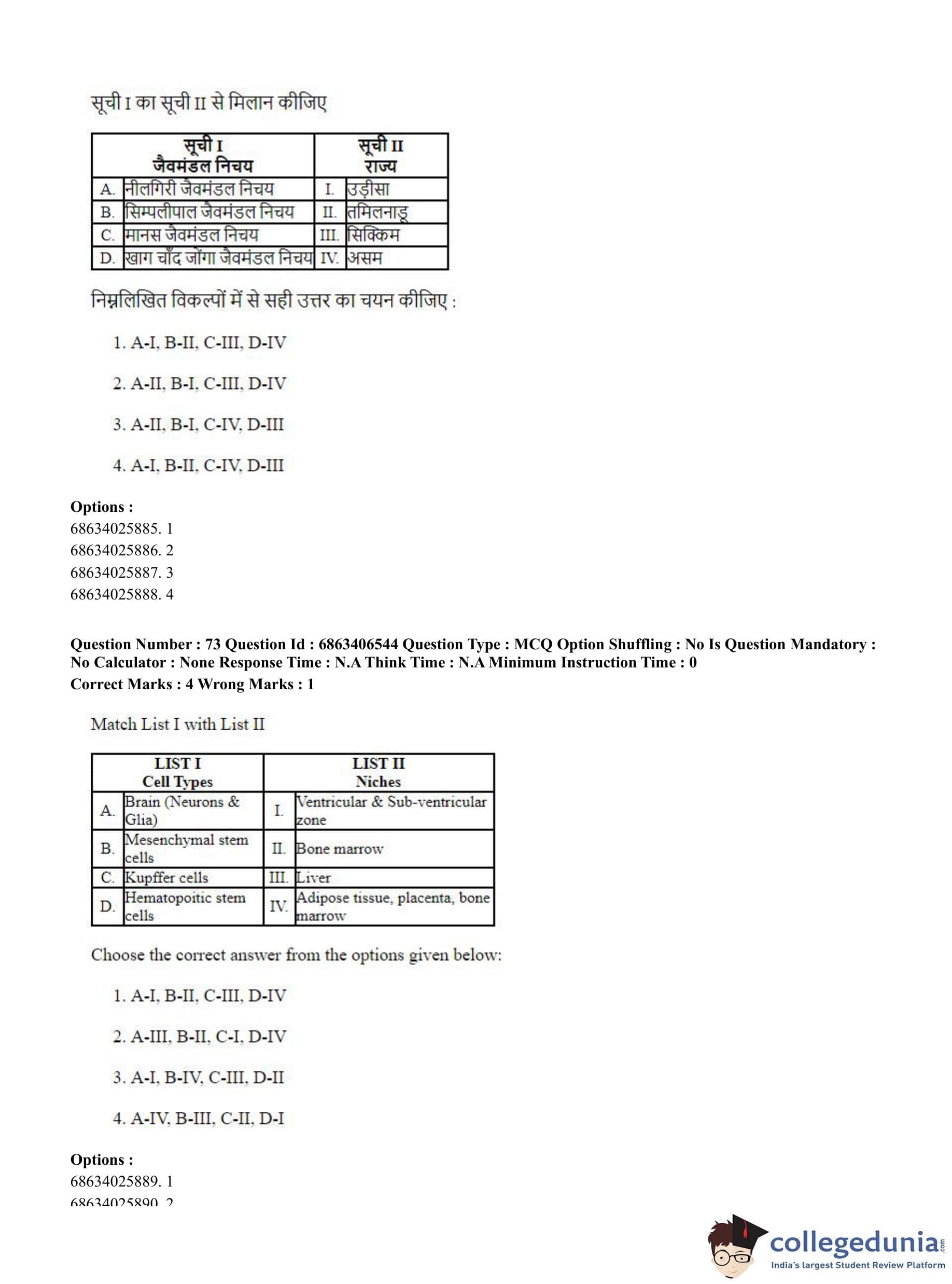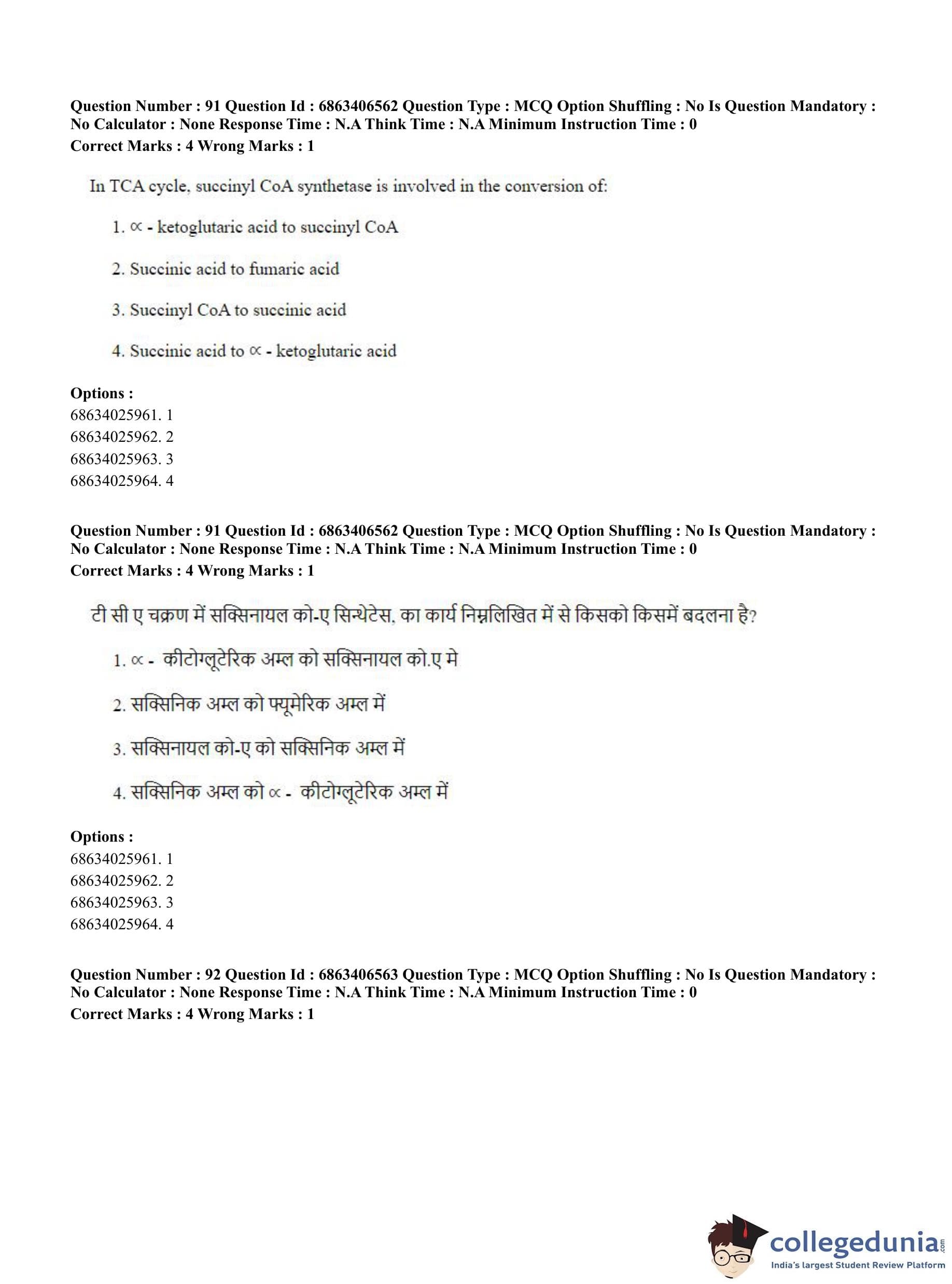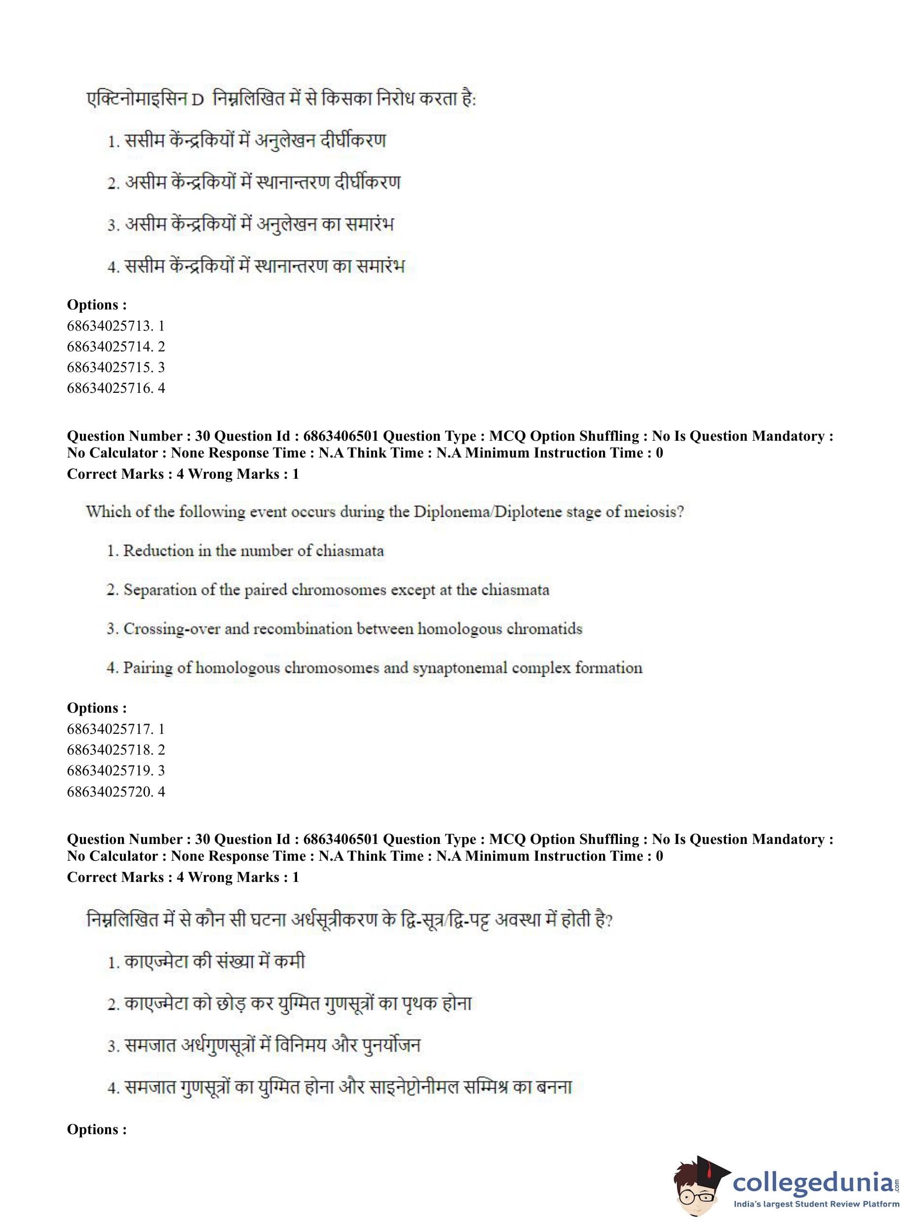CUET PG 2023 Zoology Question Paper in Hindi (June 5 - Shift 3)