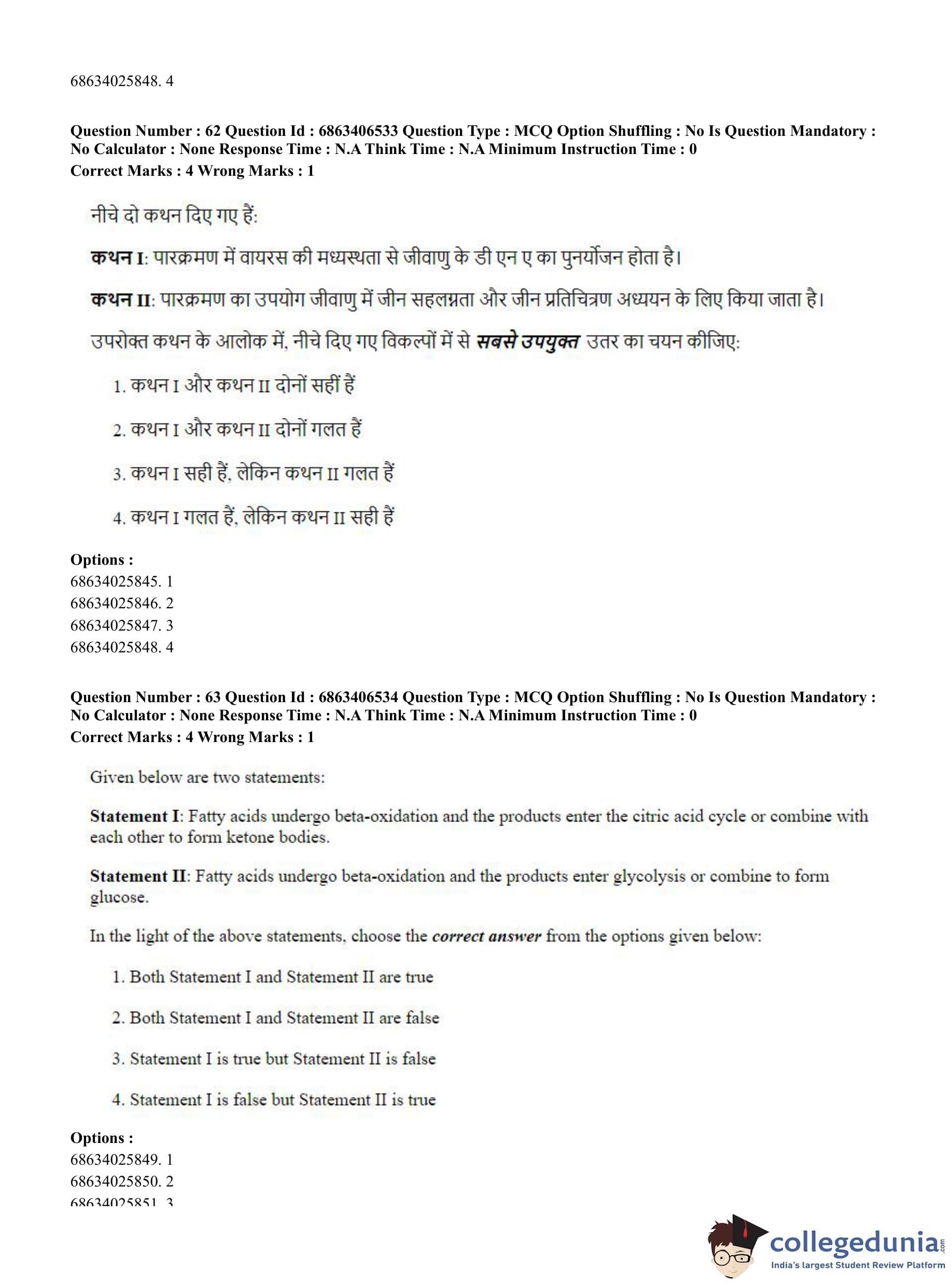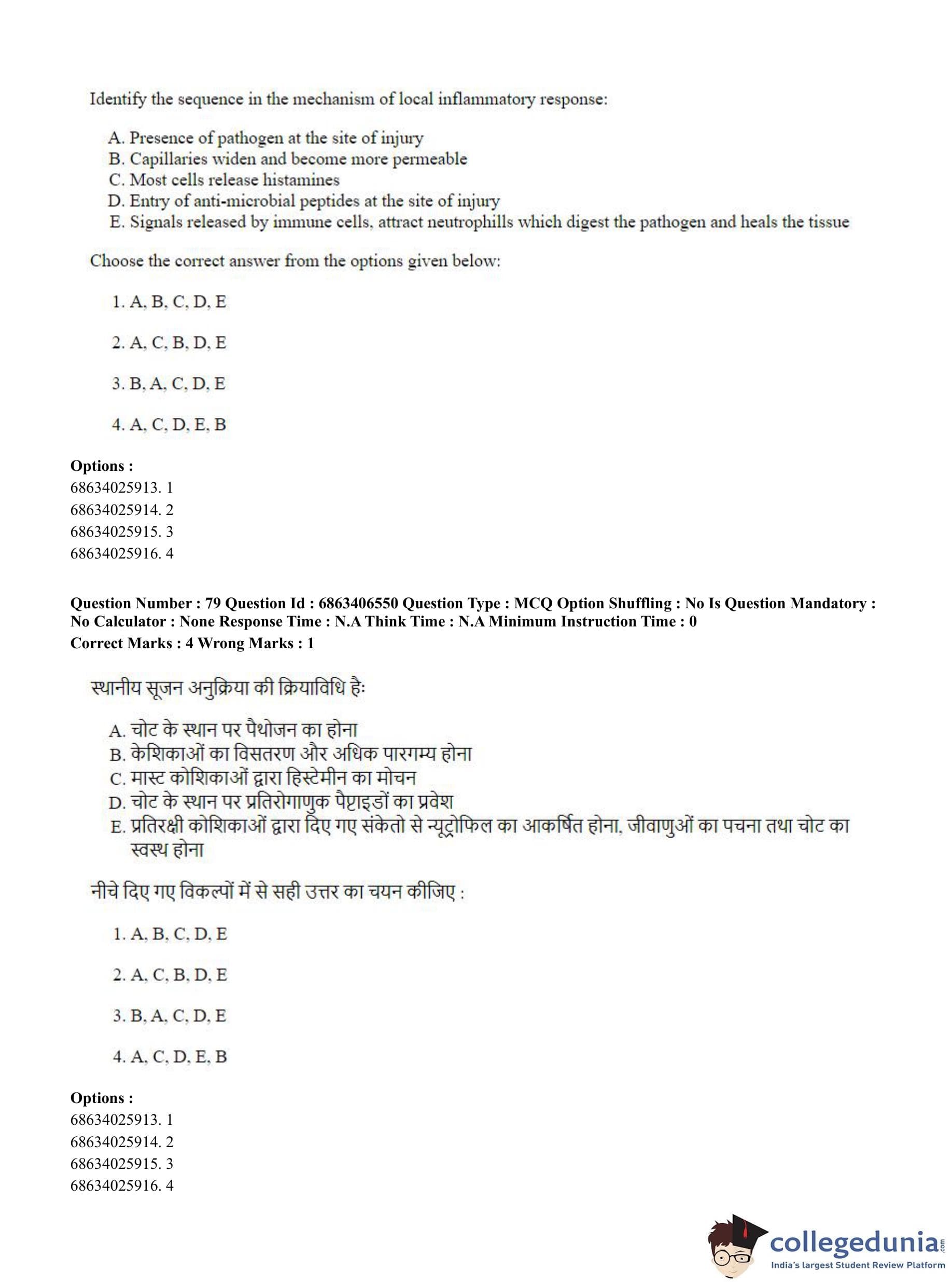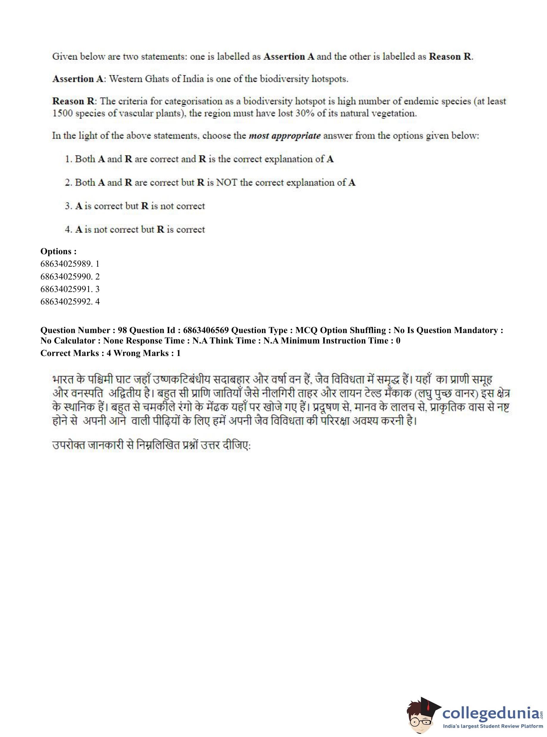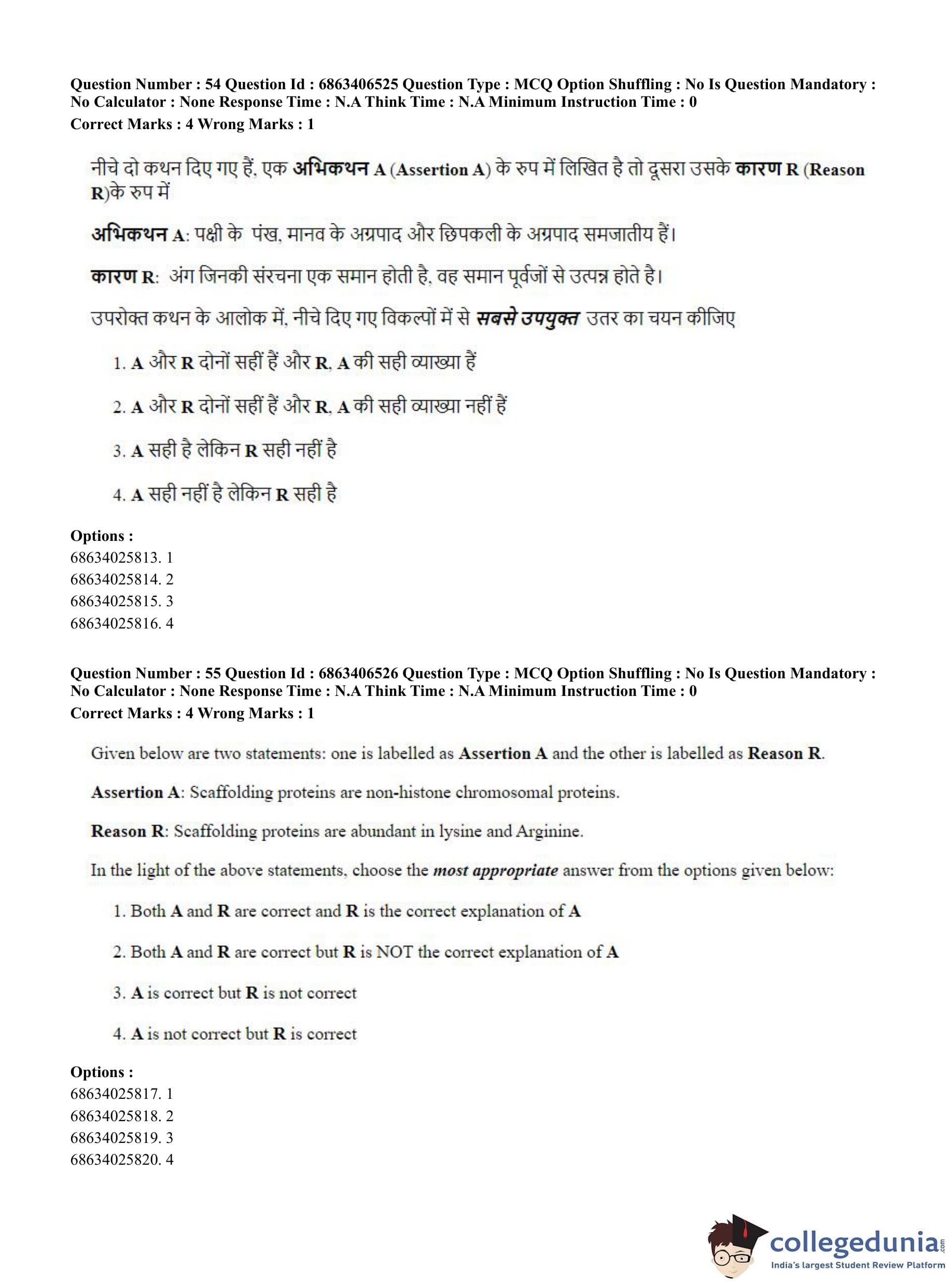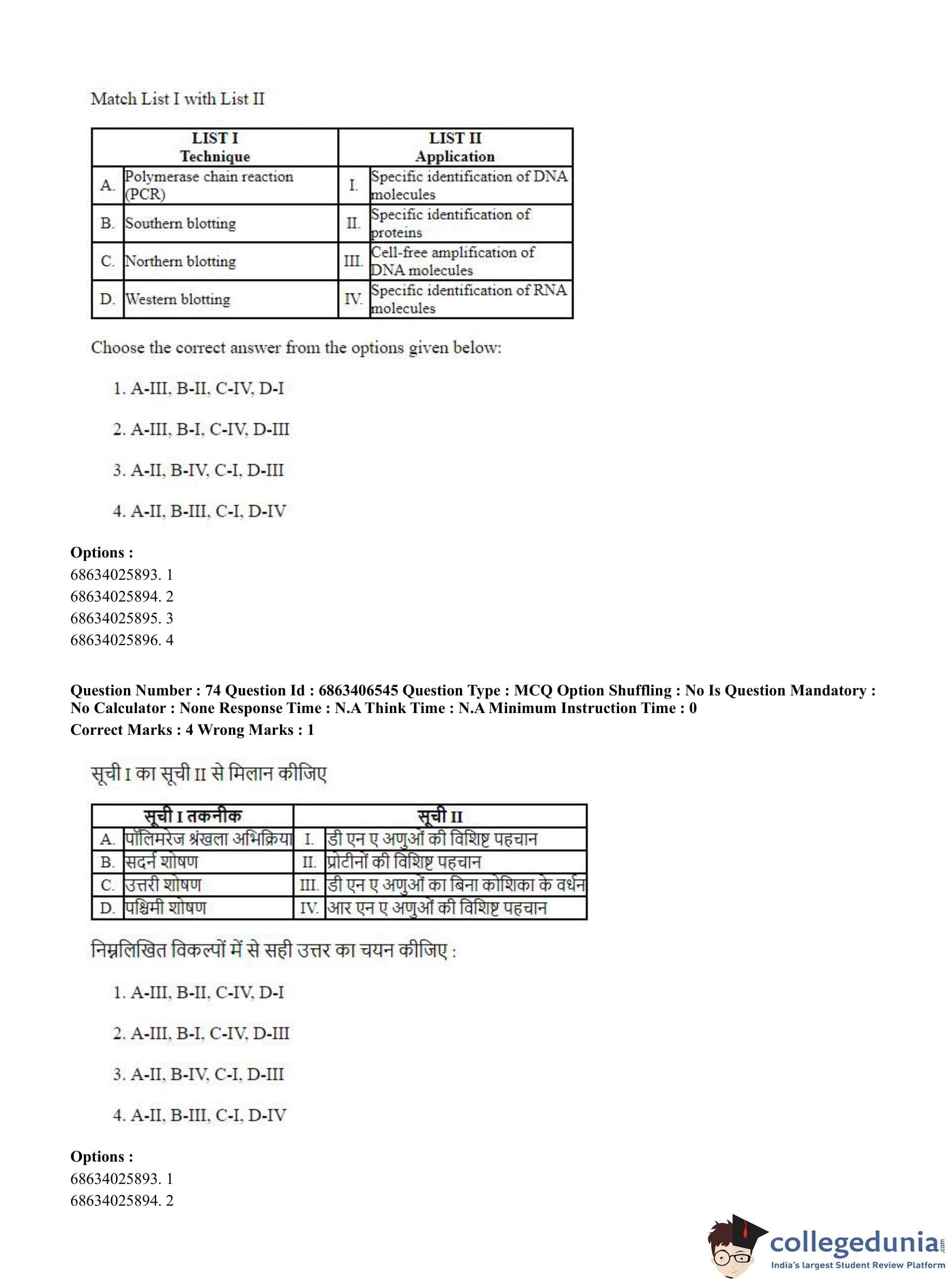 CUET PG 2023 Zoology Question Paper in Hindi (June 5 - Shift 3)