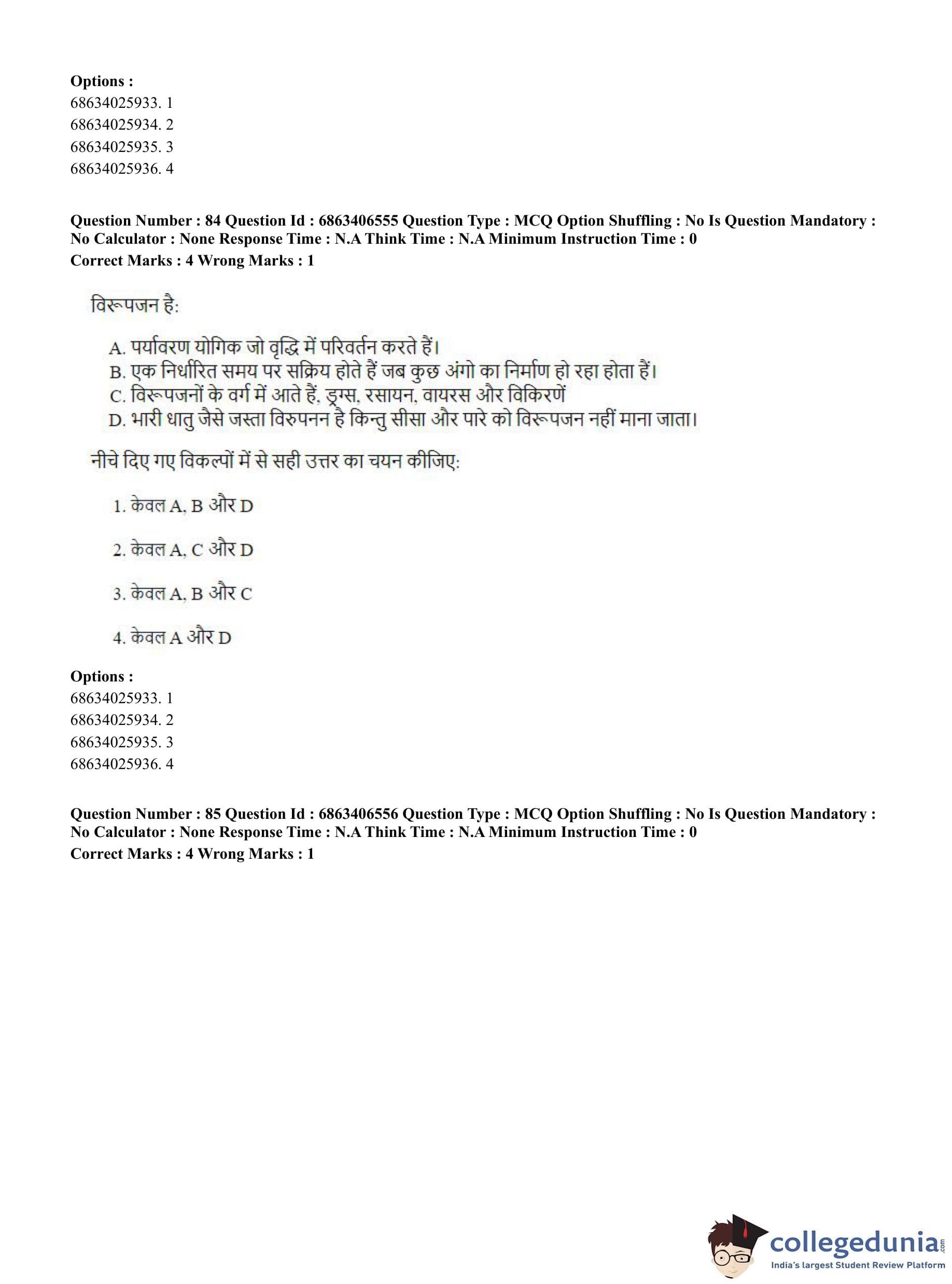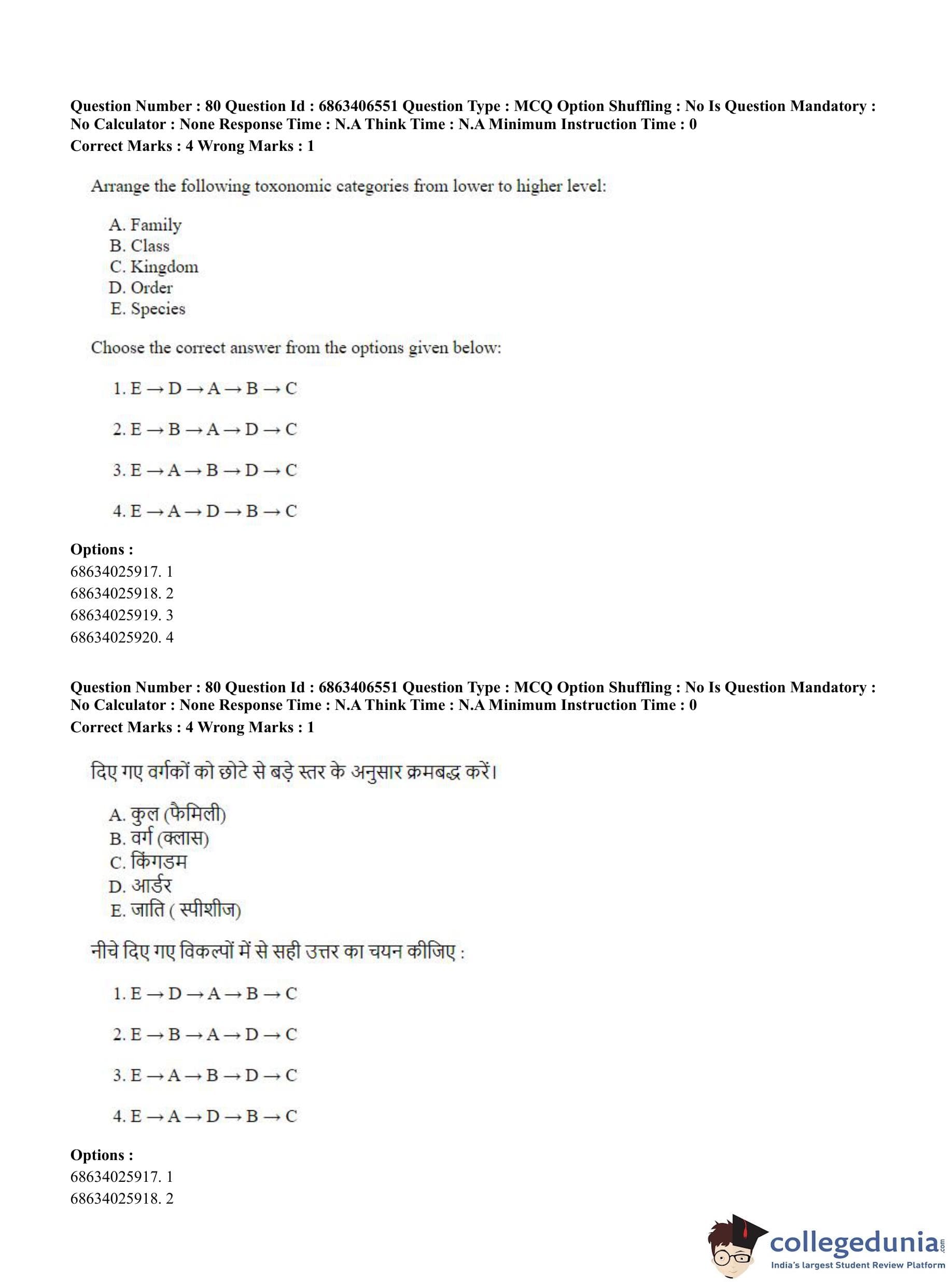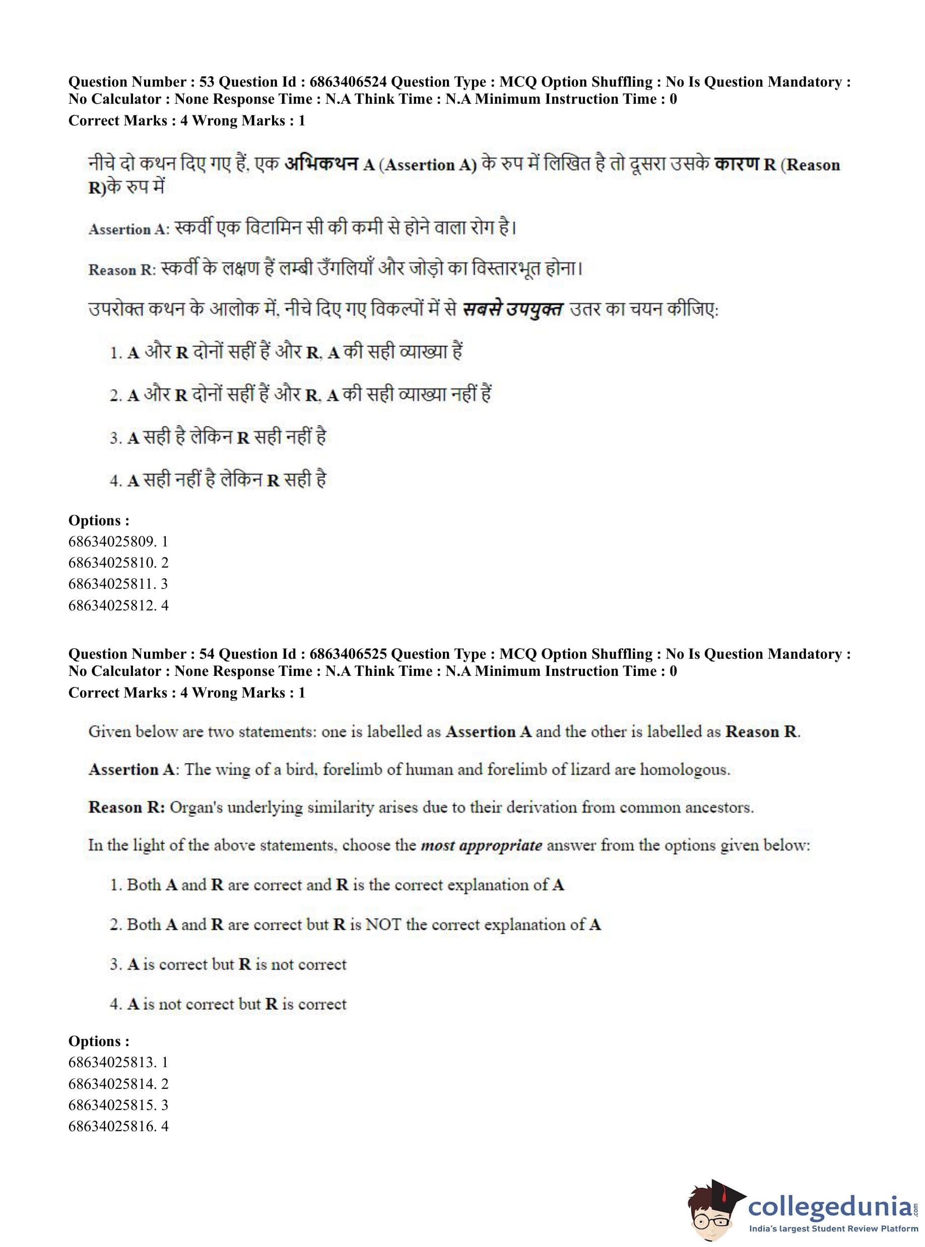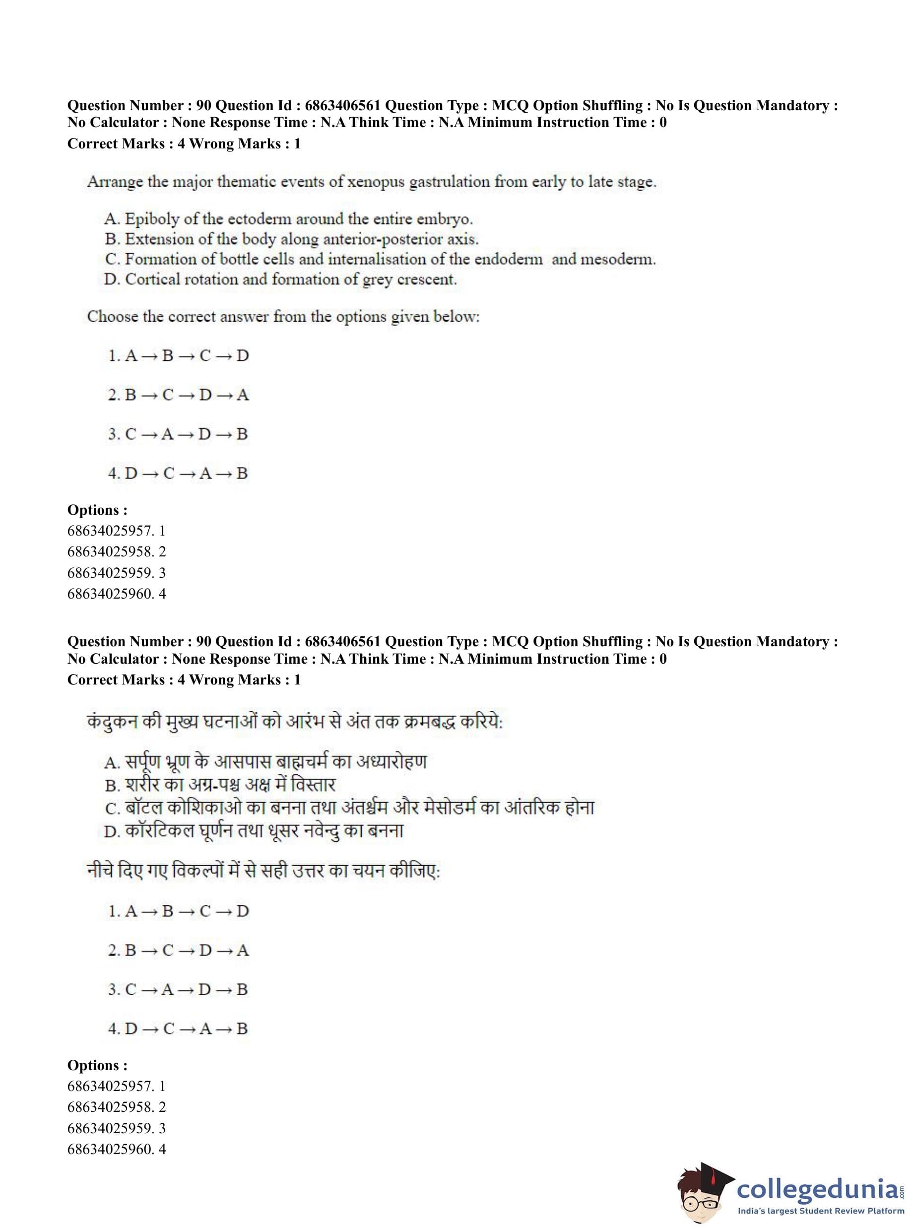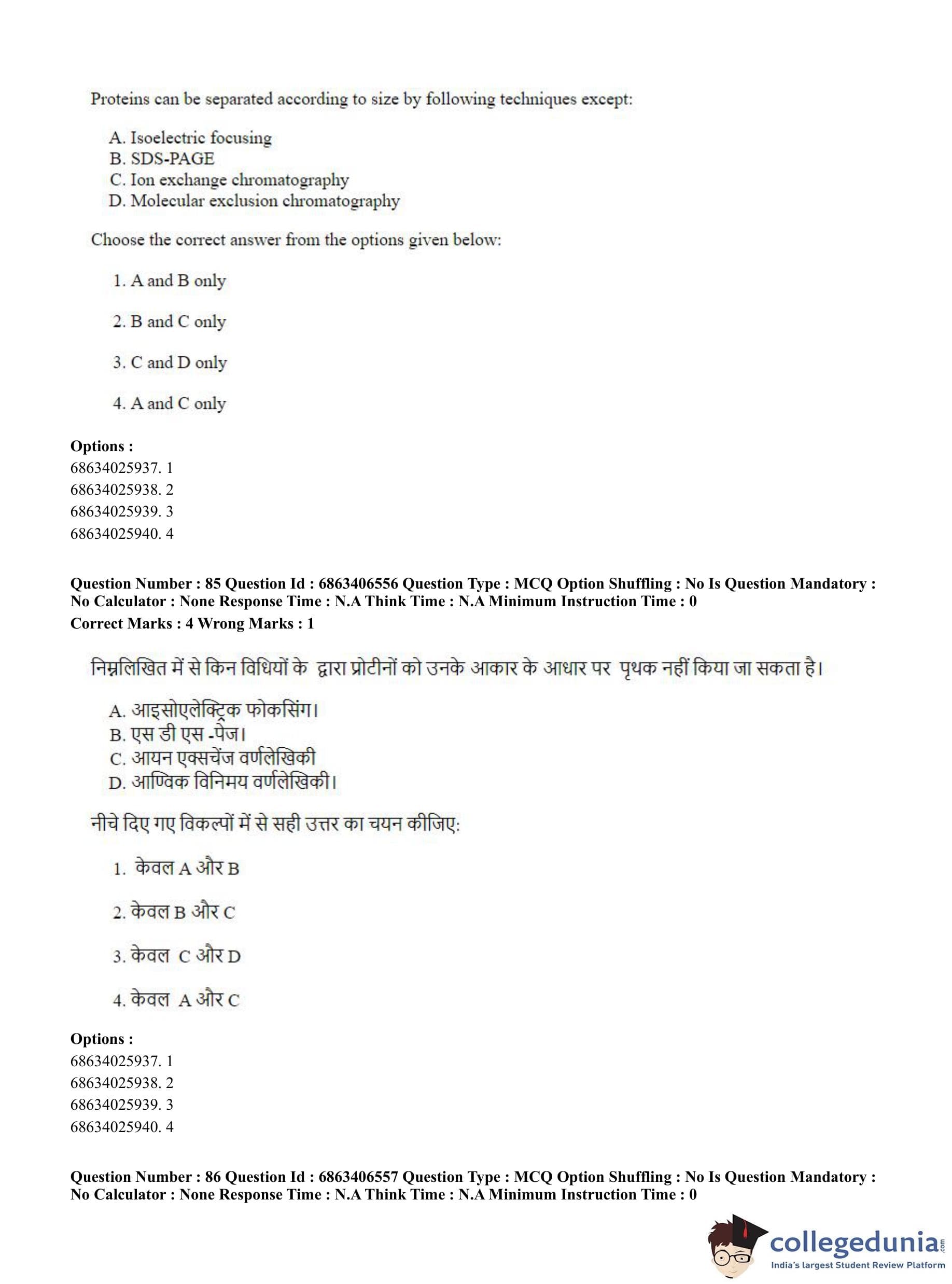 CUET PG 2023 Zoology Question Paper in Hindi (June 5 - Shift 3)