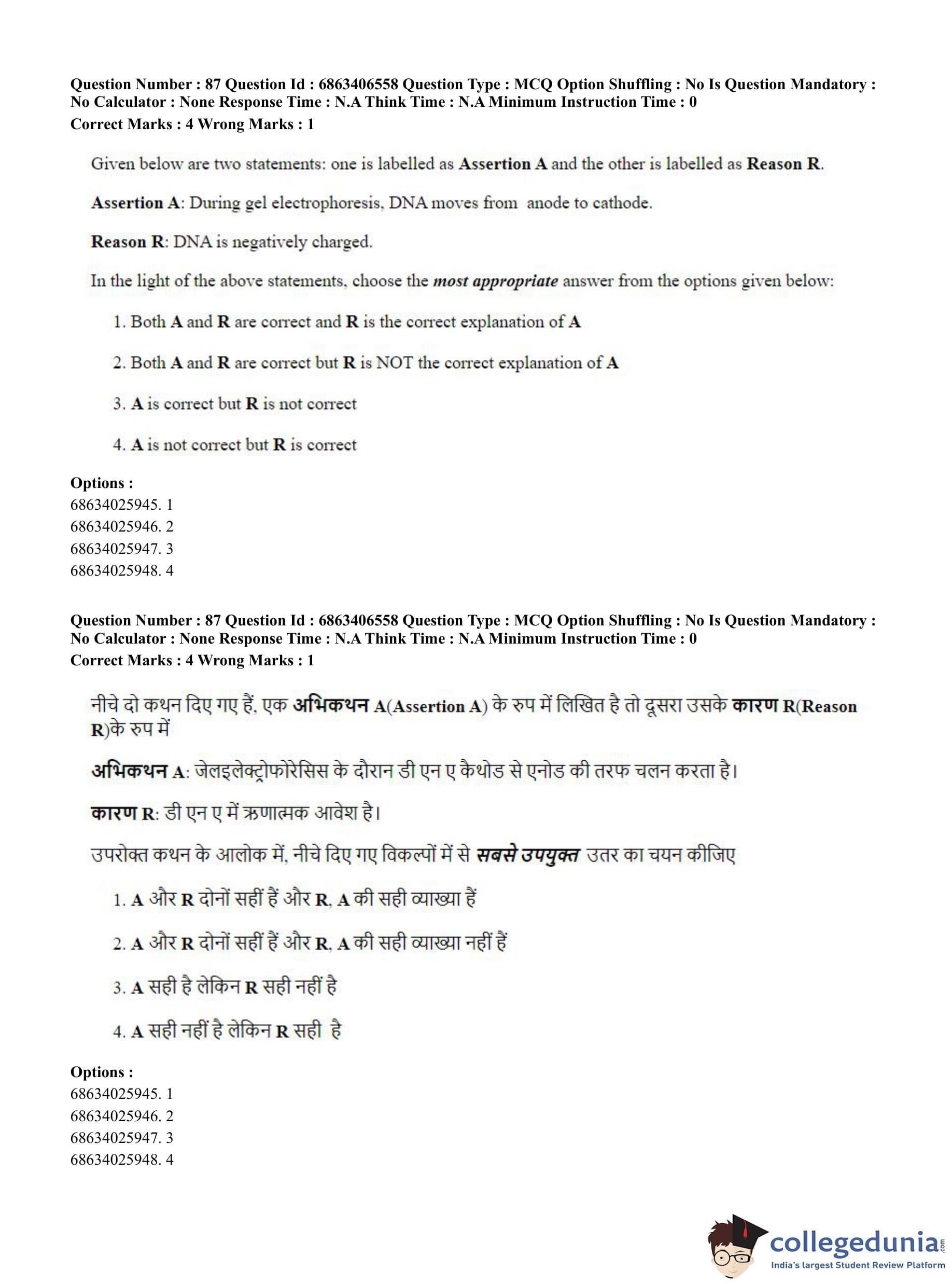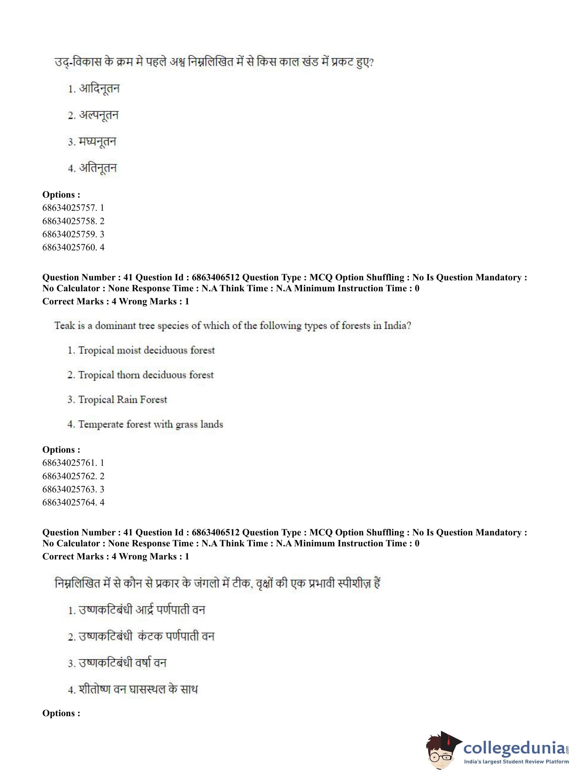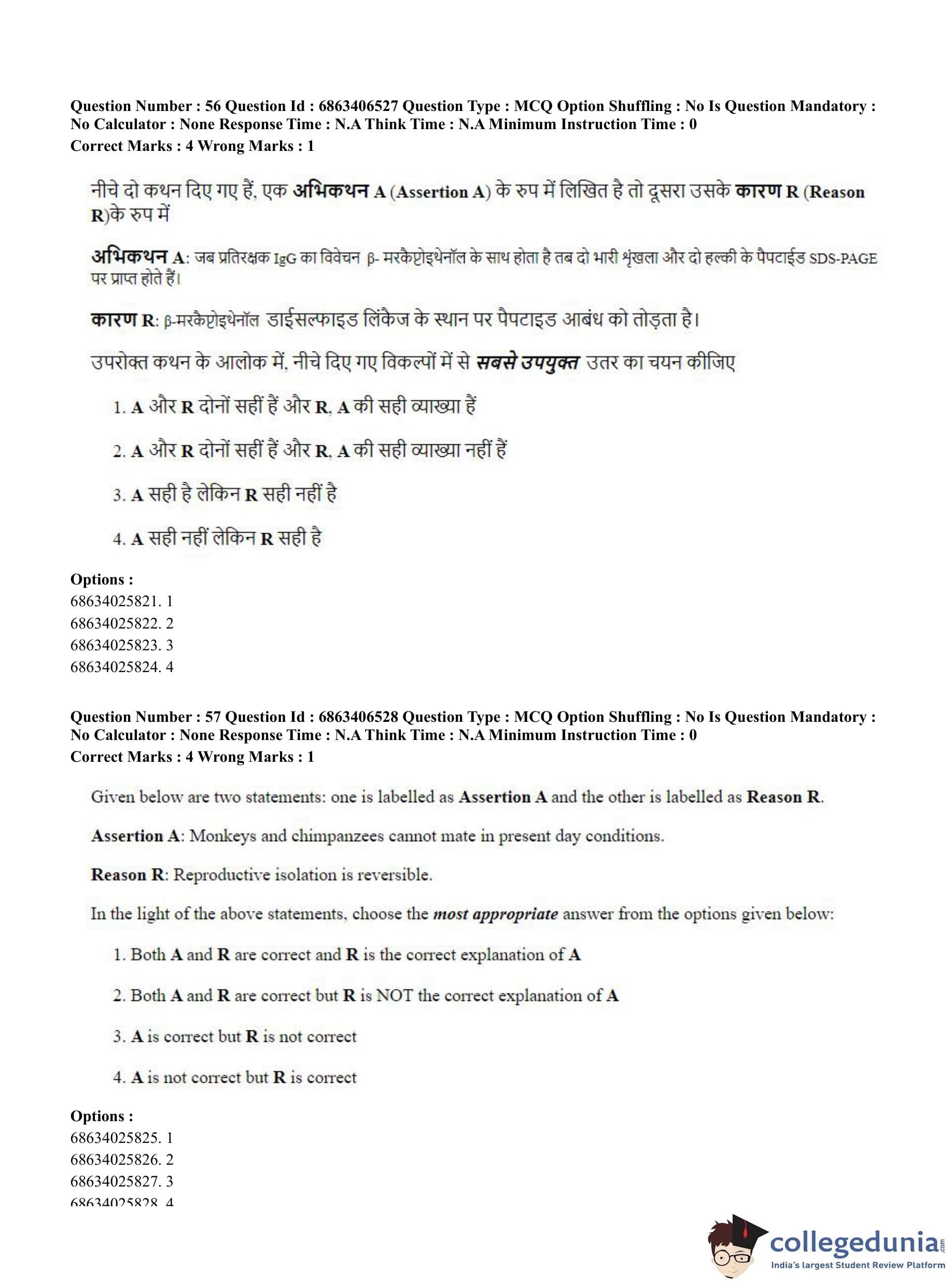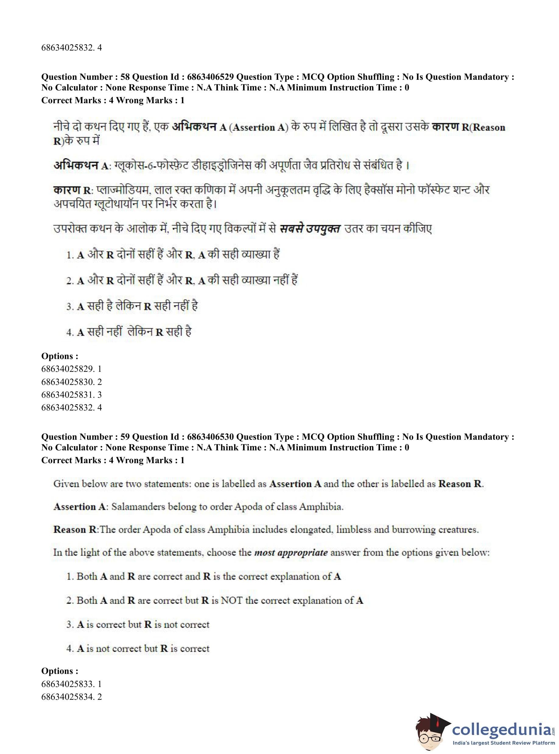 CUET PG 2023 Zoology Question Paper in Hindi (June 5 - Shift 3)