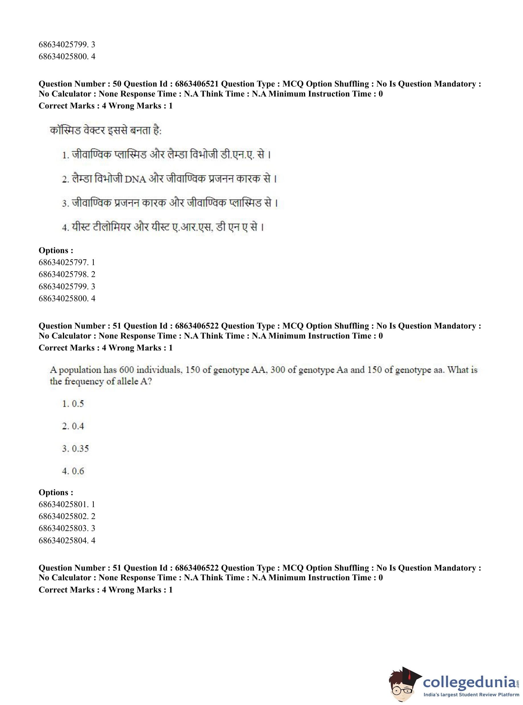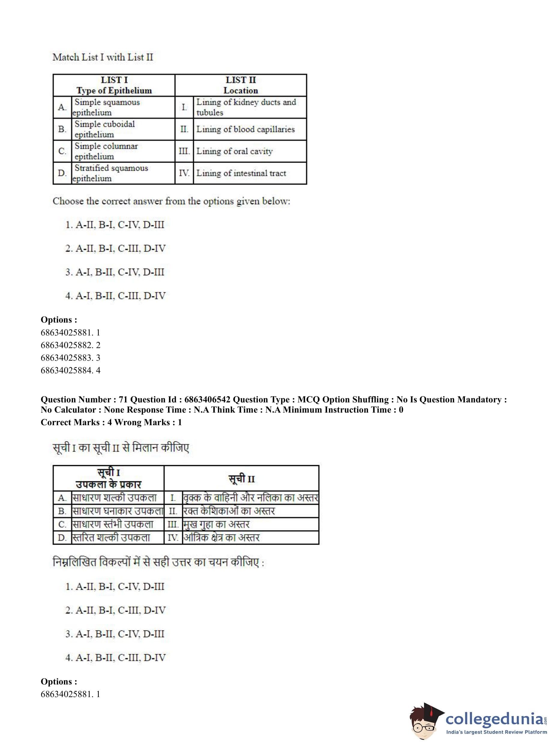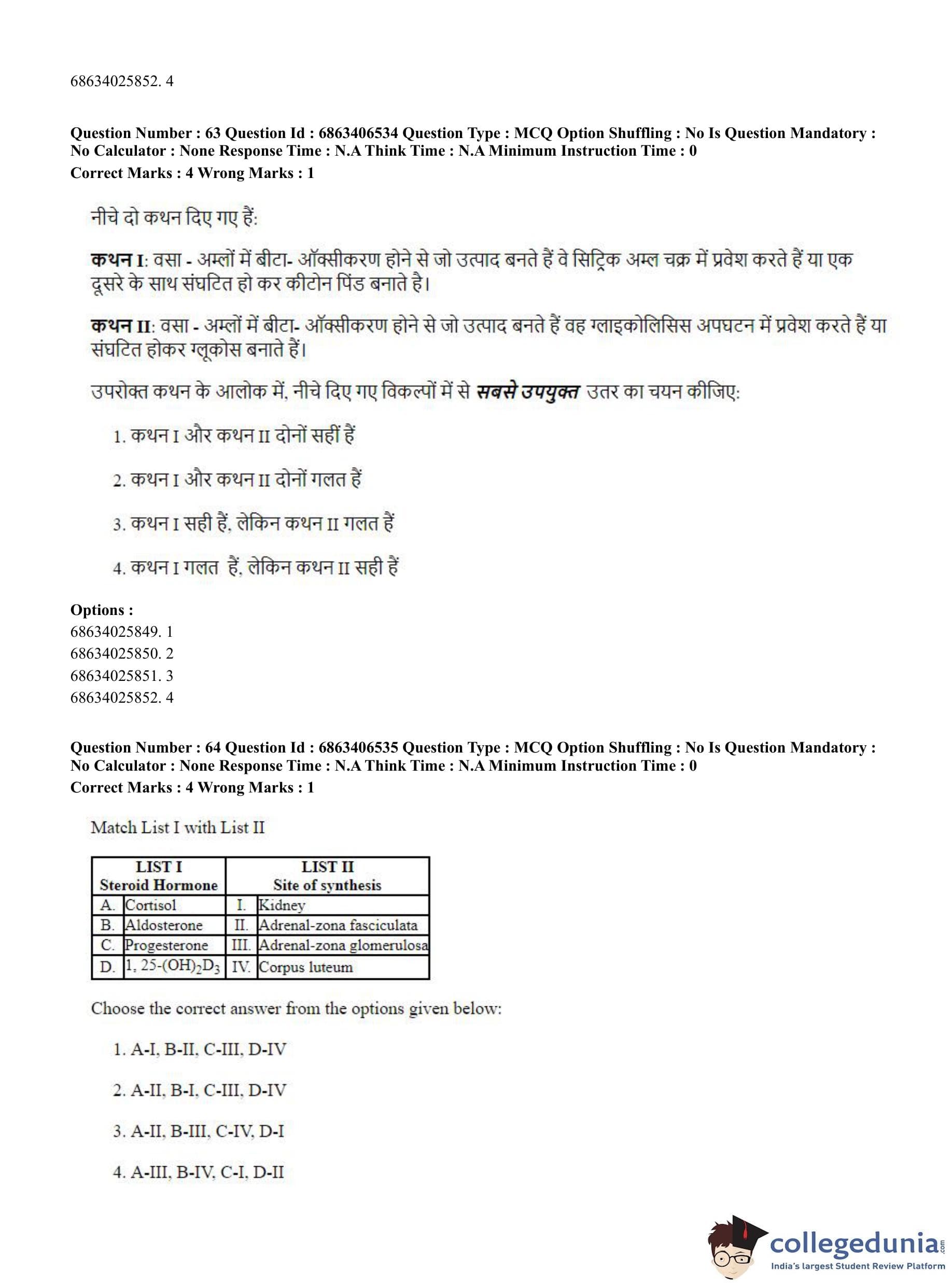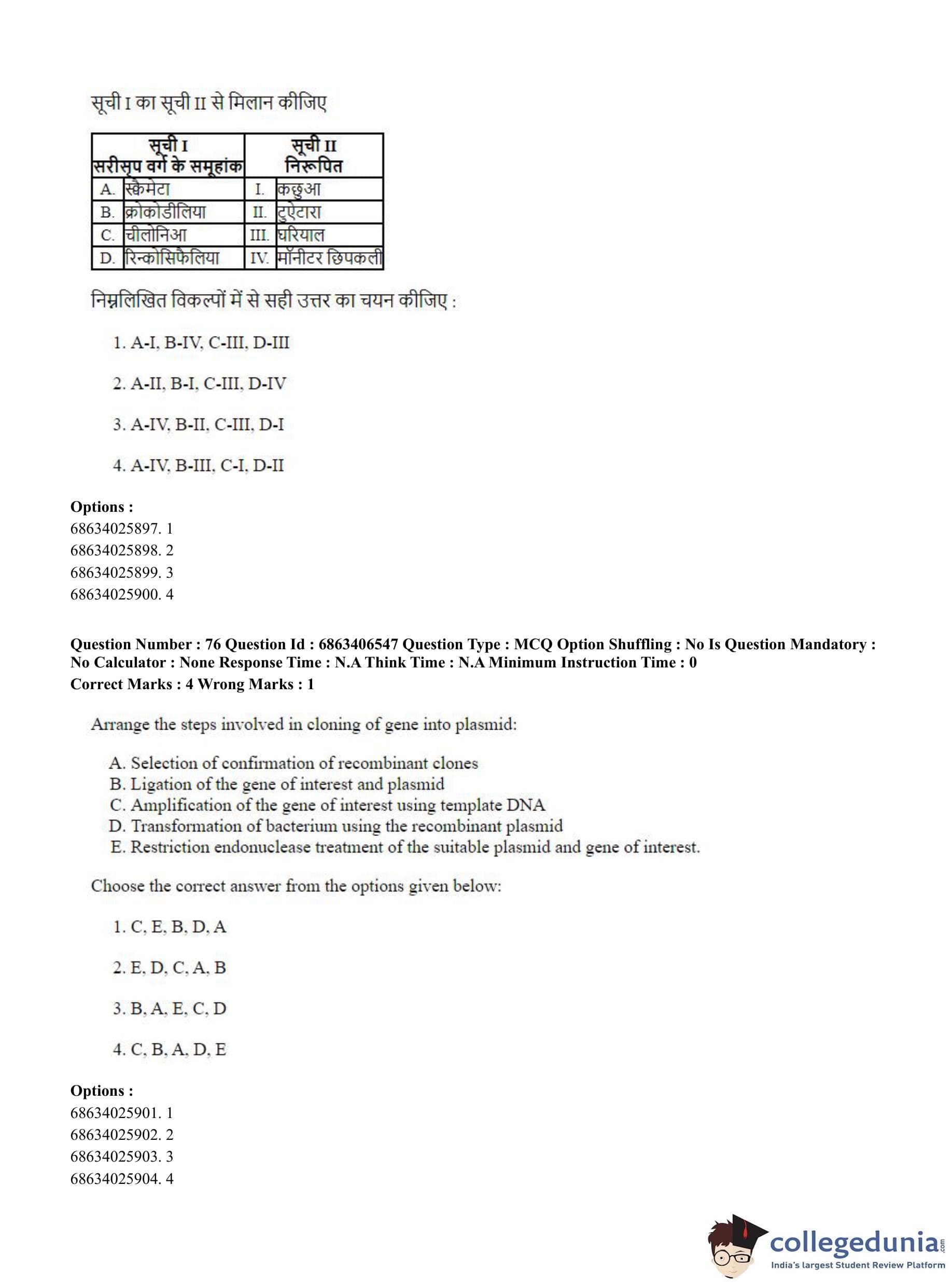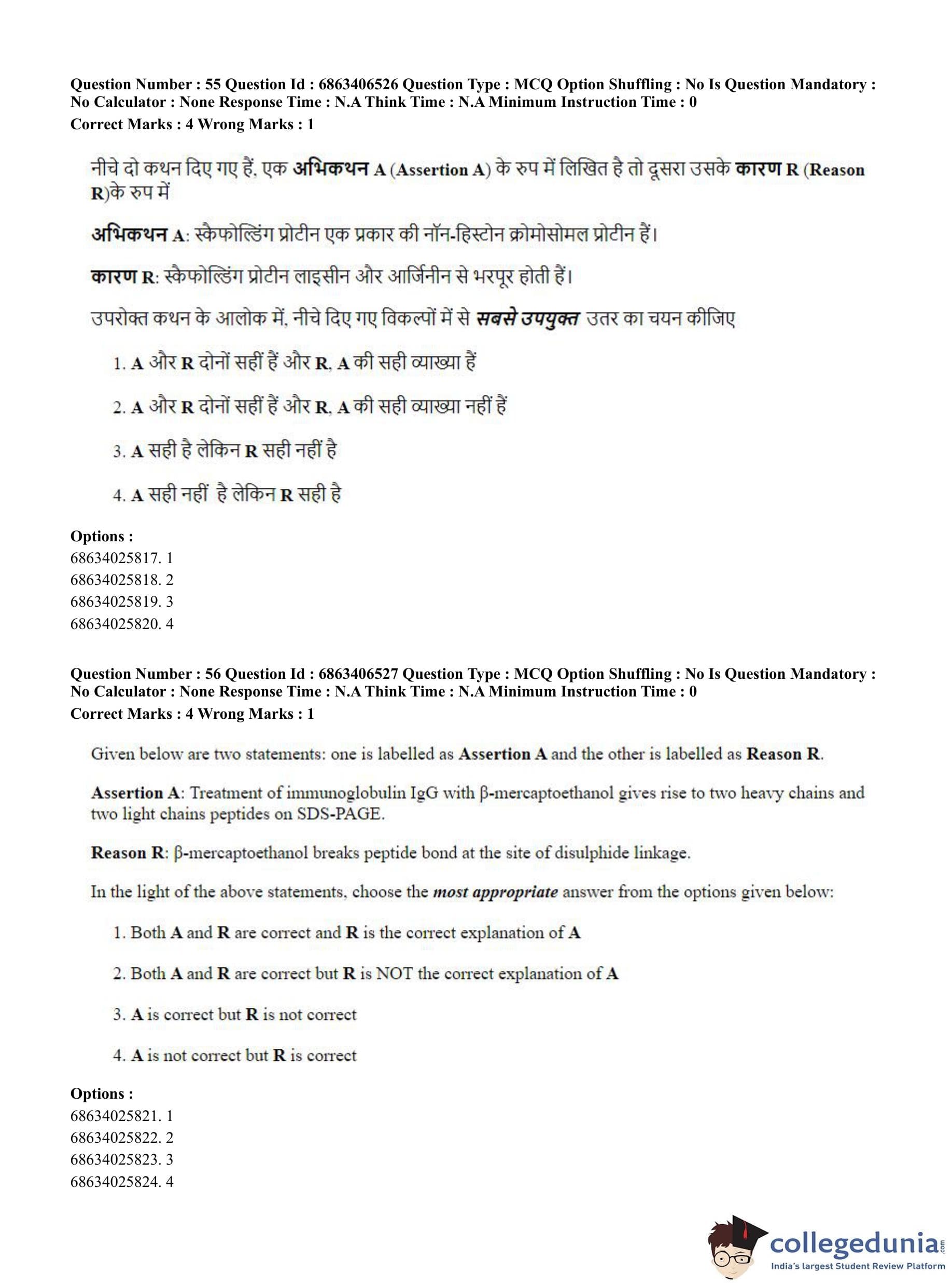 CUET PG 2023 Zoology Question Paper in Hindi (June 5 - Shift 3)